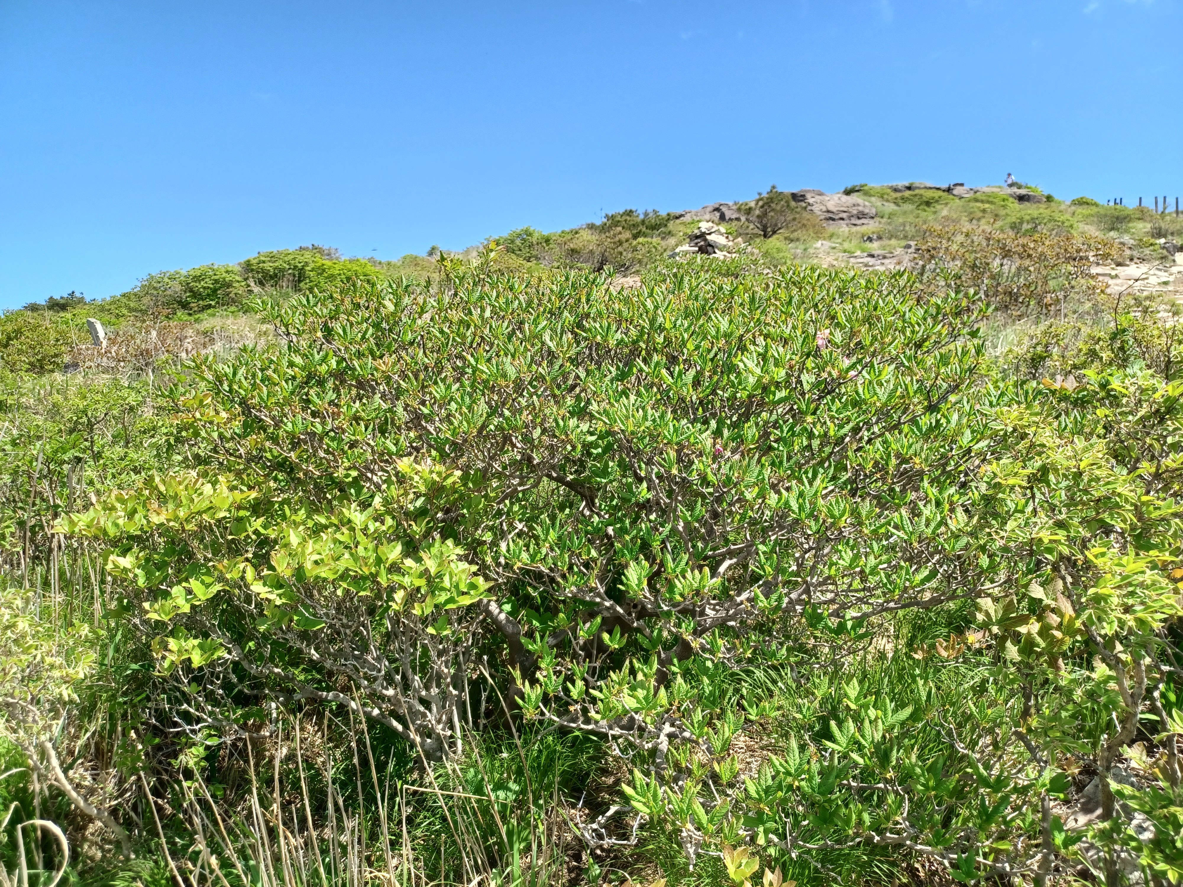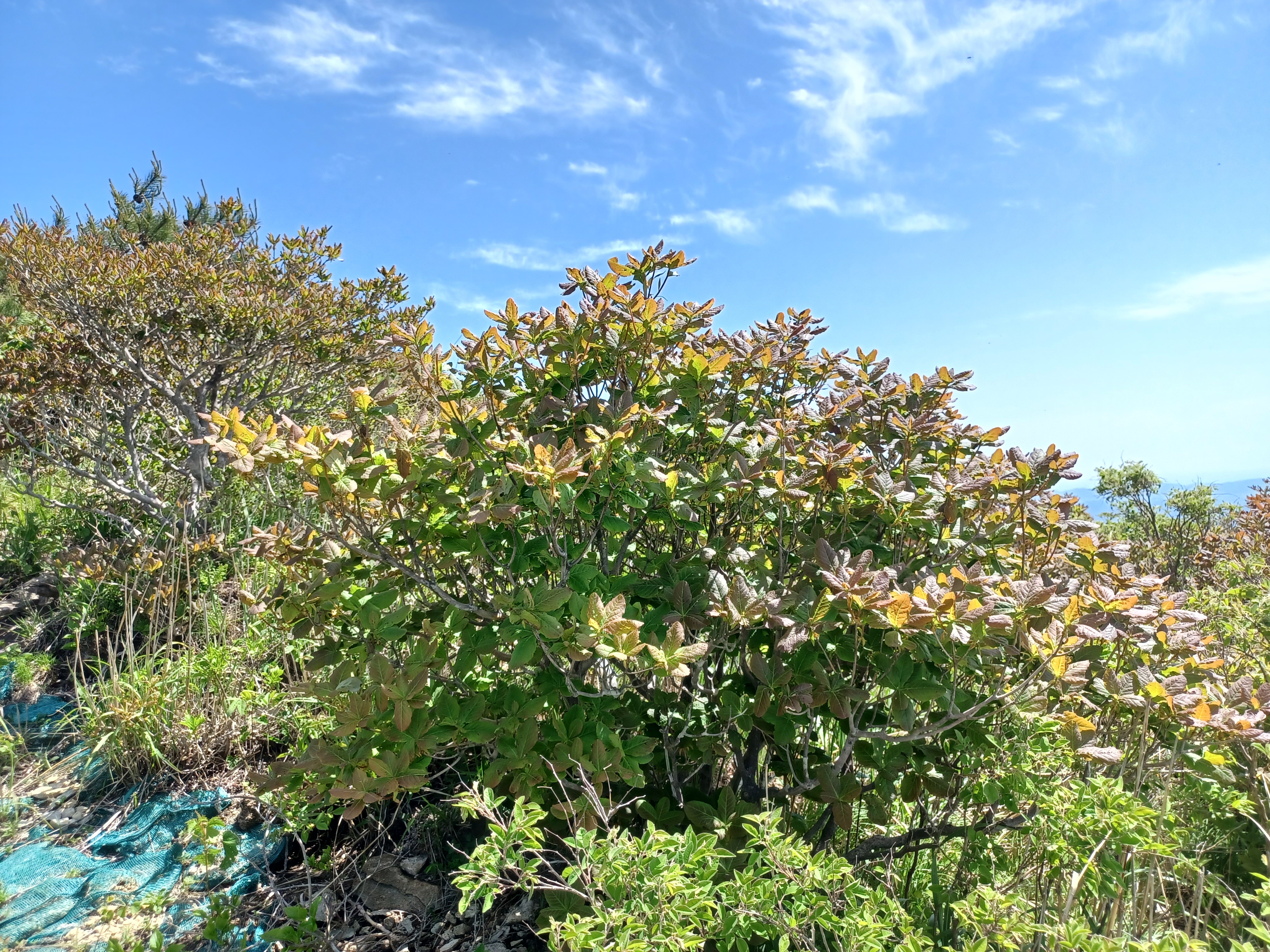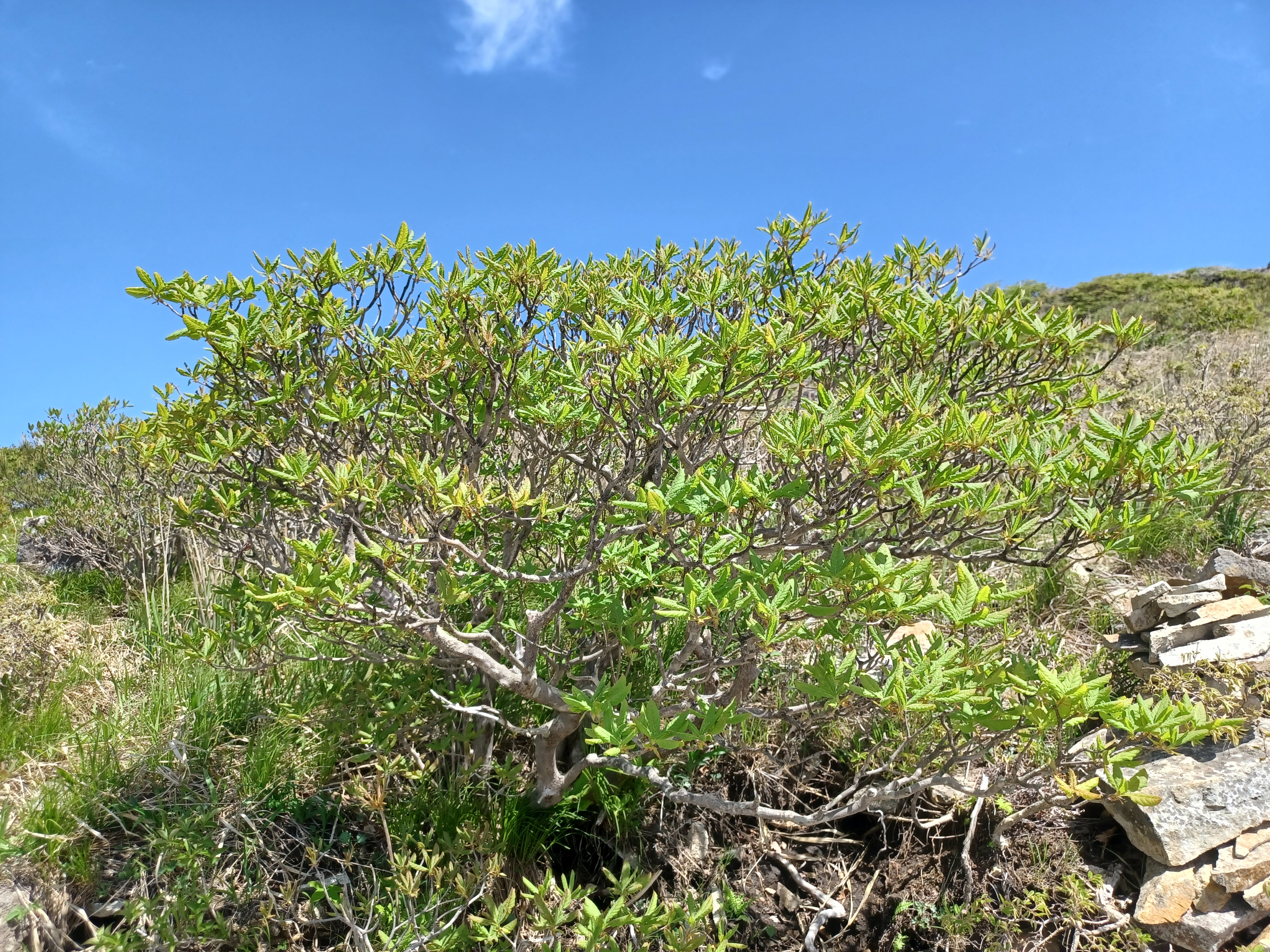 고산지대 바람을 이기려고 웅크린 수형 좋은 철쭉나무에 꽃몽우리가 없다.