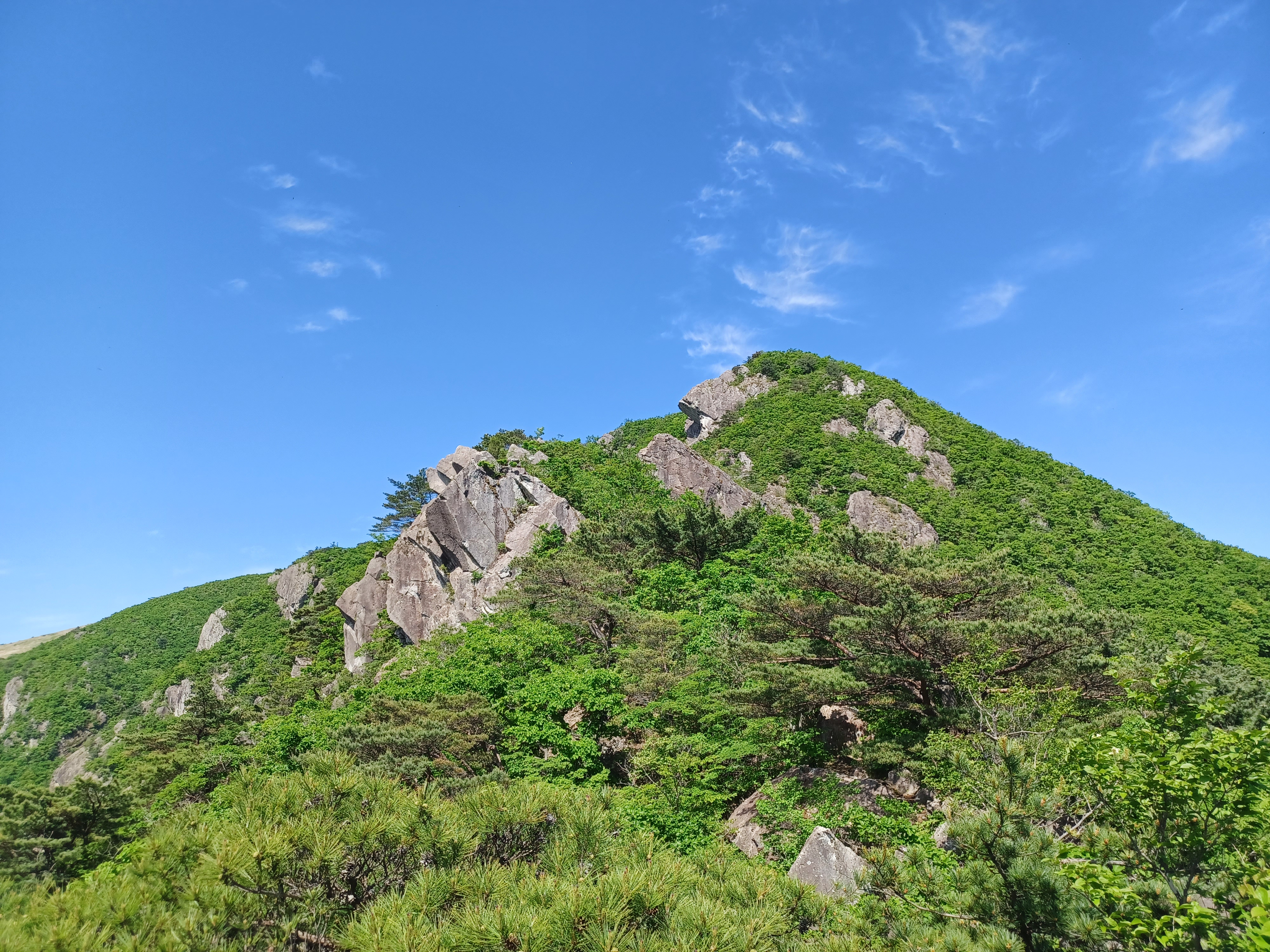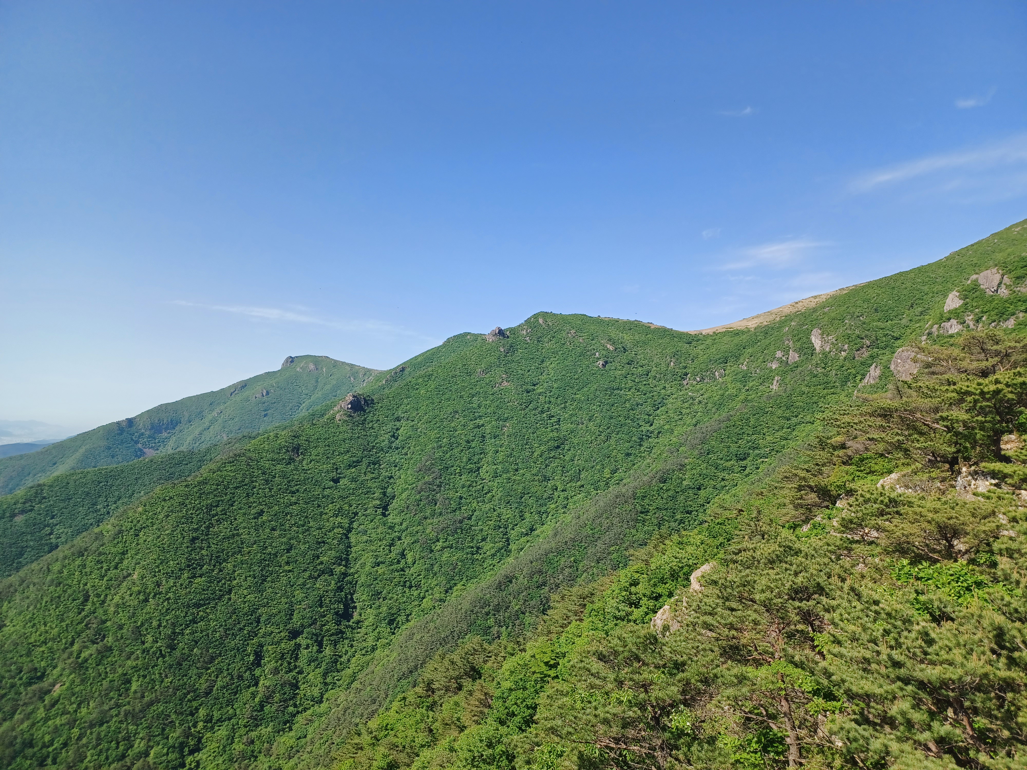 오른쪽으로 보이는 삼봉능선의 남근봉과 호랑이봉이 깨끗하다.