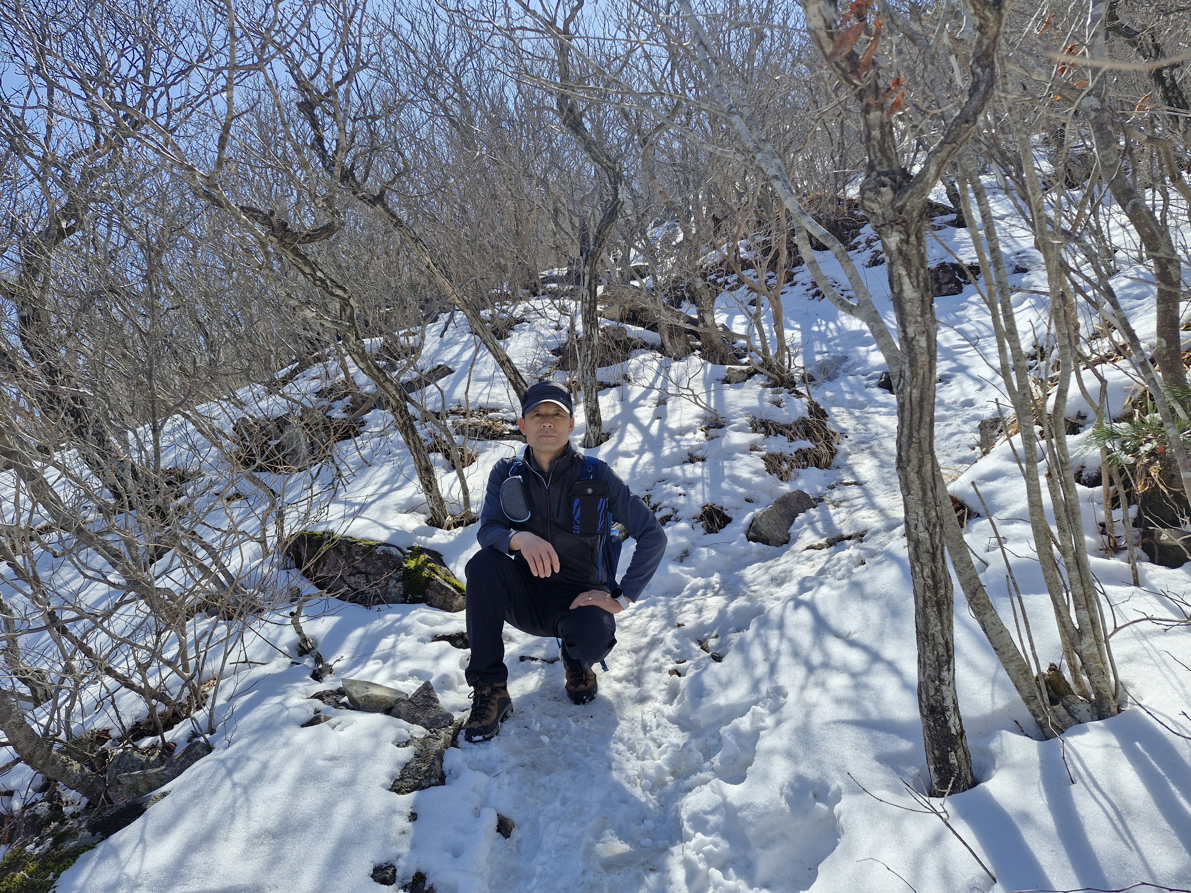 지난 주말에 내린 많은 눈으로 북서쪽 방향의 산사면 잔설은 아직까지 걸음을 조심스럽게 했다.