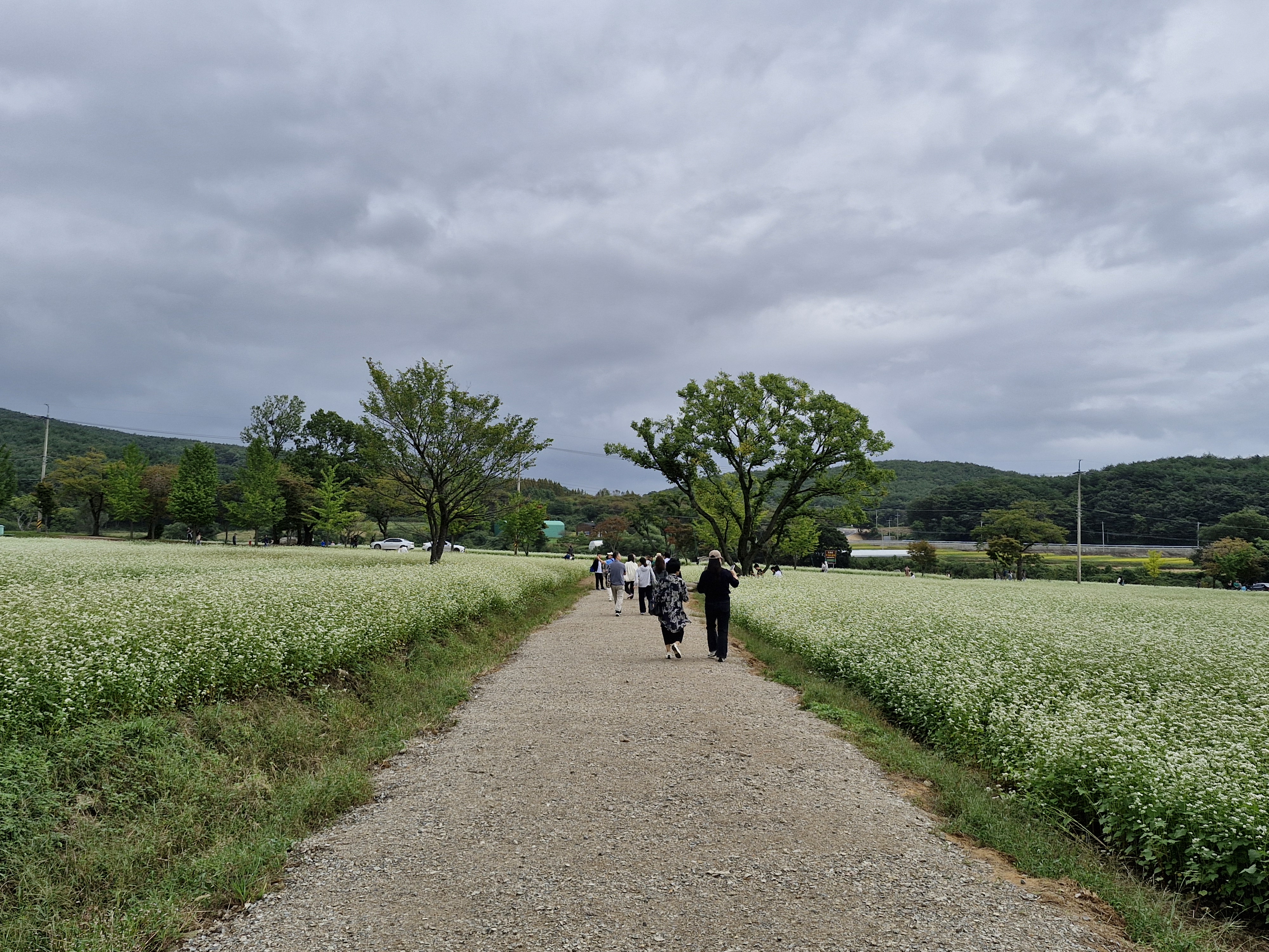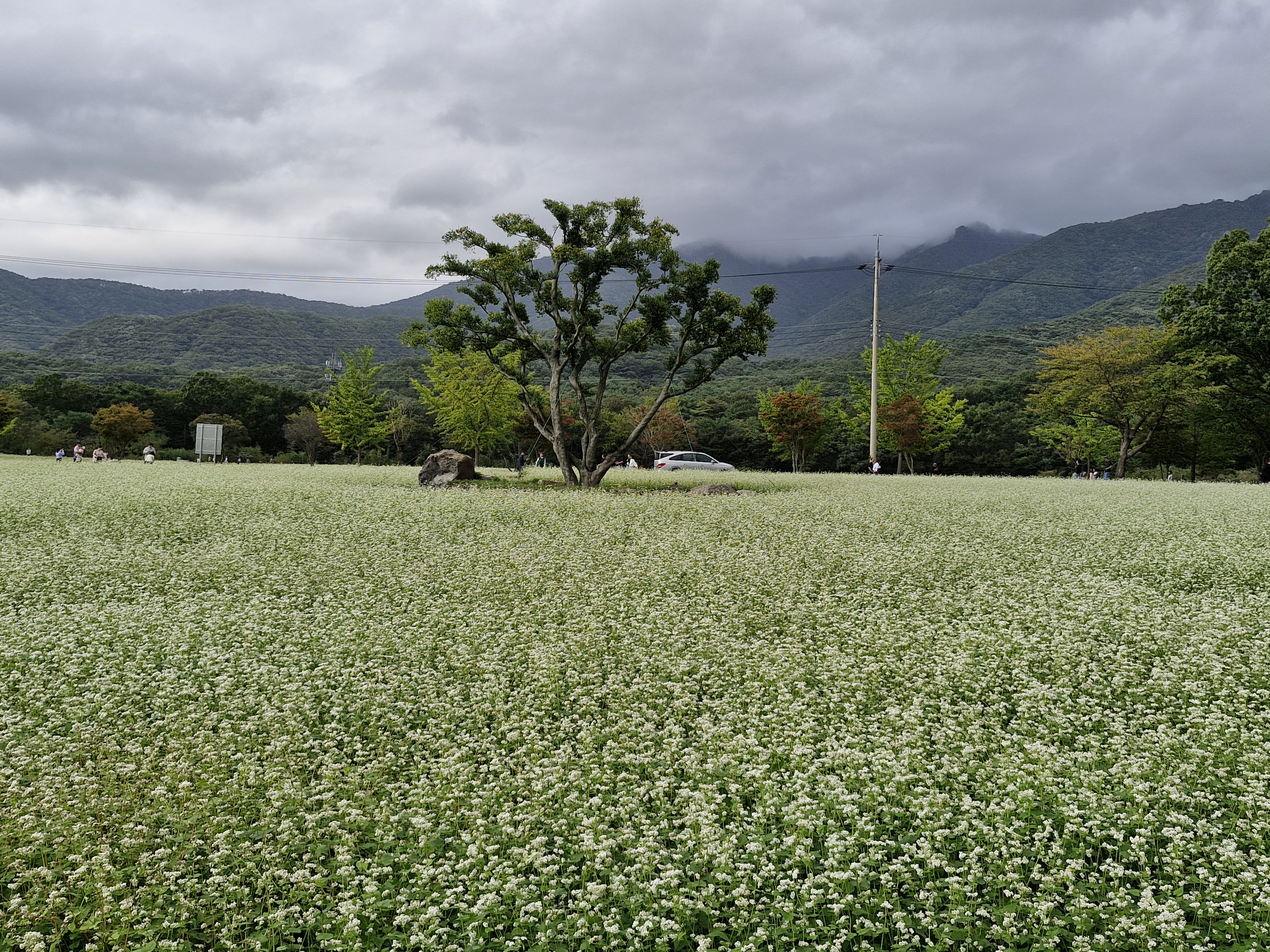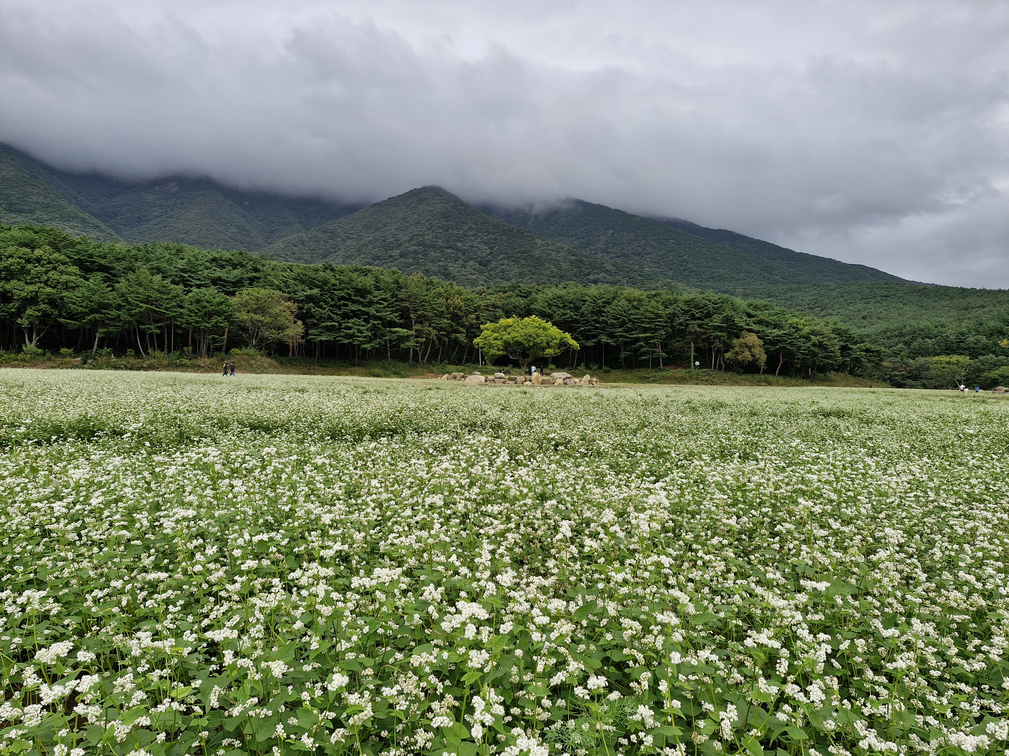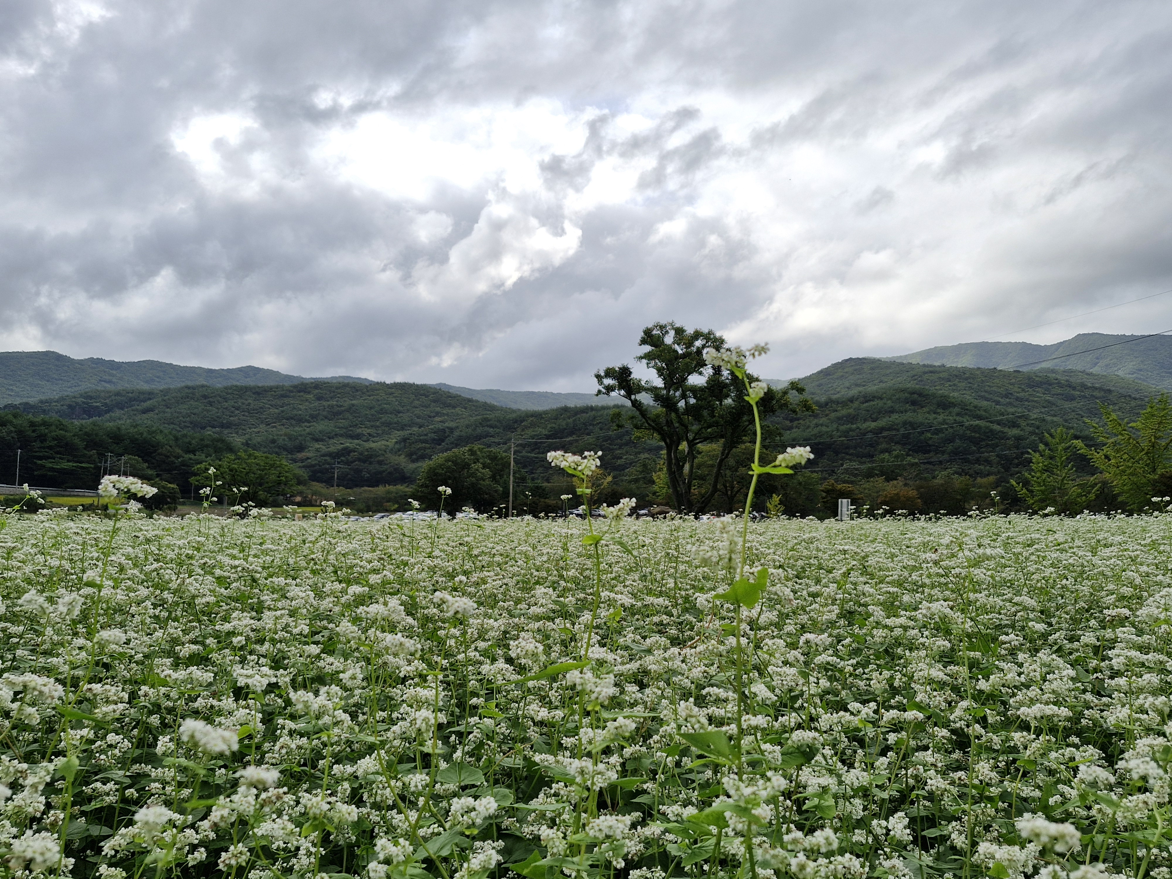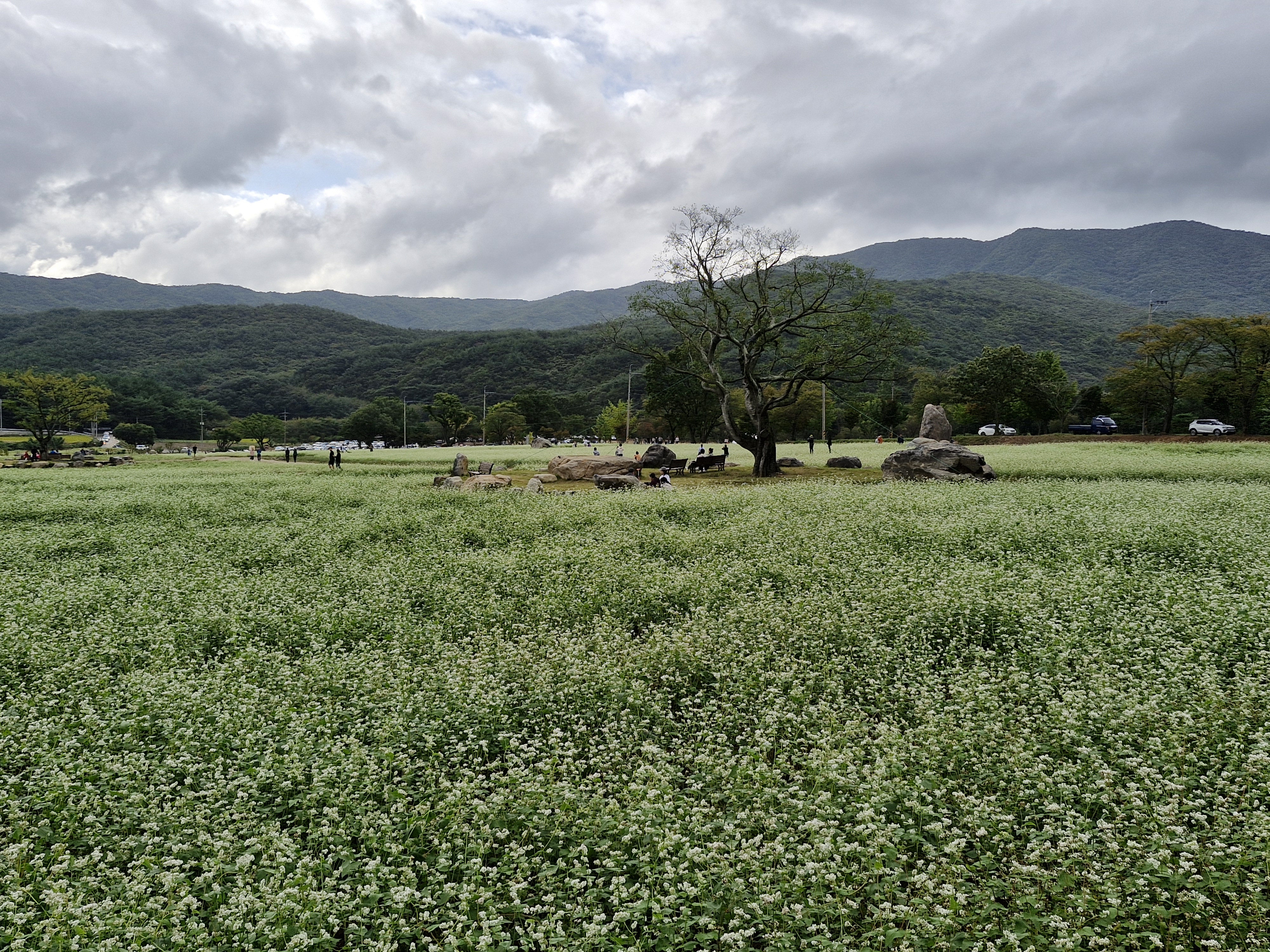 메밀밭 중간중간에 심어진 느티나무가 운치를 더해주고...