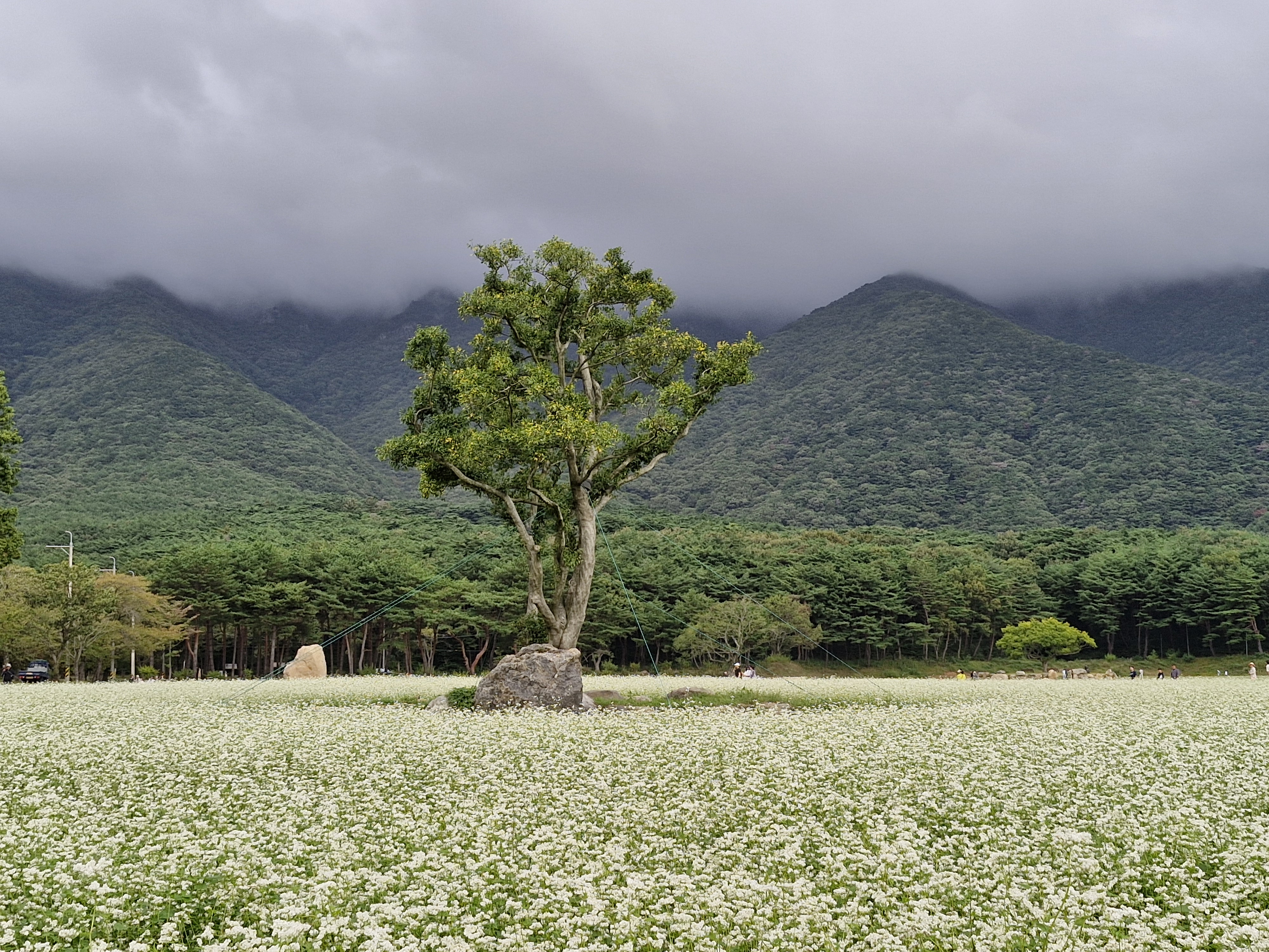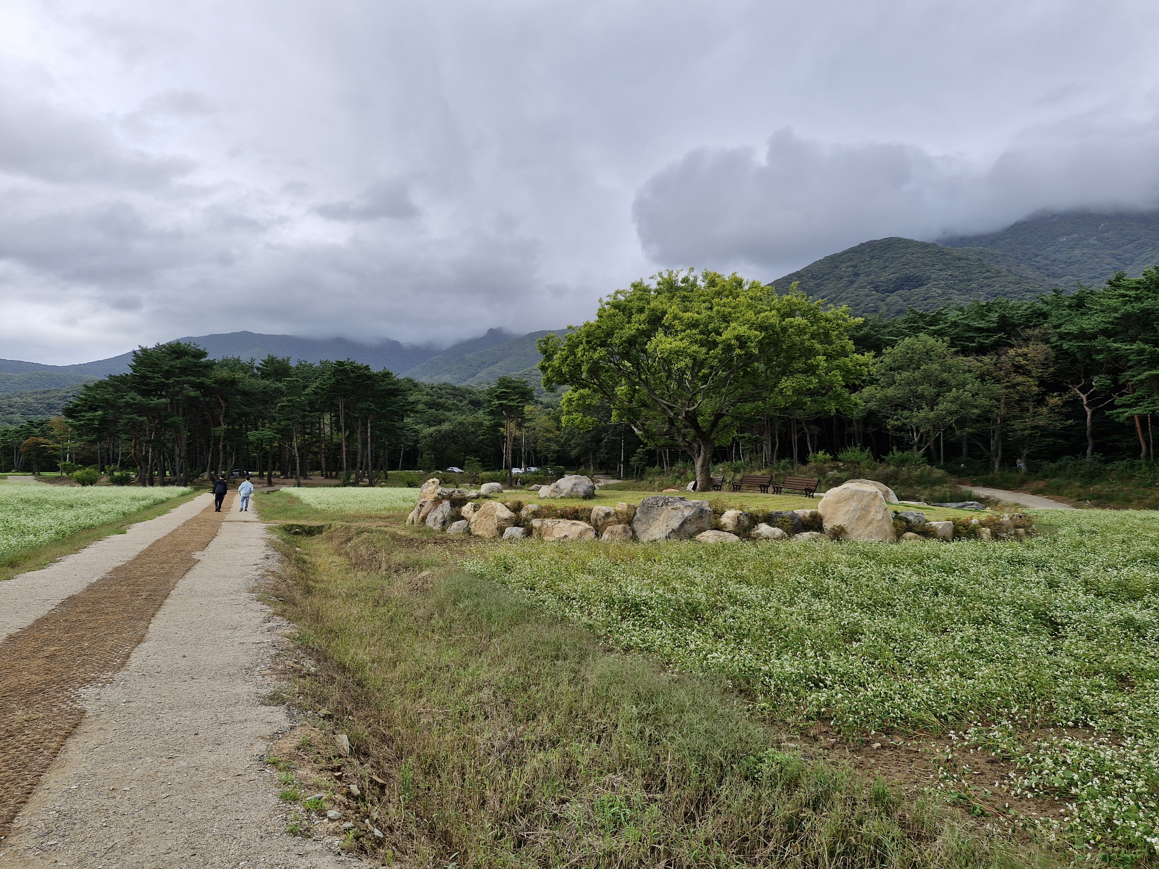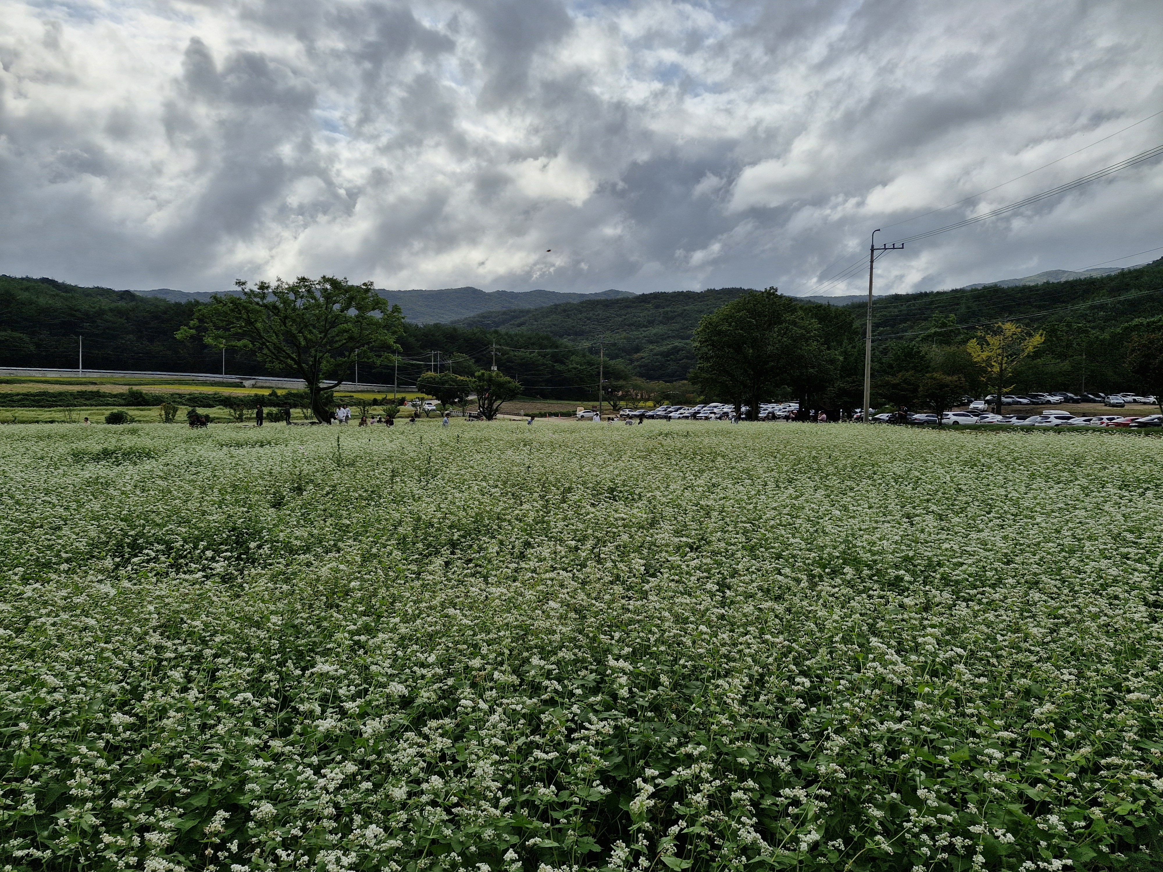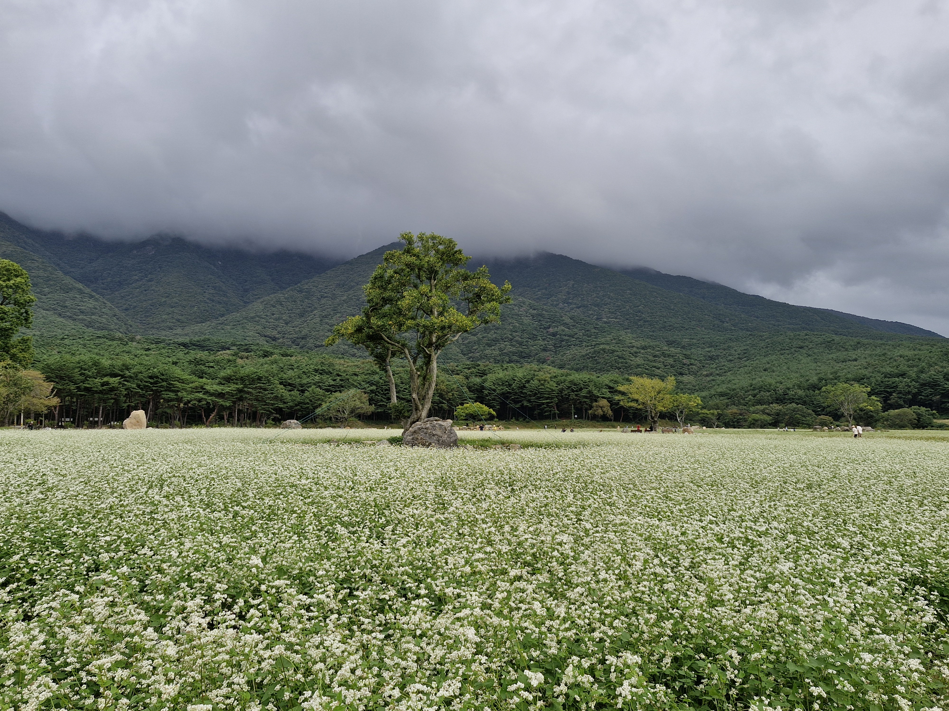메밀밭 중간중간에 심어진 느티나무가 운치를 더해주고...