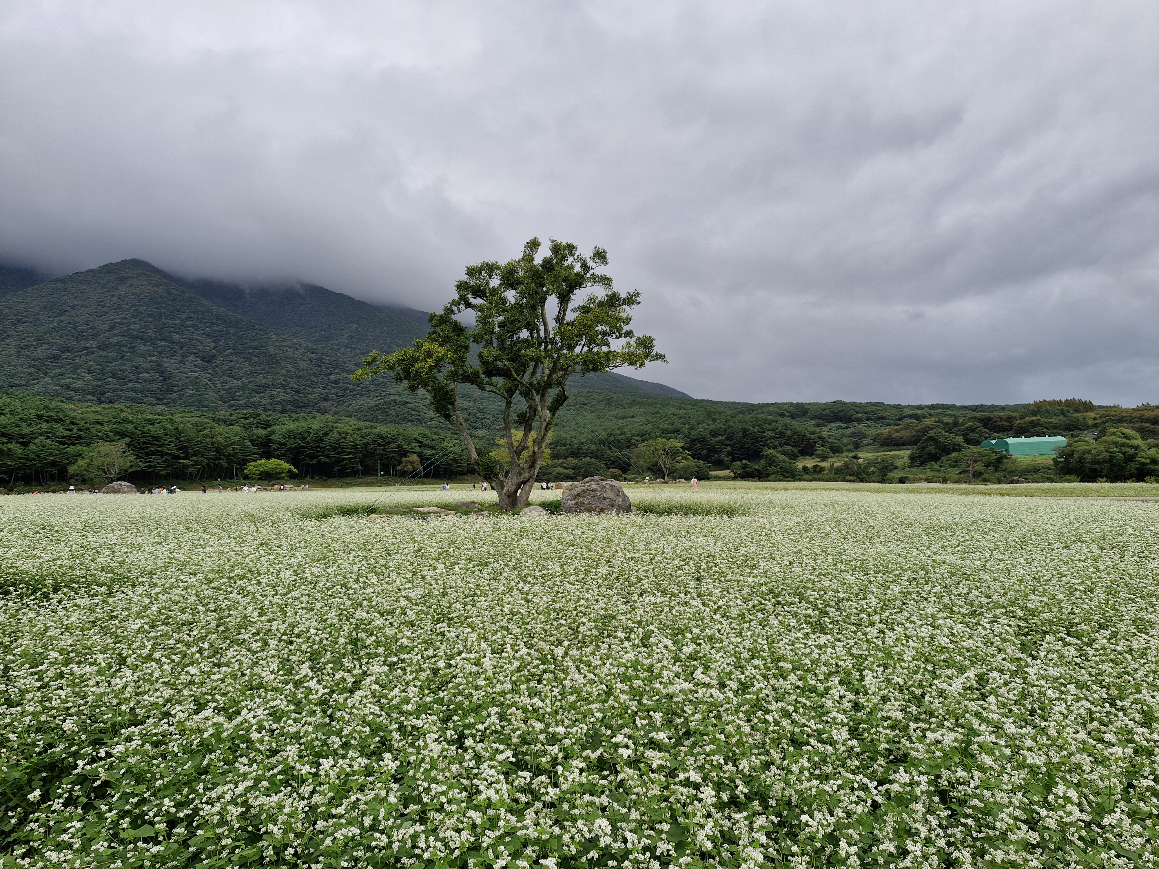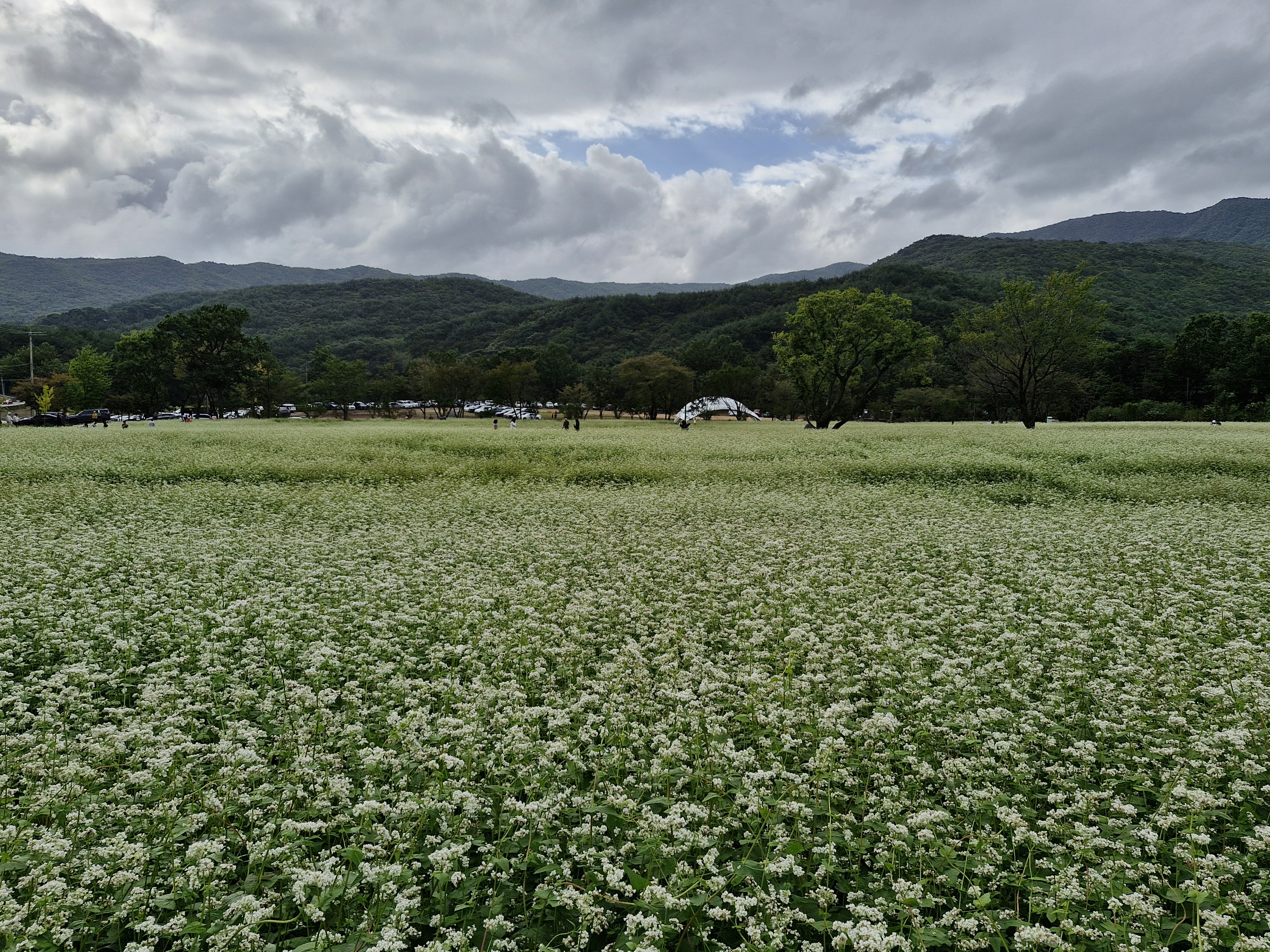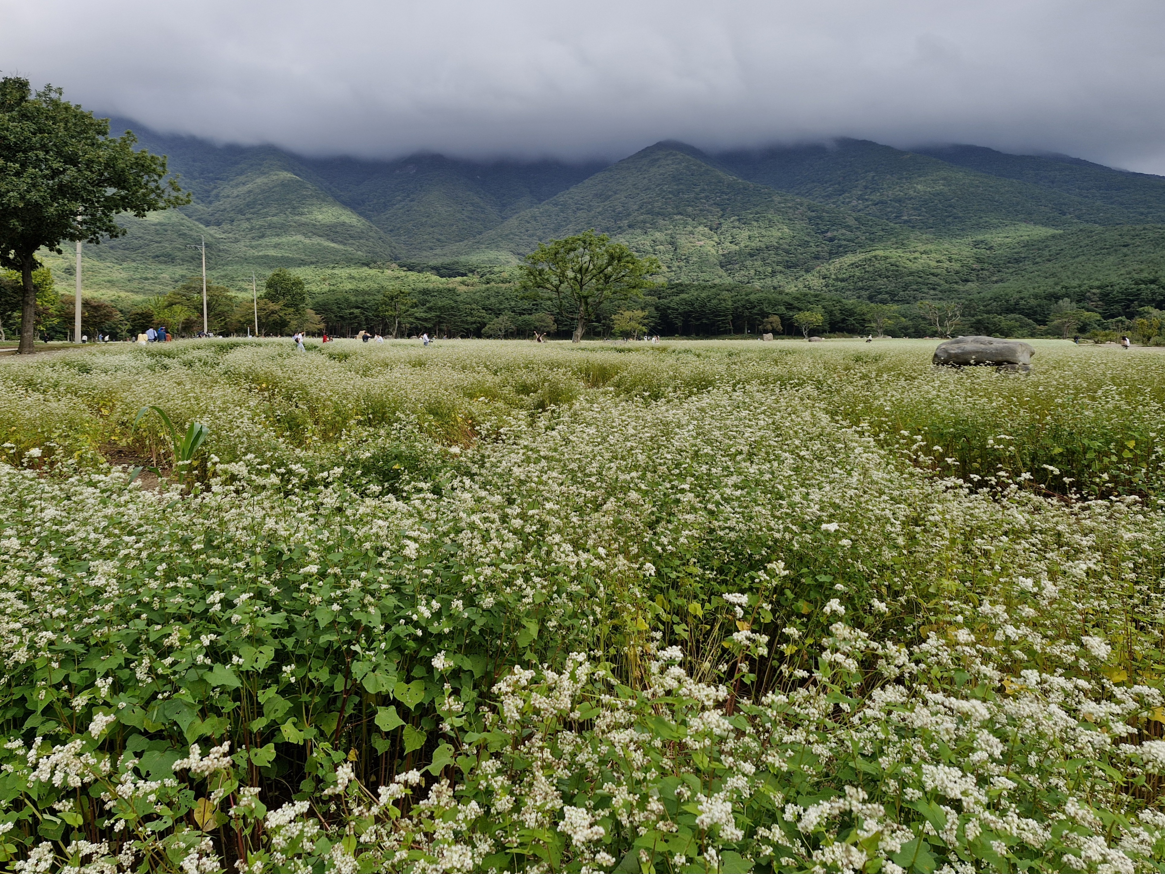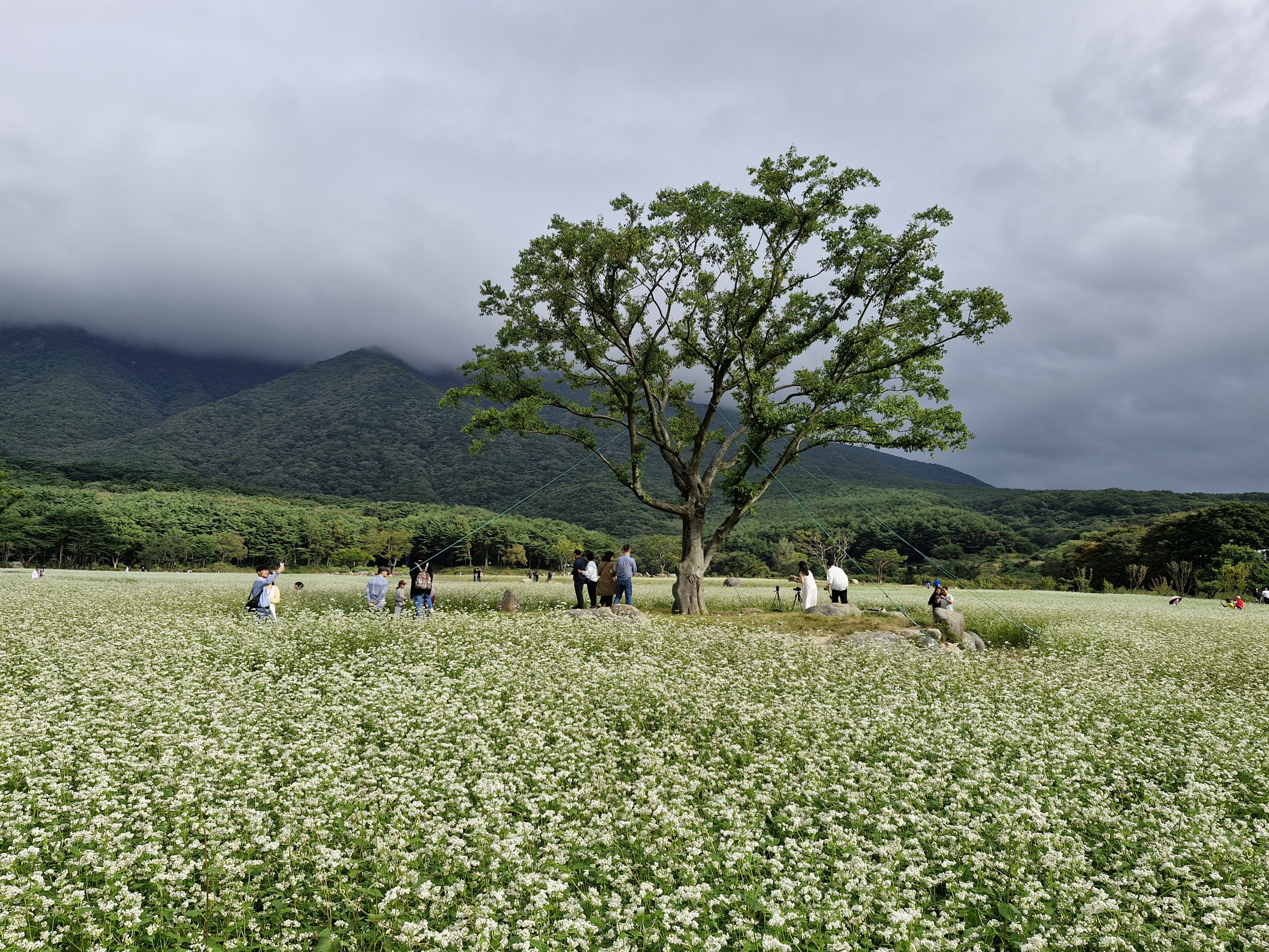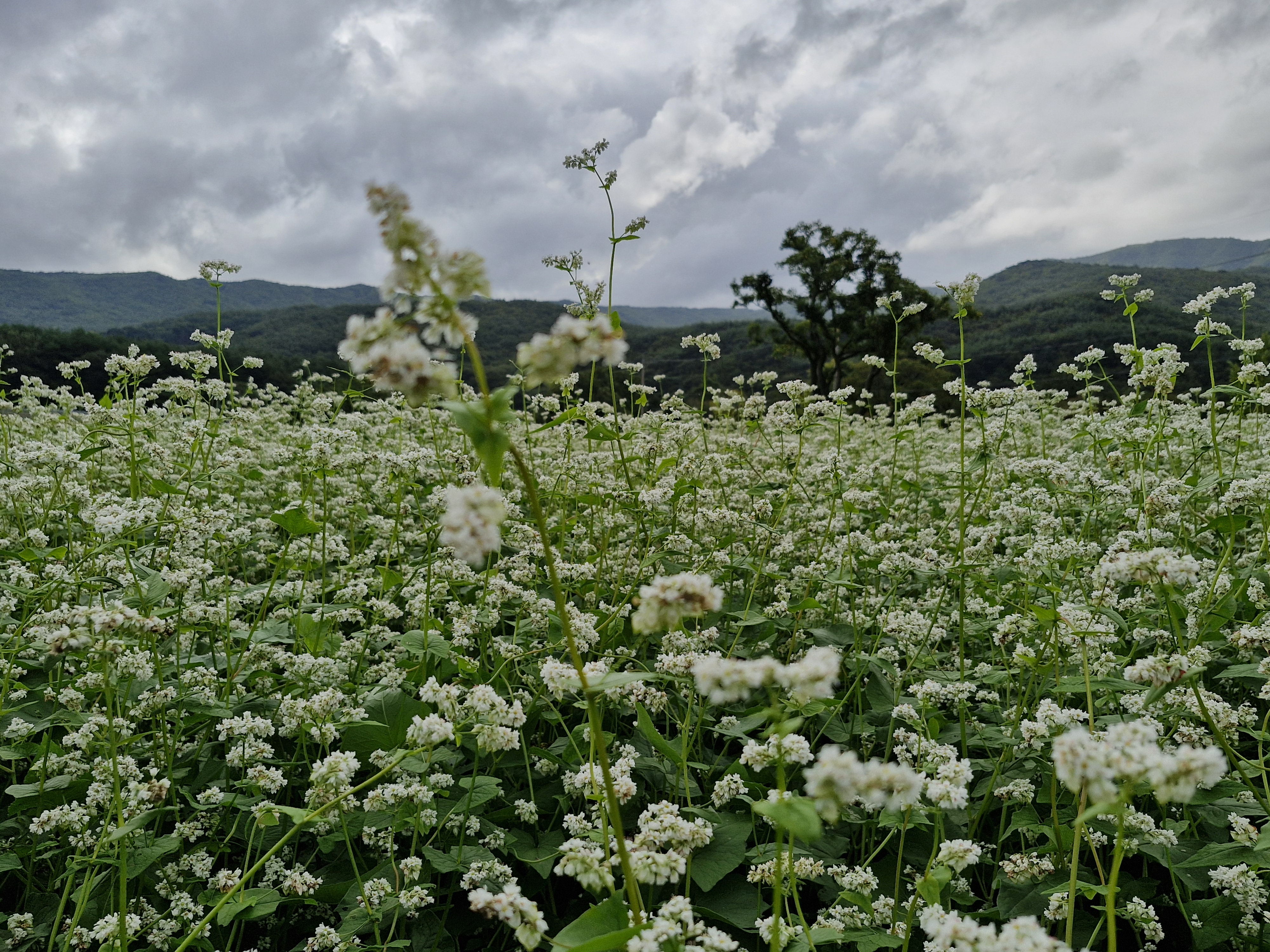 메밀밭 중간중간에 심어진 느티나무가 운치를 더해주고...