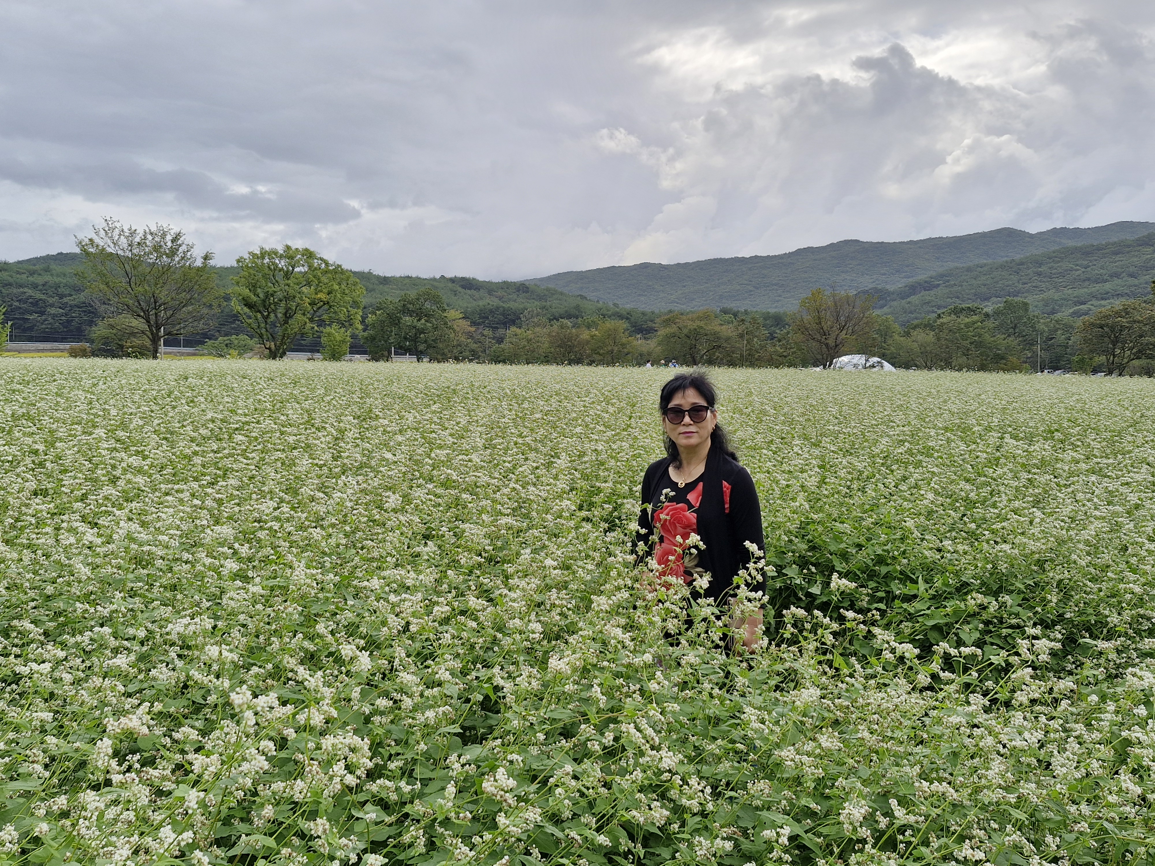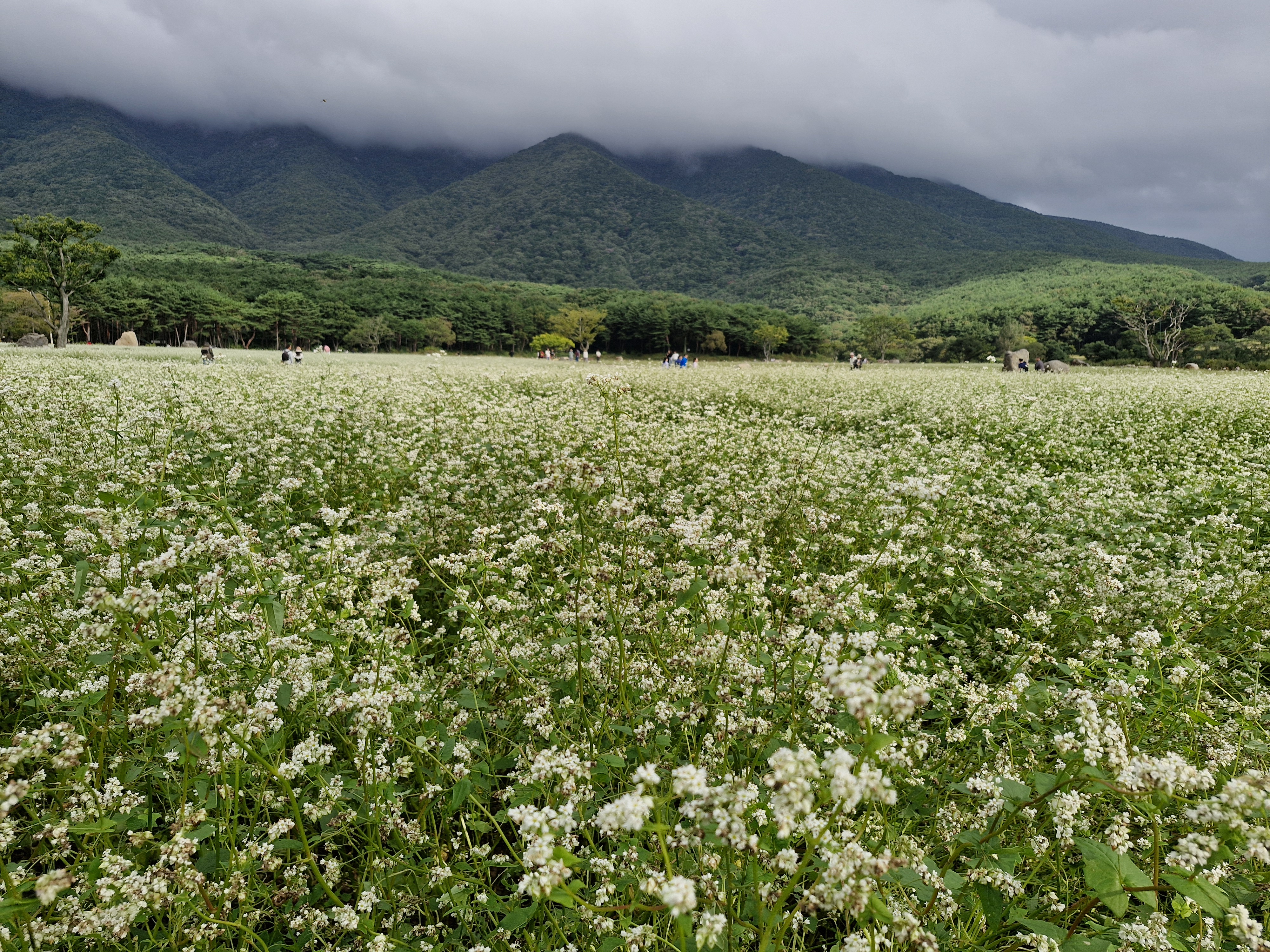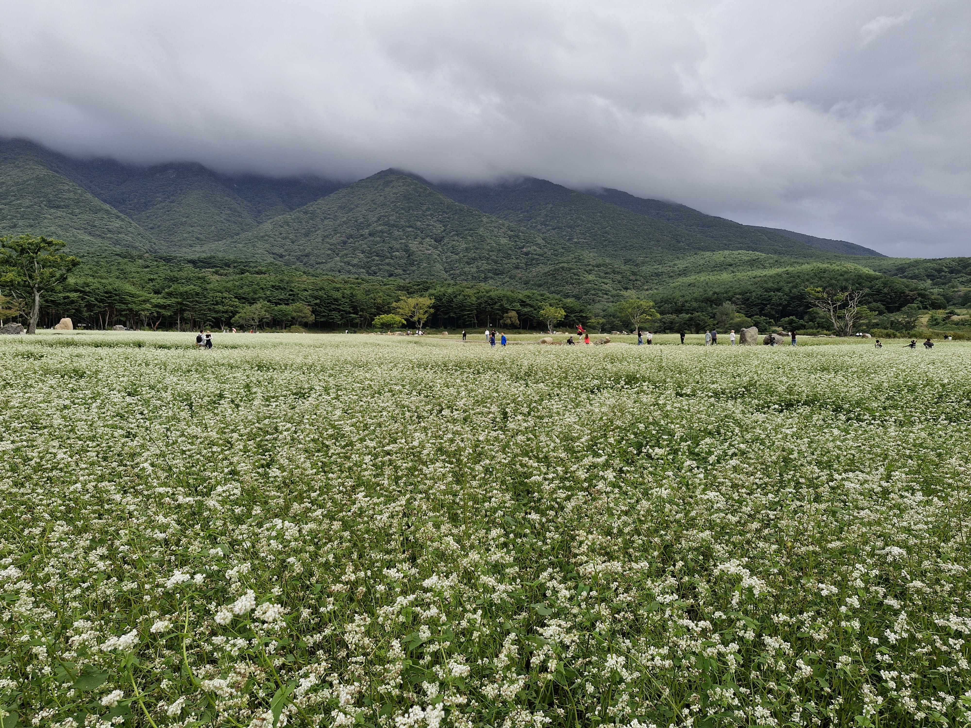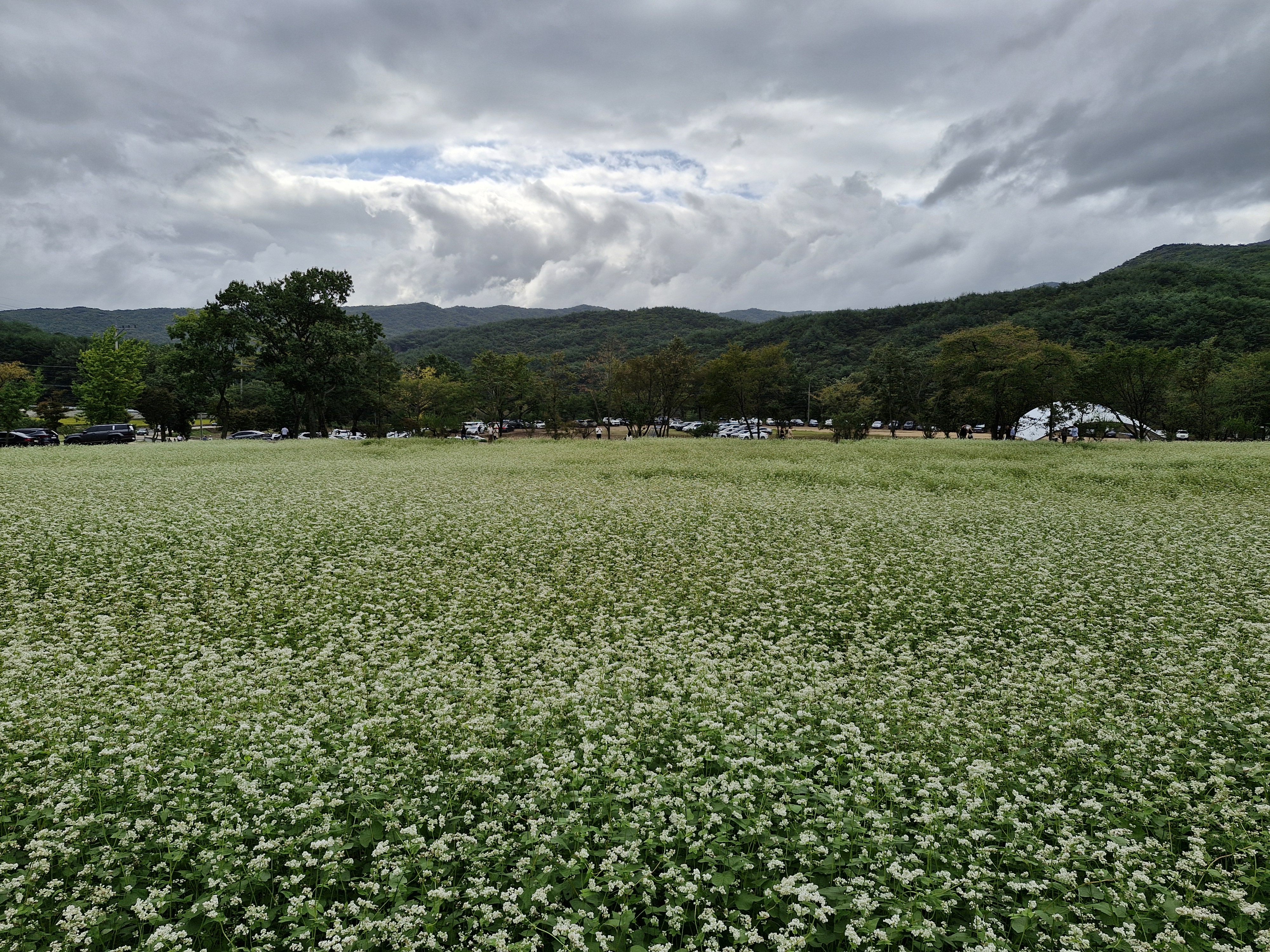메밀밭 중간중간에 심어진 느티나무가 운치를 더해주고...