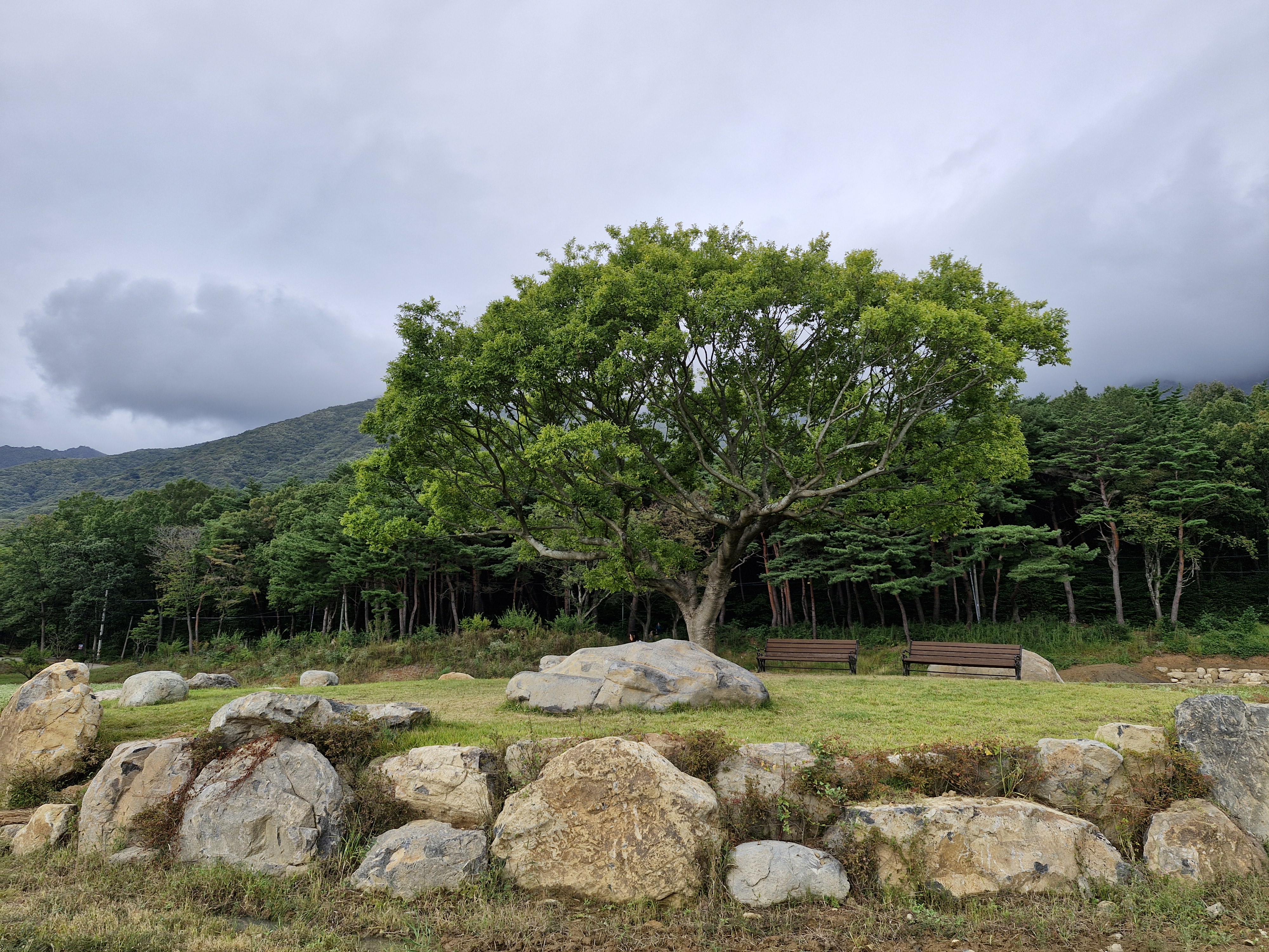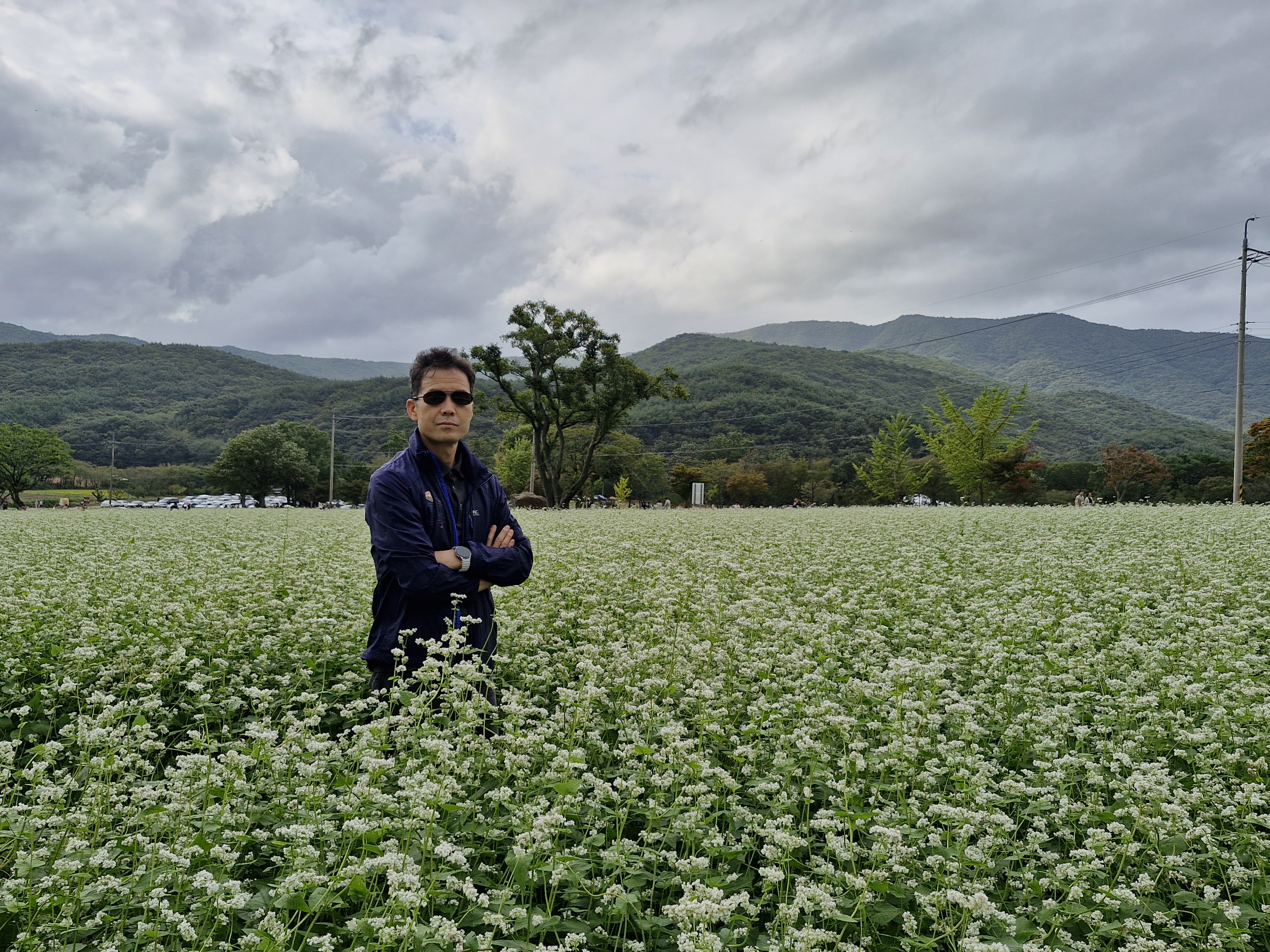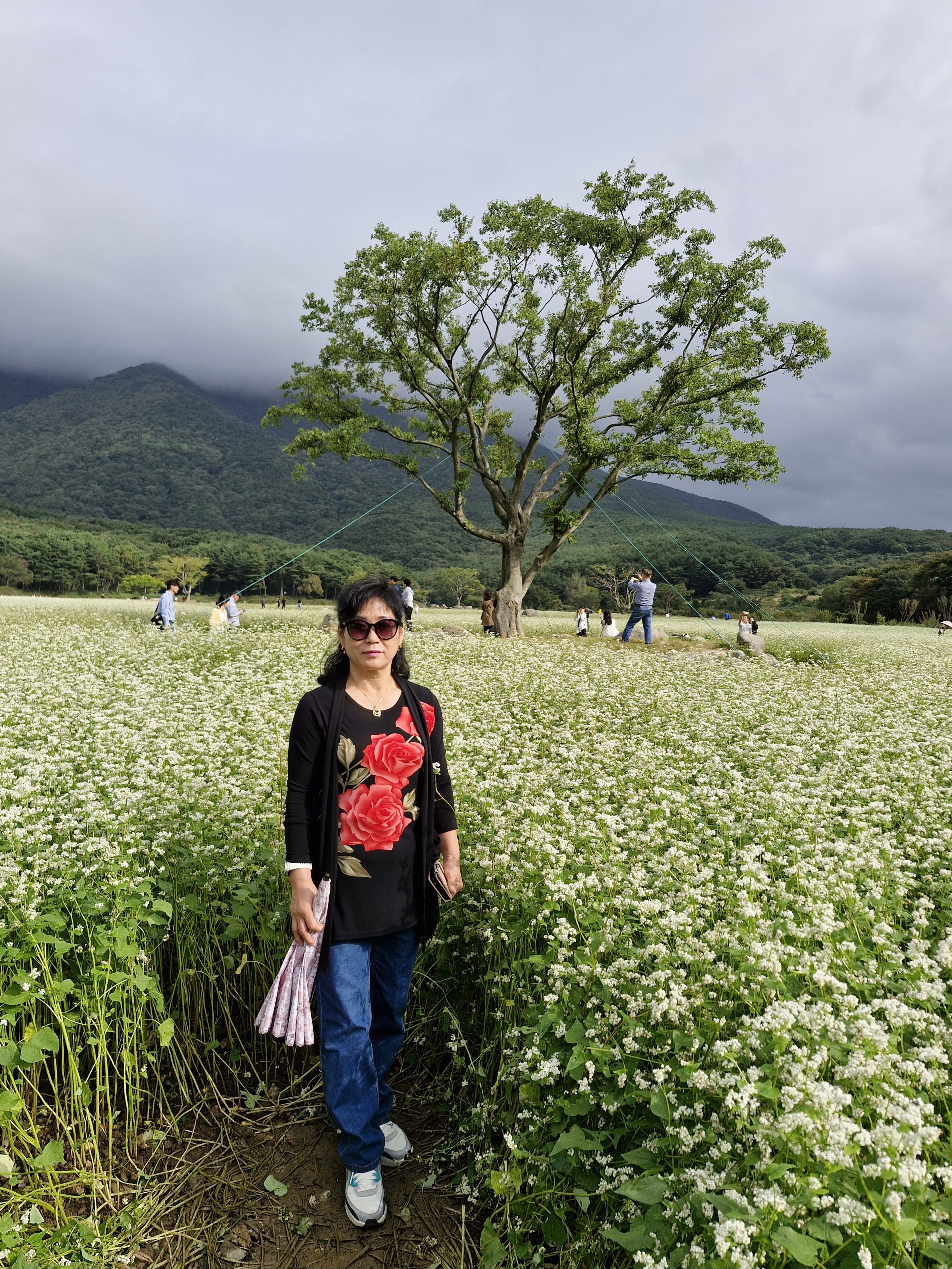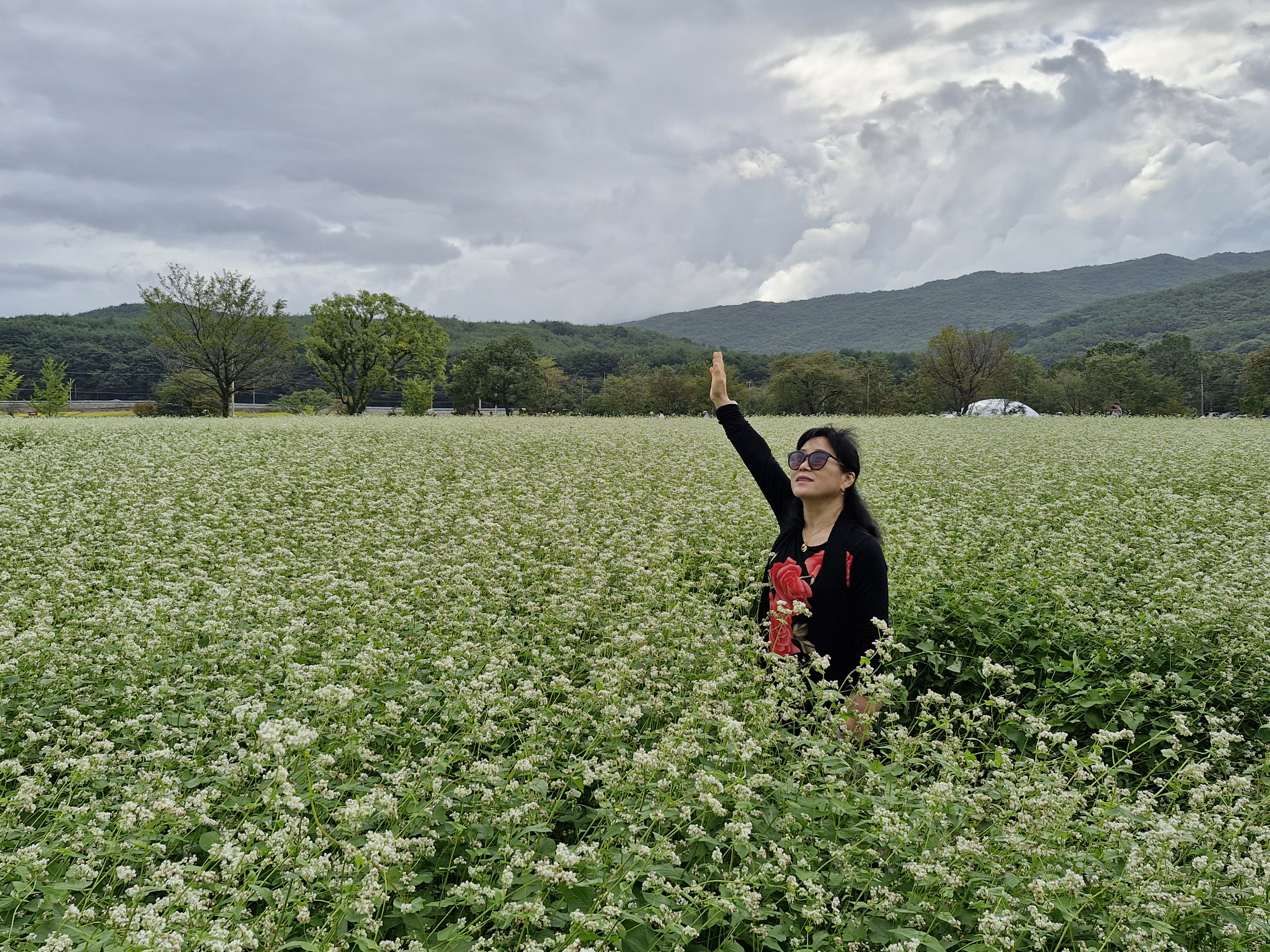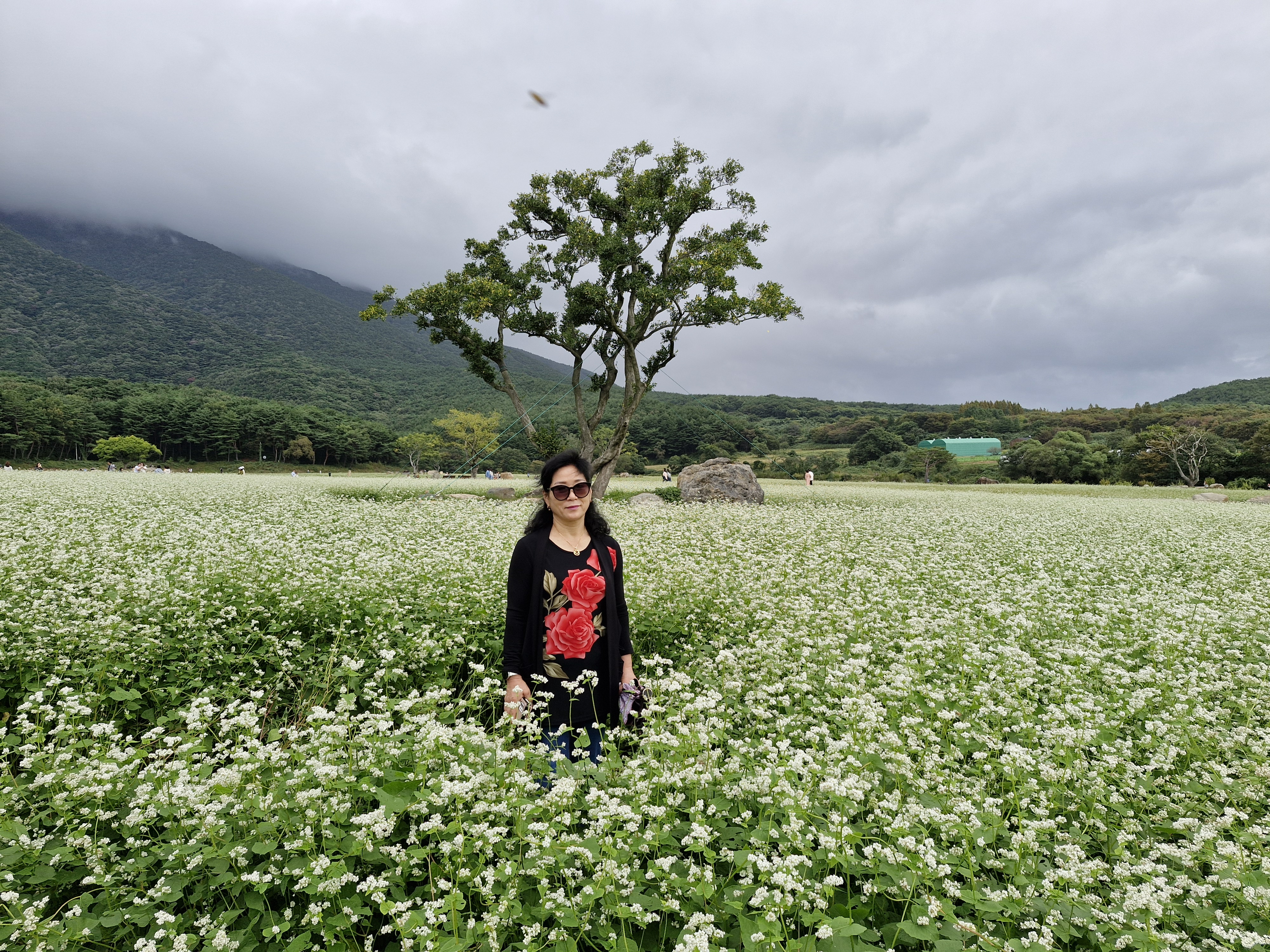 메밀밭 중간중간에 심어진 느티나무가 운치를 더해주고...