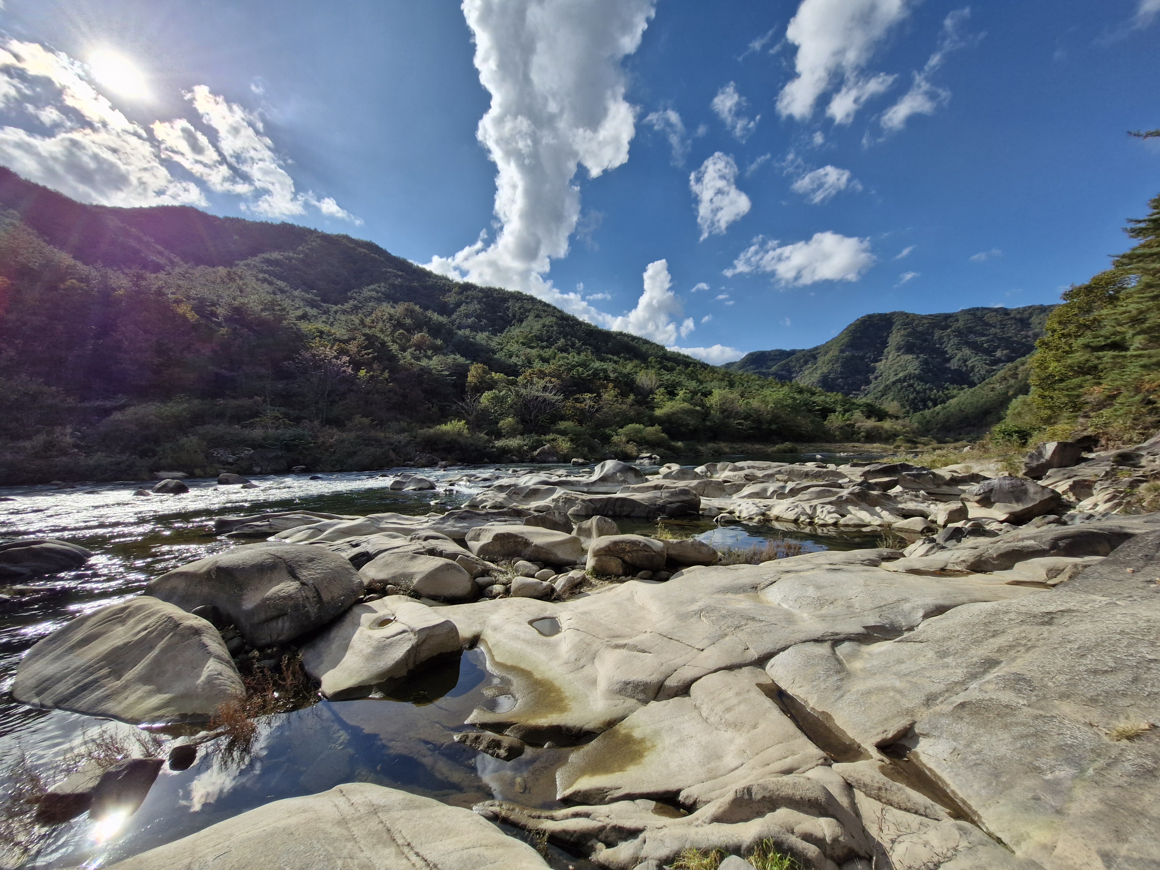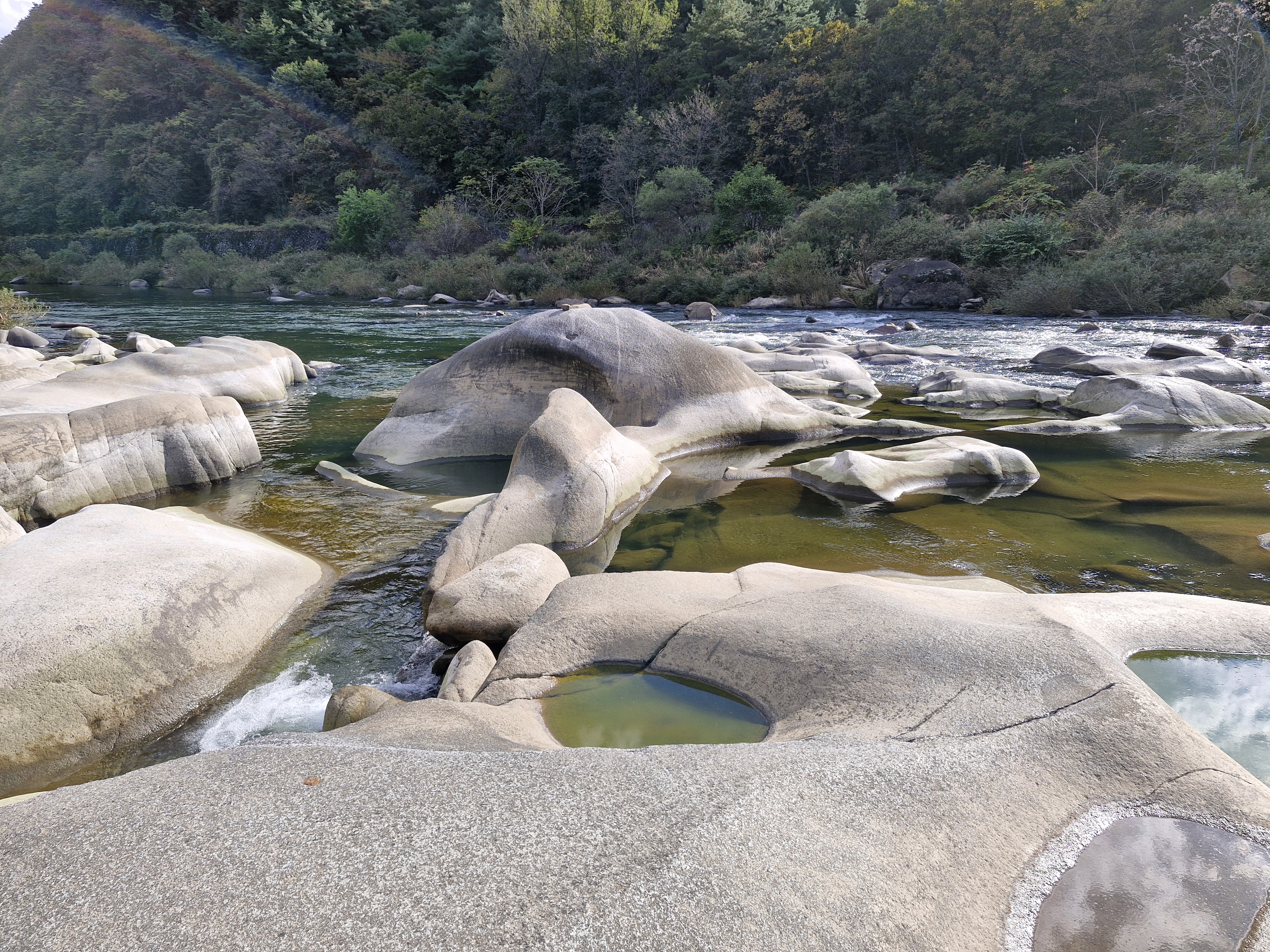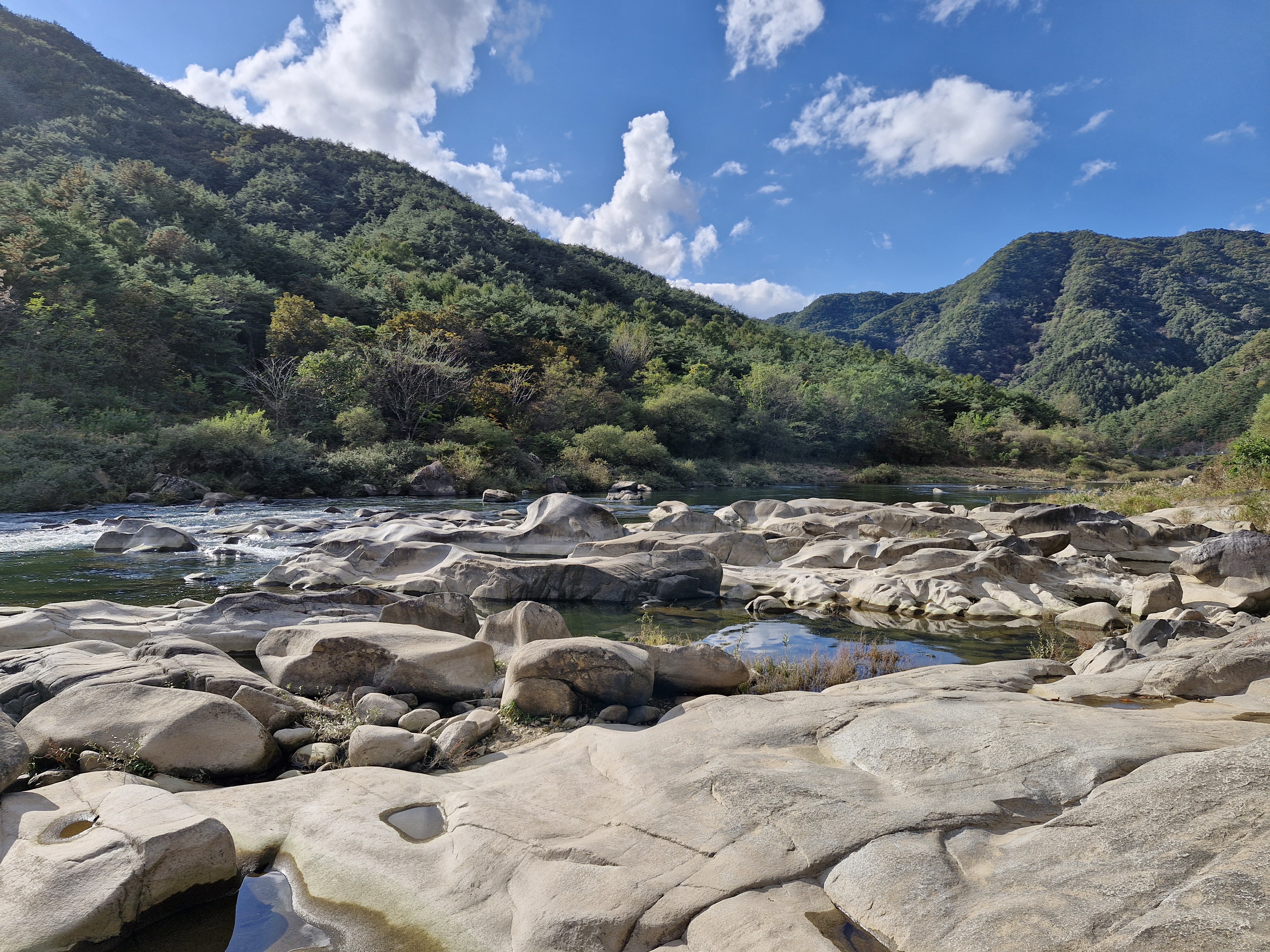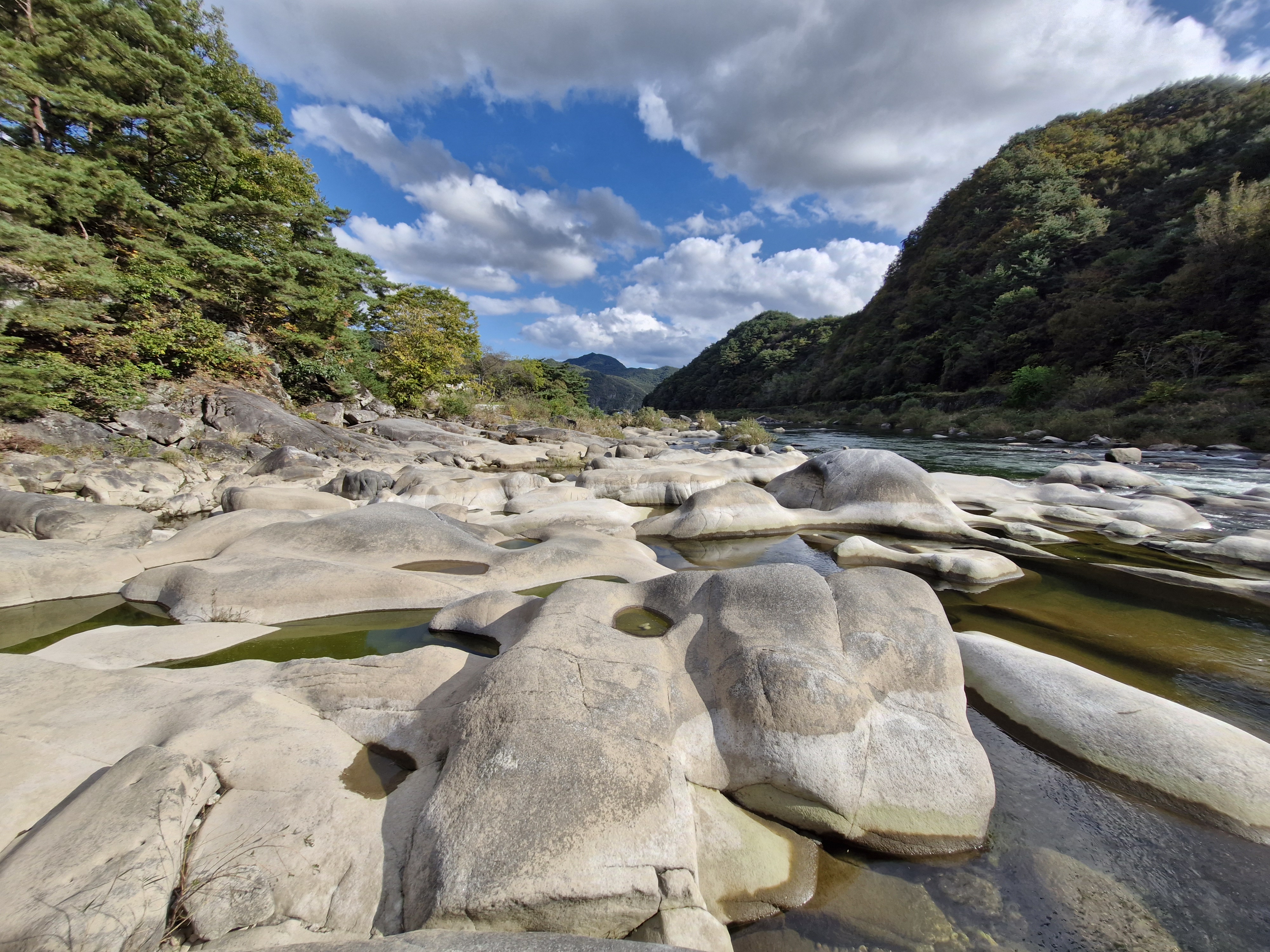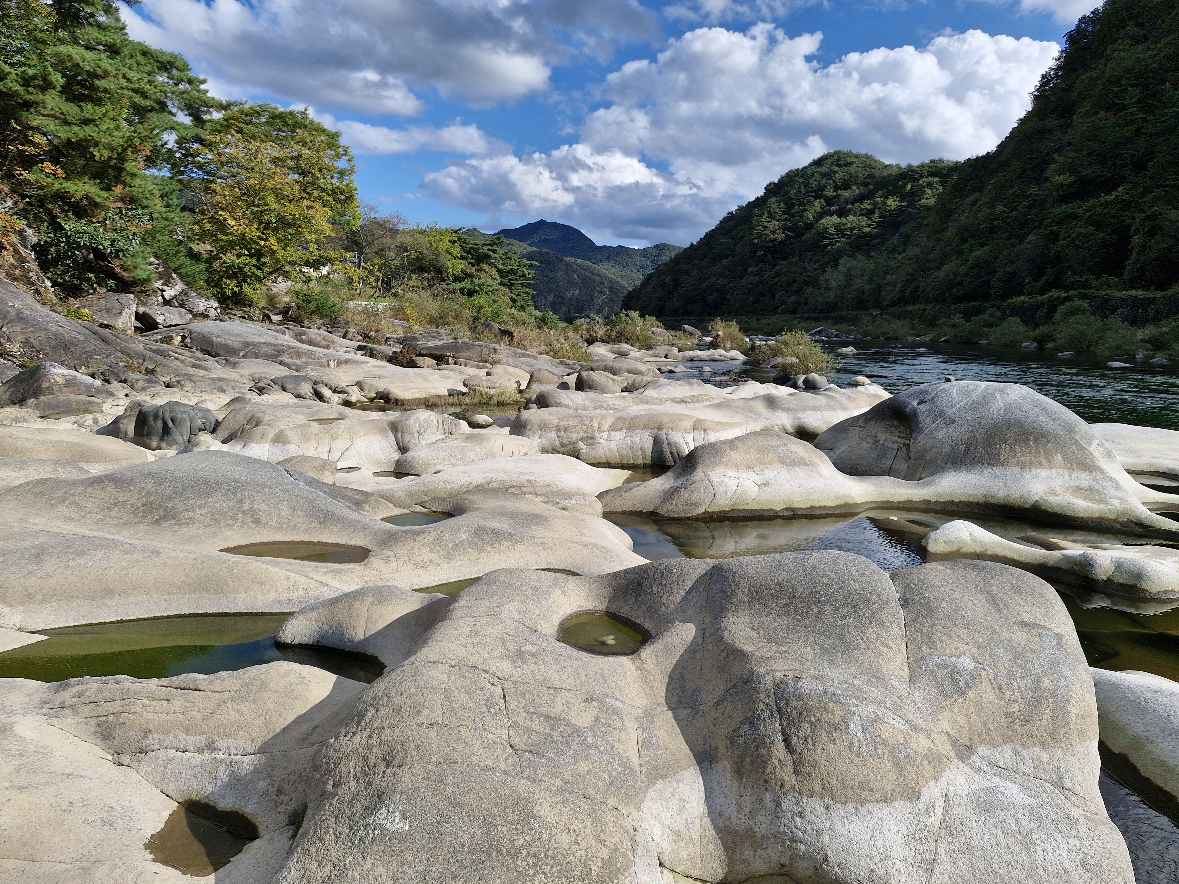 강바닥에 온통 동글동글, 다양한 모양의 바위들이 앉아있다.