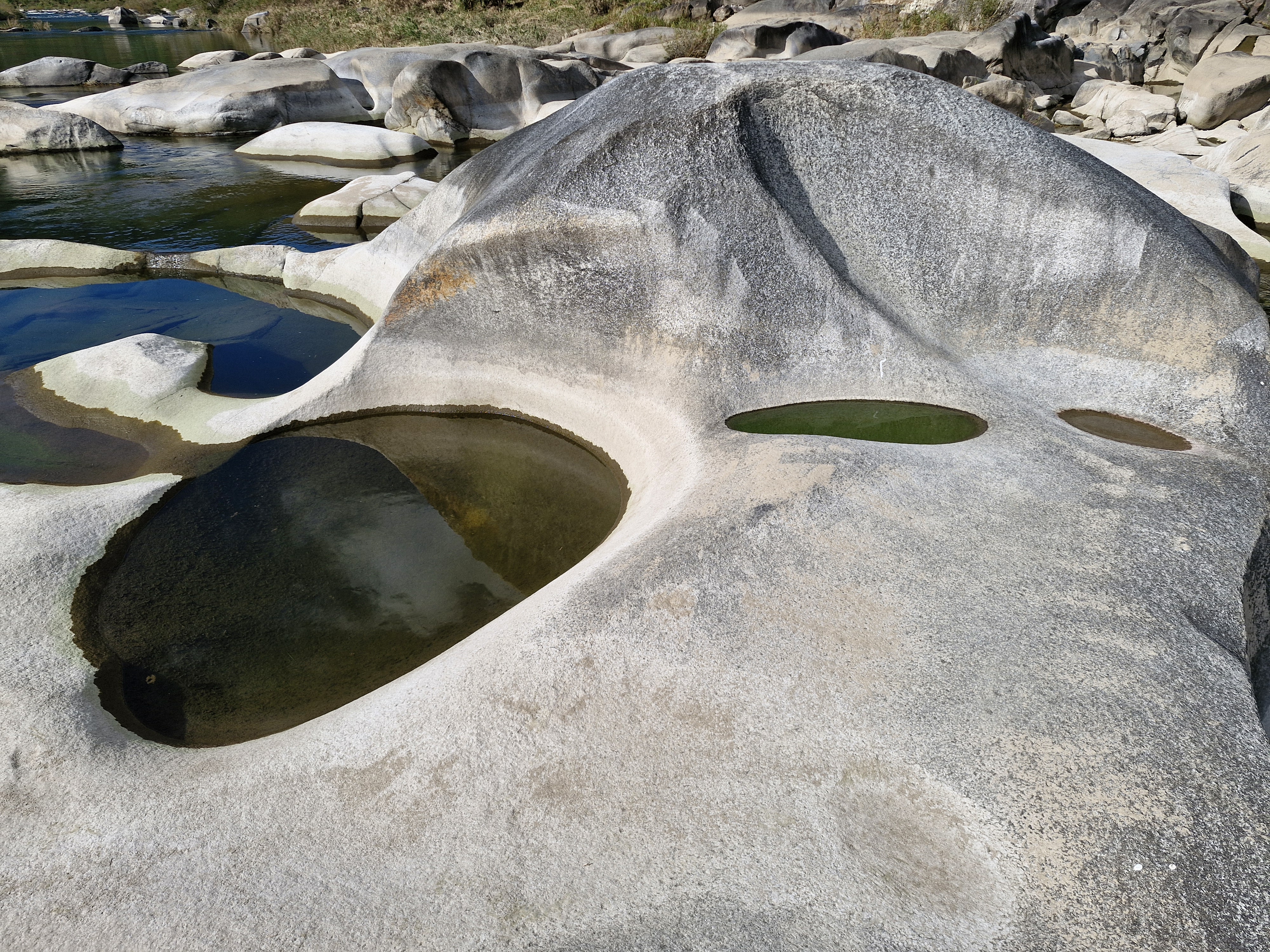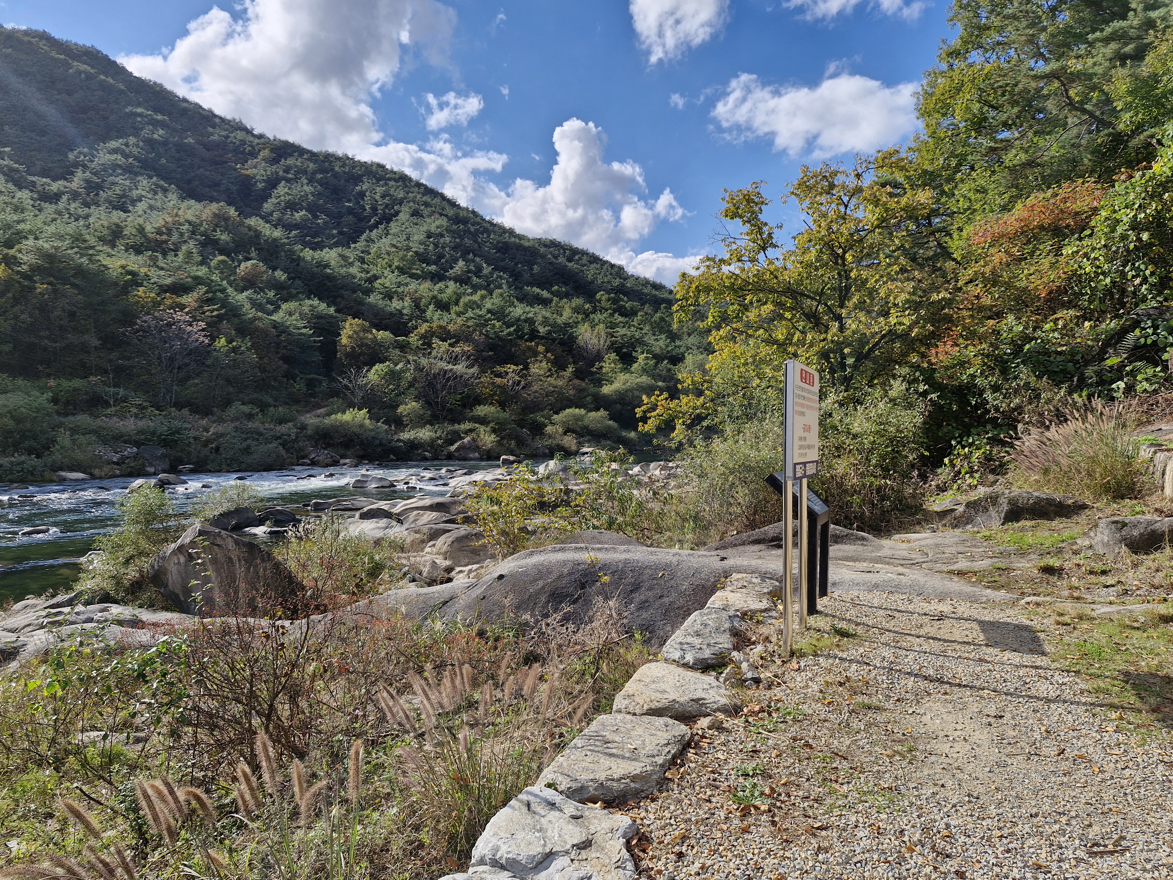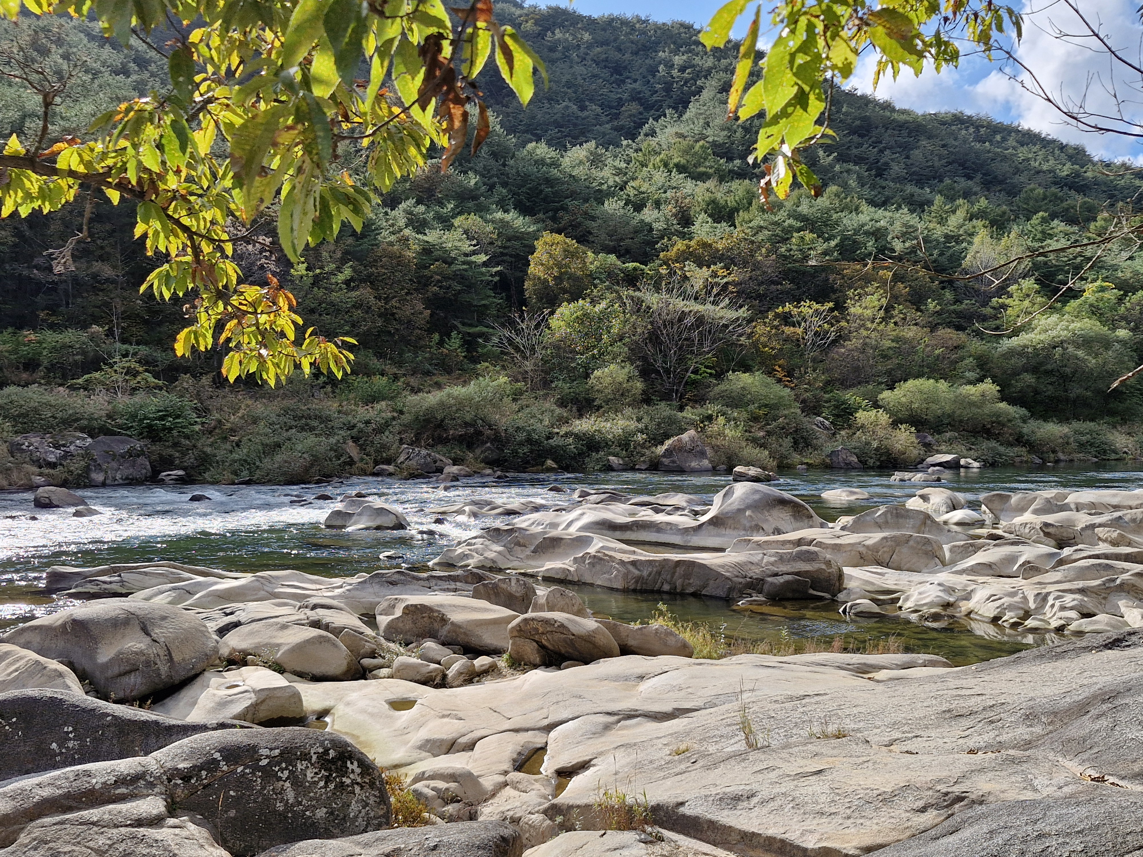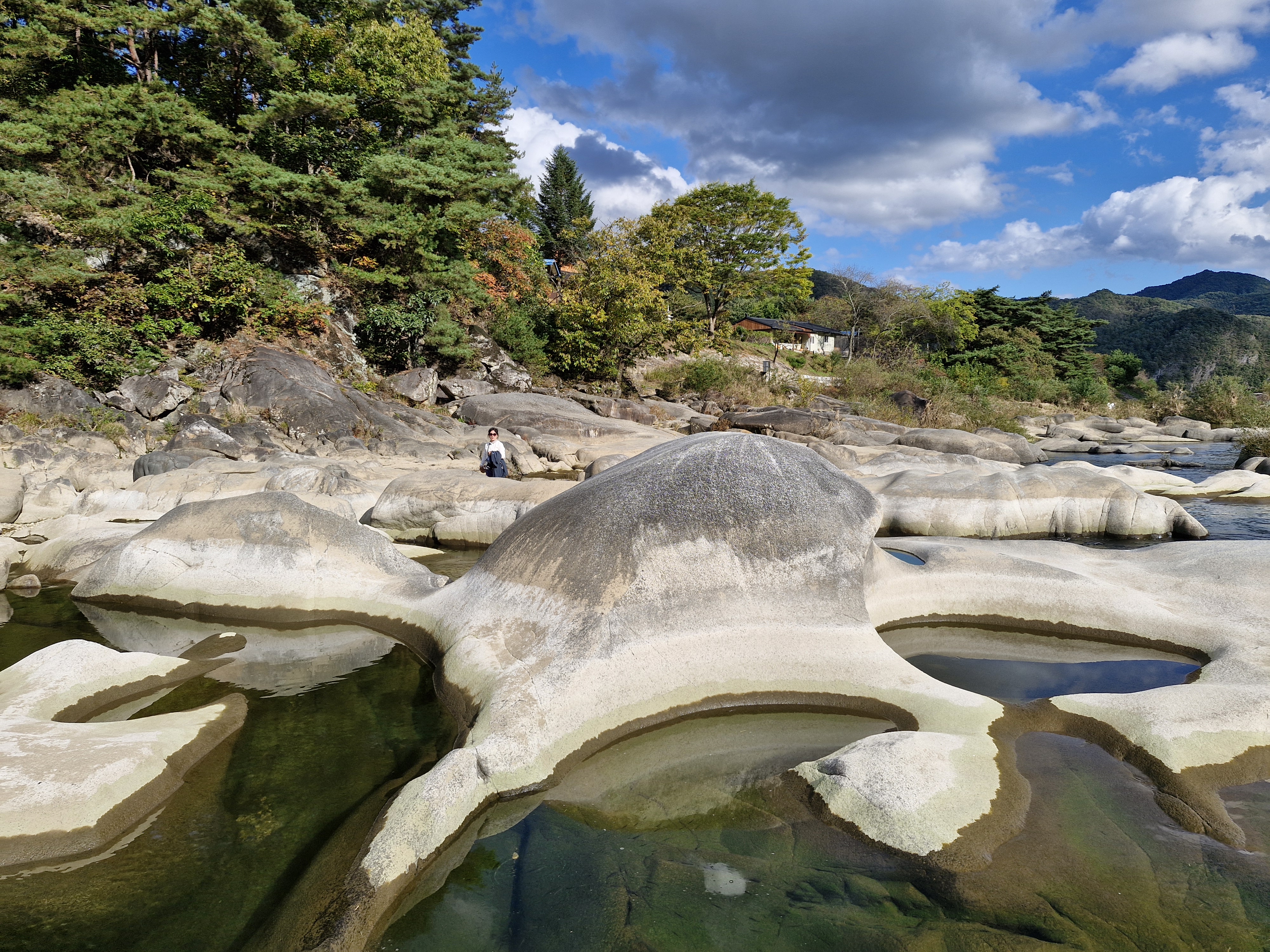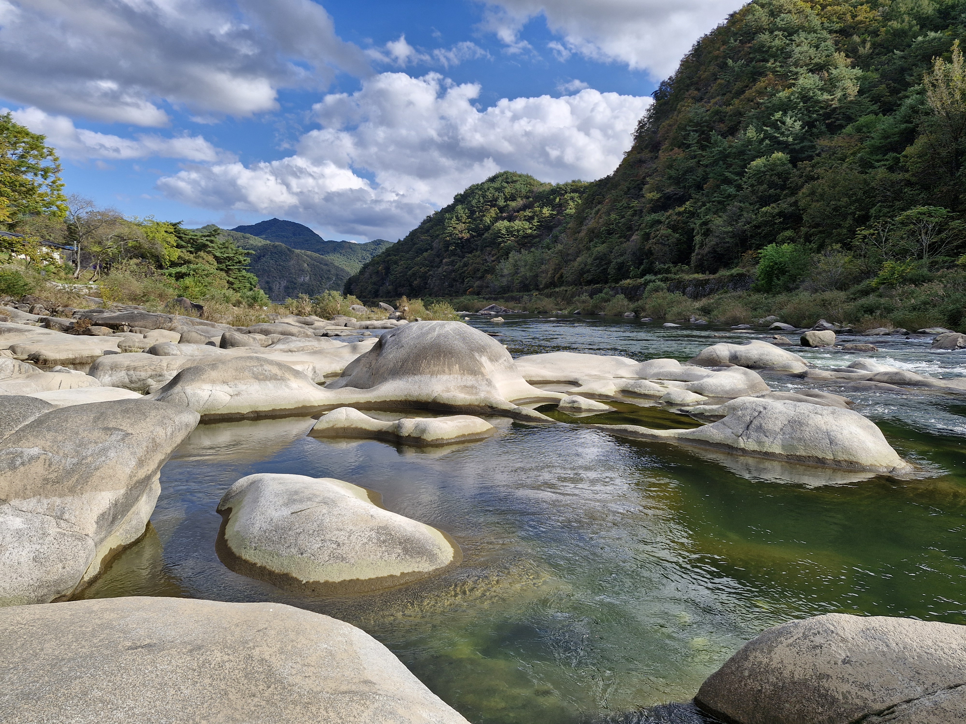 강바닥에 온통 동글동글, 다양한 모양의 바위들이 앉아있다.