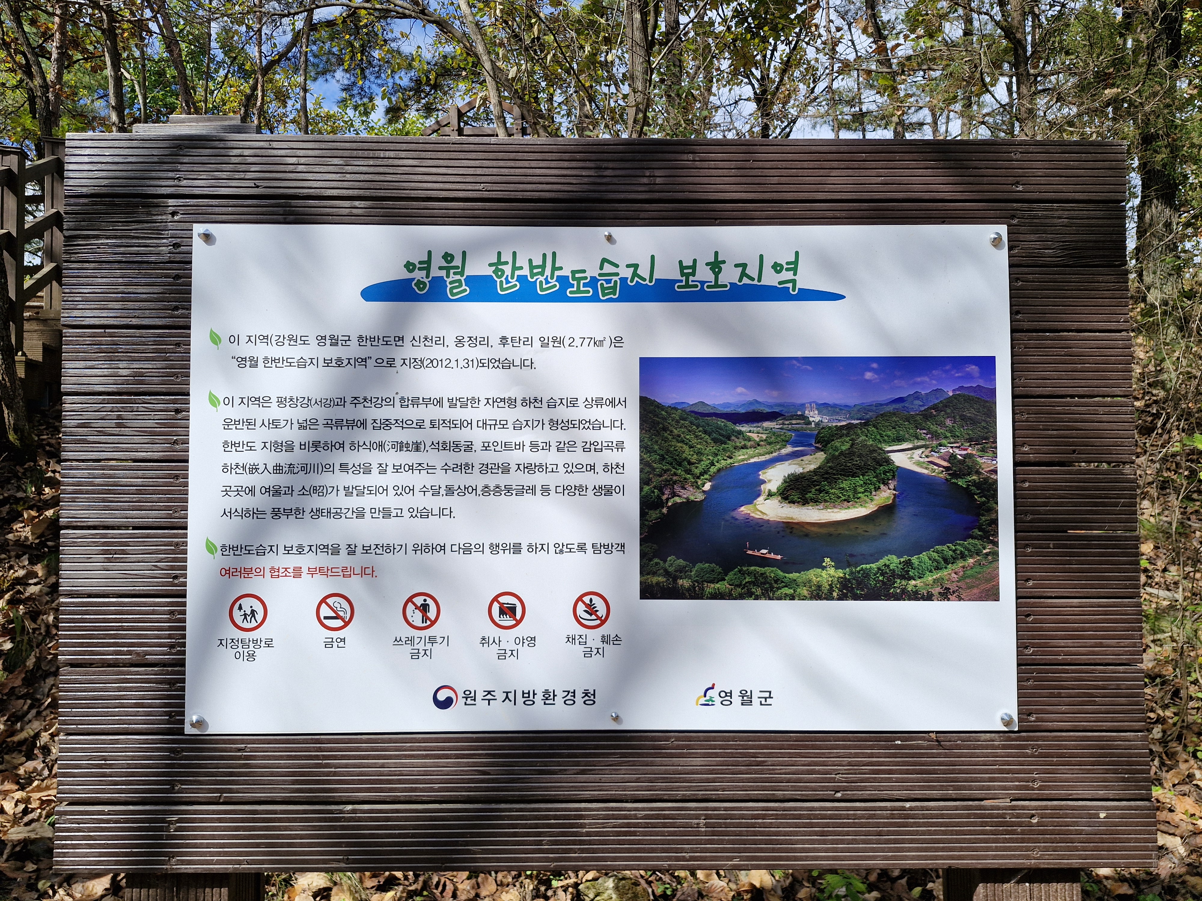 평창에서 영월로 흘러오는 평창강과 주천강이 합수되어 서강이 시작되는 곳에 위치하고 있는 지형으로 한반도를 닮았다.