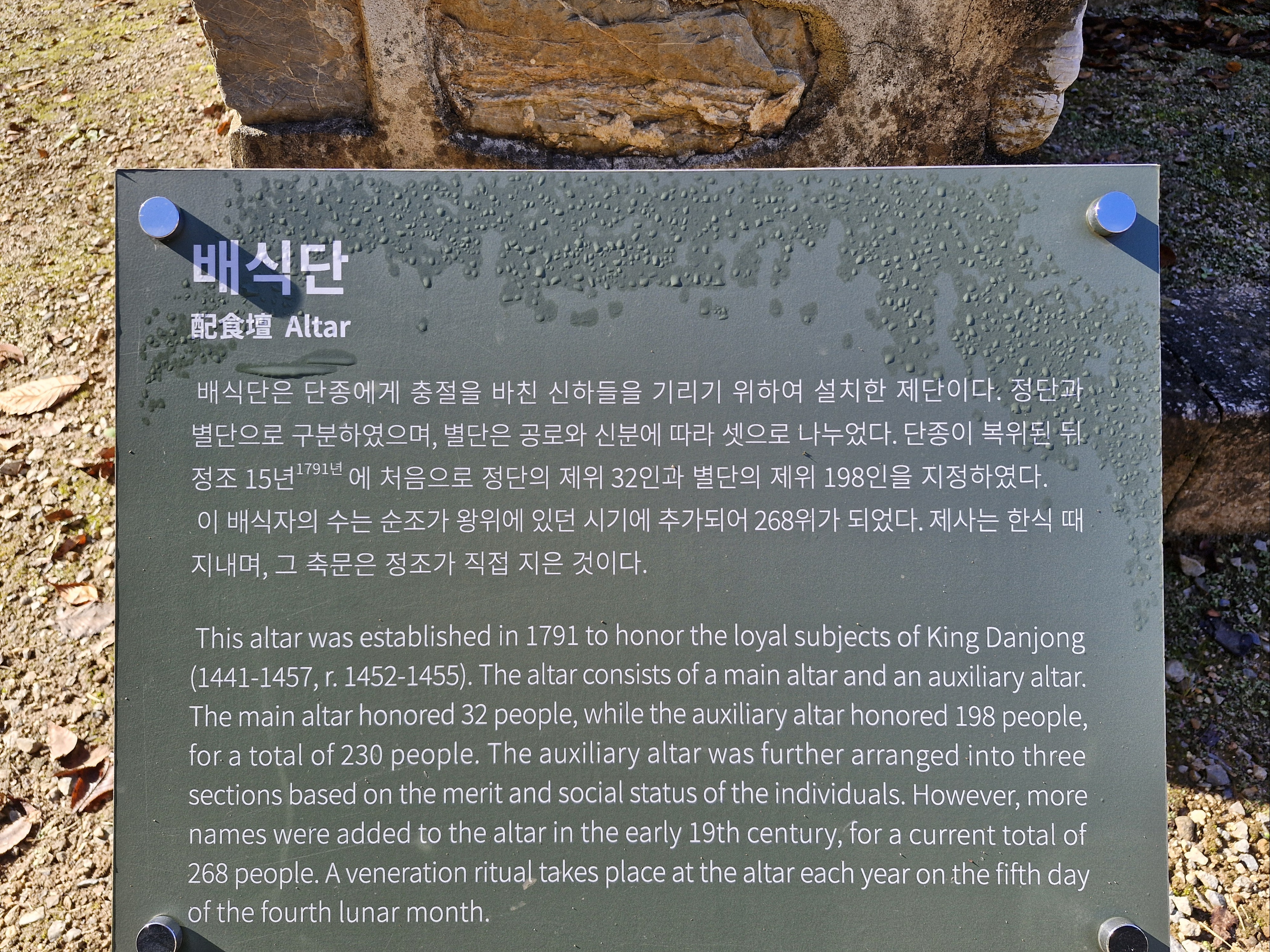 배식단, 단종에게 충절을 바친 신하들을 기리는 제단이라고...