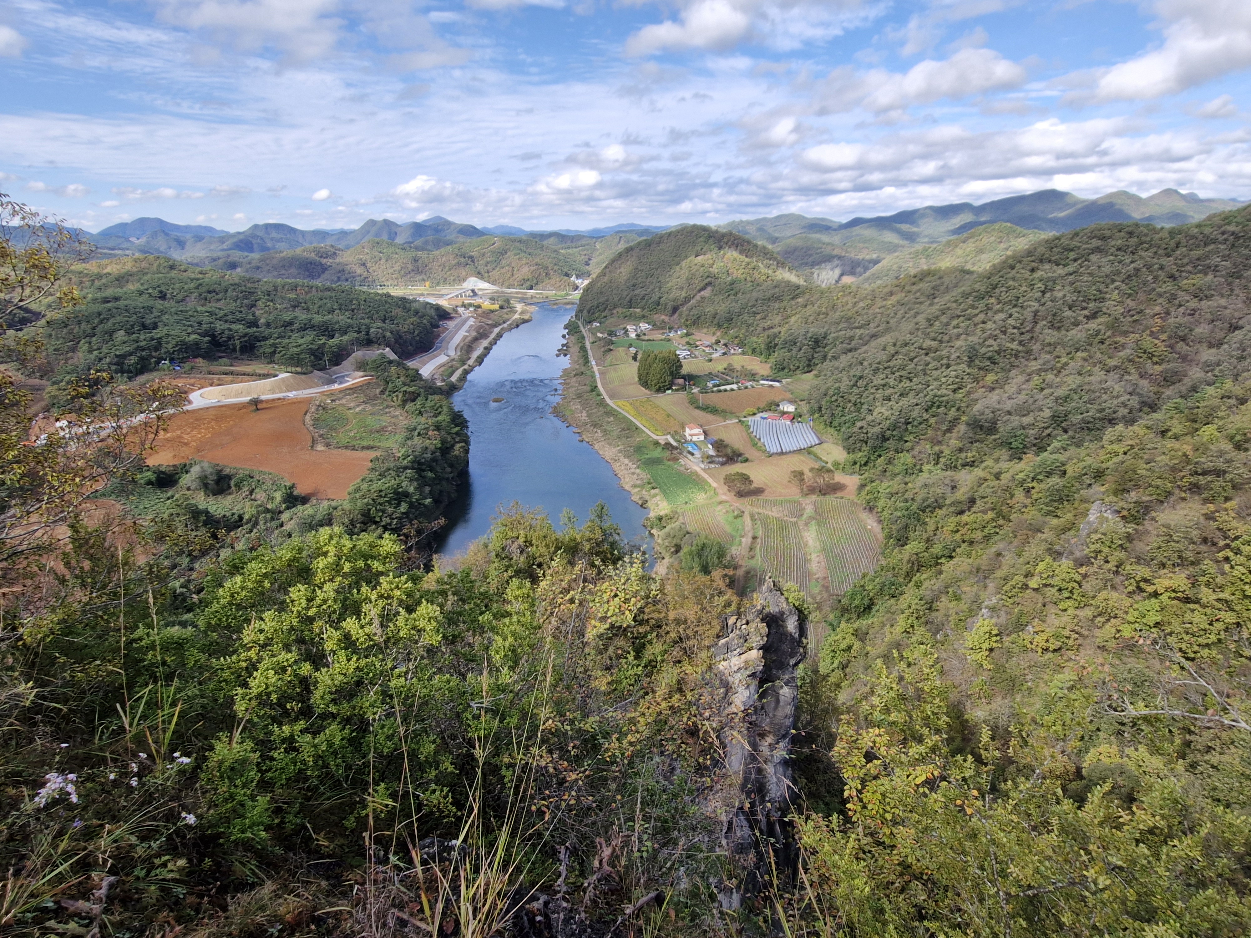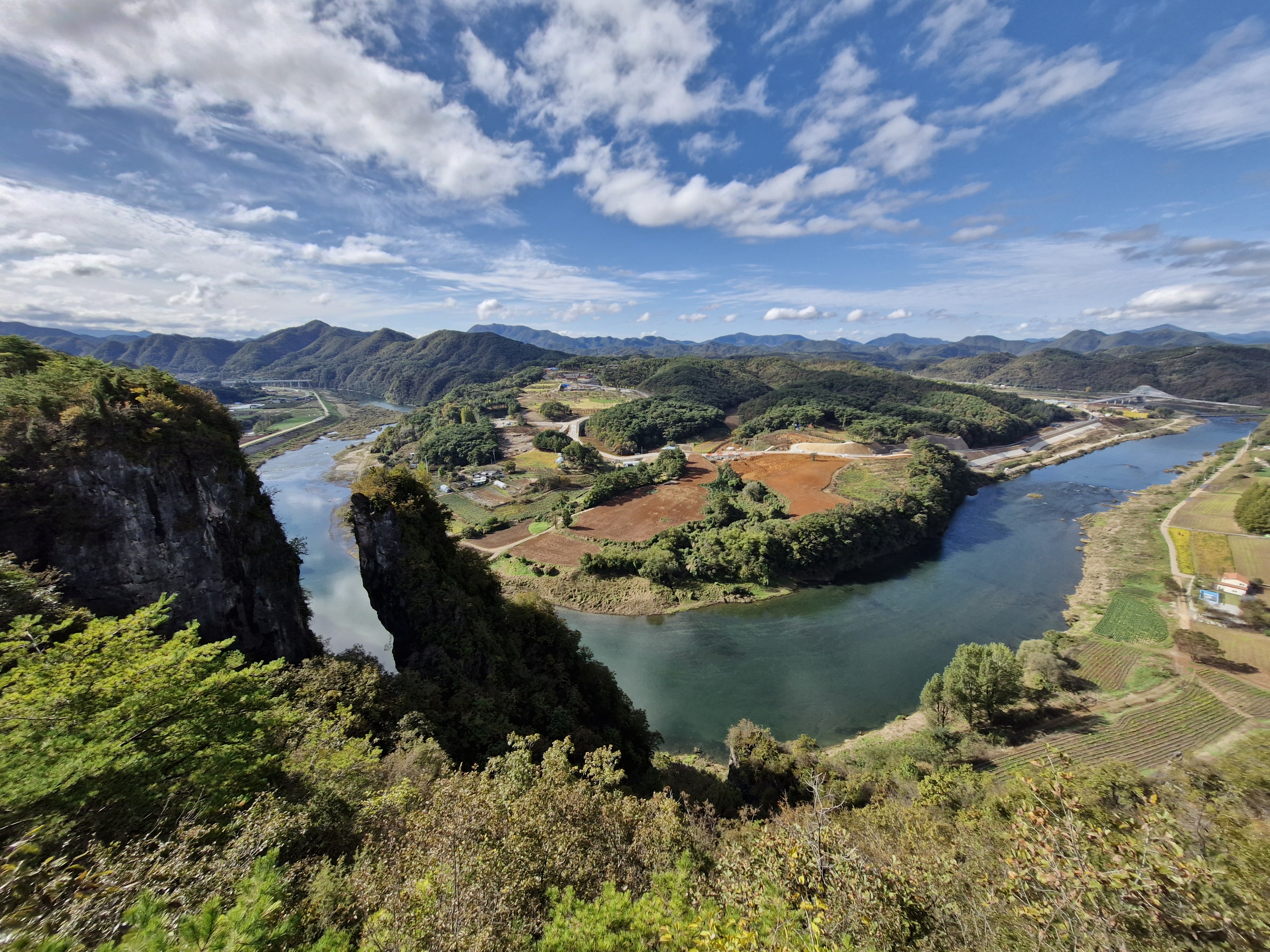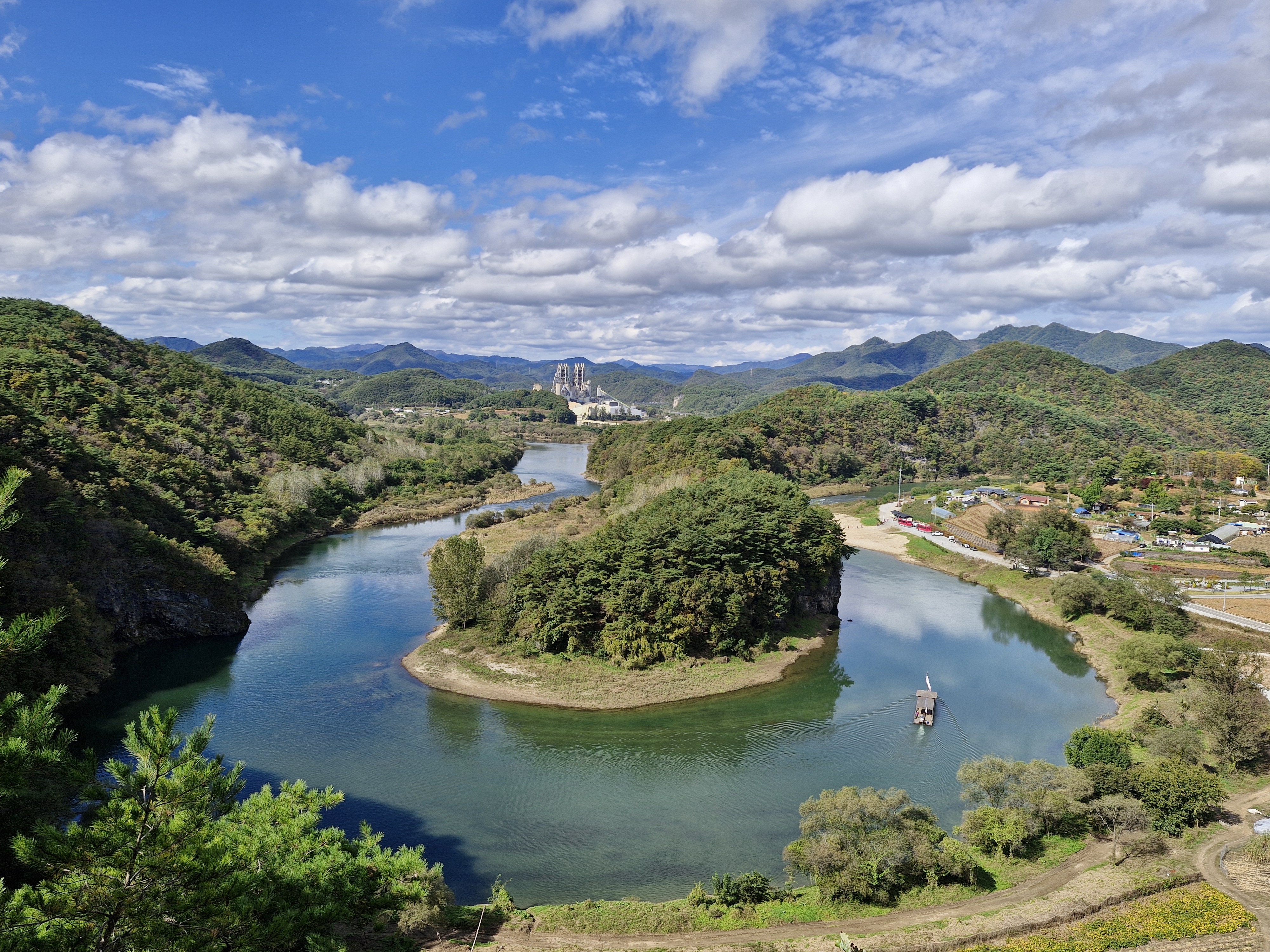 파란 하늘과 뭉게구름이 한반도지형의 아름다움을 더한다.