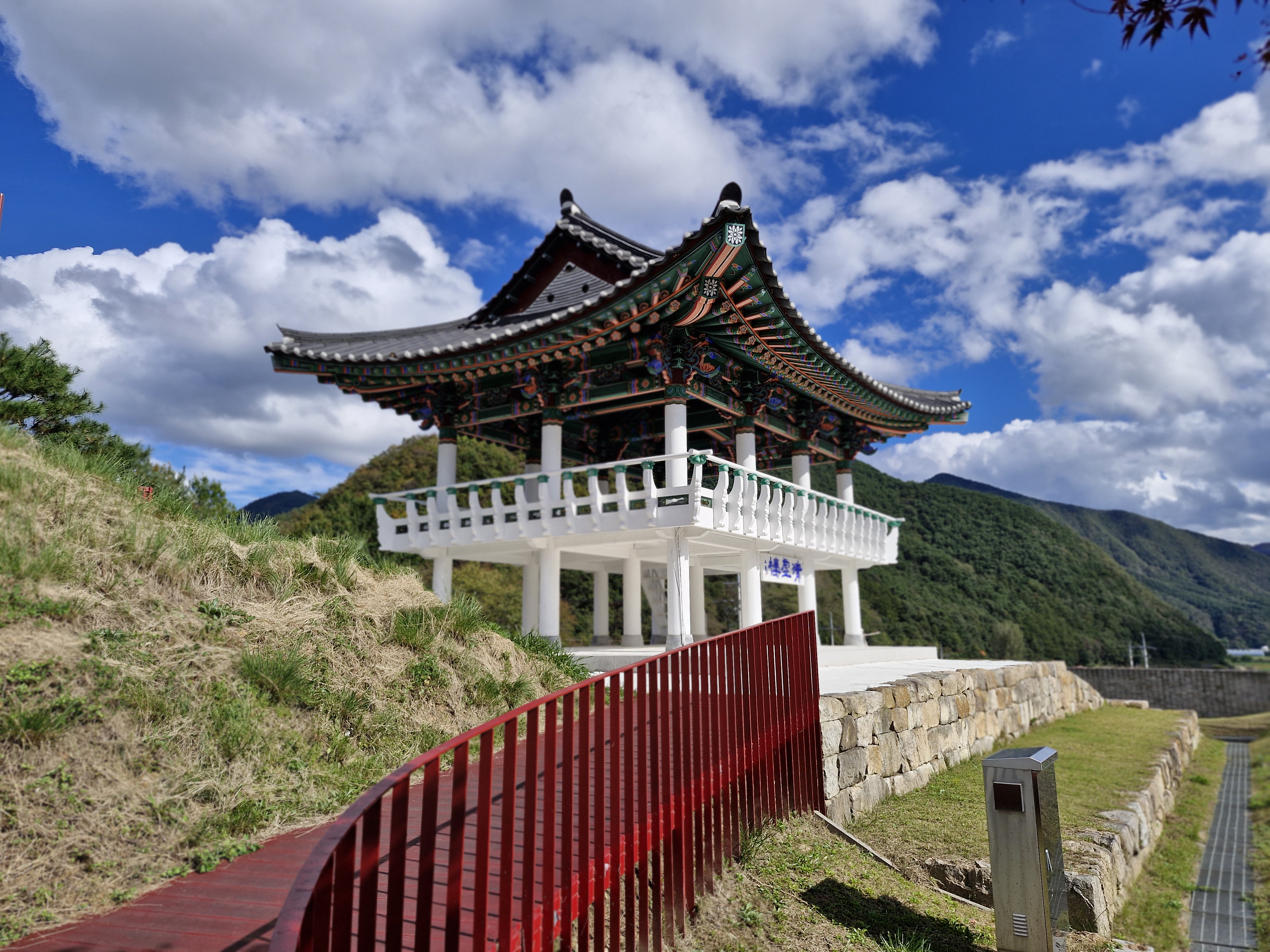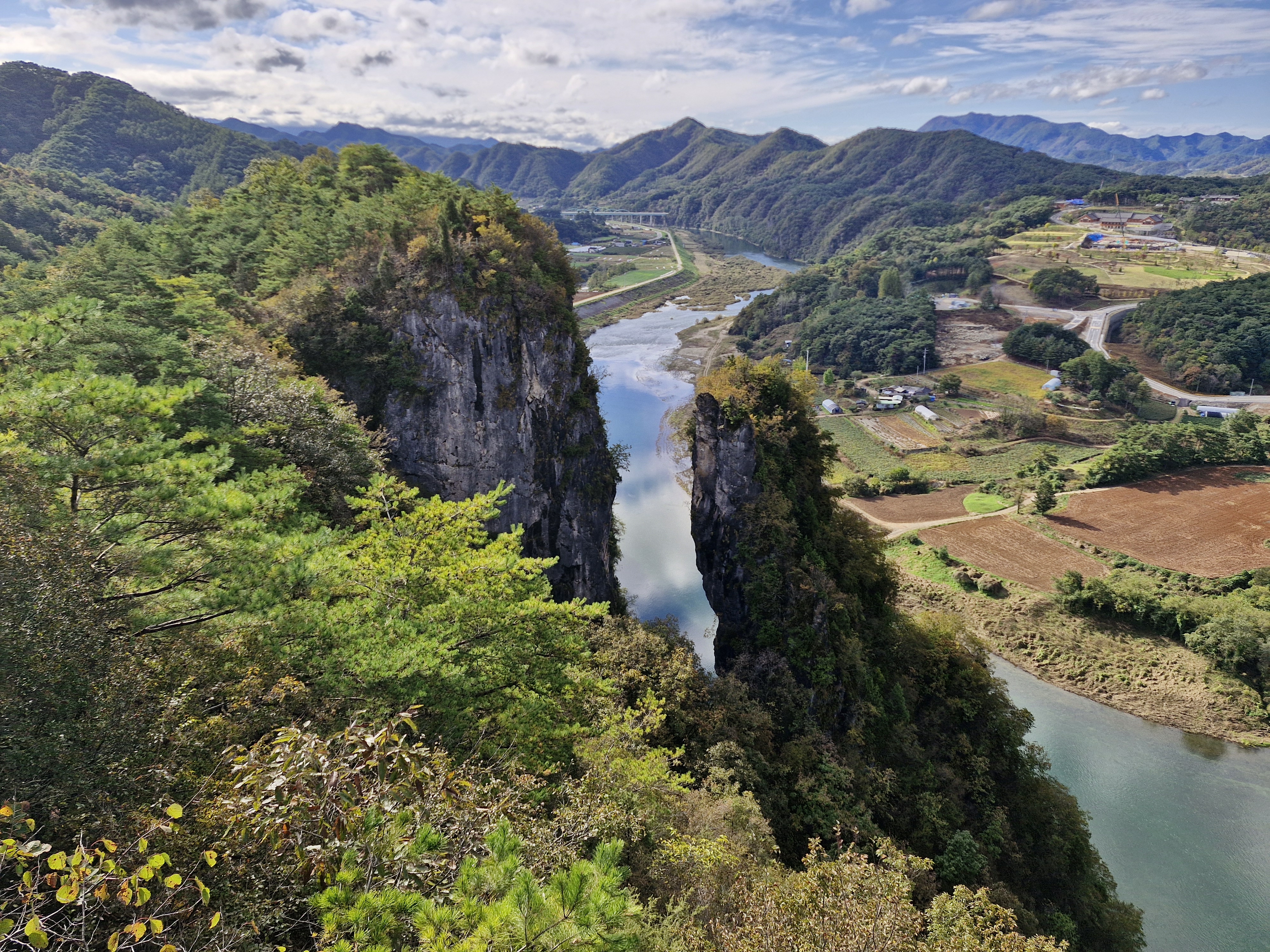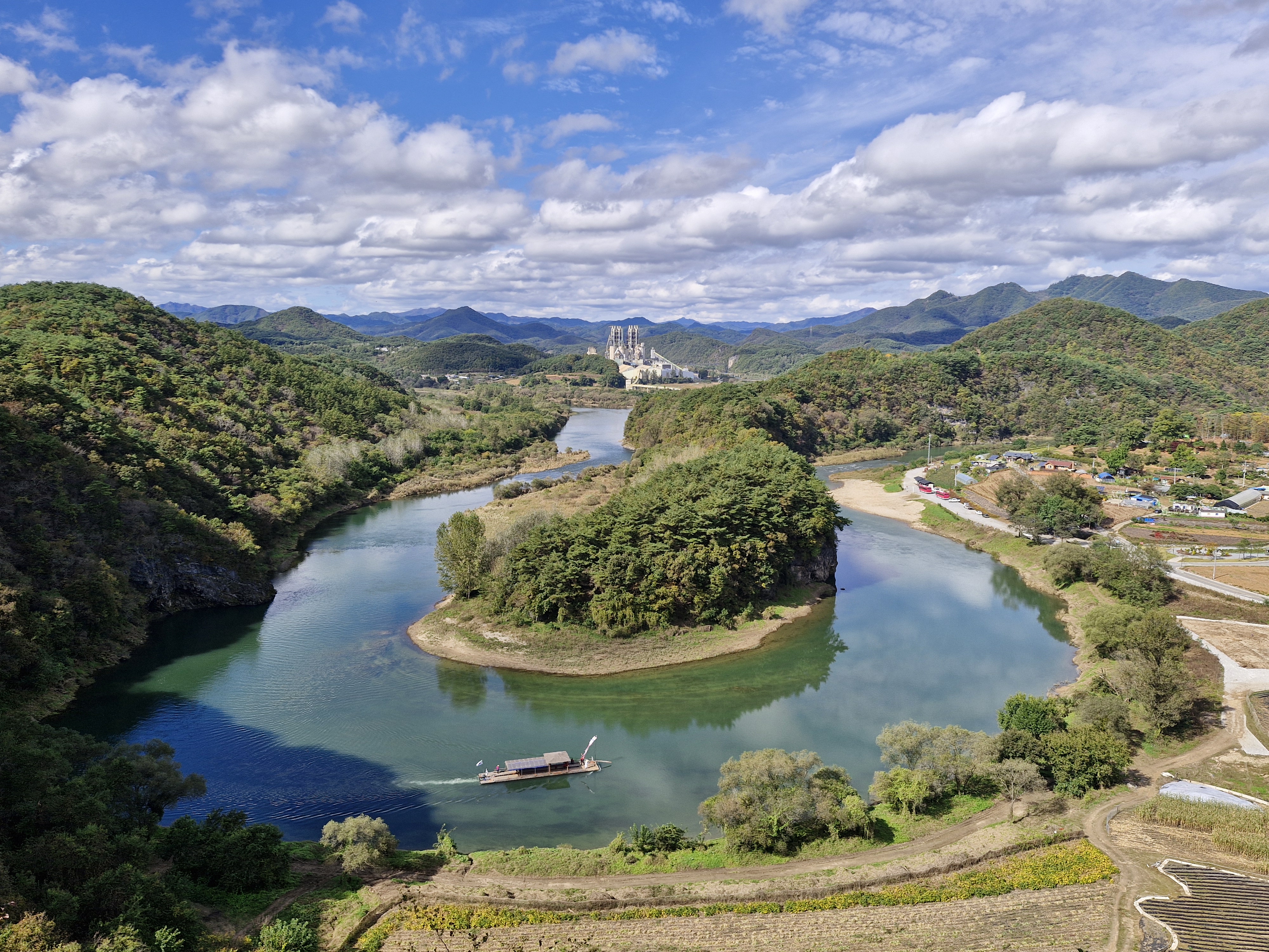 파란 하늘과 뭉게구름이 한반도지형의 아름다움을 더한다.