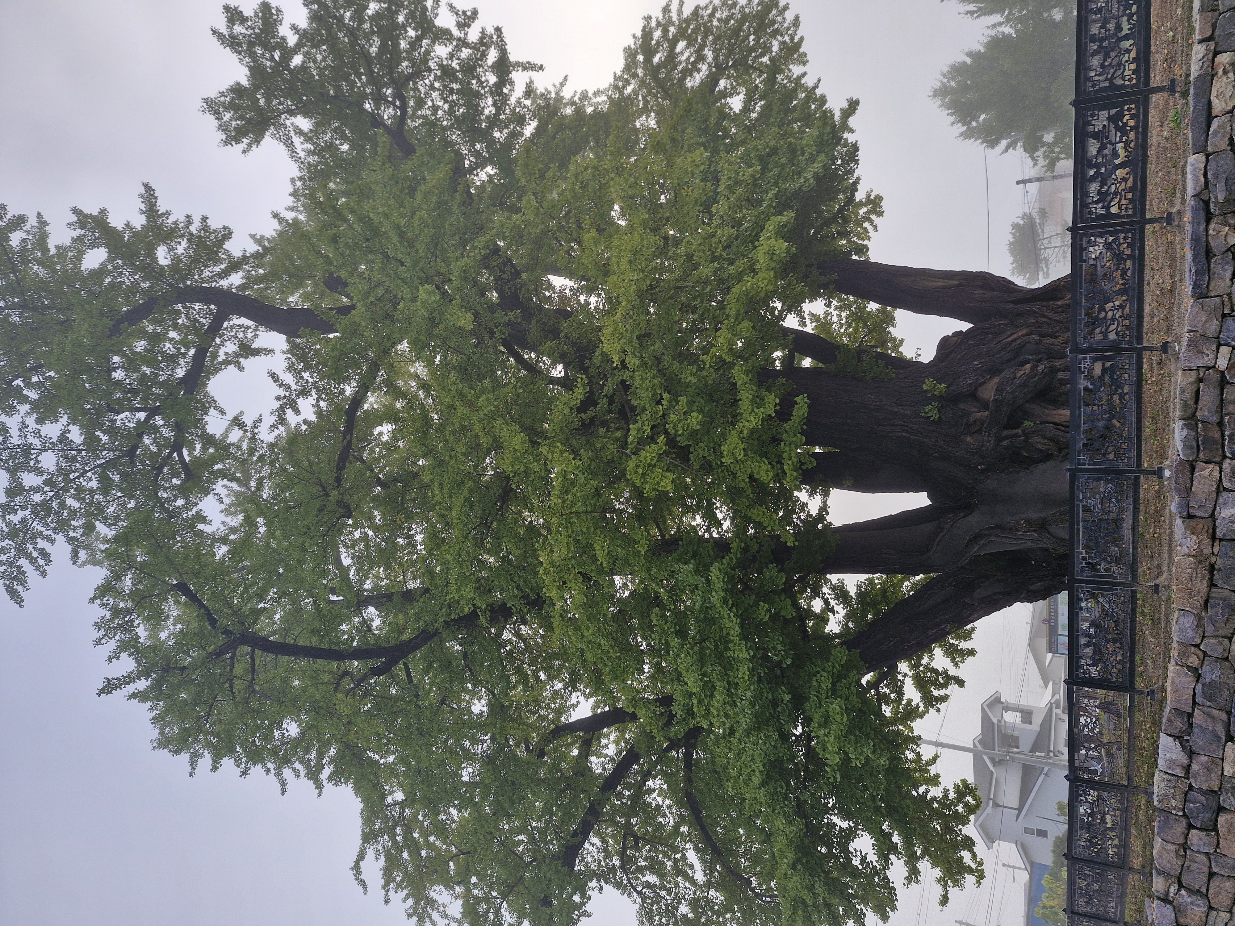자욱한 안갯속에 바라보는 은행나무가 묘한 분위기를 연출하고...