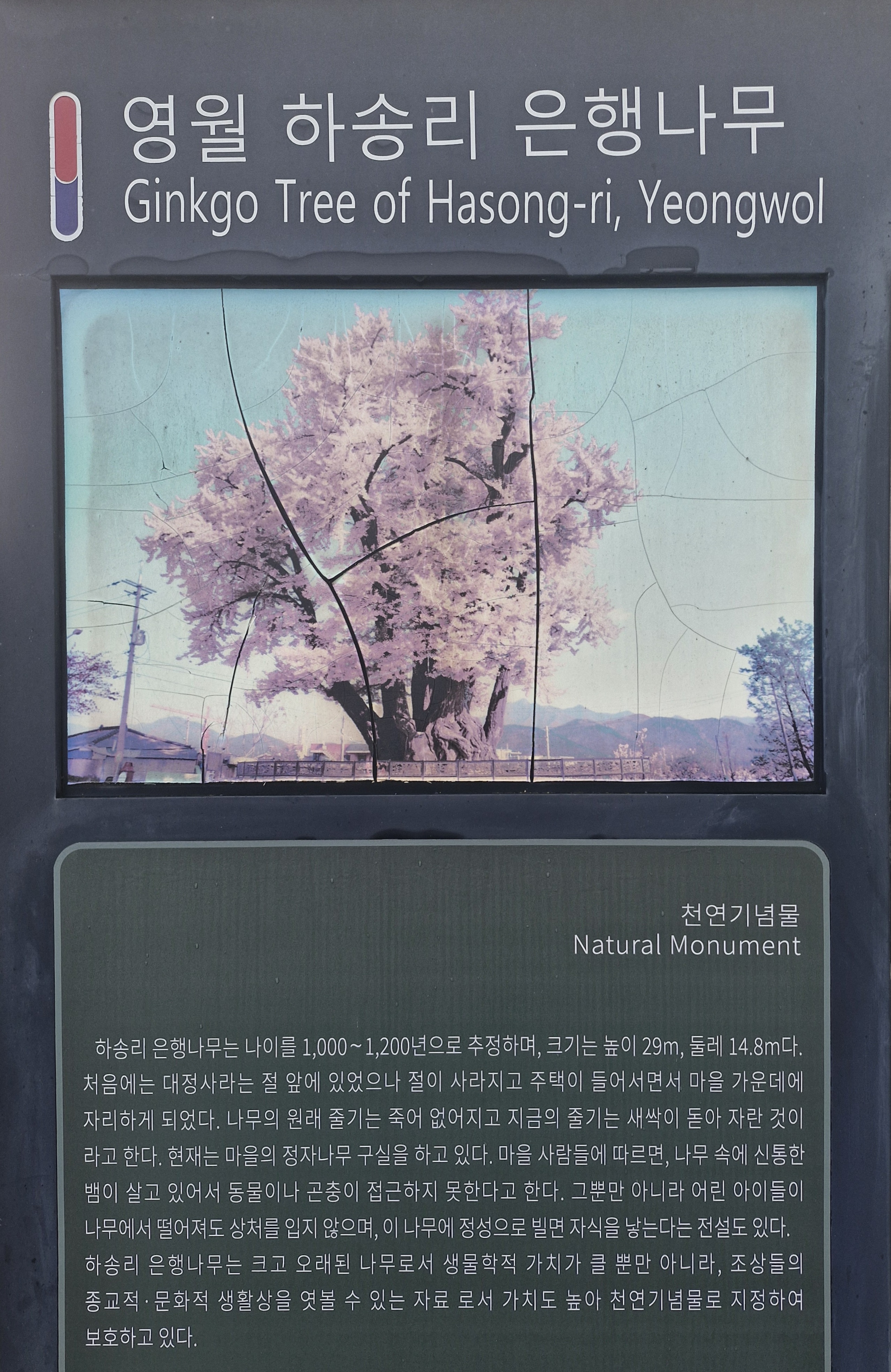 영월 시가지 중심에 위치한 천연기념물로 지정된 은행나무부터 찾는다.