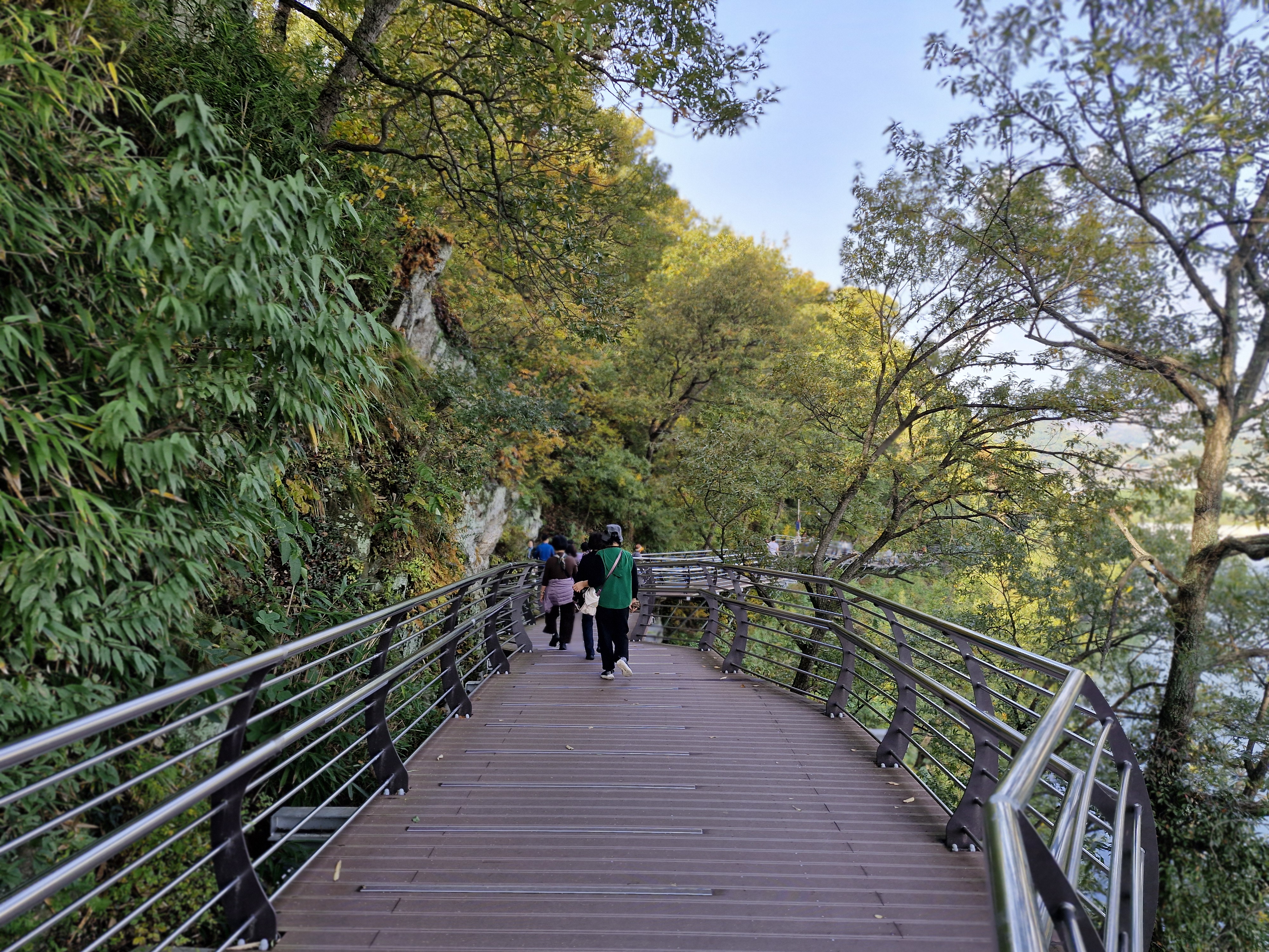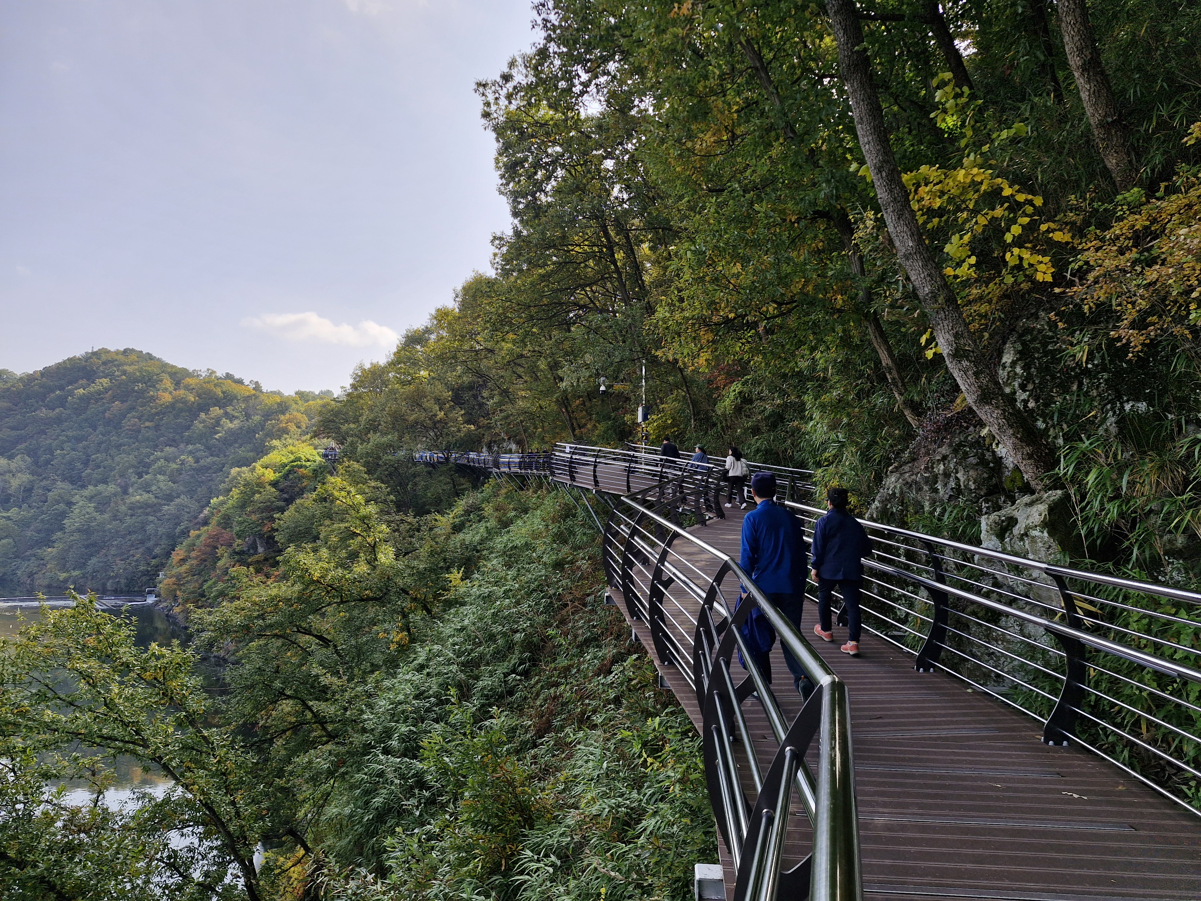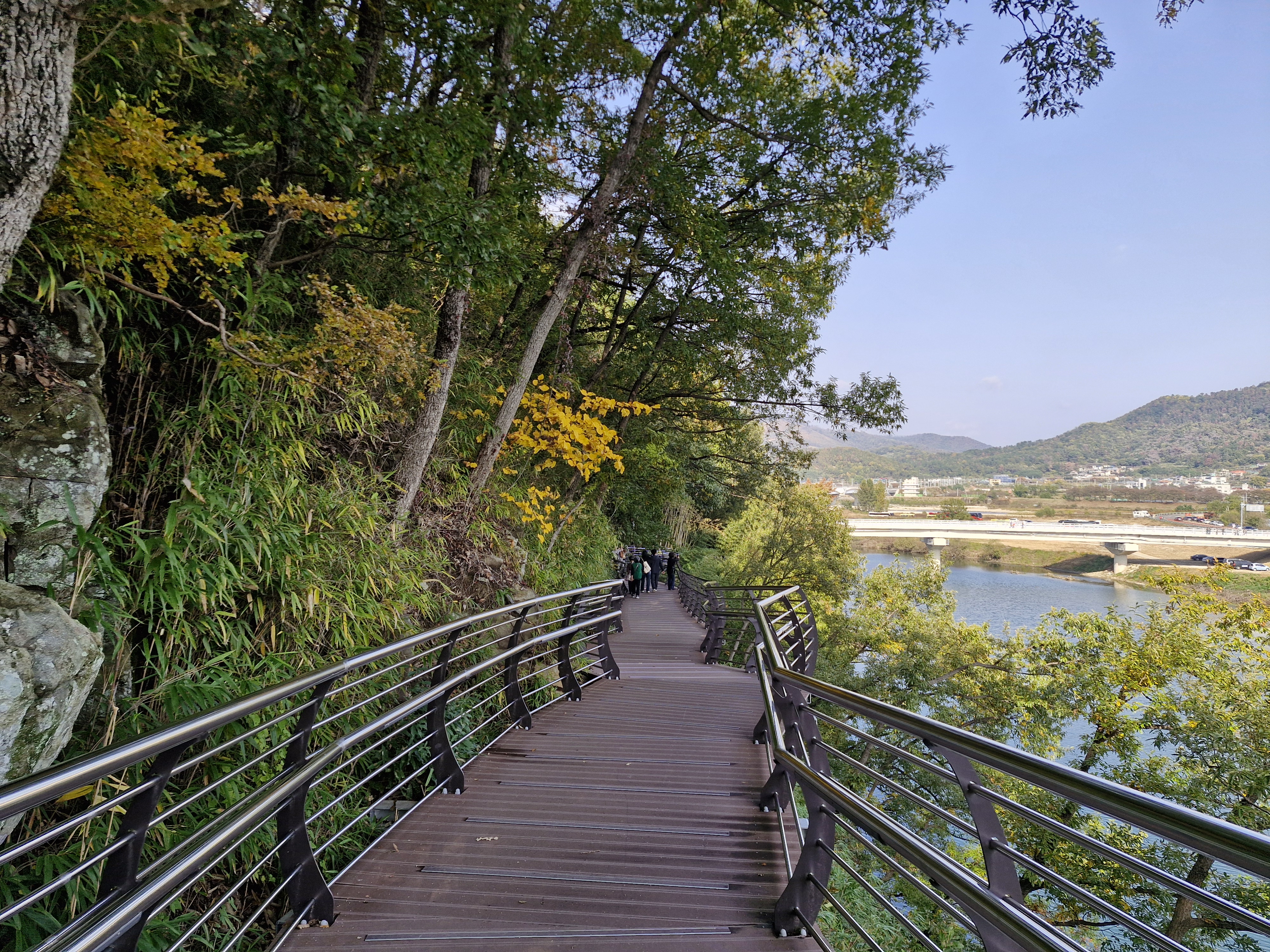 깎아지른 절벽에 설치되어 있어 아래쪽을 보면 아찔함이 느껴지고 깨끗한 밀양강에 노니는 잉어까지 볼 수 있었다.