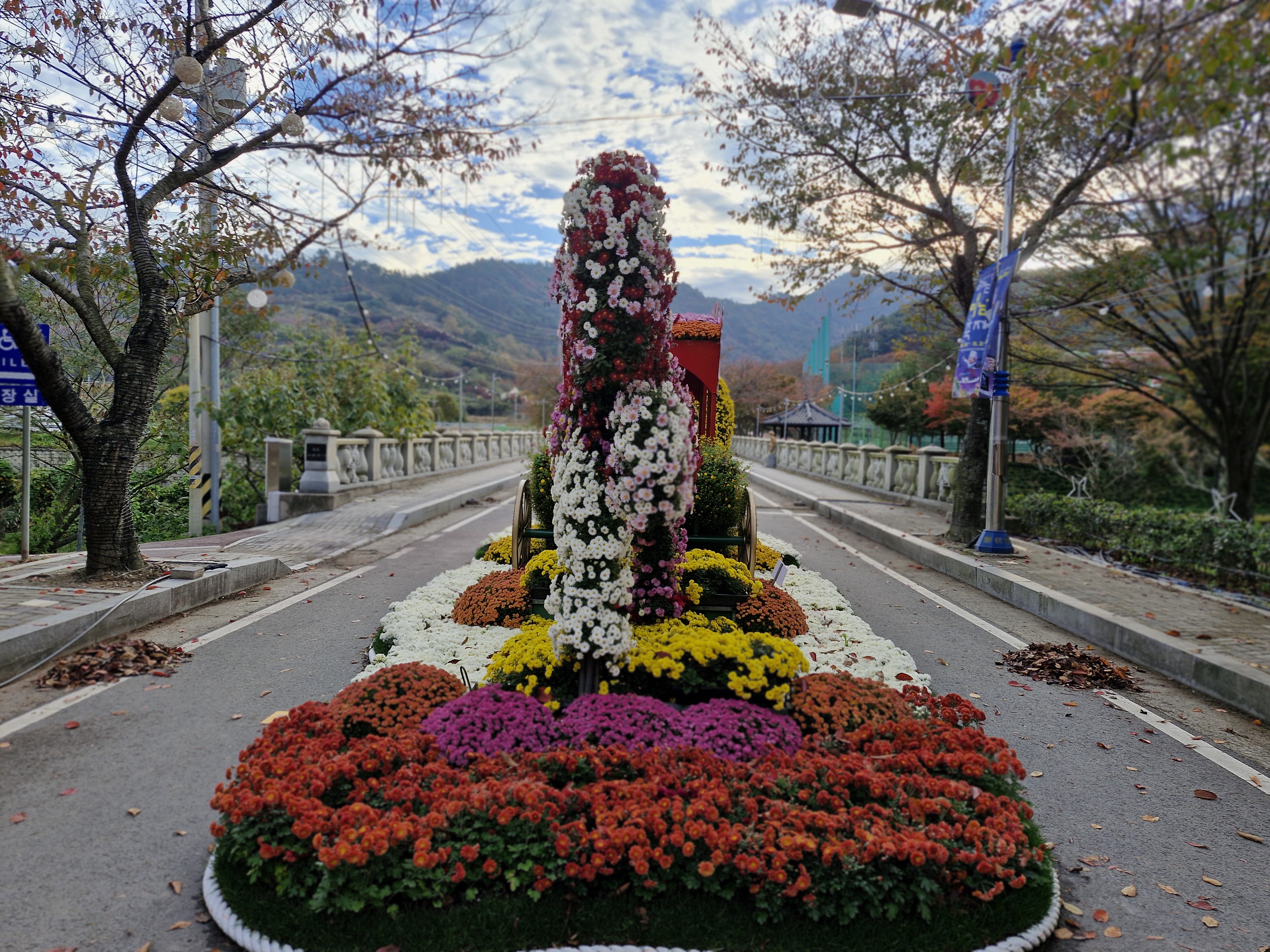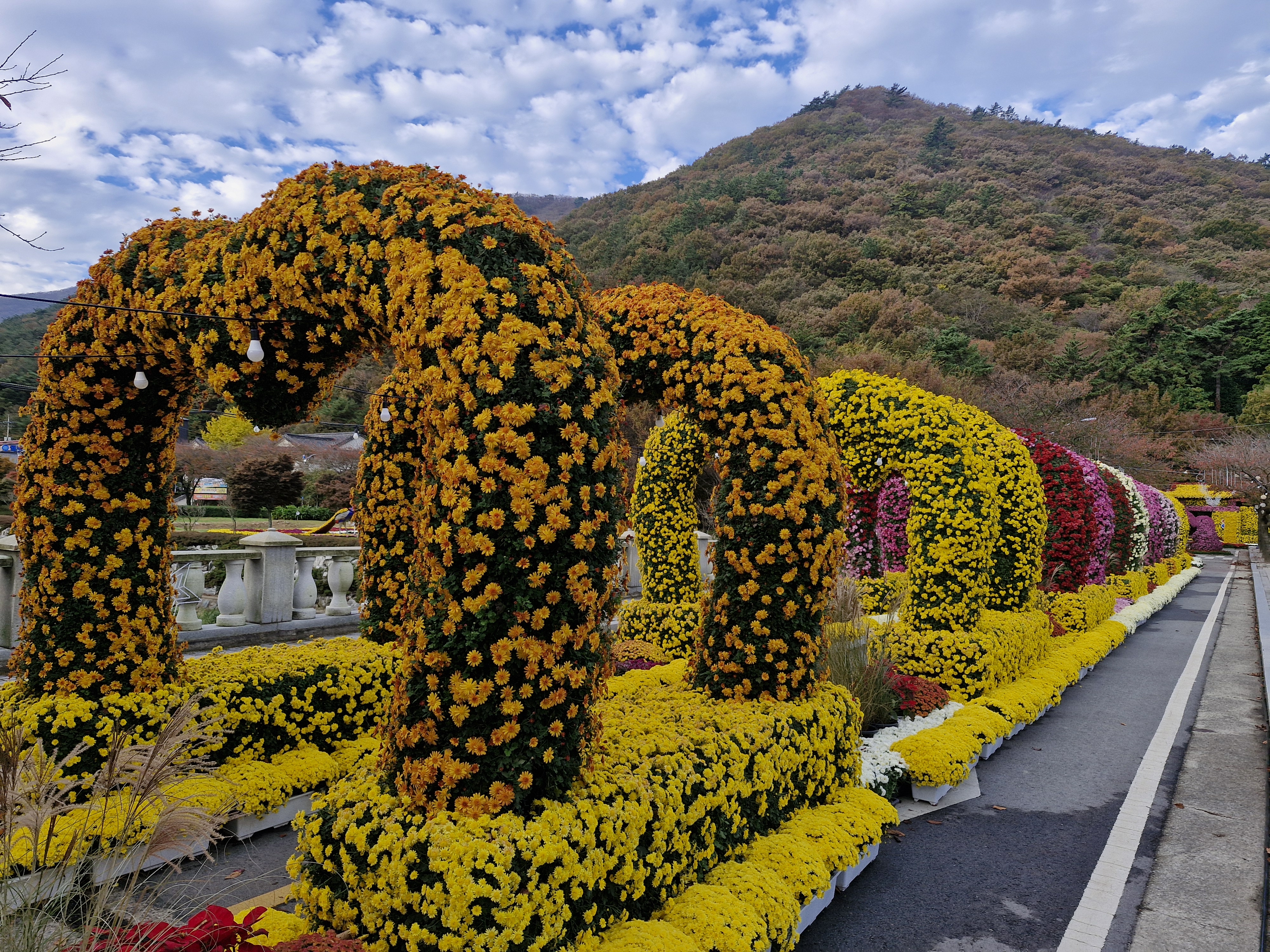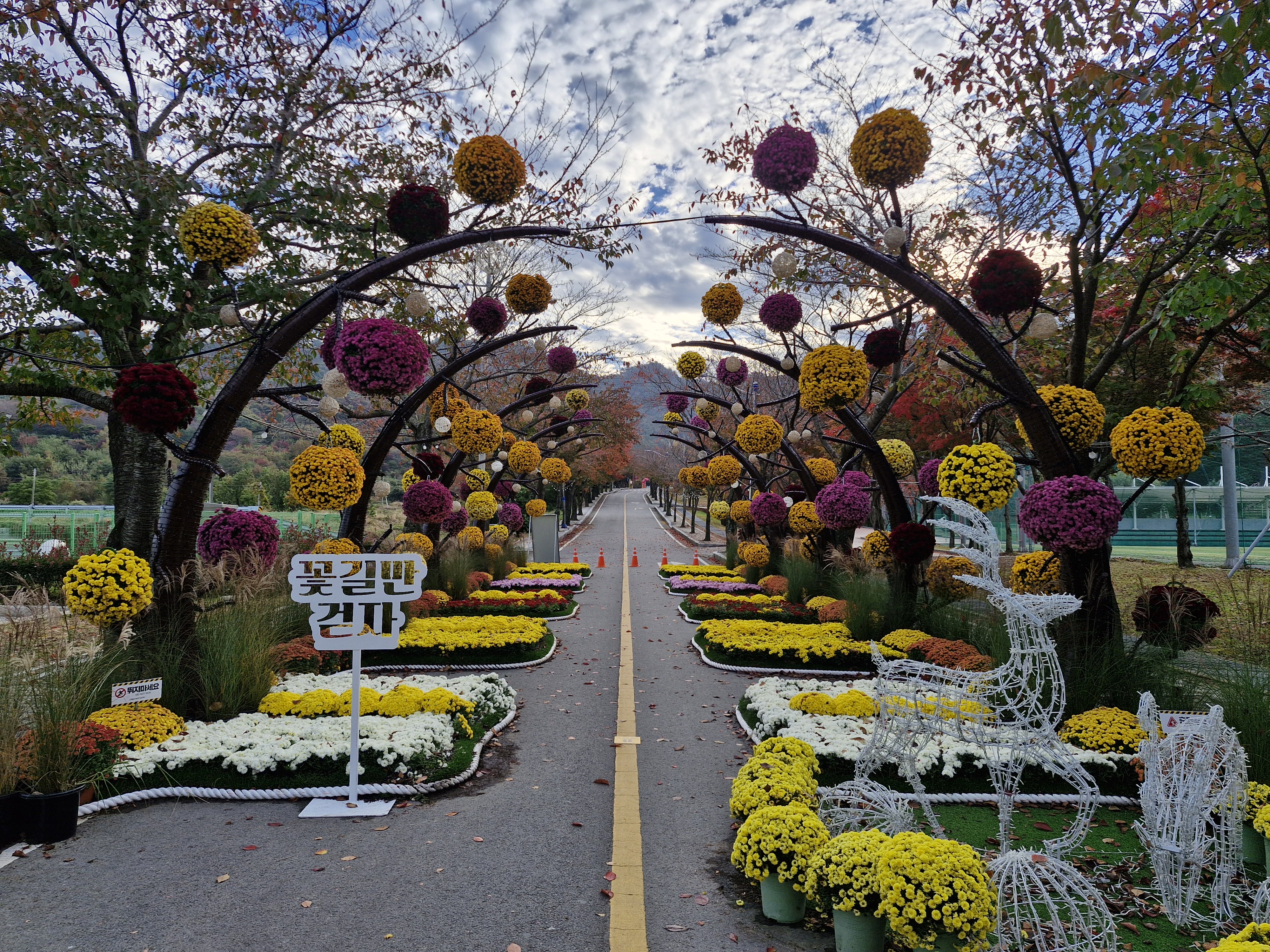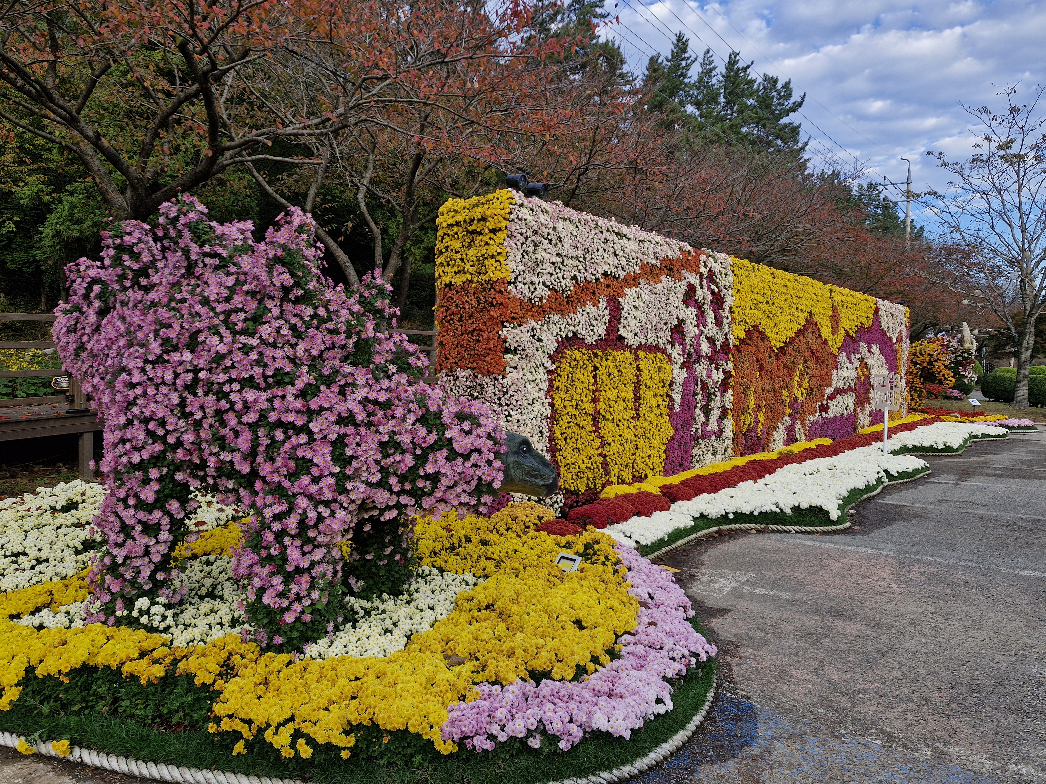 가을 정취를 한 껏 느낄 수 있는 형형색색의 국화로 포토존을 만들어 놓았고...