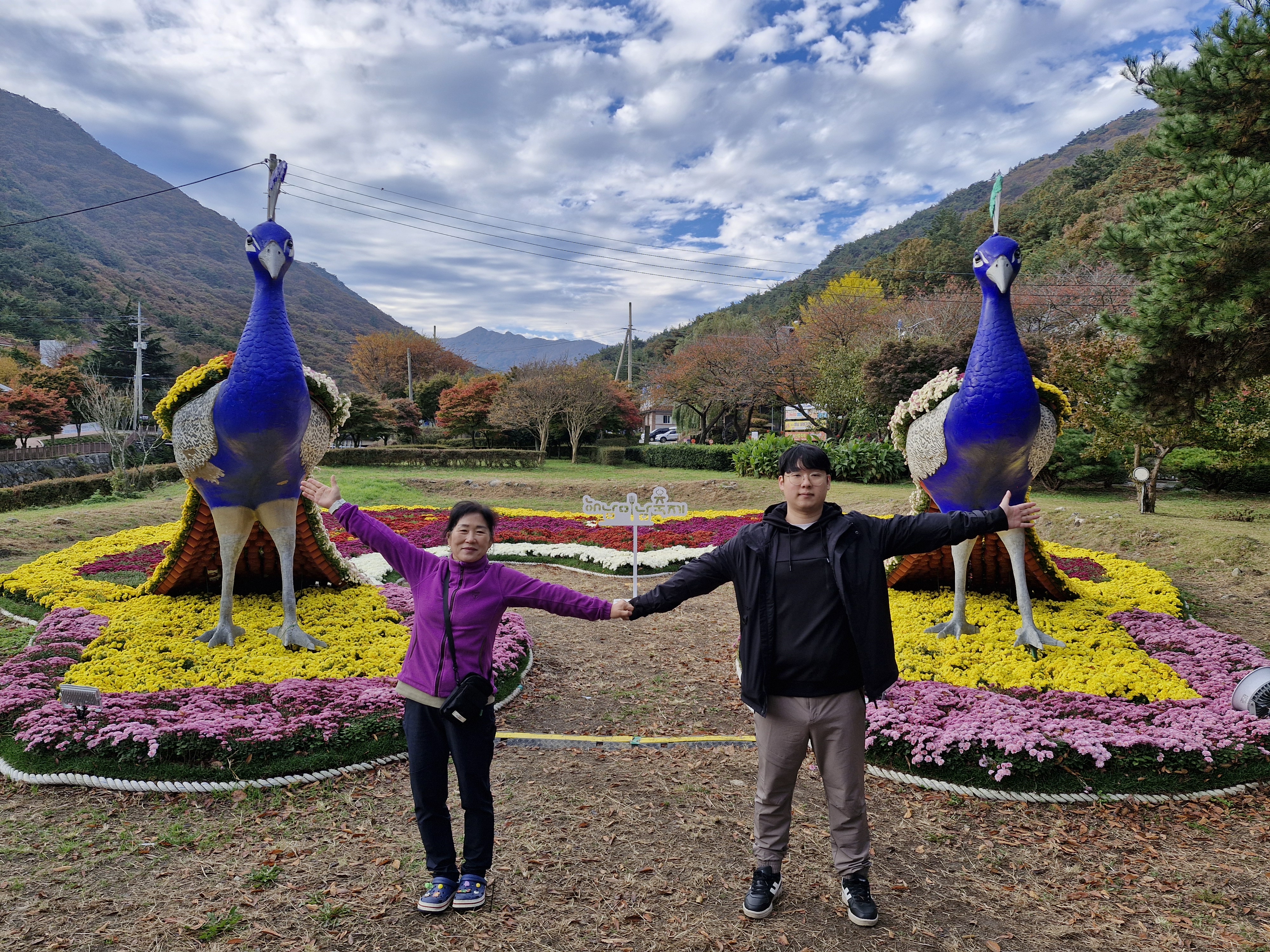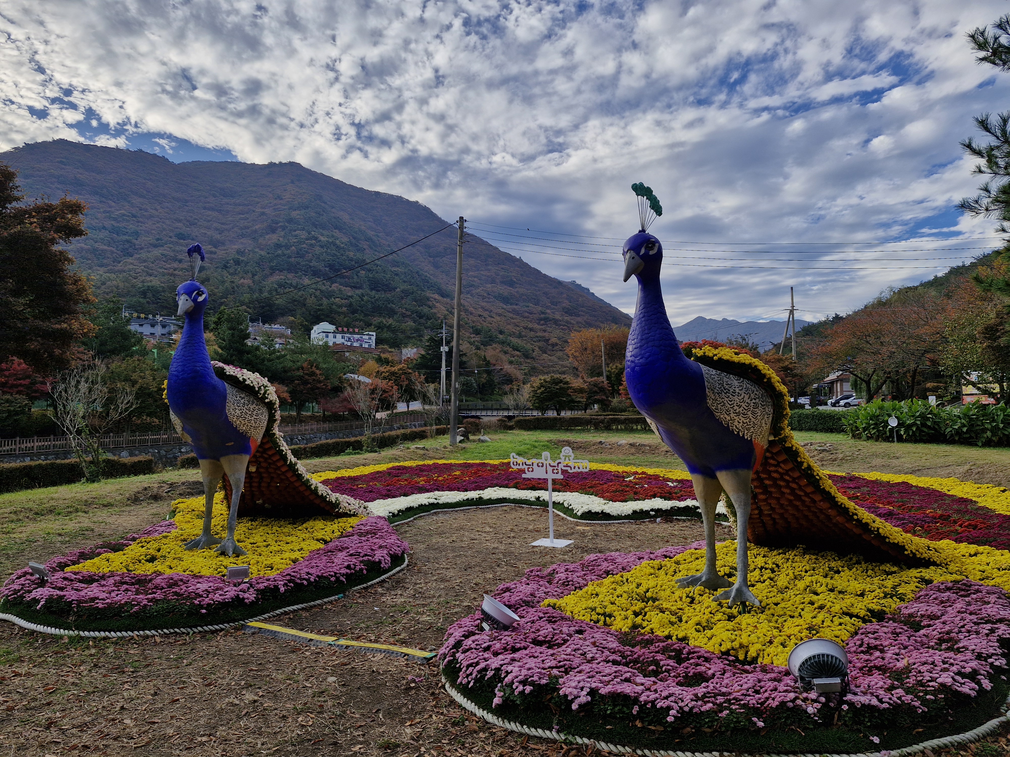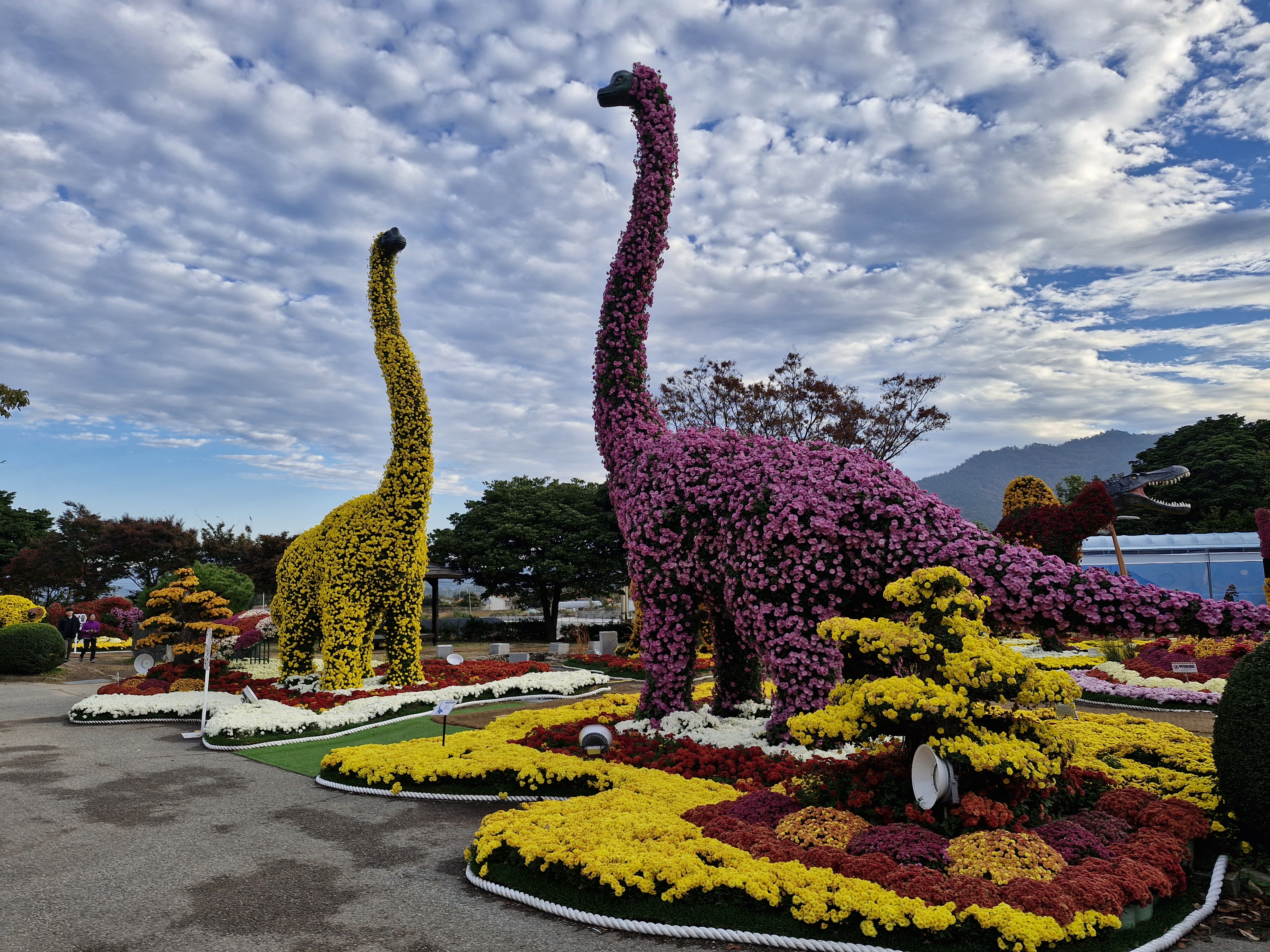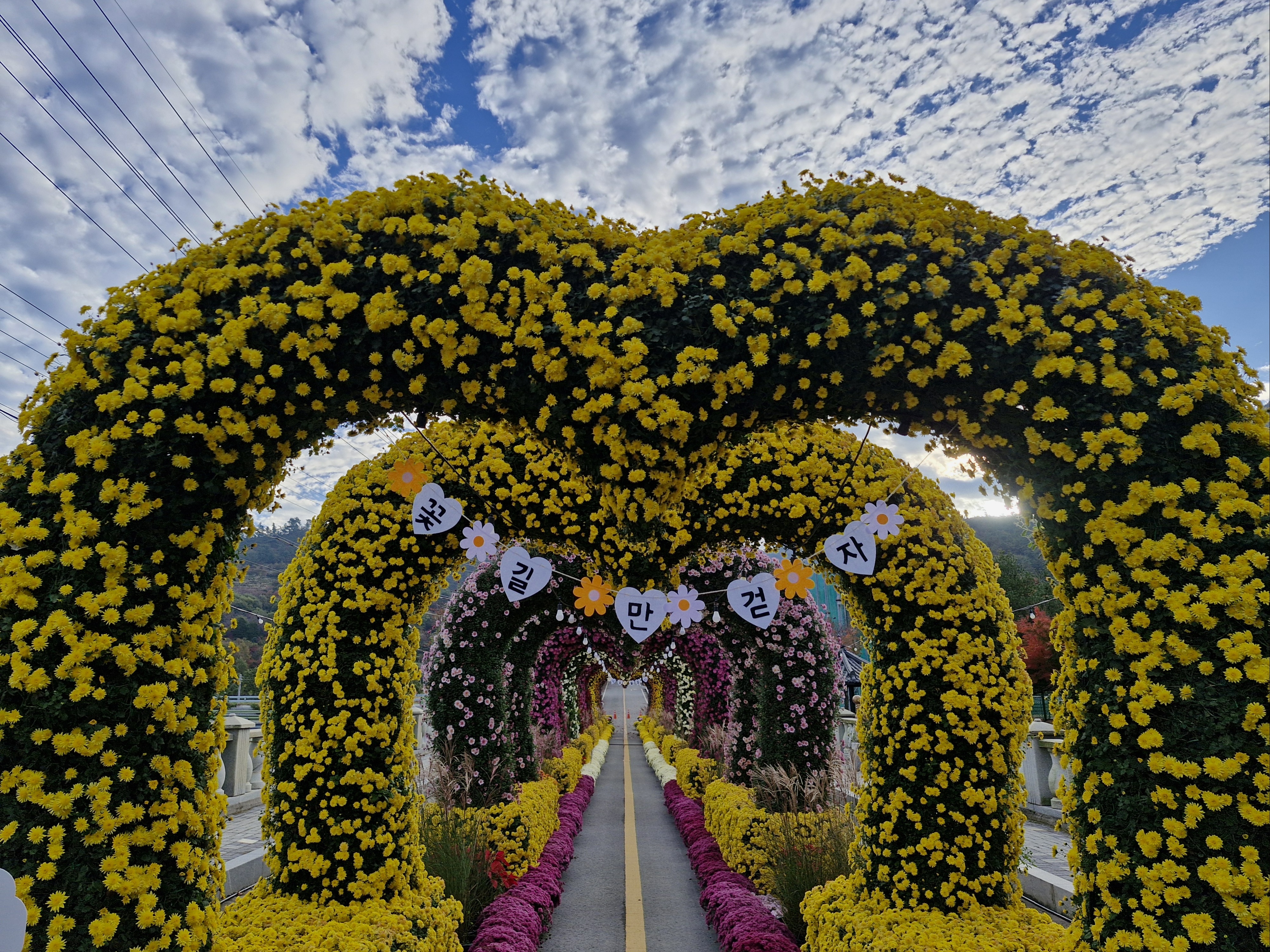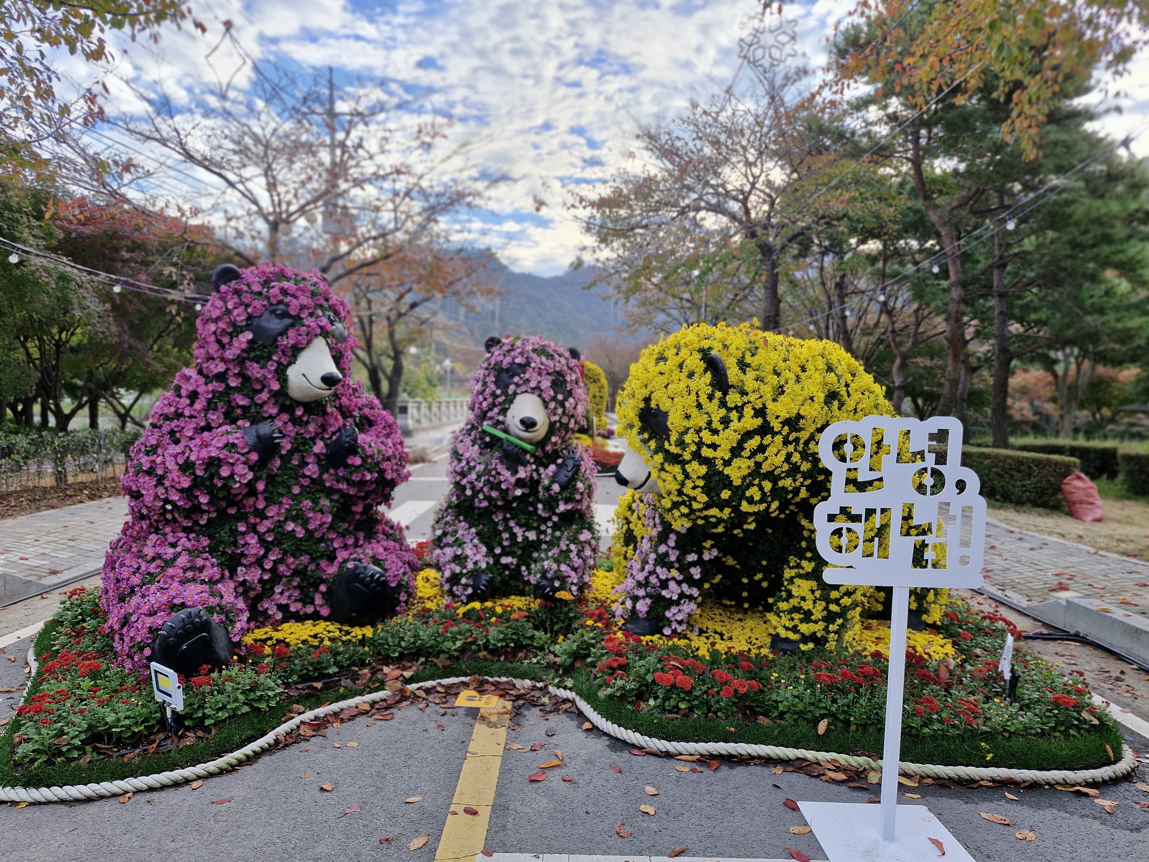 가을 정취를 한 껏 느낄 수 있는 형형색색의 국화로 포토존을 만들어 놓았고...