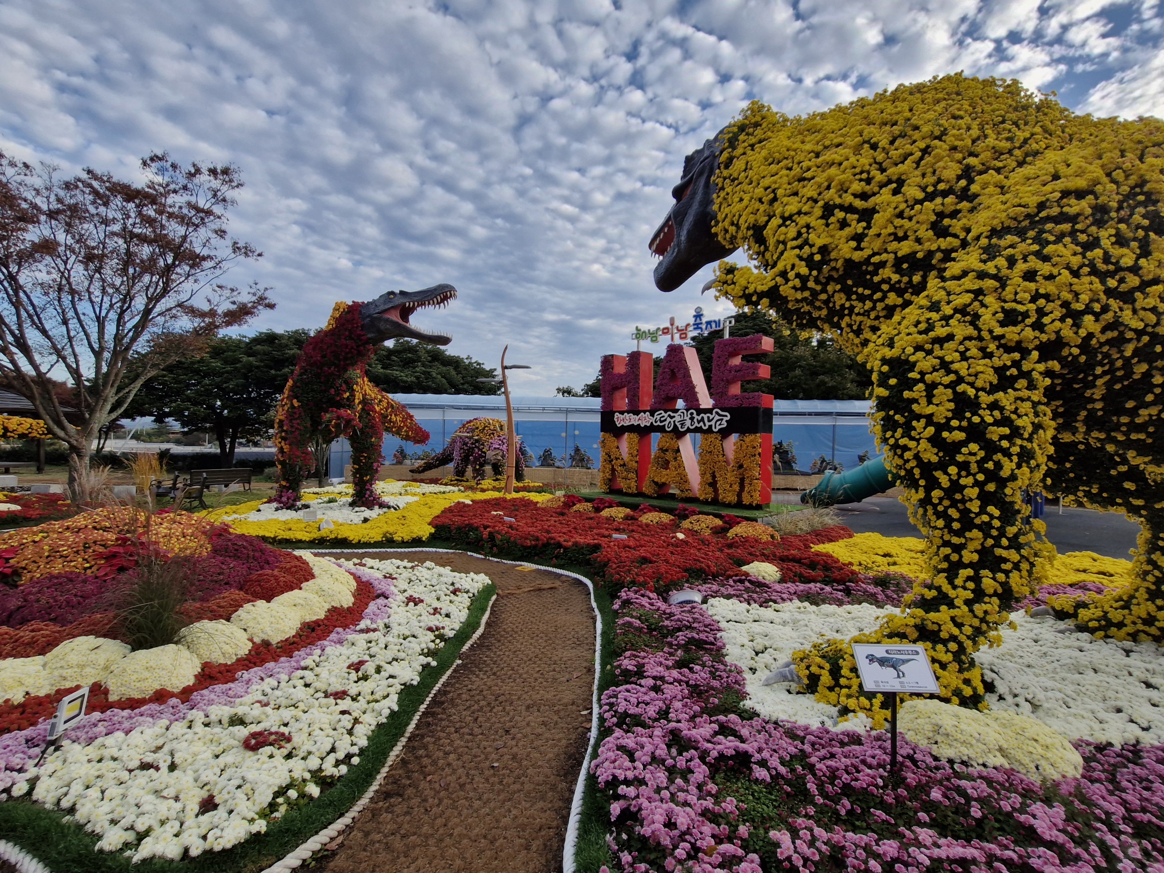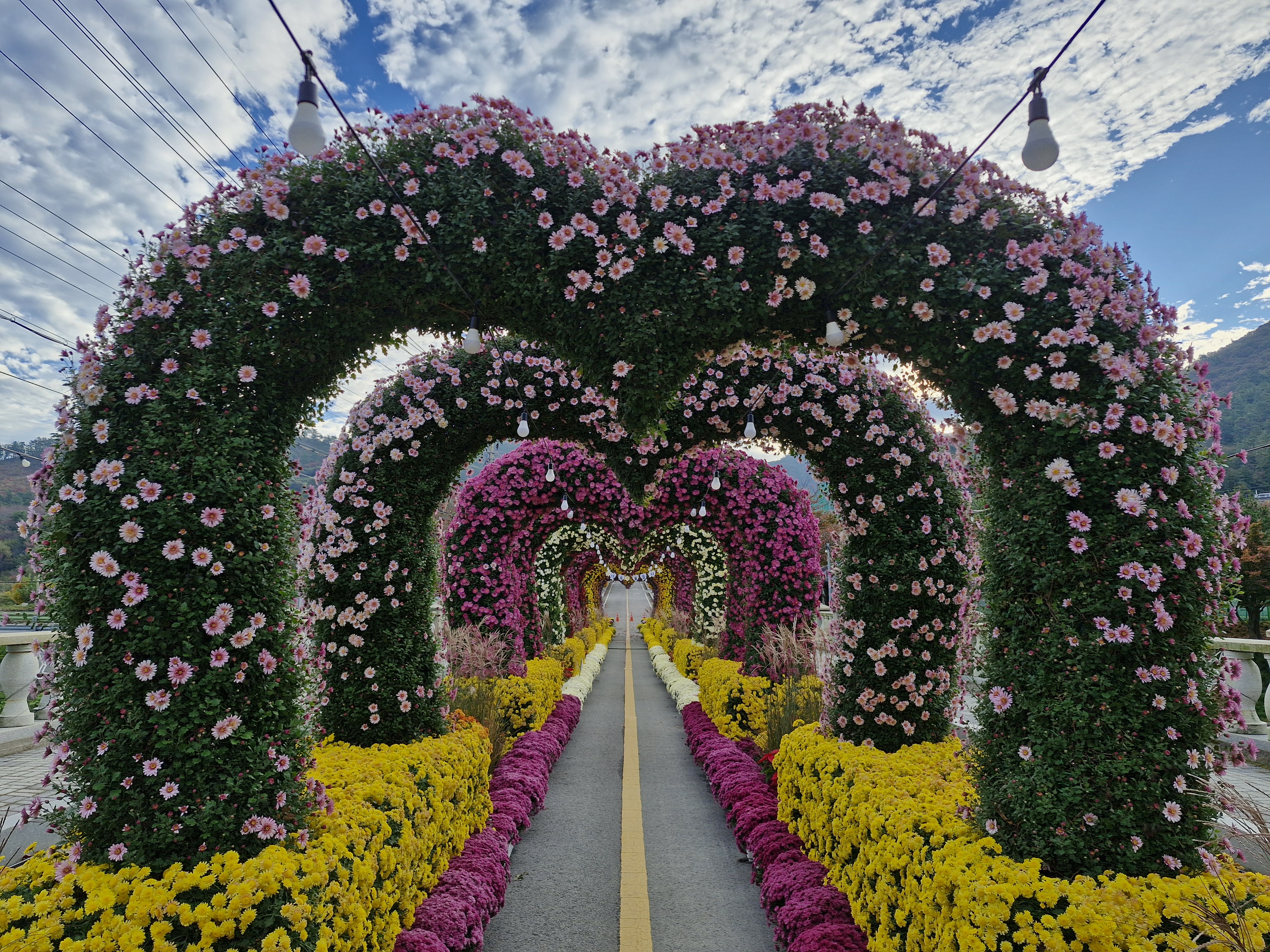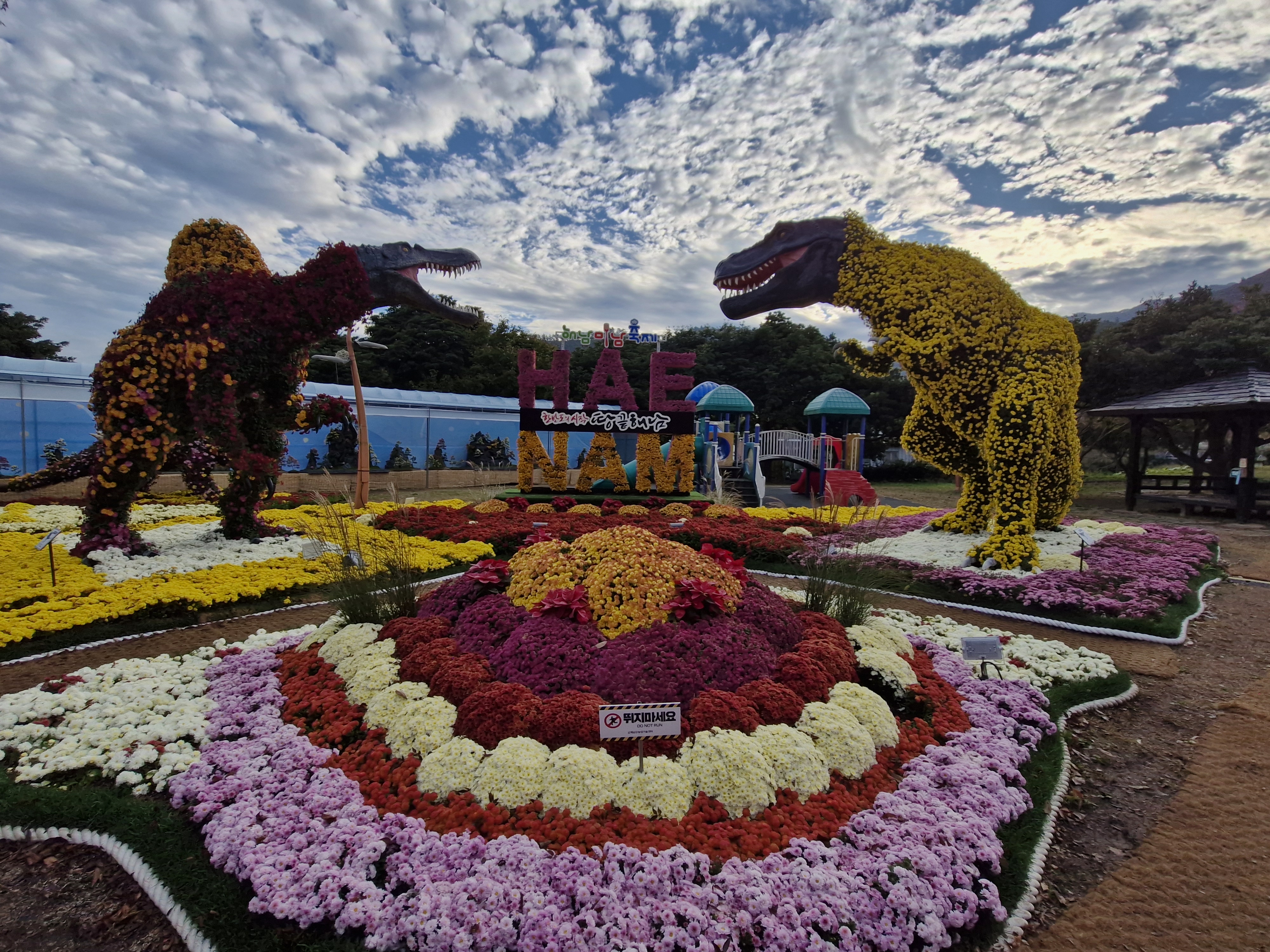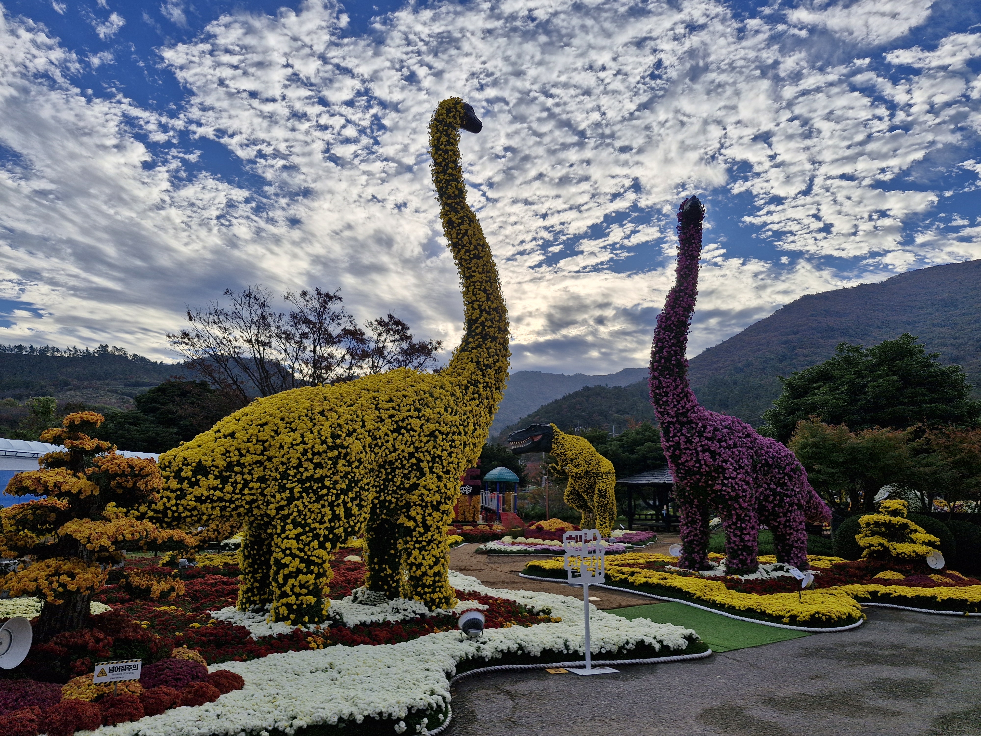 가을 정취를 한 껏 느낄 수 있는 형형색색의 국화로 포토존을 만들어 놓았고...