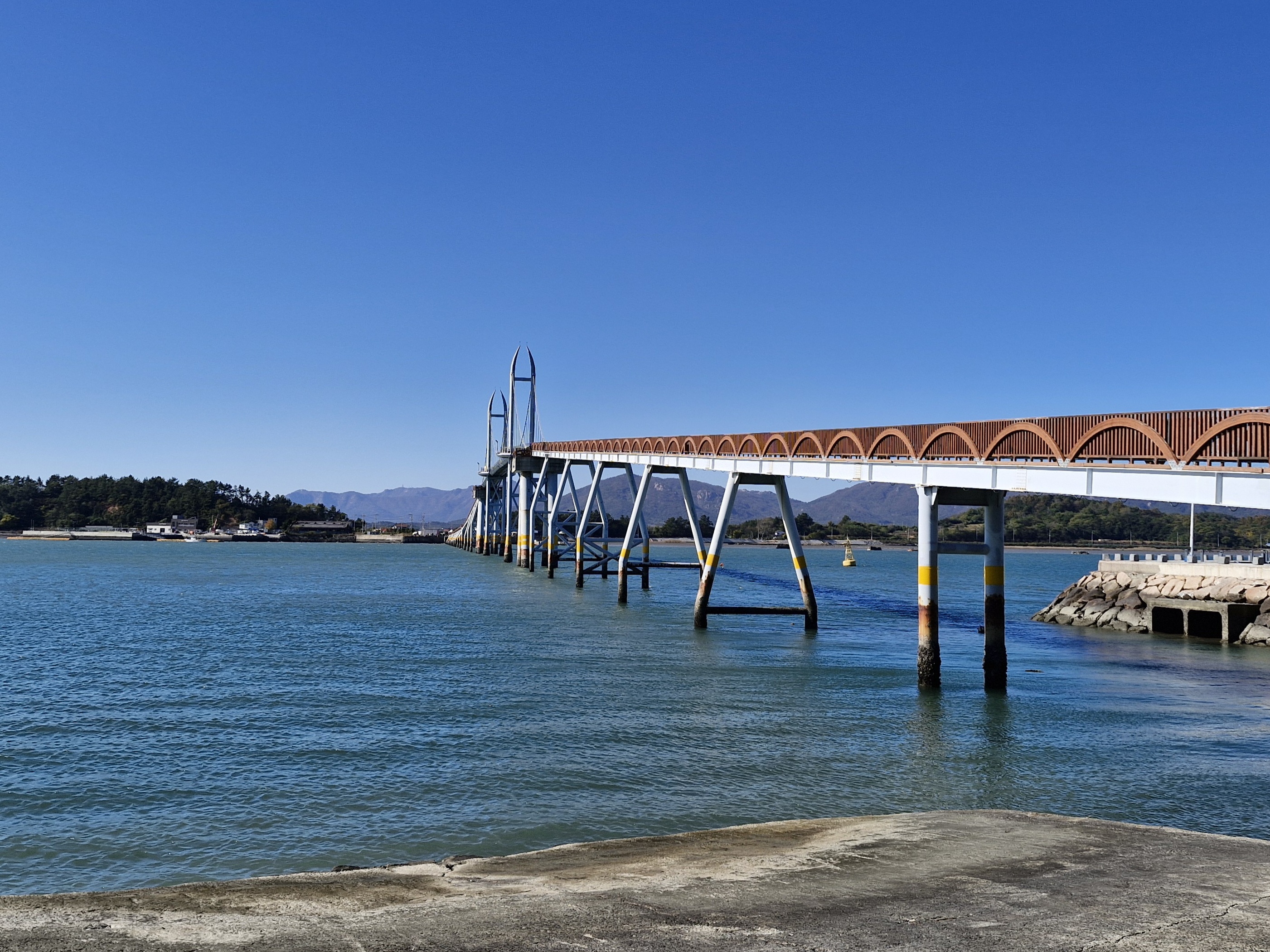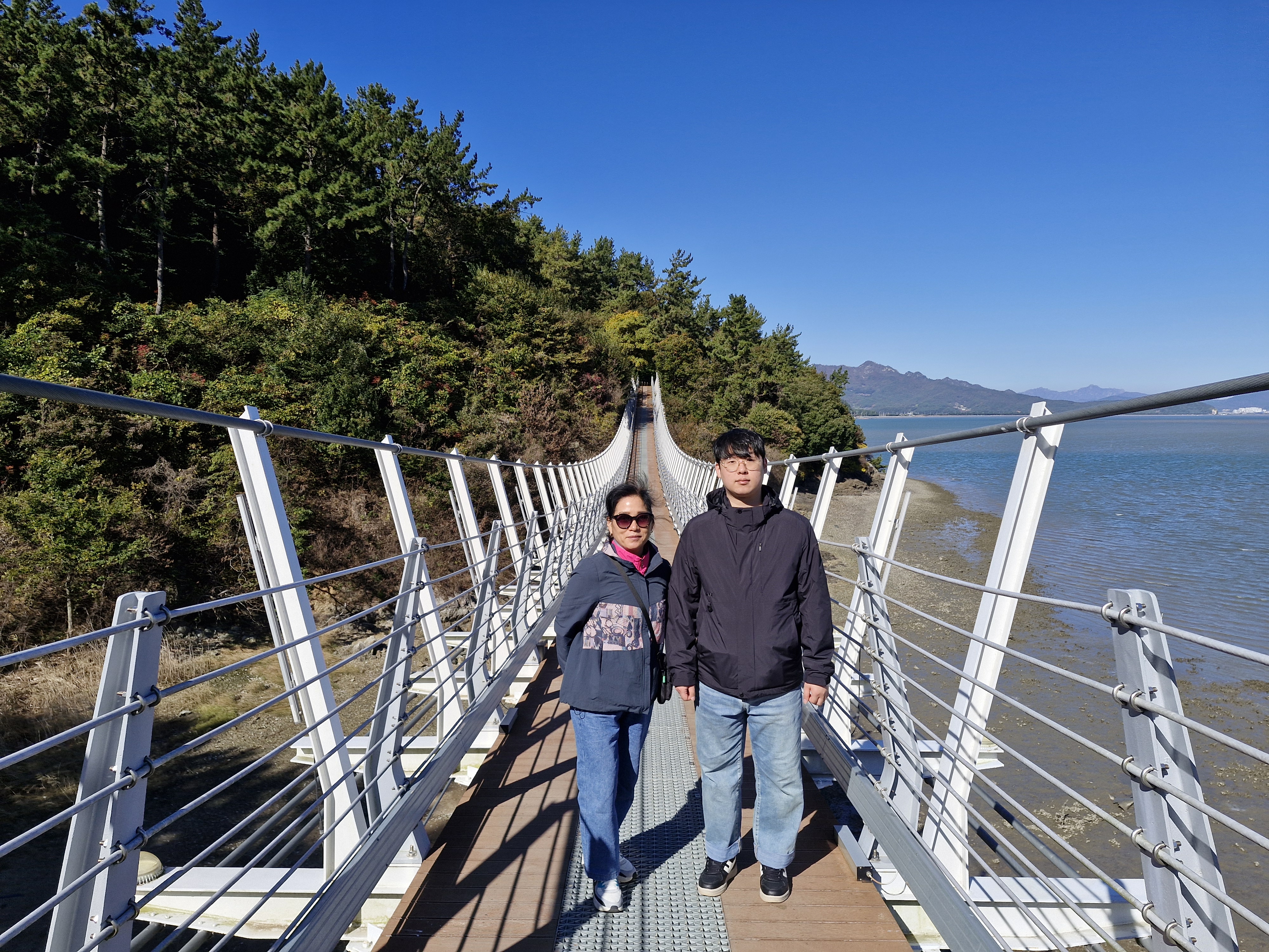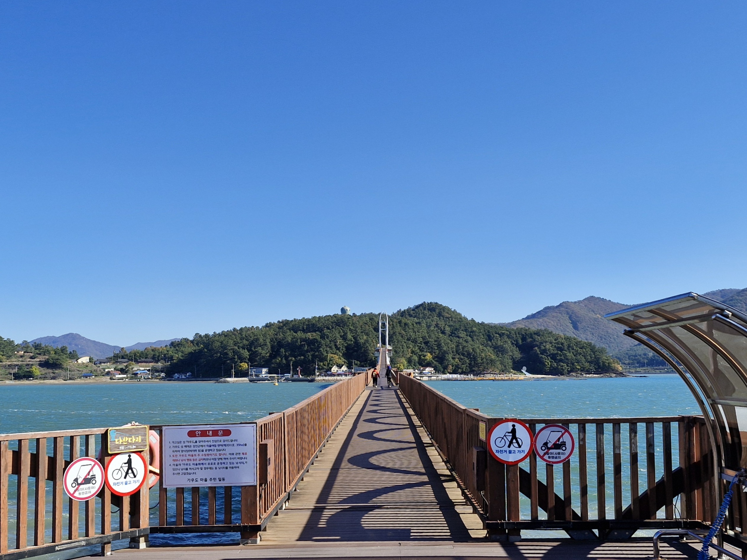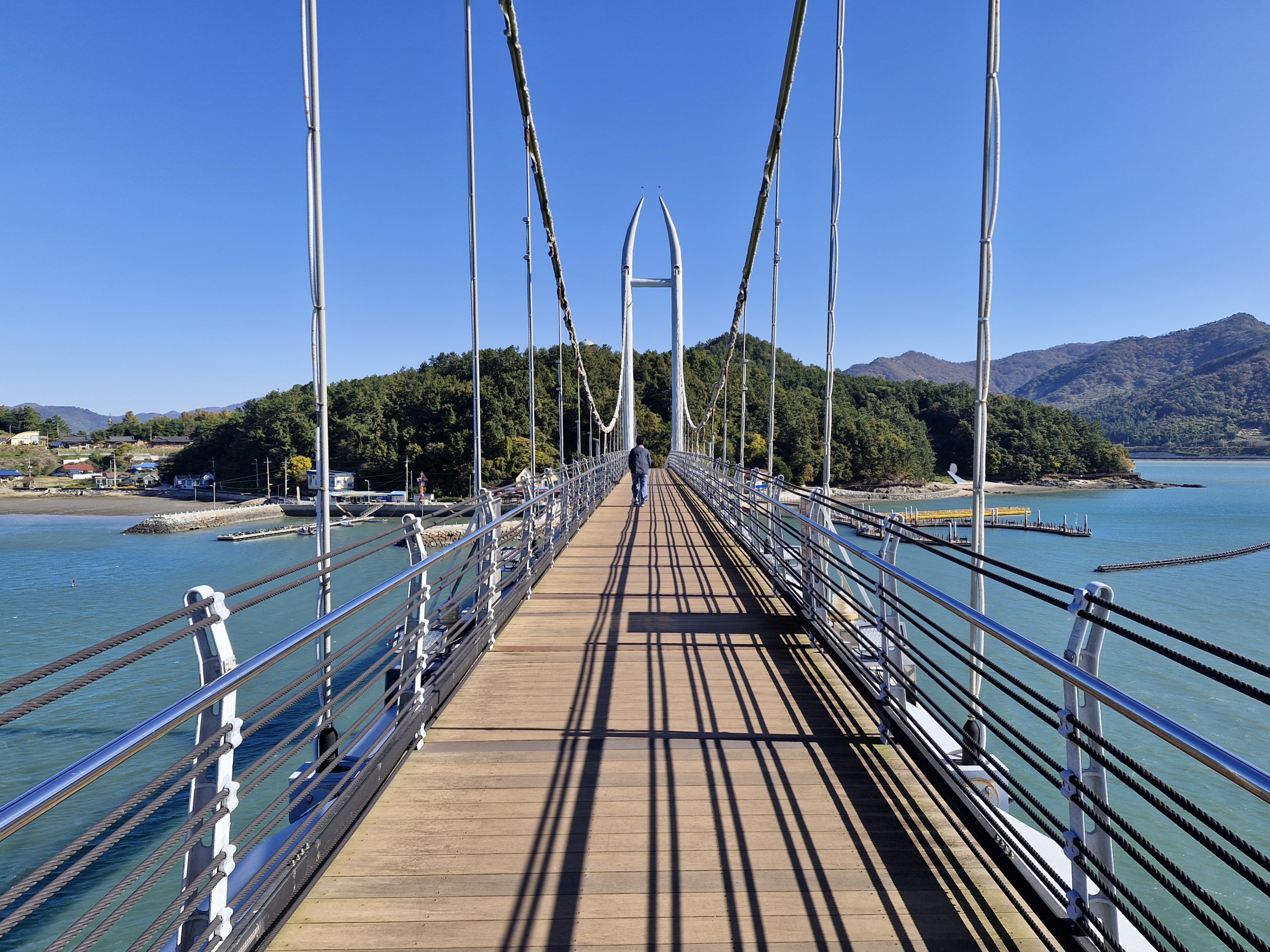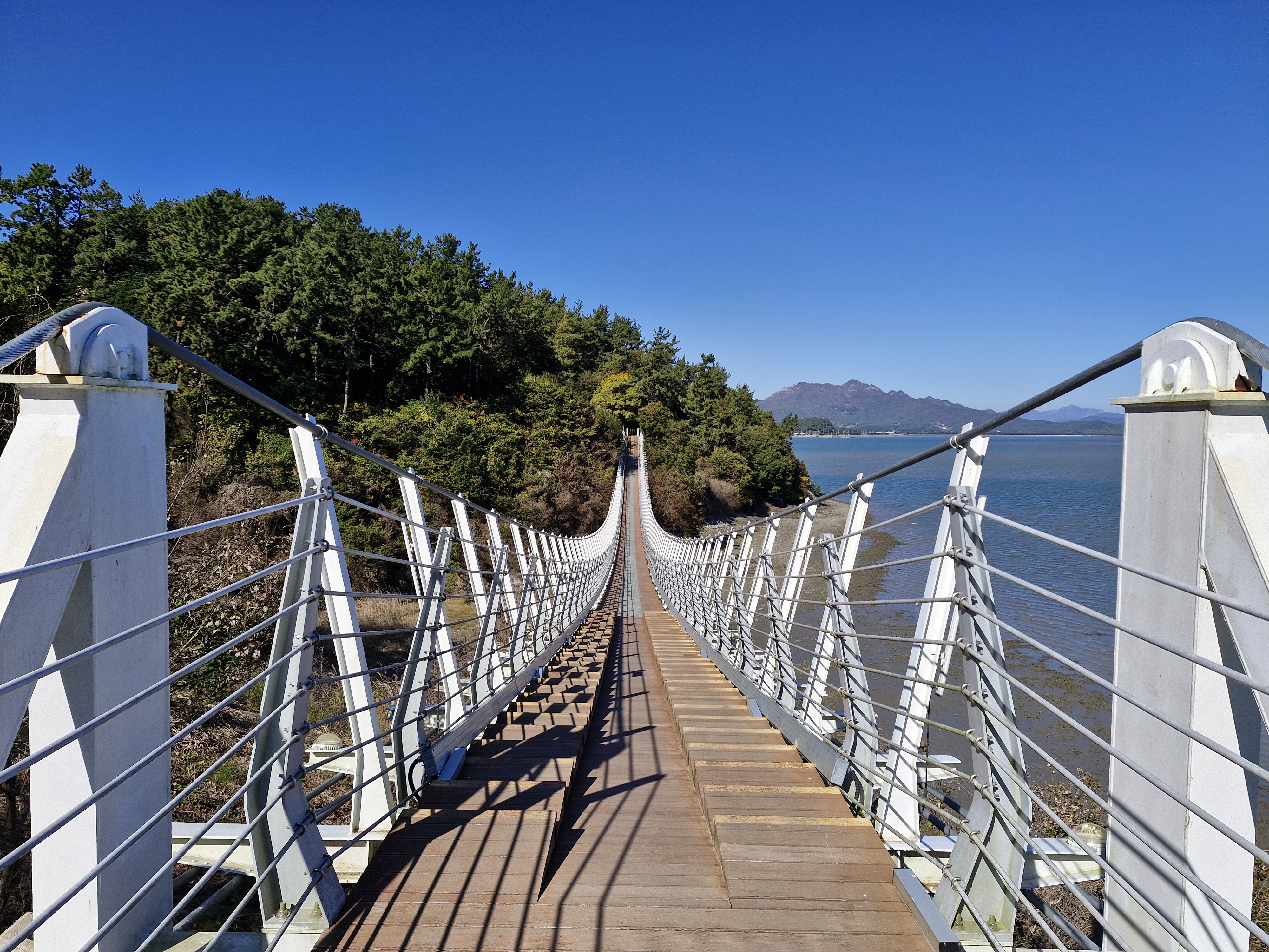 망호 선착장 옆 주차장에 주차 후 망호 출렁다리를 건너려니 강진만을 지나는 바람이 몸을 날릴 듯하다.