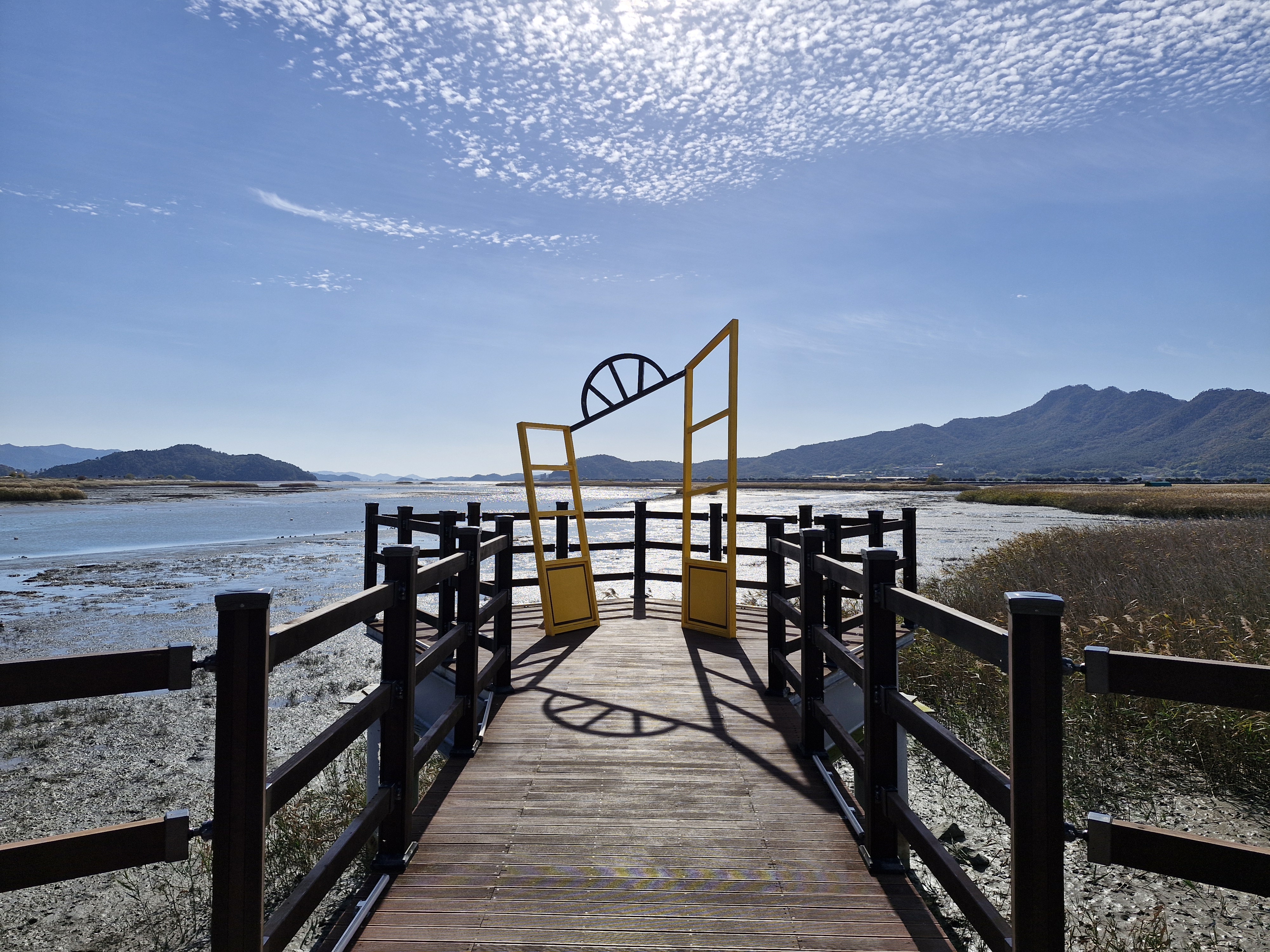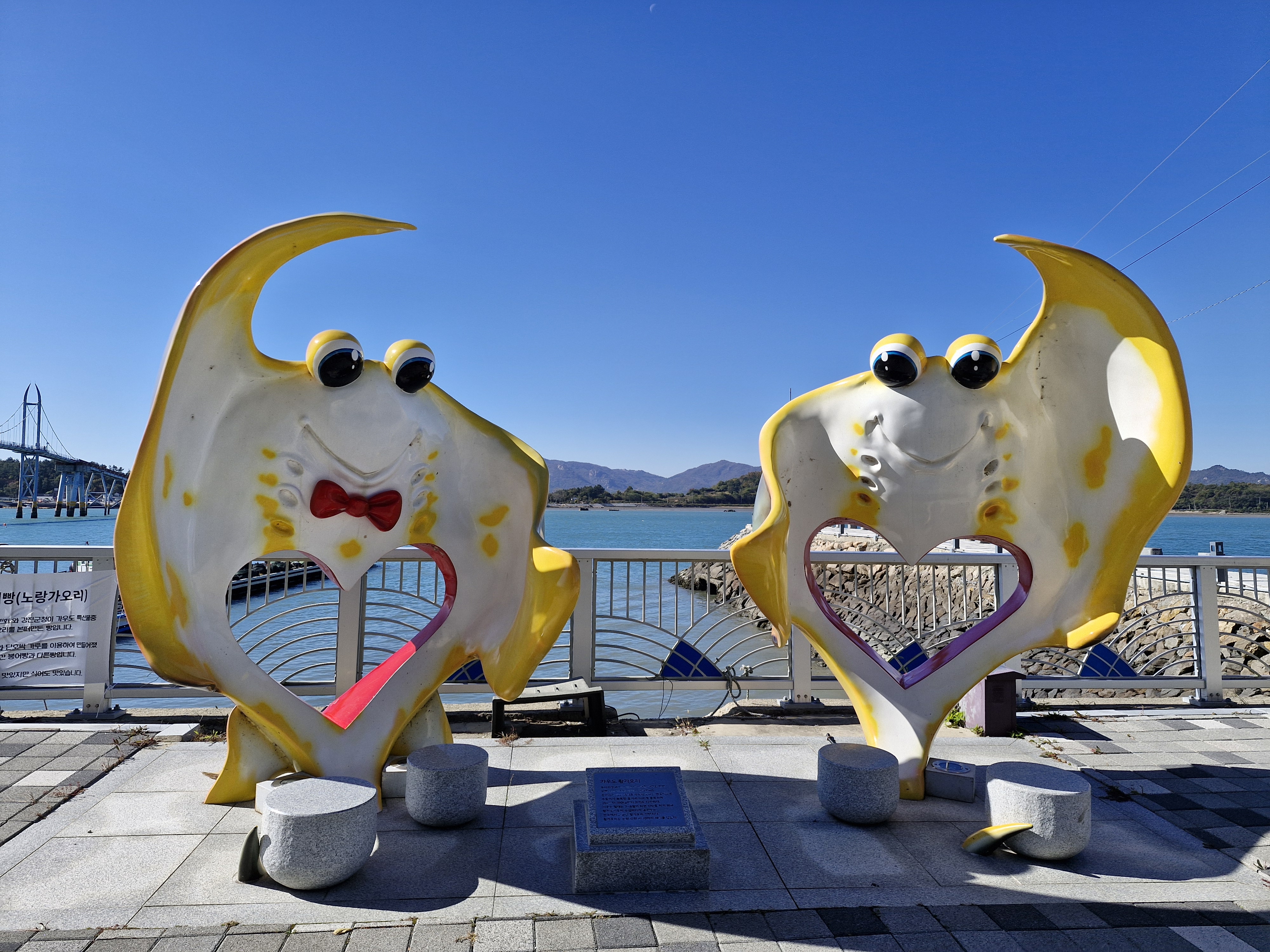 짱뚱어 형상을 한 벤치에서 마지막 사진을 남기는 것으로 강진만 생태공원 걷기를 마친다.