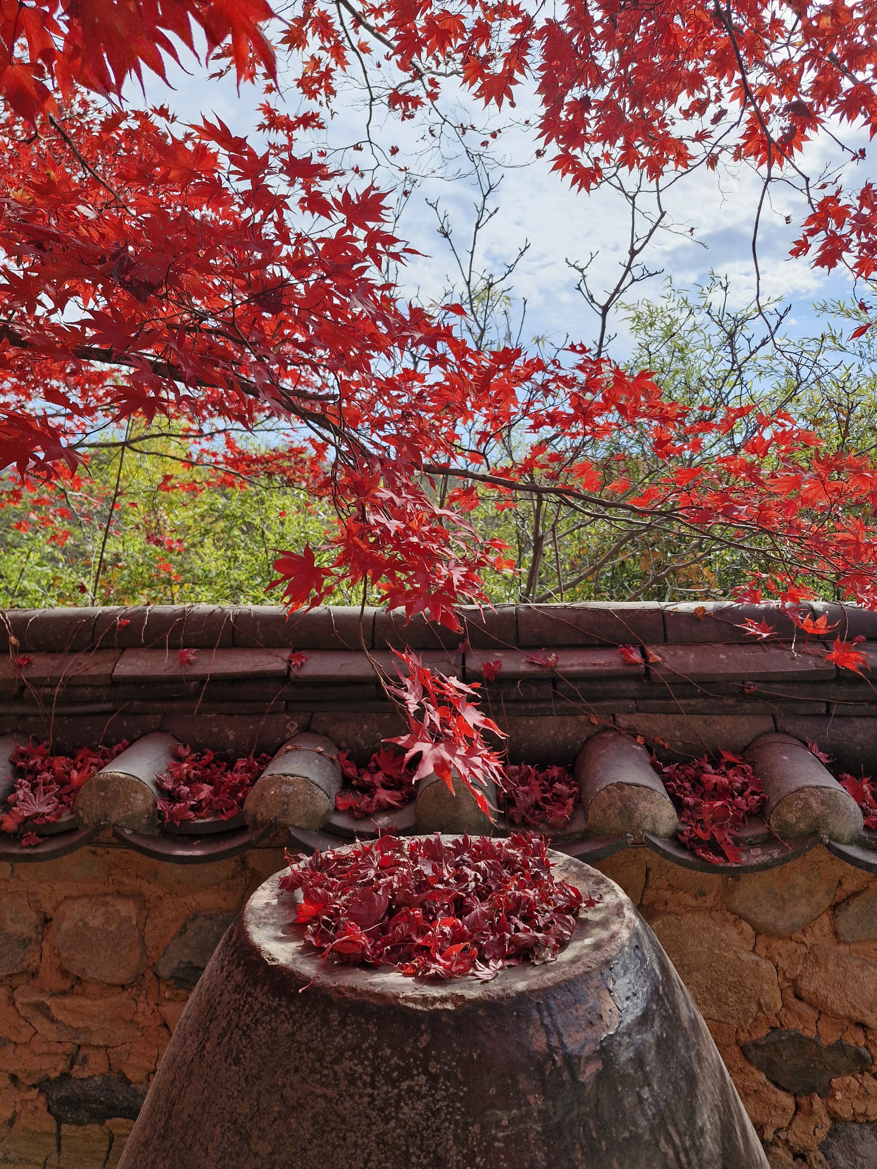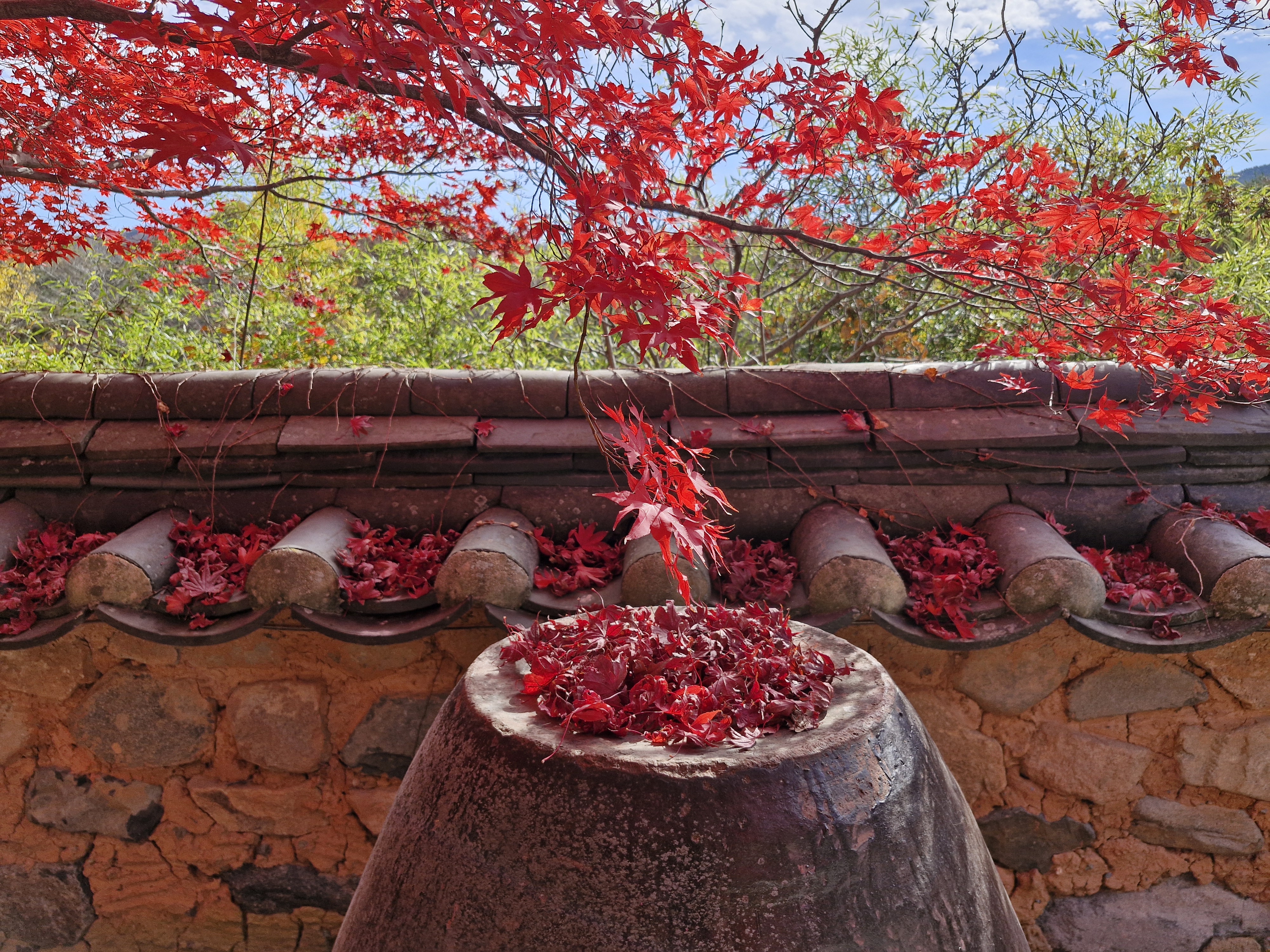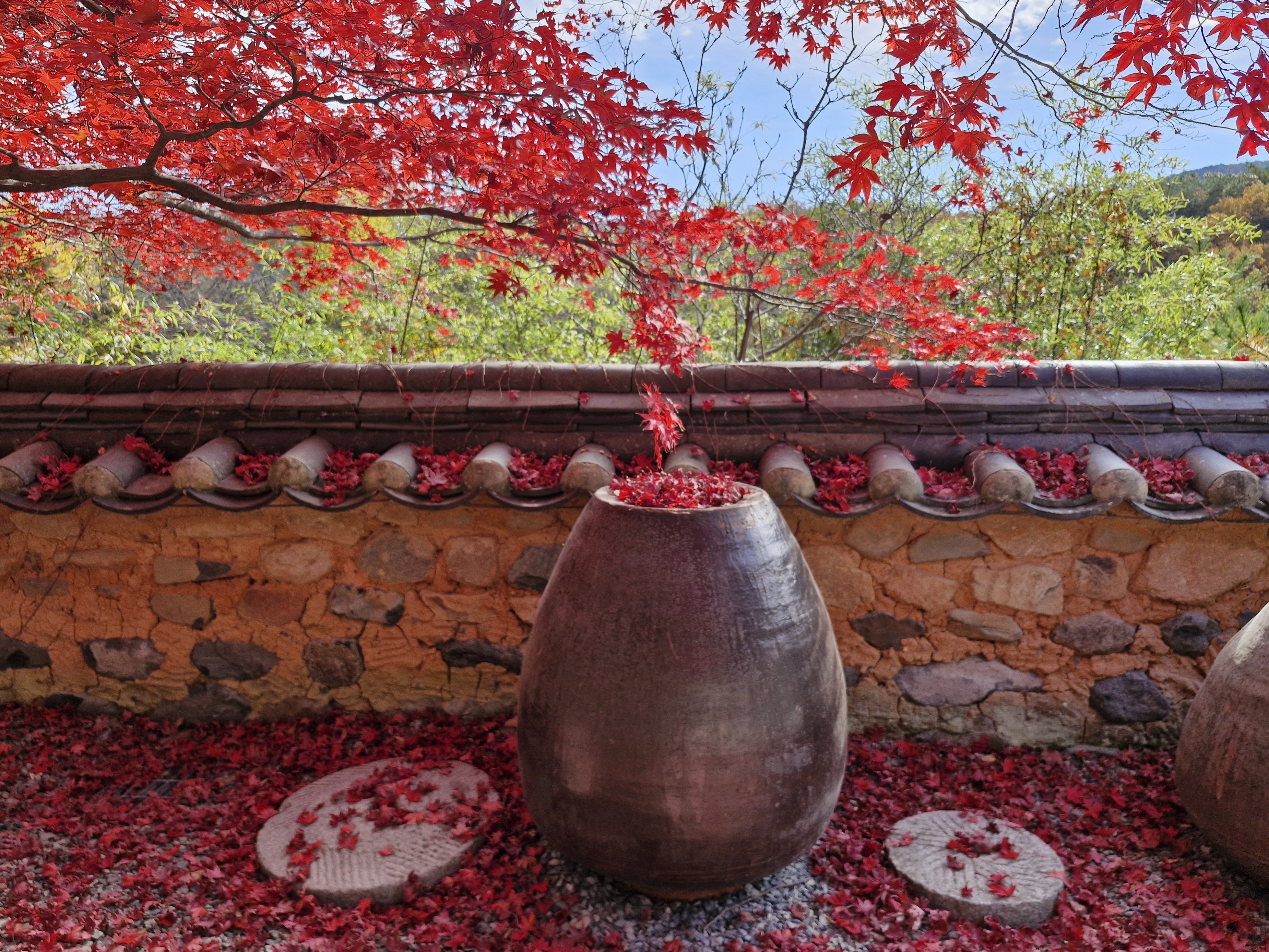 장독과 담장, 기와에 내려앉은 단풍은 얼마나 아름답고 정겨운지....