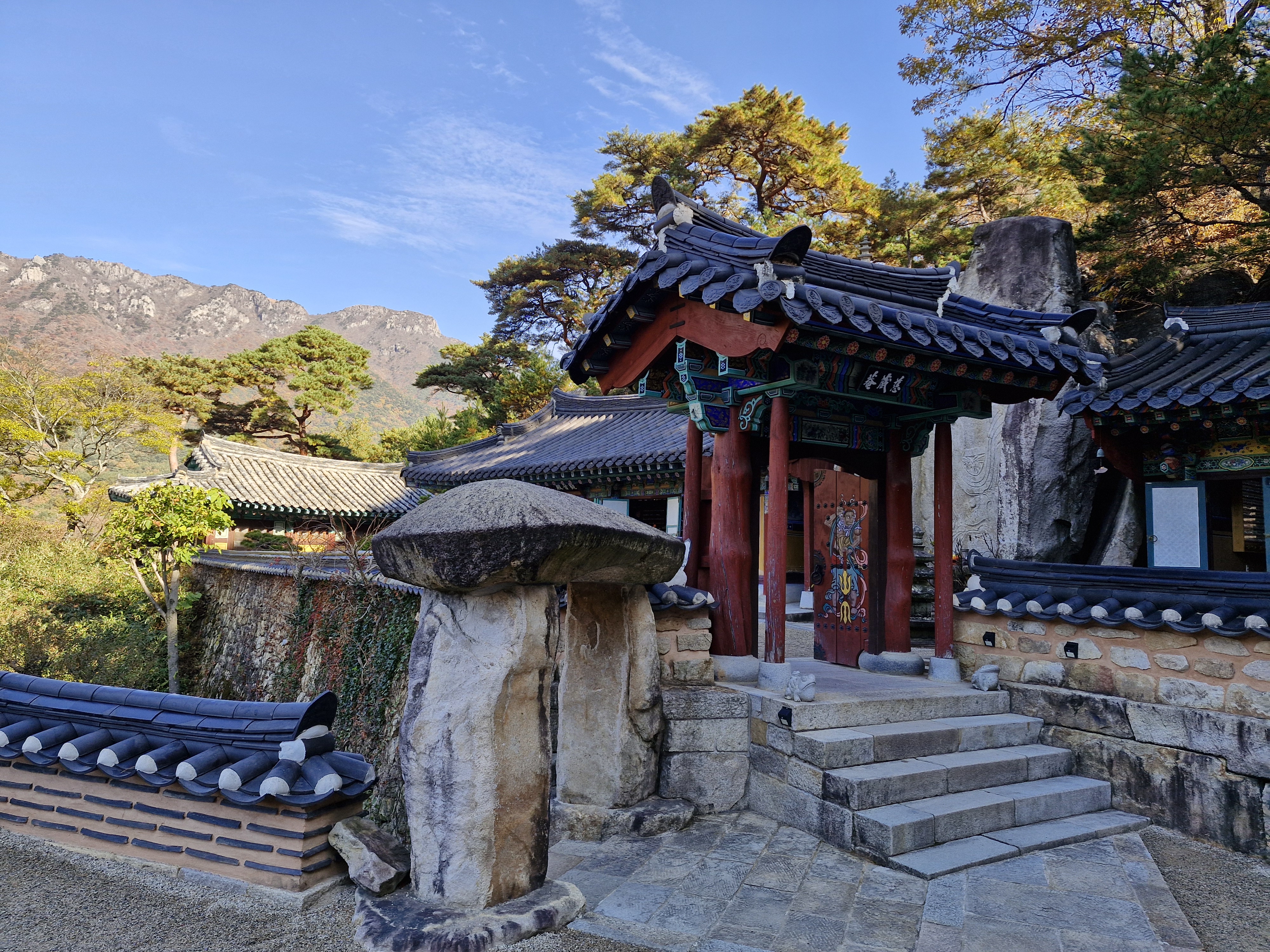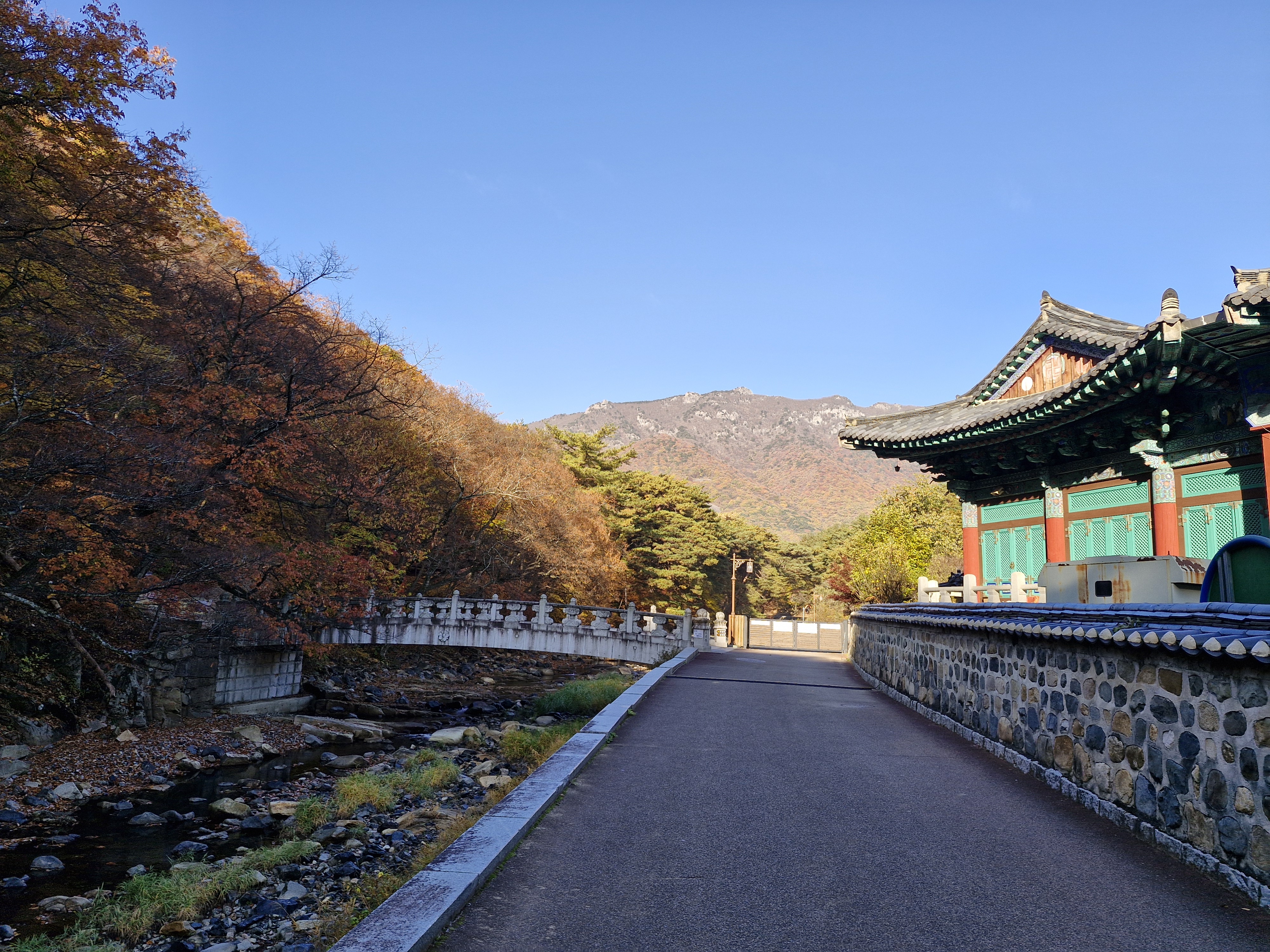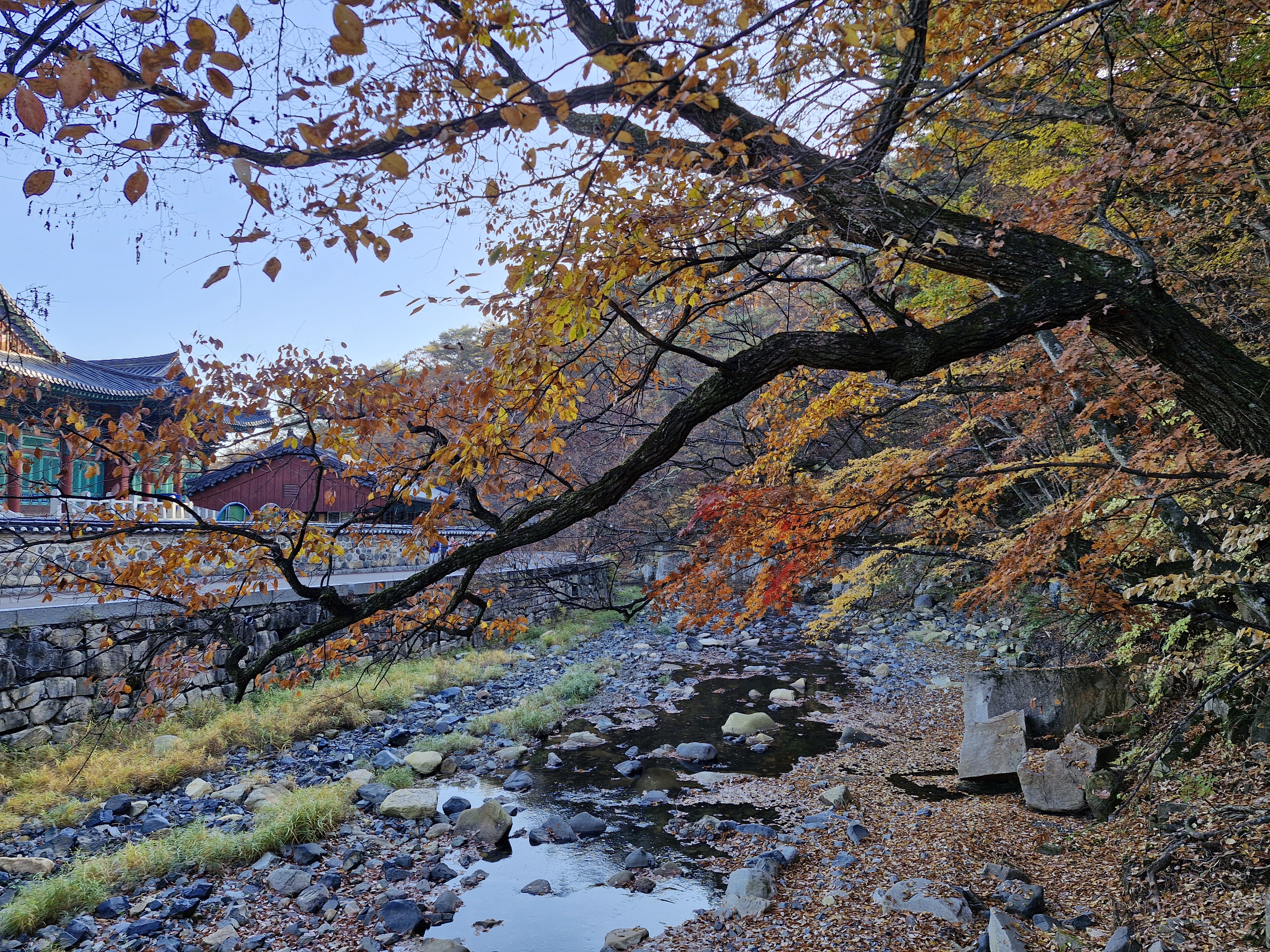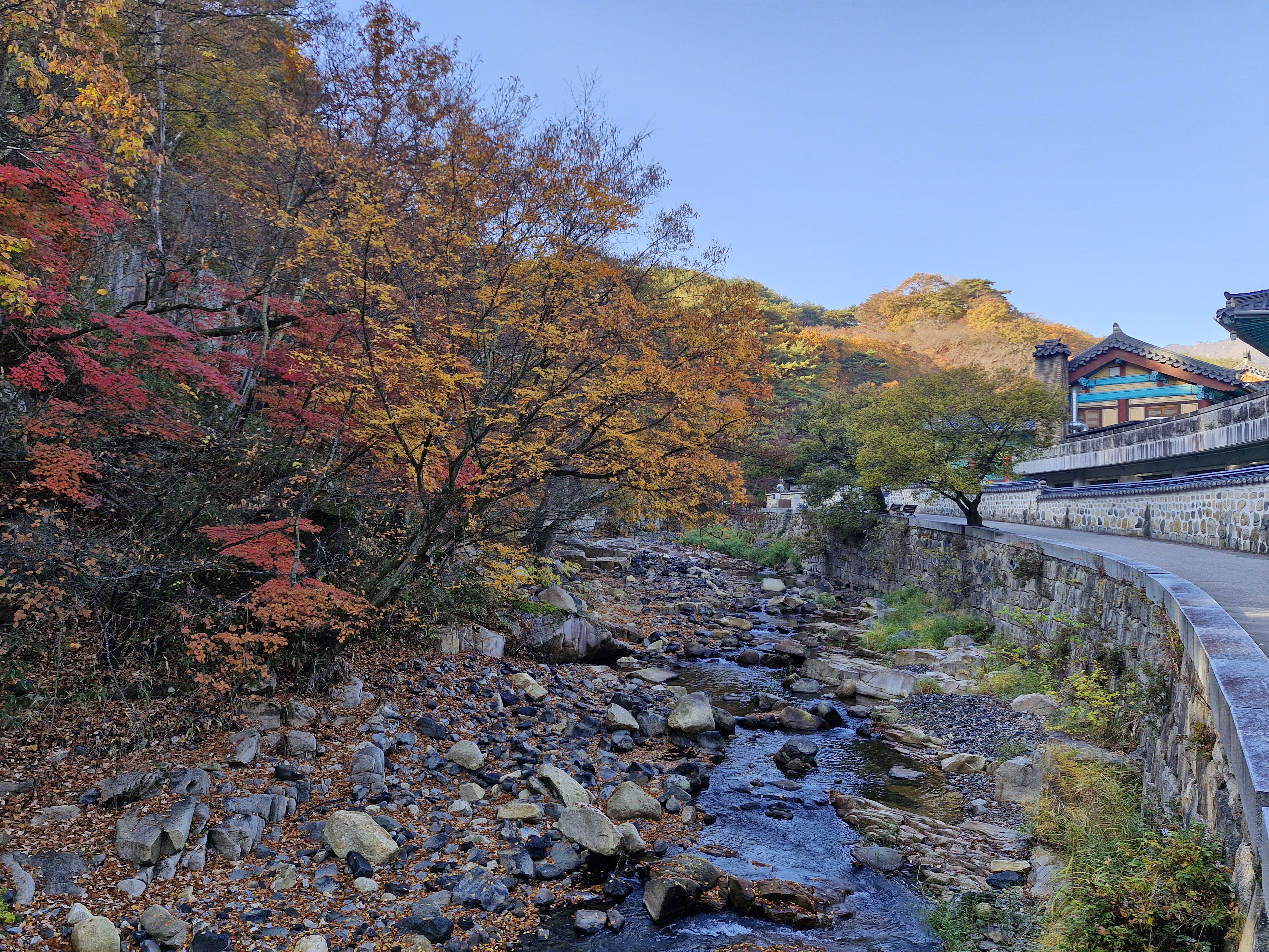 일주문 옆의 청류동 계곡에는 가을색이 가득 내려앉아 있다.