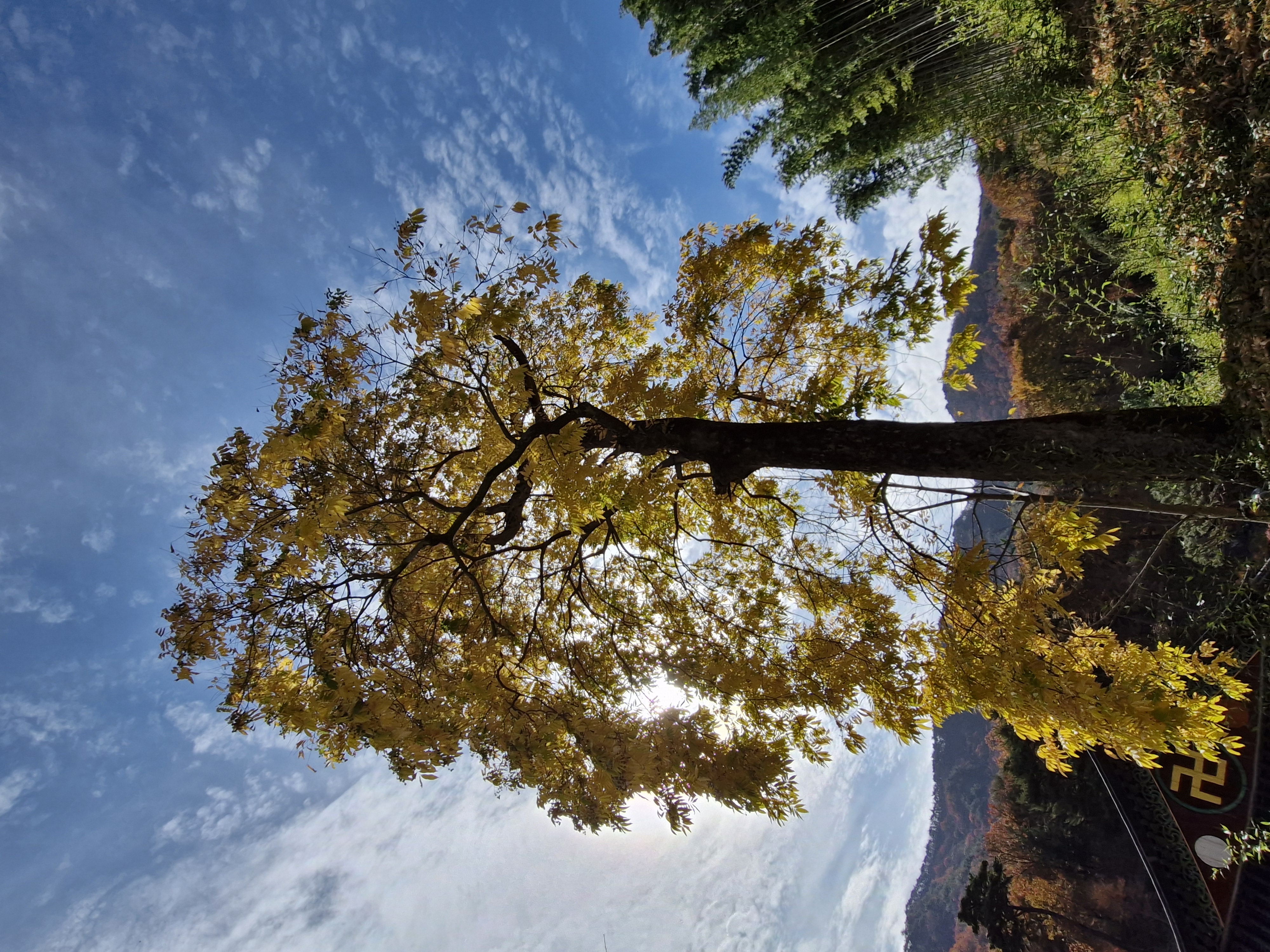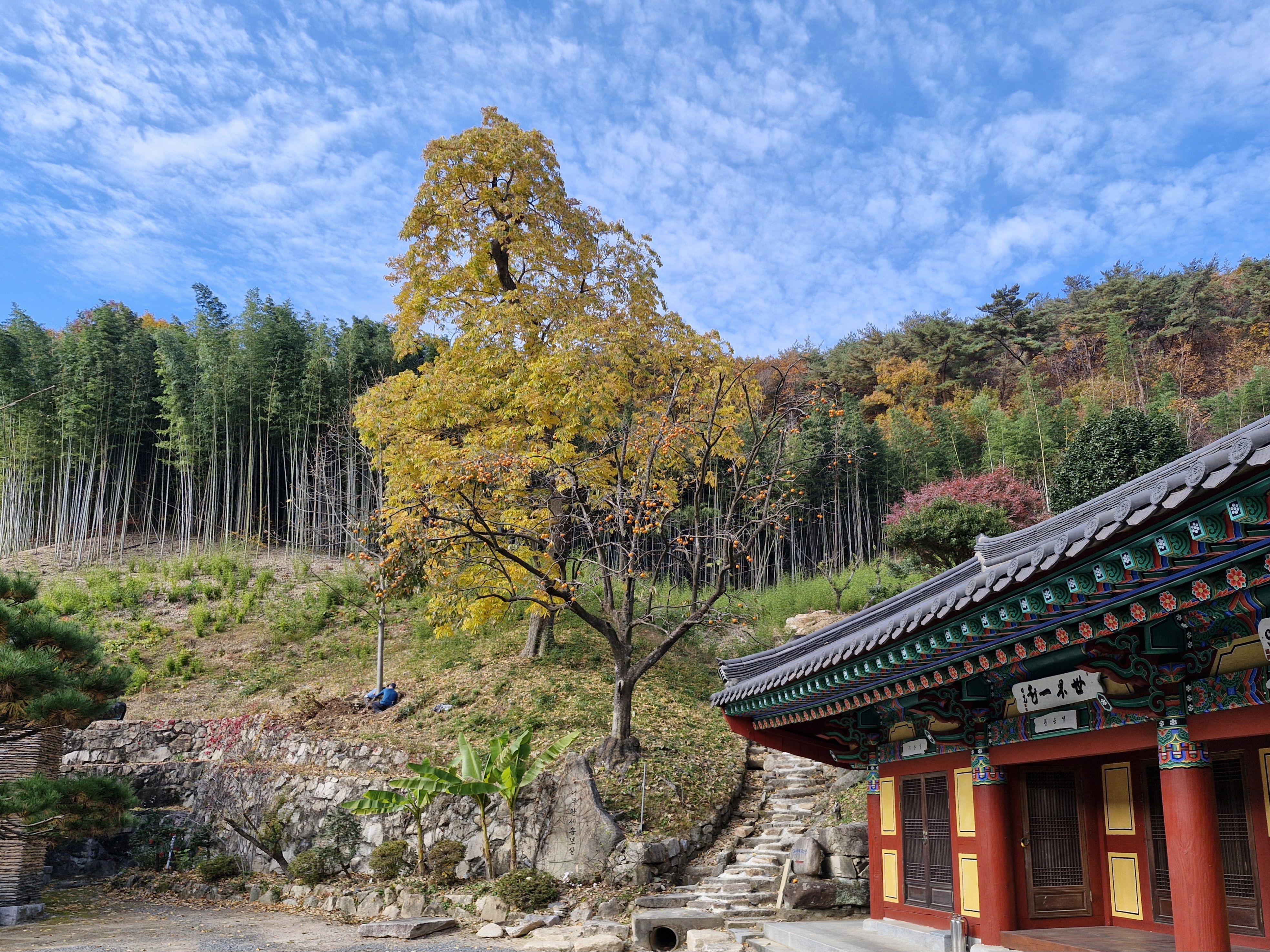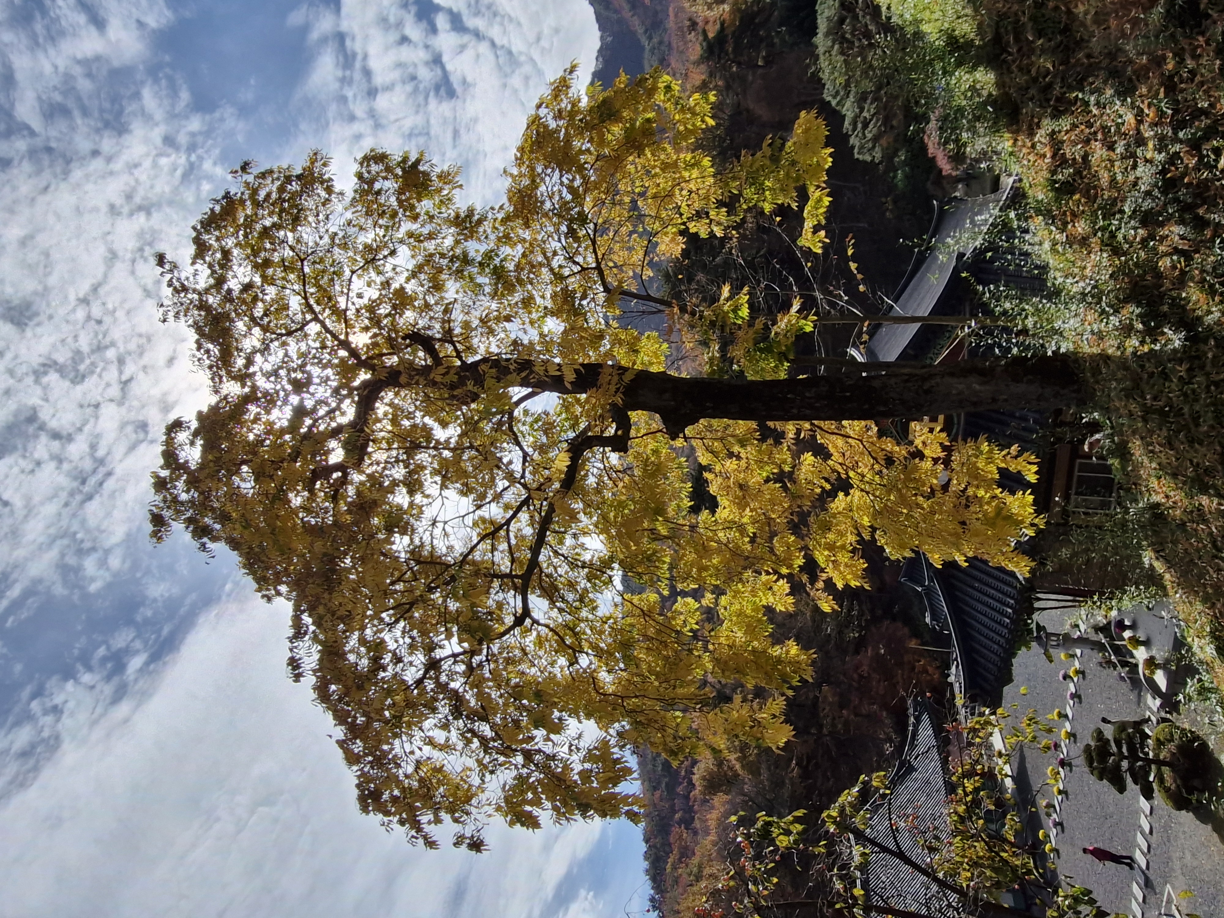 법당과 광명전 사이에 있는 저 노란 잎의 나무는 무슨 나무일까?