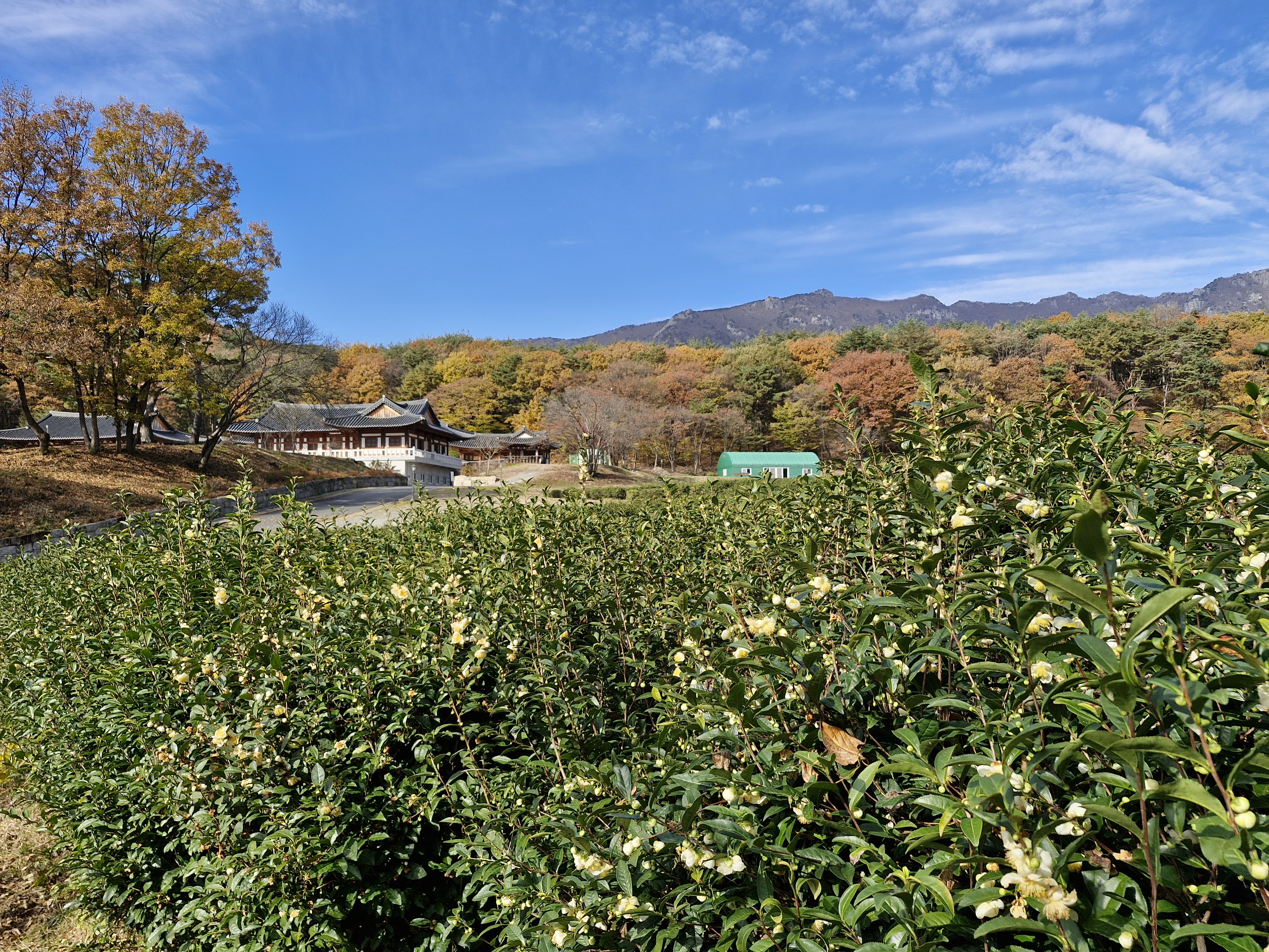 국제템플스테이관을 낀 통도 차밭 옆을 지나고 삼거리로 내려선다.