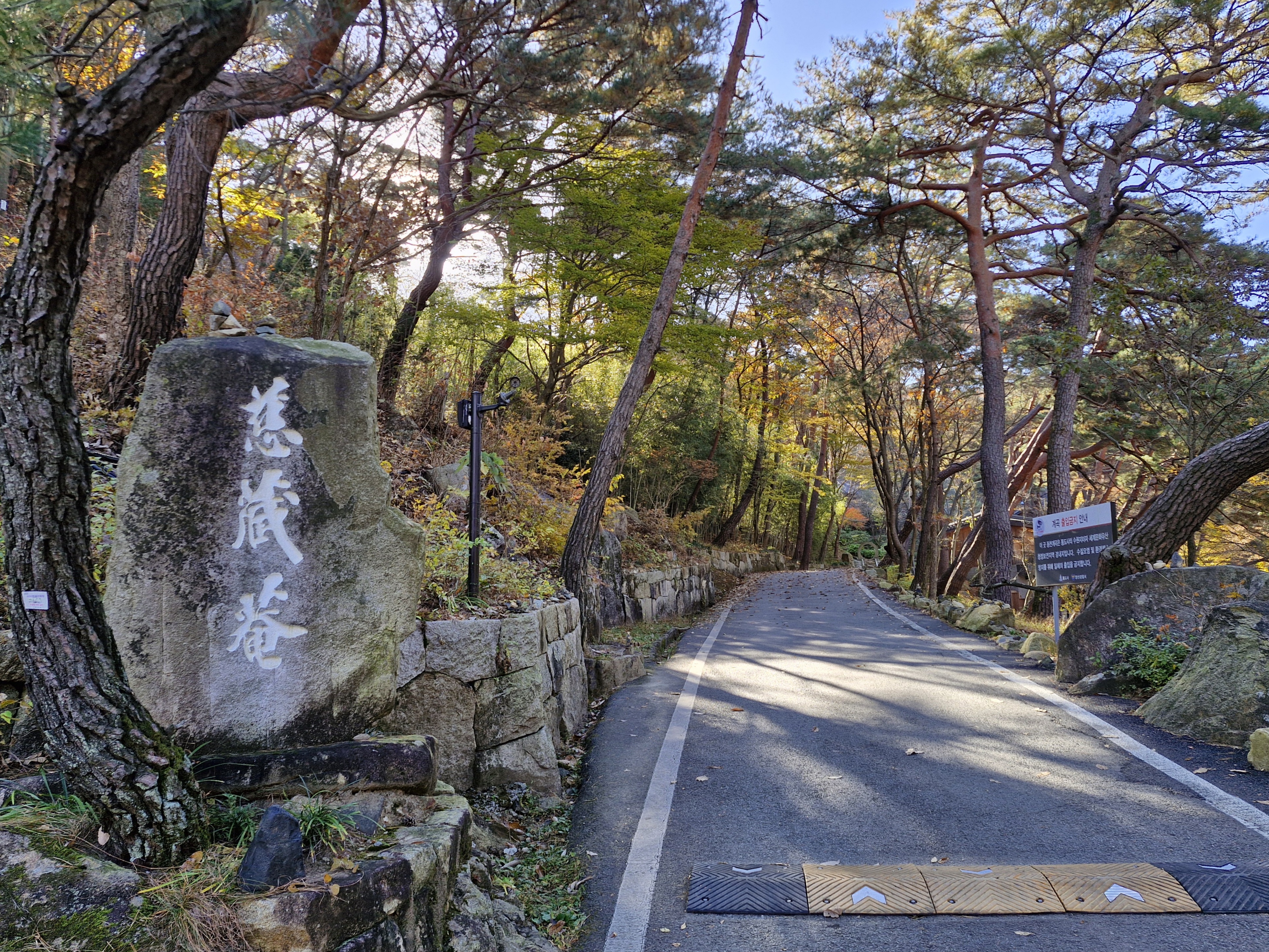 사명암과 백련암으로 가려니 부득이하게 차도로를 따라 걷는다.
