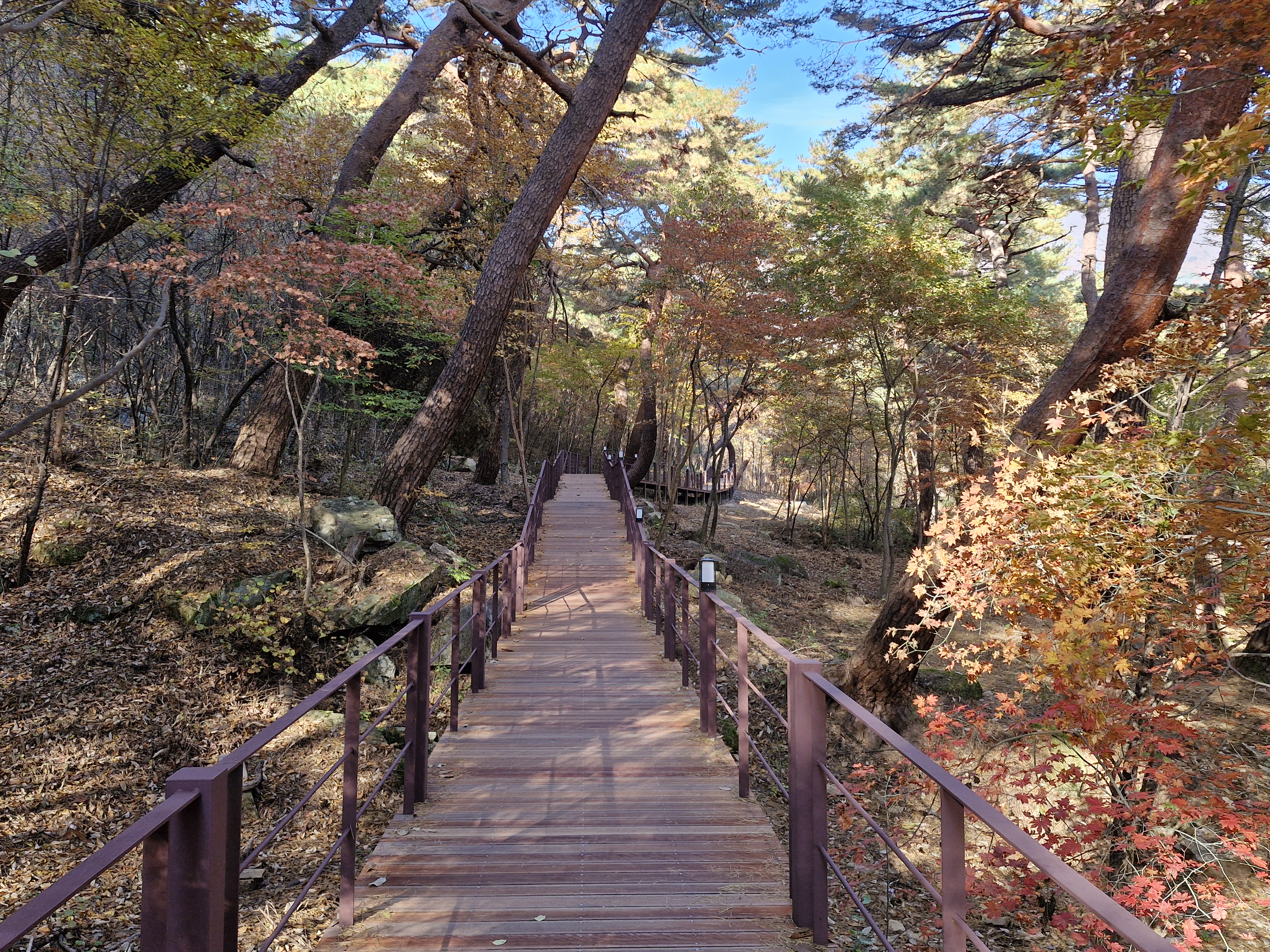 안양암을 돌아 나와 새로 조성된 데크 산책로를 걷는다.