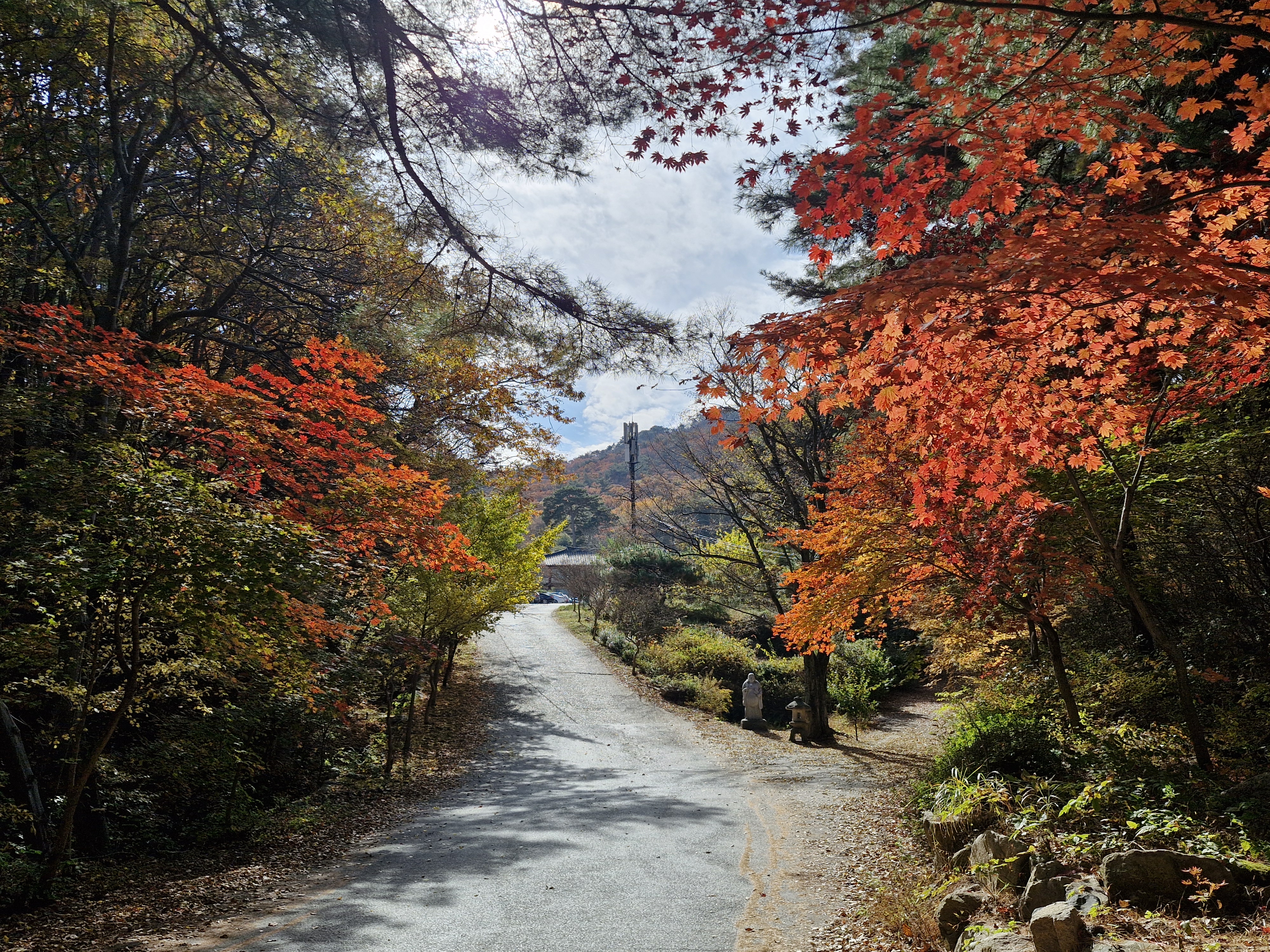 공양간 앞을 지나 절집 바깥으로 나오면서 오늘의 주목적인 단풍 걸음을 시작한다.