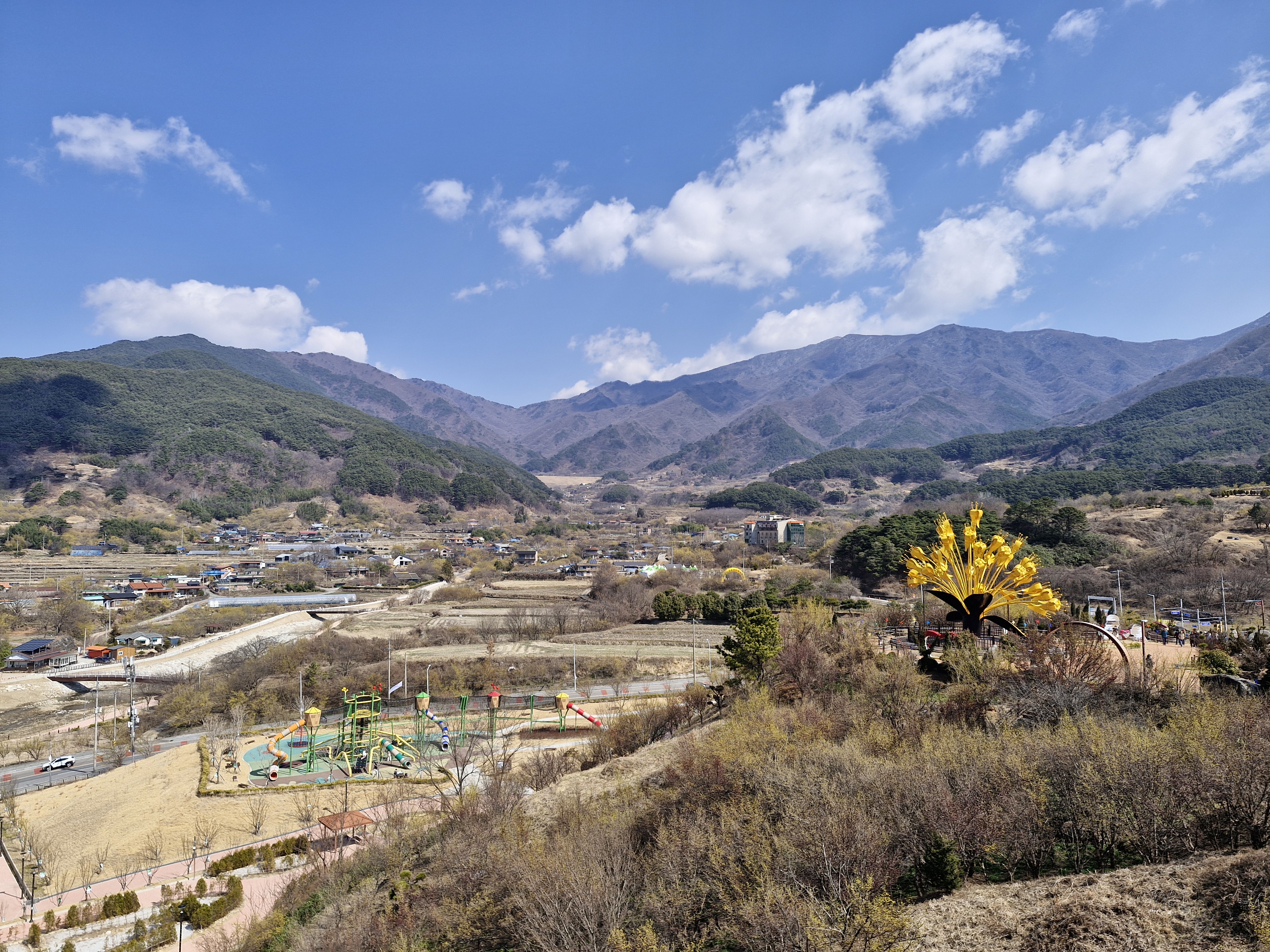 산수유꽃을 보러 왔으면 꽃을 봐야지 조형물에 욕심을 부리고 있으니... ㅎ