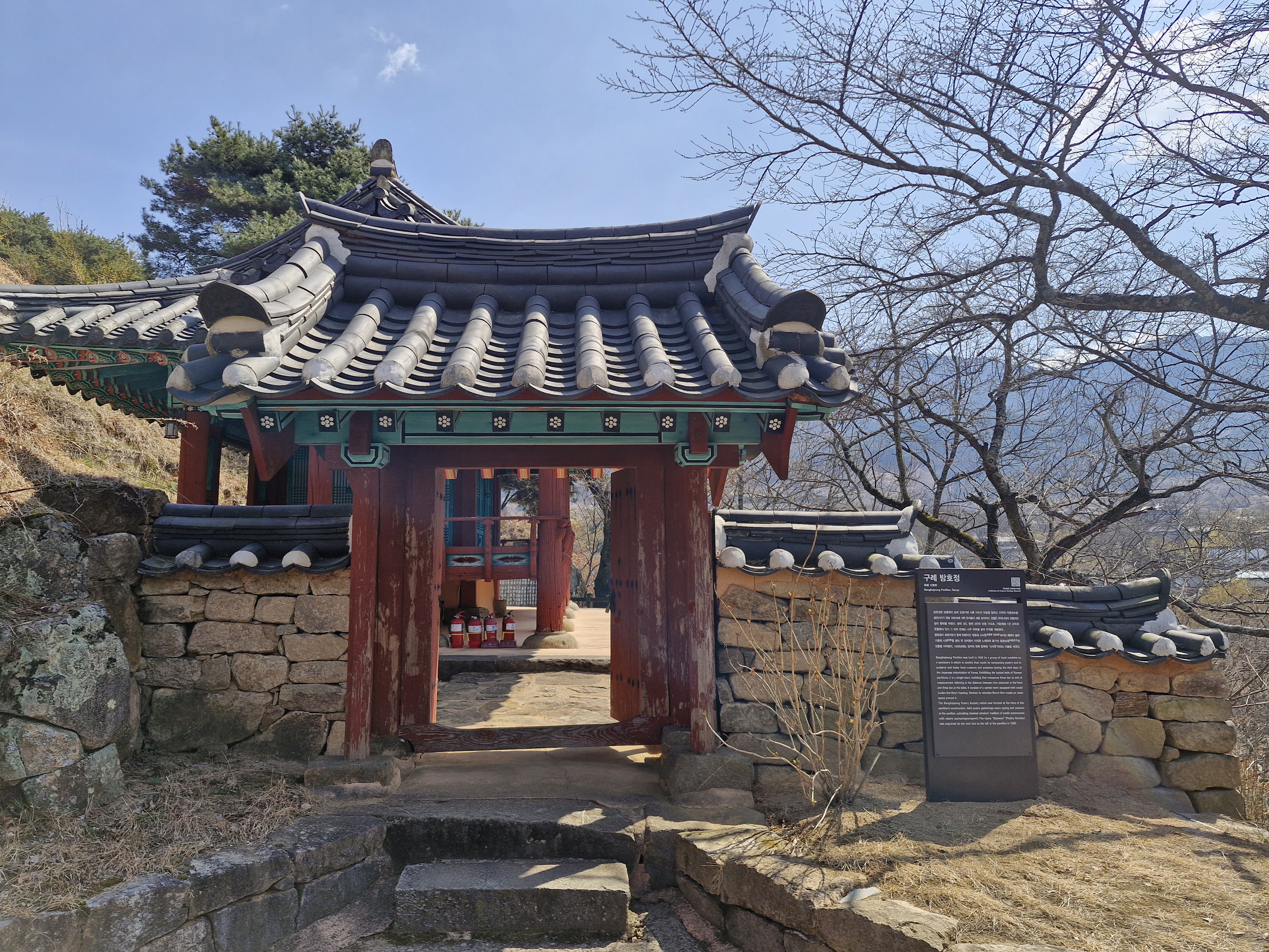 방호정은 일제강점기에 암울했던 시대적 상황을 시로 달래는 시 모임을 위해 지은 작은 정자이다.