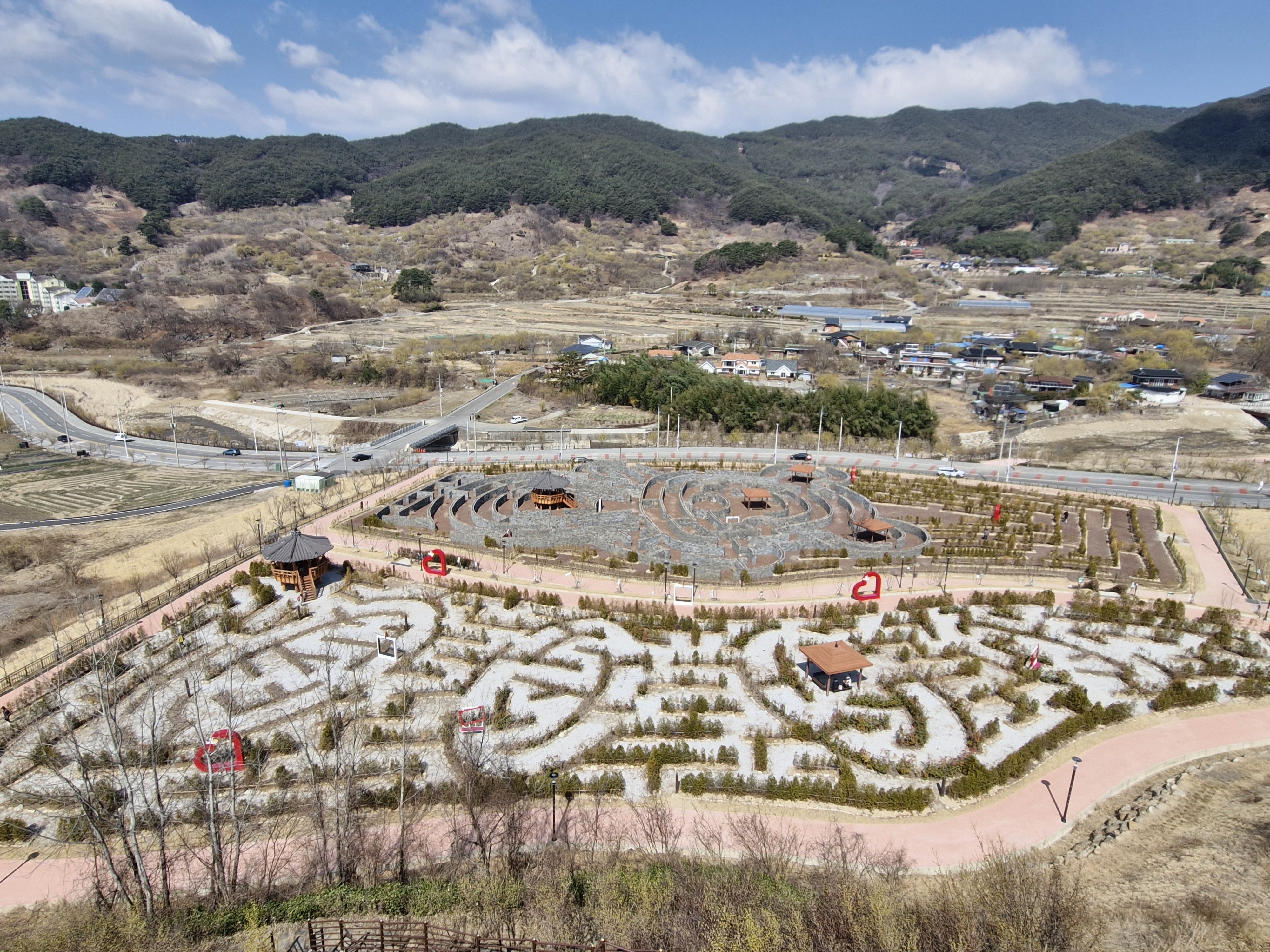 산수유사랑공원 아래쪽으로 미로공원이 들어서 있고...