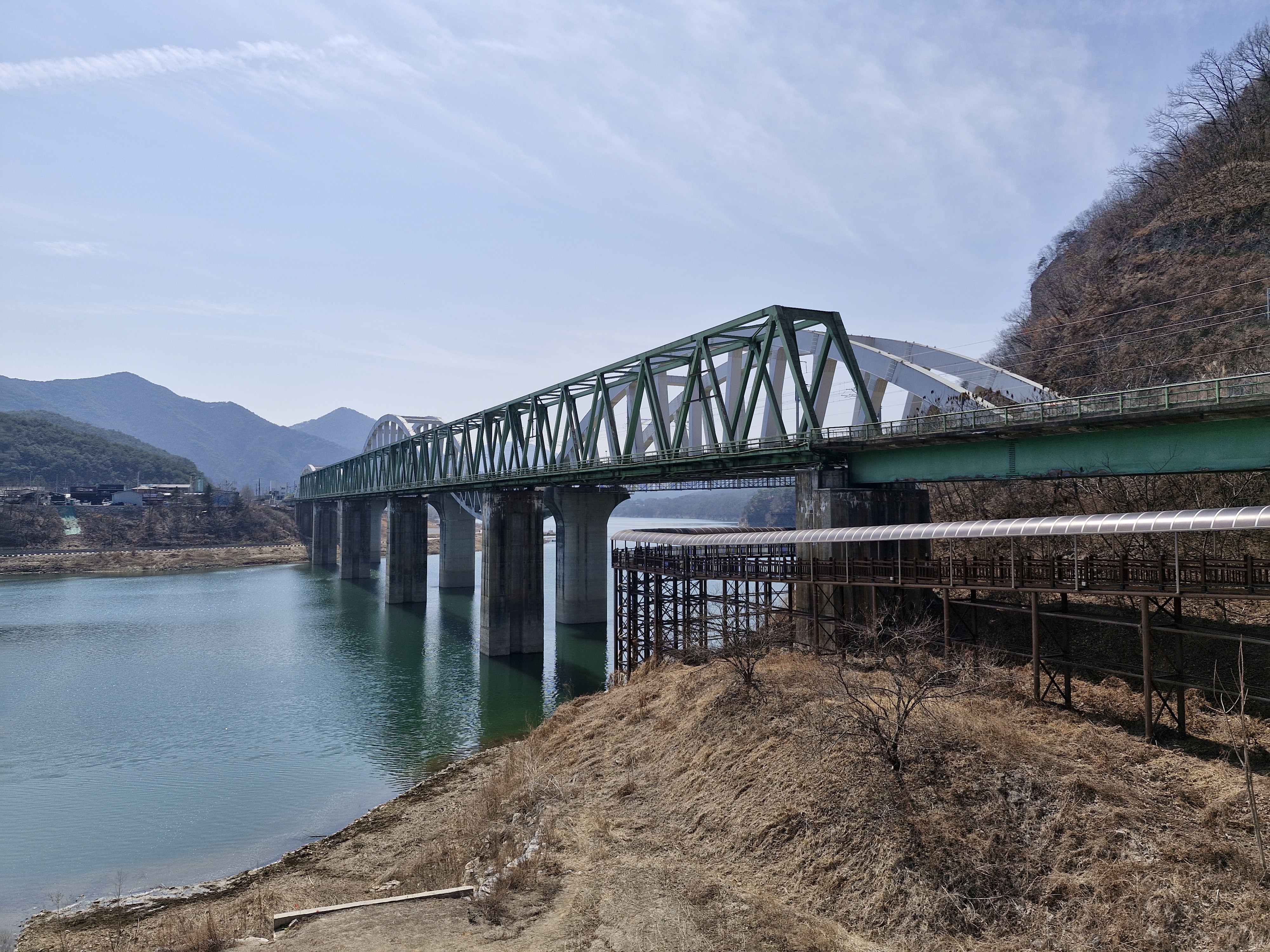 저만치 아래쪽으로 시루섬 출렁다리가 보인다.