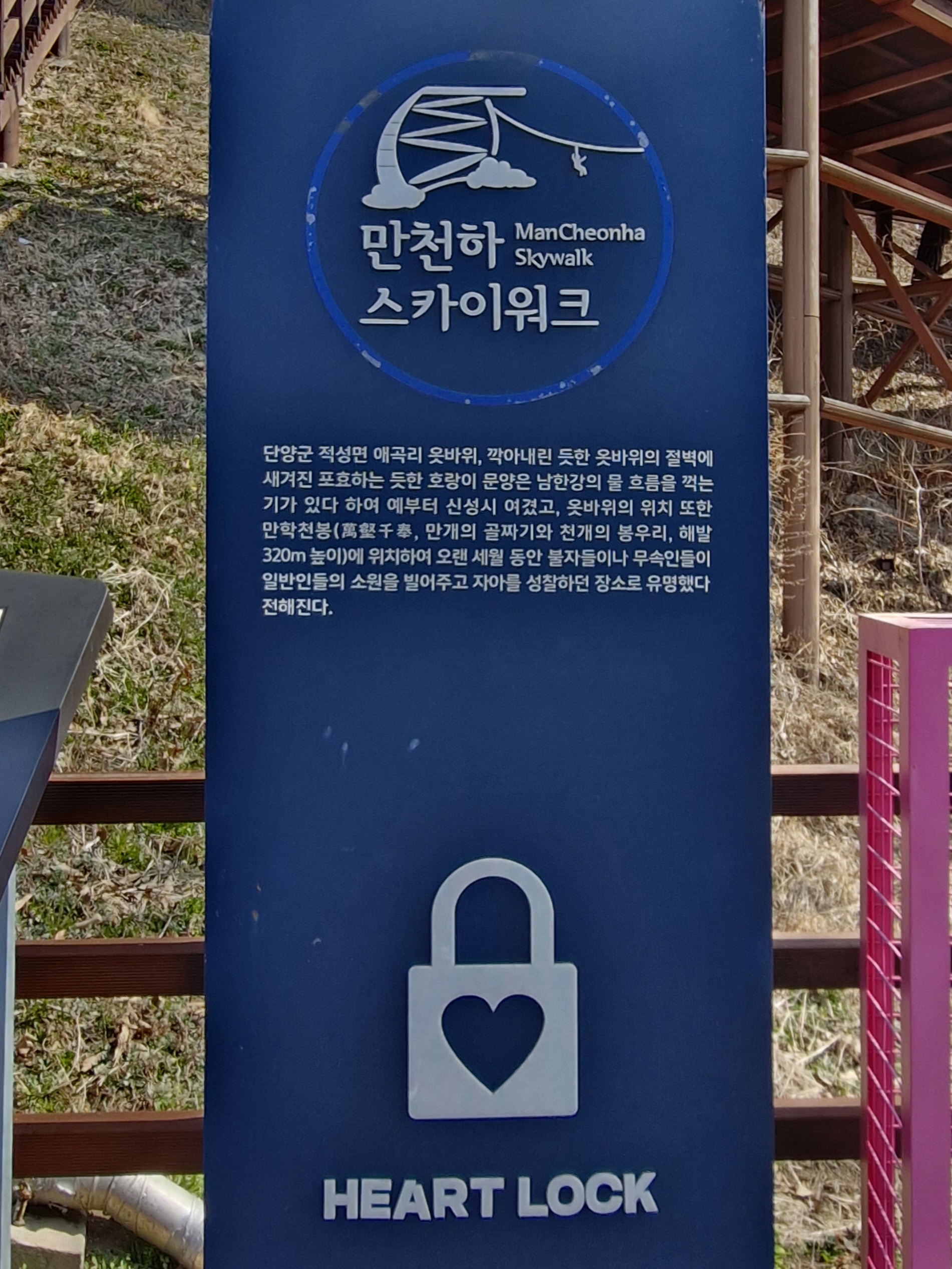 만천하스카이워크는 충청북도 단양군 적성면 옷바위길에 위치하고 있으며 남한강 절벽 위에서 수면 아래를 내려보며 하늘길을 걷는 스릴을 맛볼 수 있다.