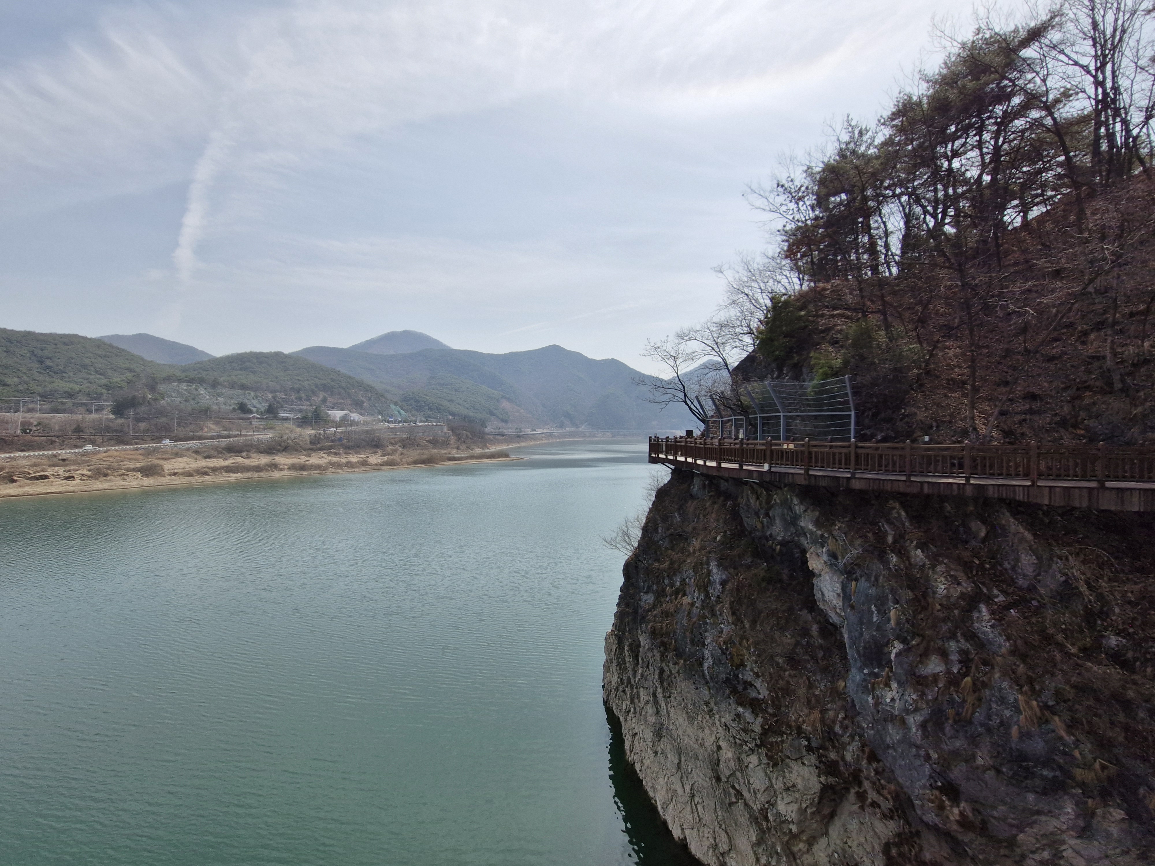 상진철교 아래를 지나면 절벽을 끼고 걷게 된다.