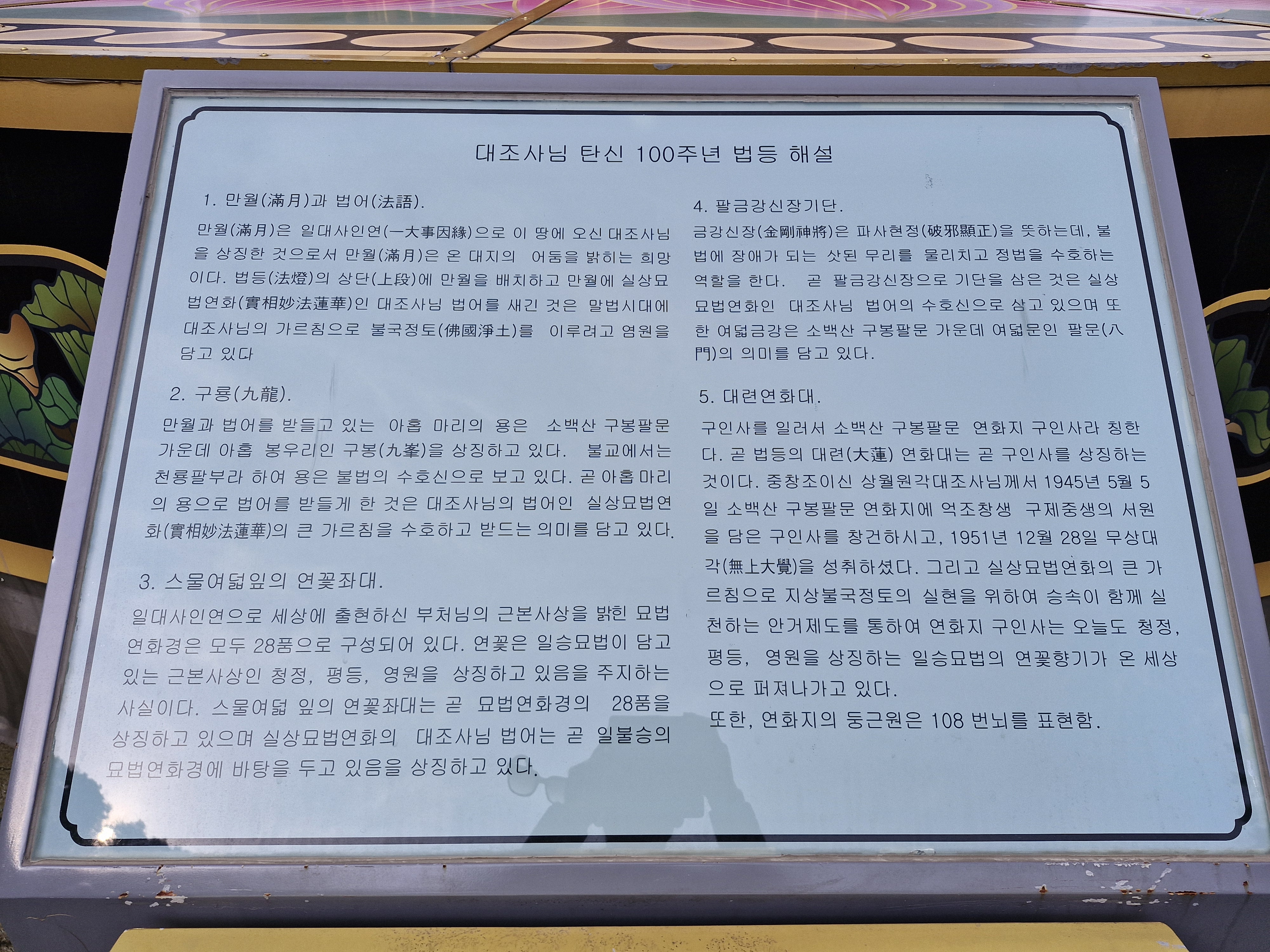 마눌 무릎을 핑계로 차로 절 안까지 들어오고 싶었으나 구인사 입구 주차장 출입부터 차단되어 어쩔 수 없이 걸었다.
