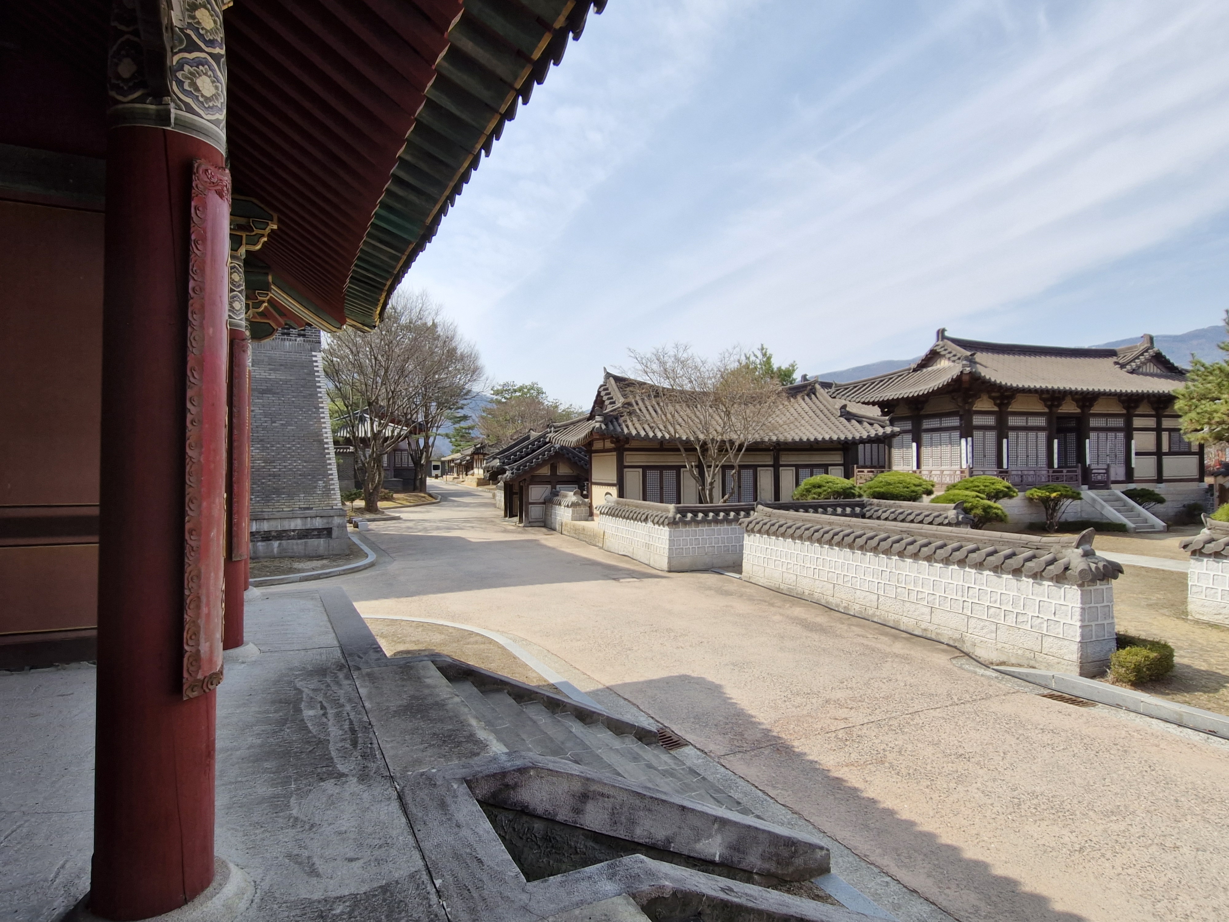 가운데 통로를 중심으로 건너편의 궁궐과는 대조적인 기와집과 초가집, 저잣거리까지....