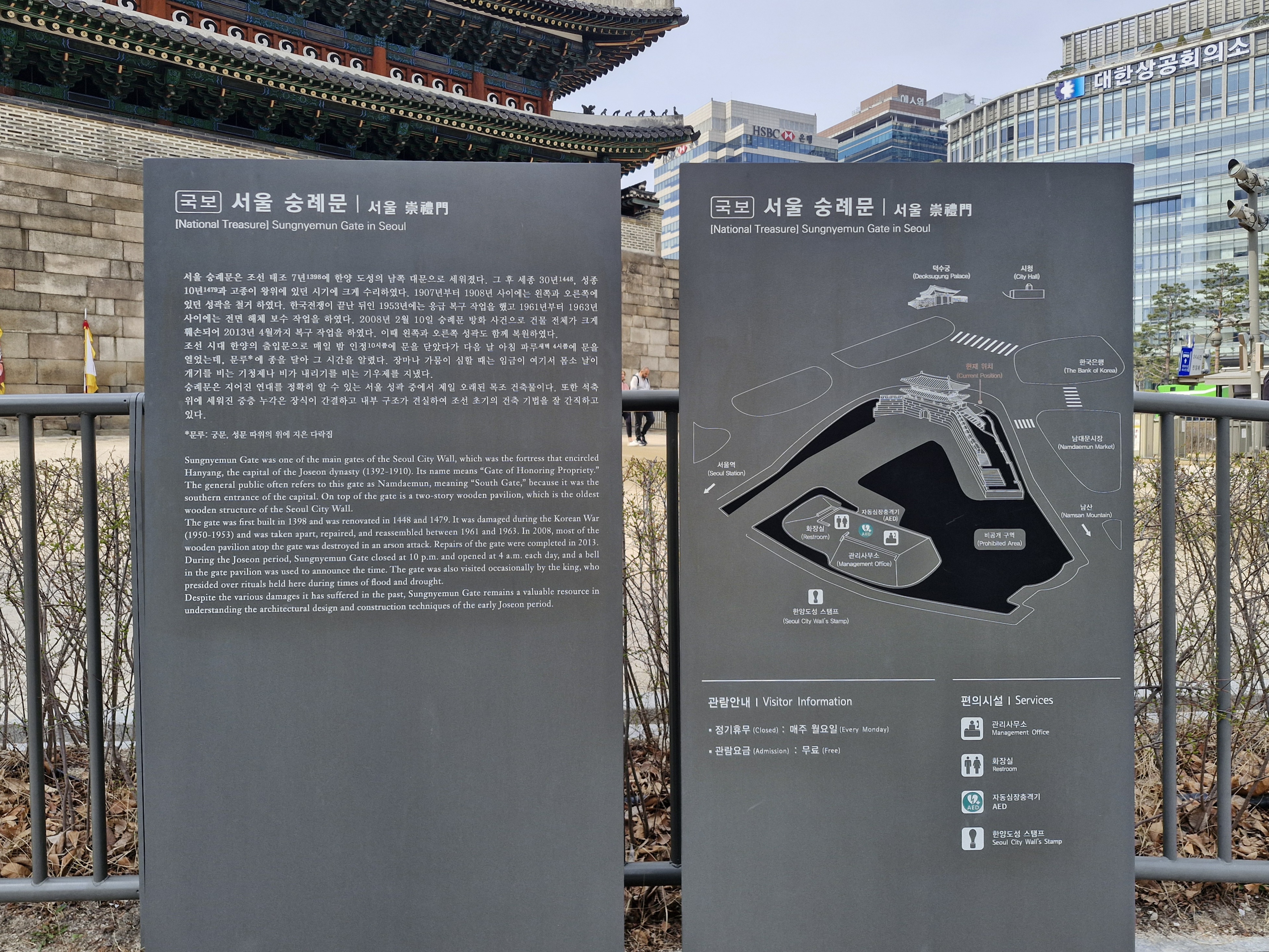 숭례문교차로를 건너면 '국보 숭례문'에 대한 설명이 되어있고...