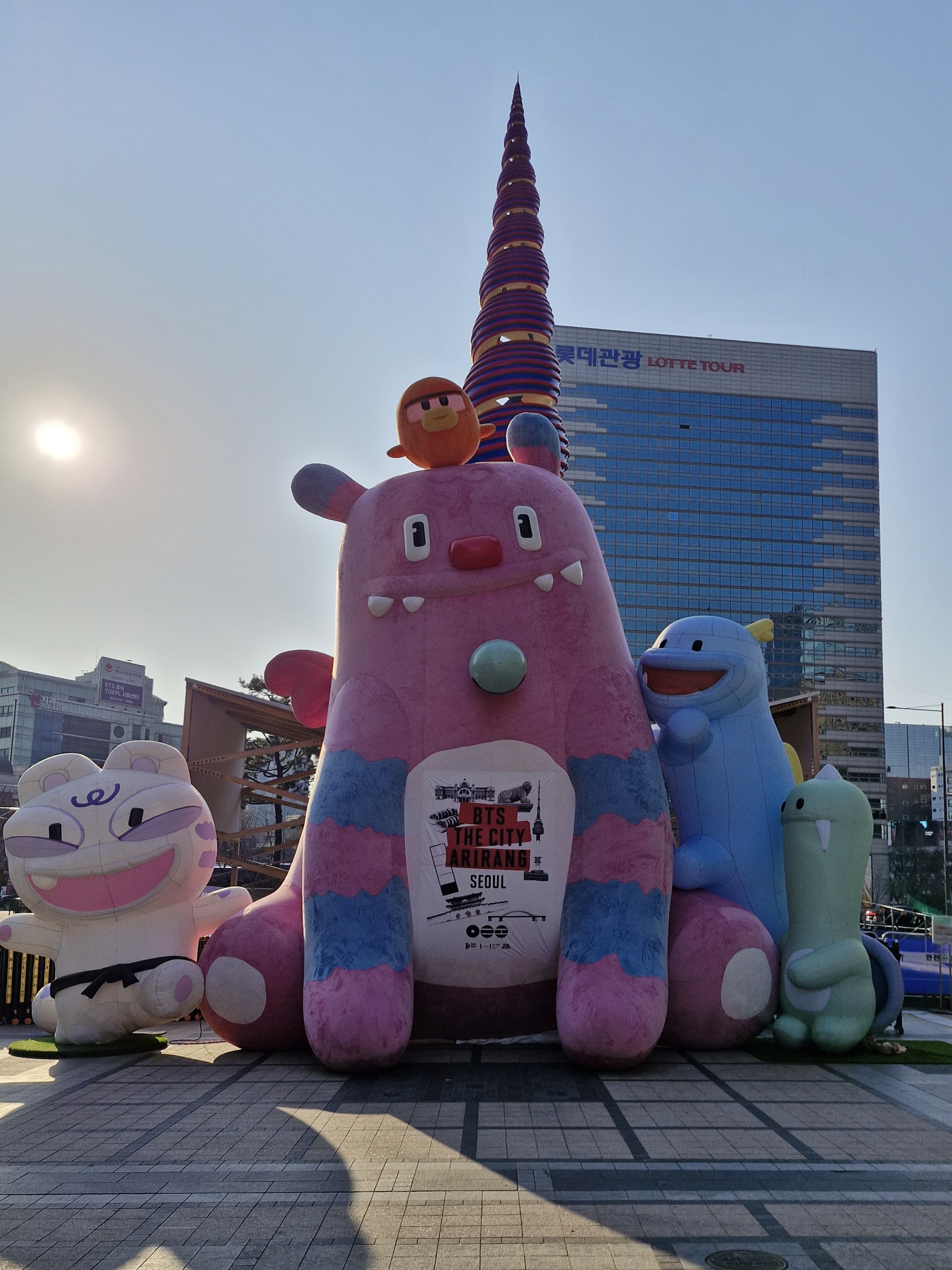 서울시의 공식 마스코트인 해치 조형물이 앞뒤로 있고...