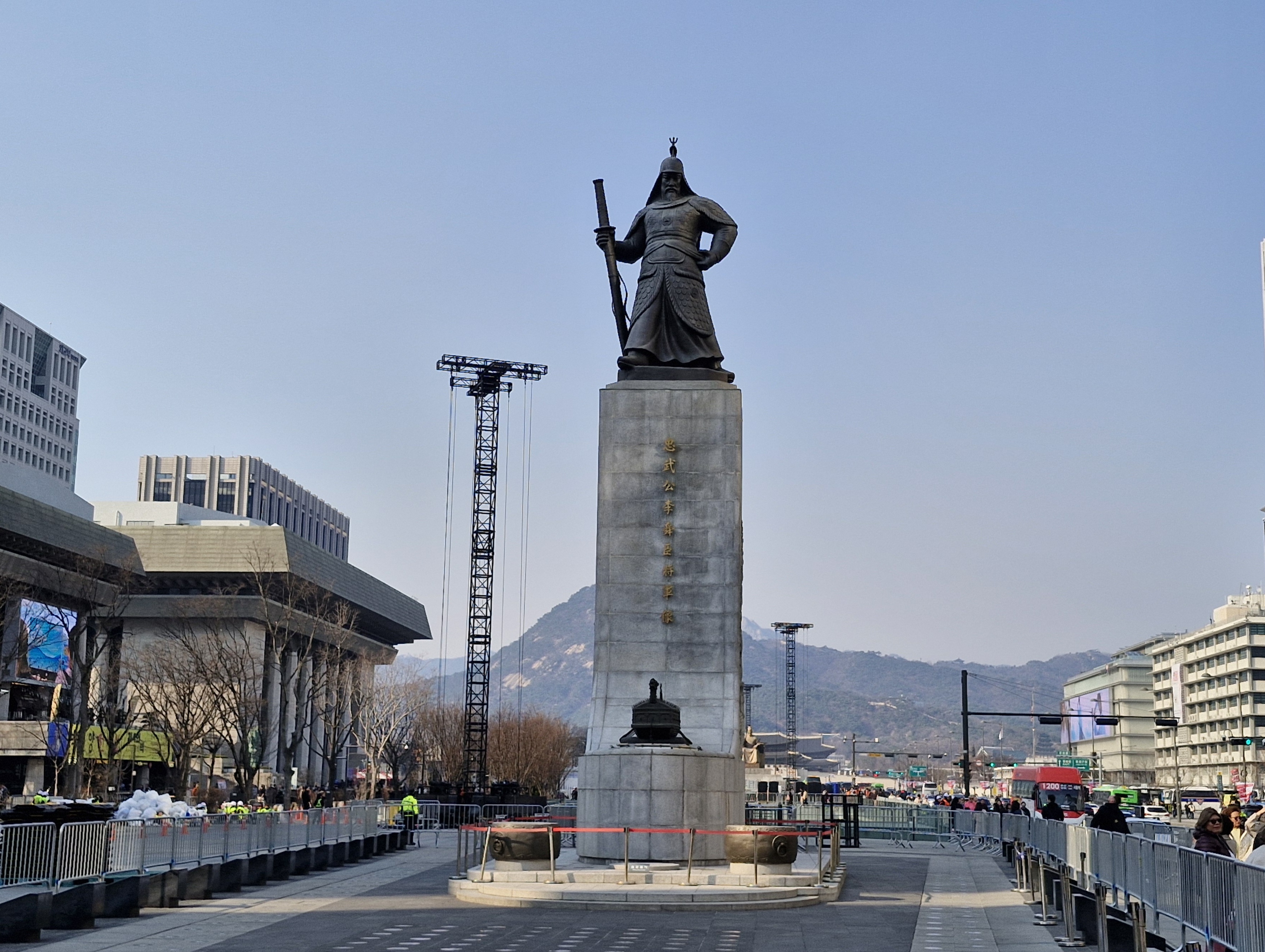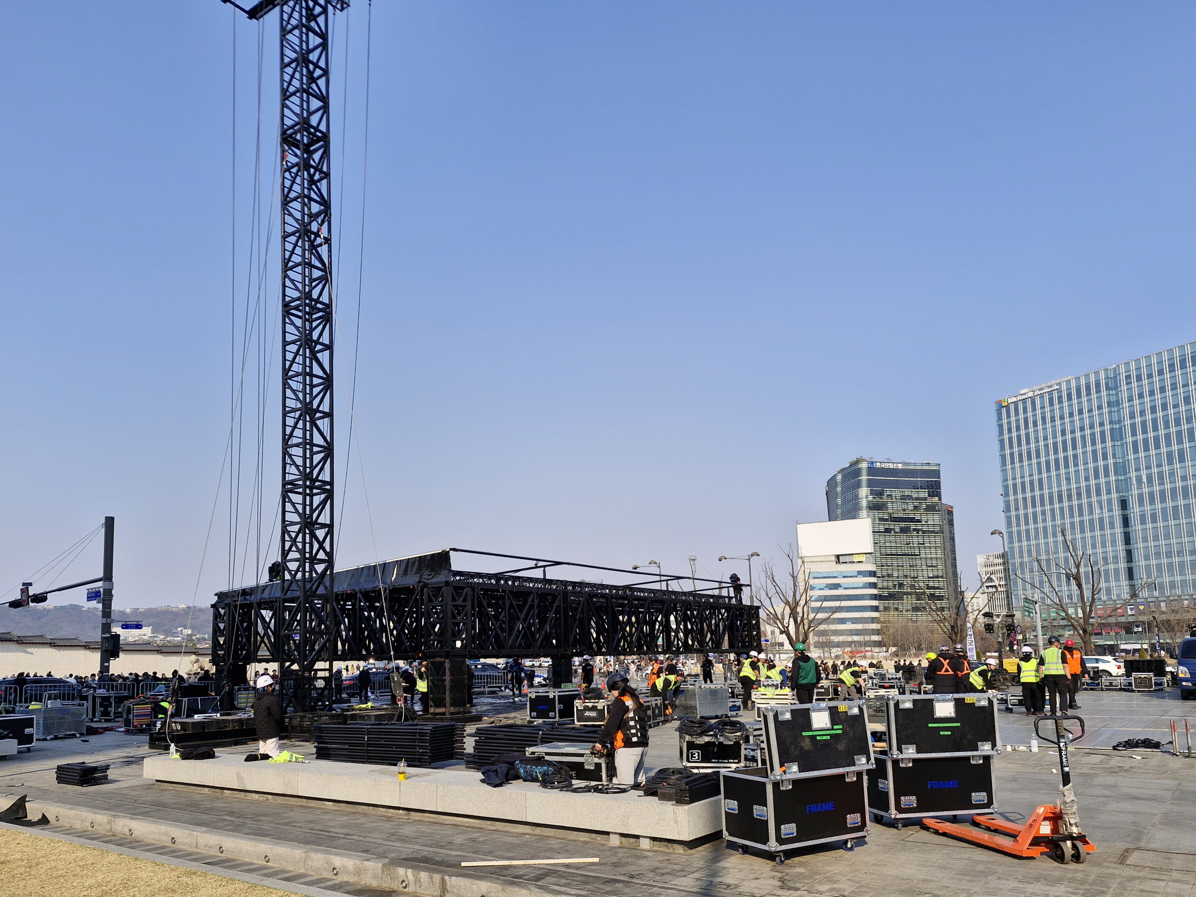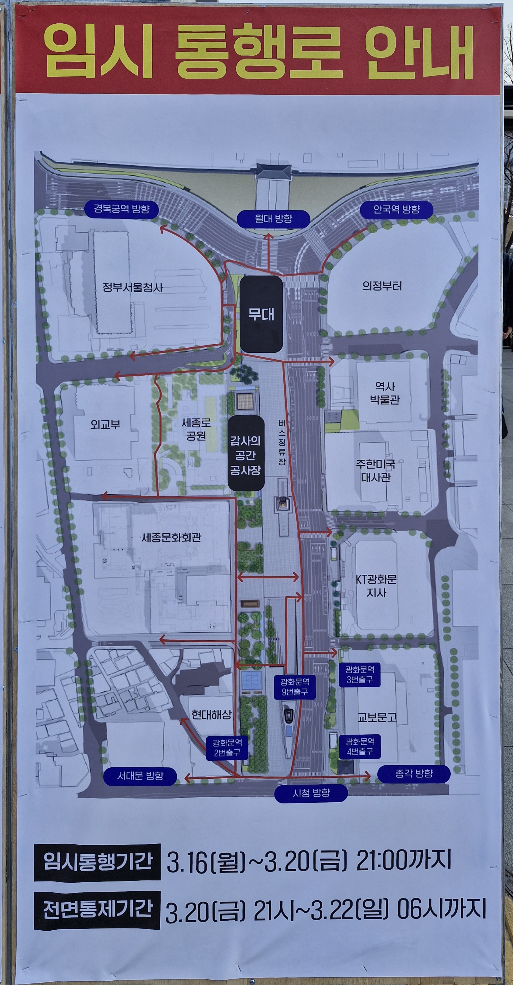 전날 저녁에 있었던 BTS 광화문 공연의 무대철거 및 정리로 광화문 광장 대부분은 여전히 통제 중이었다.