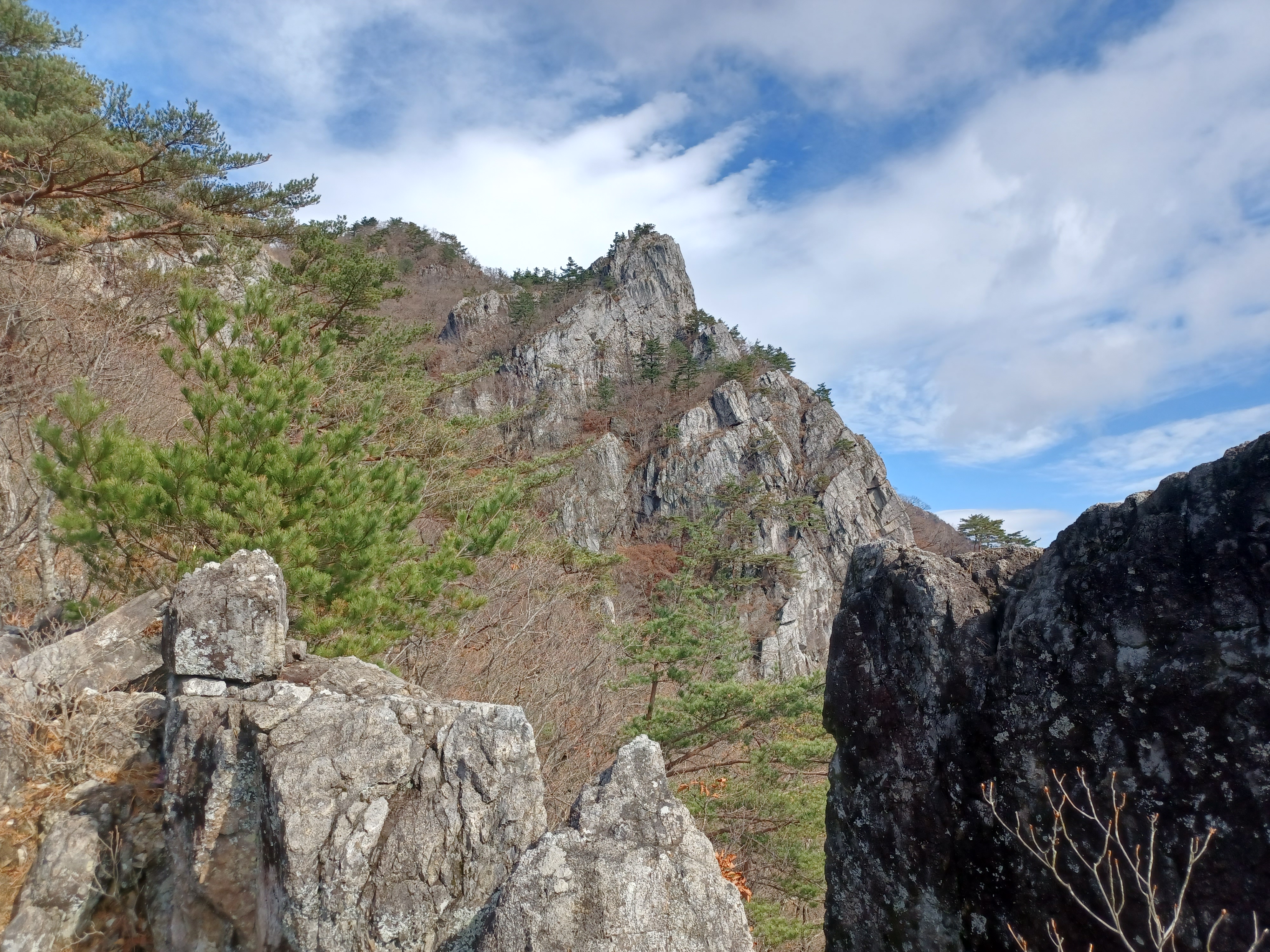 오르는 내내 비로암 중앙 능선 암봉을 눈앞에 둘 수 있다.