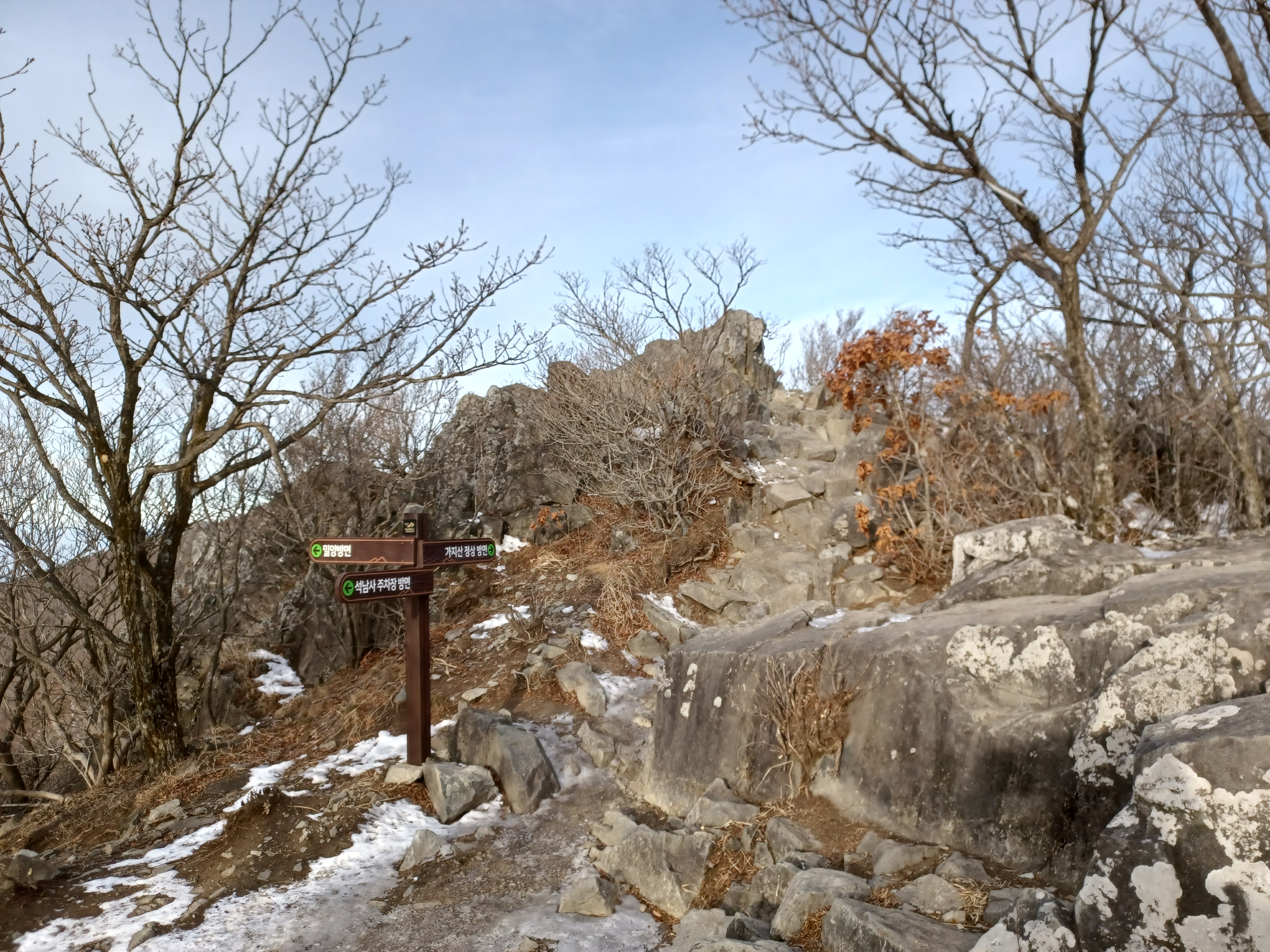 새해 첫날 가지산을 오르려다 일출을 보러 온 사람들이 무질서하게 주차해 놓은 차들로 오가지도 못하고 차 안에 갇혀 1시간을 허비하다가 영축산으로 피산을 해야 했던 가지산을 다시 찾았다.
