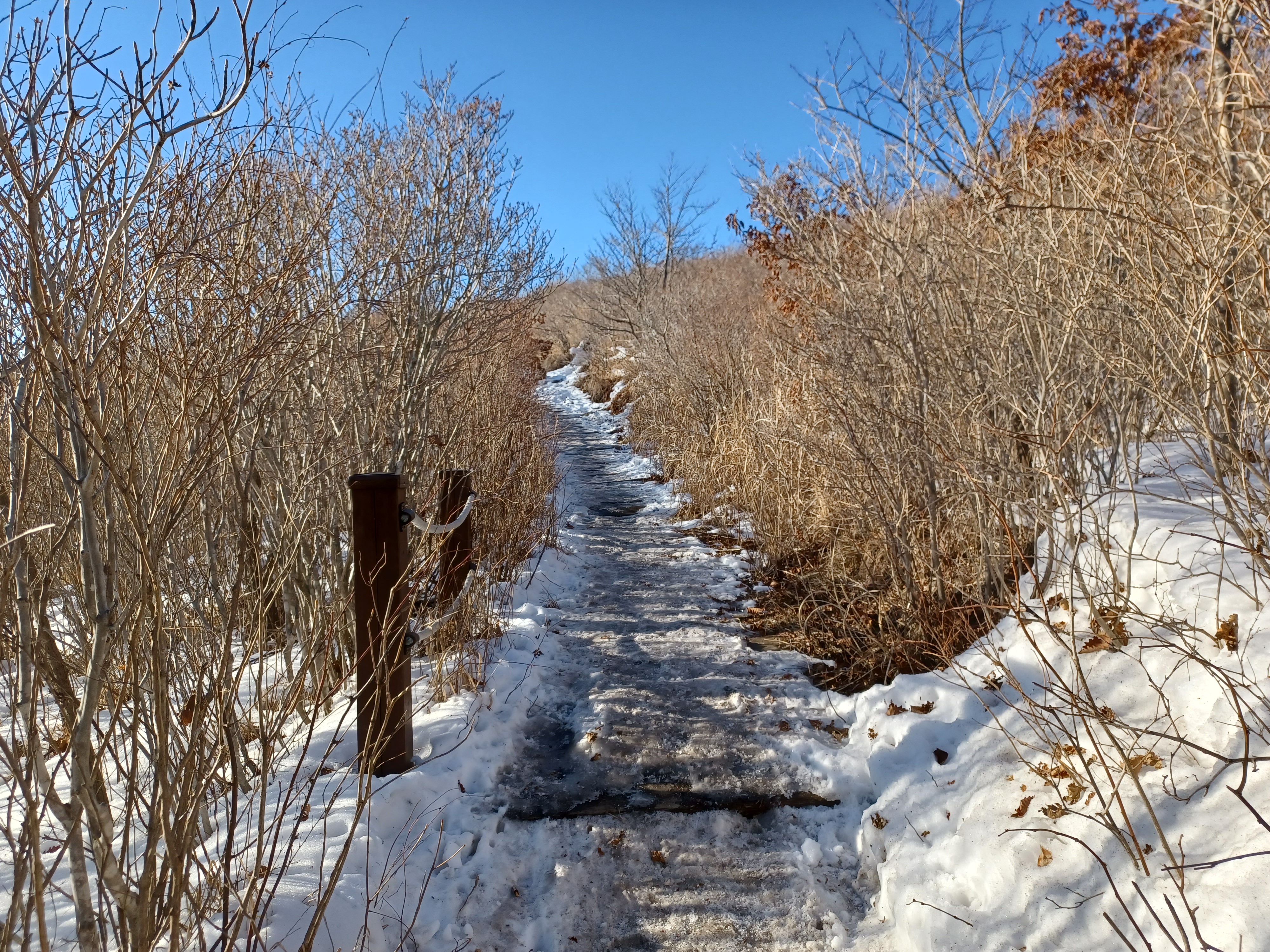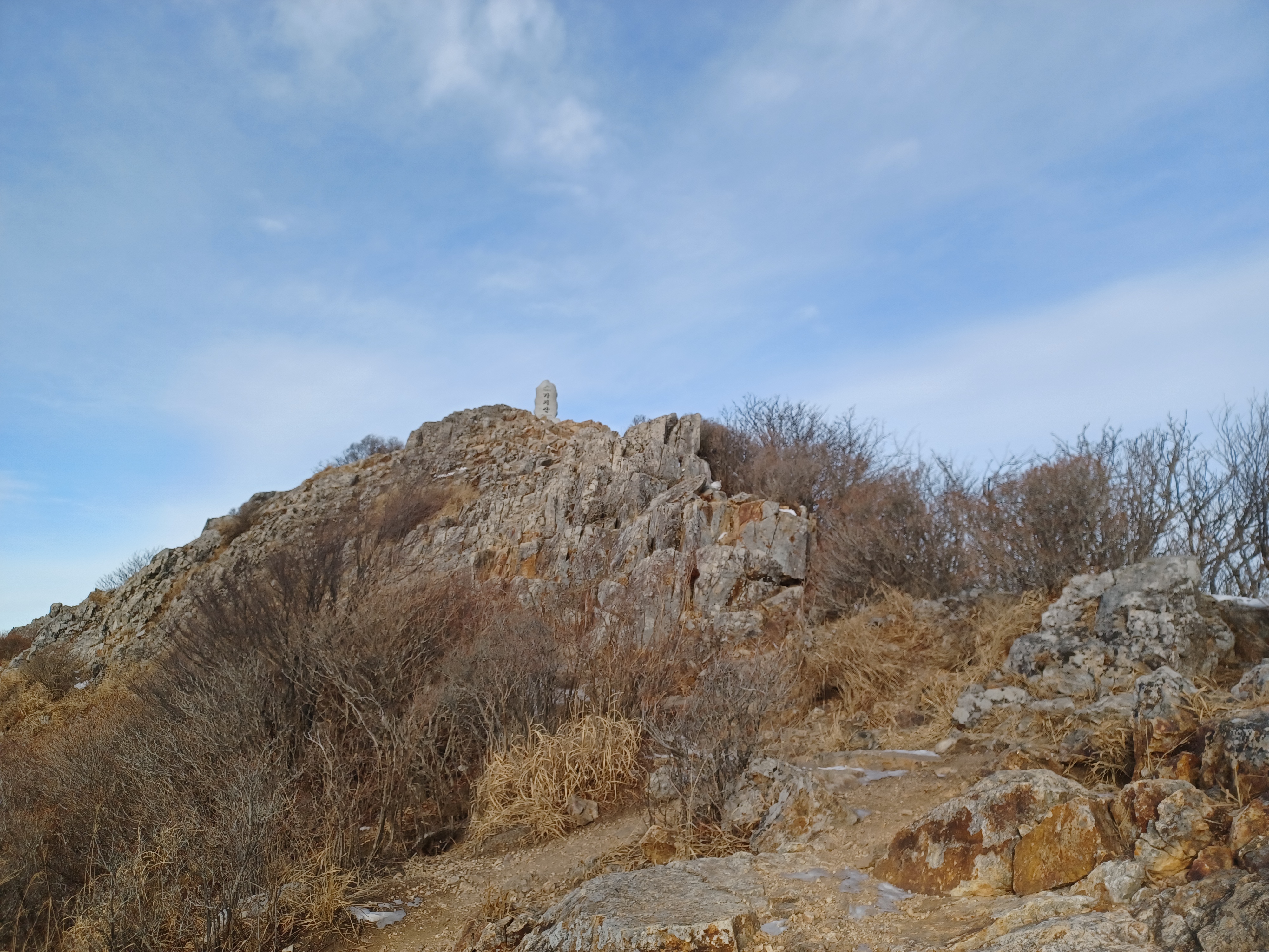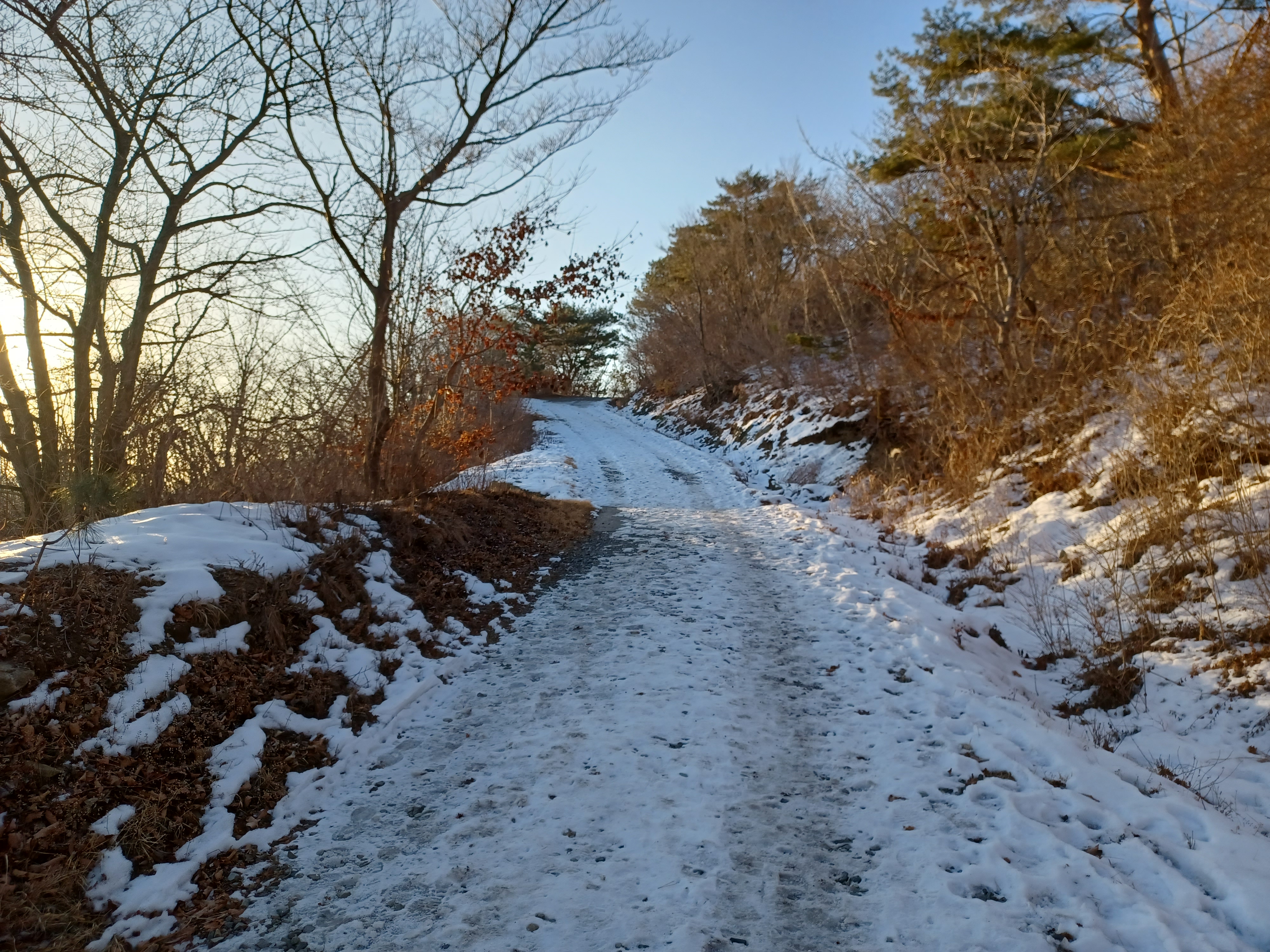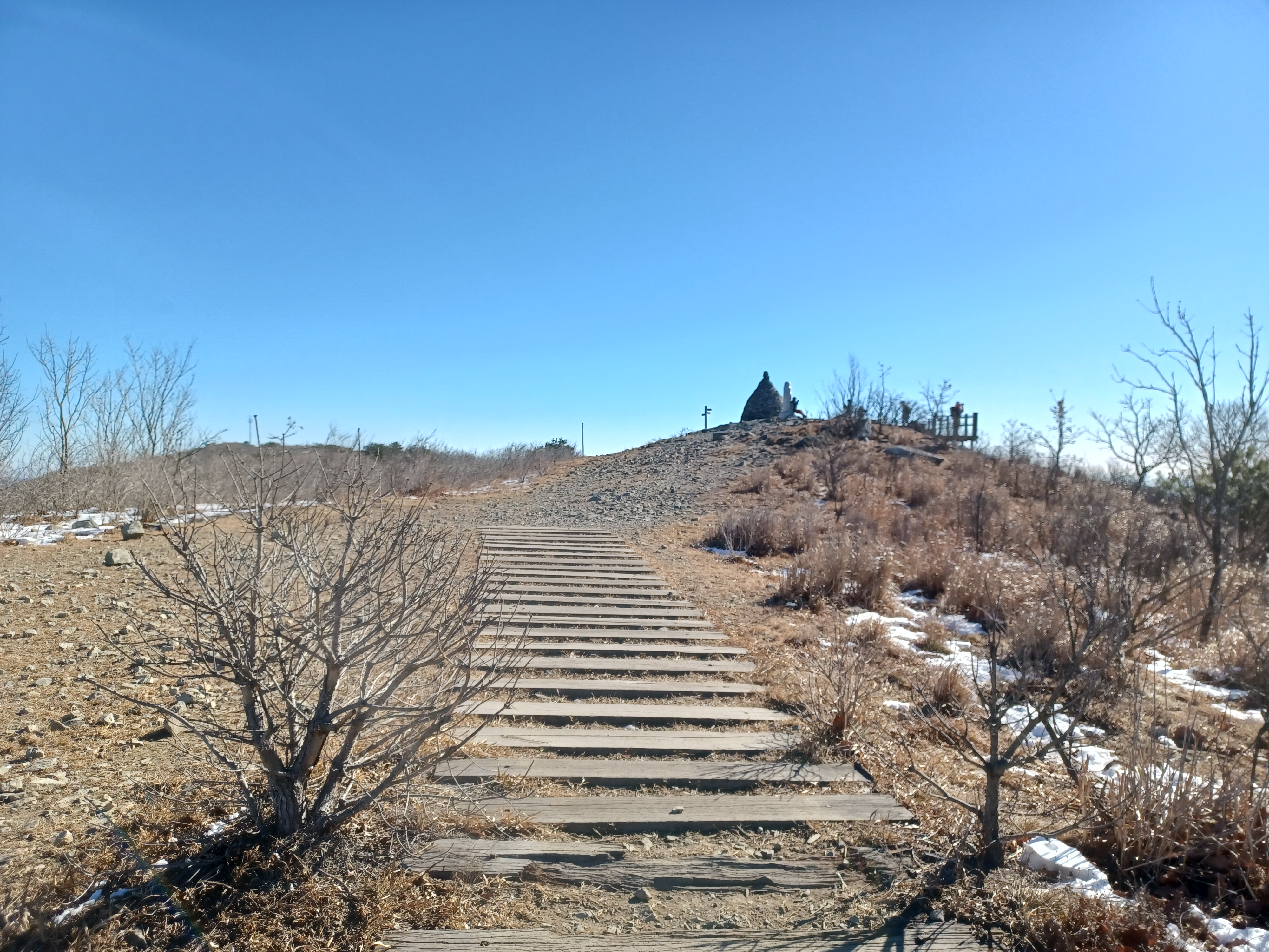 정상이 가까운 응달에는 잔설들이 얼어붙어 조금 미끄러웠다.