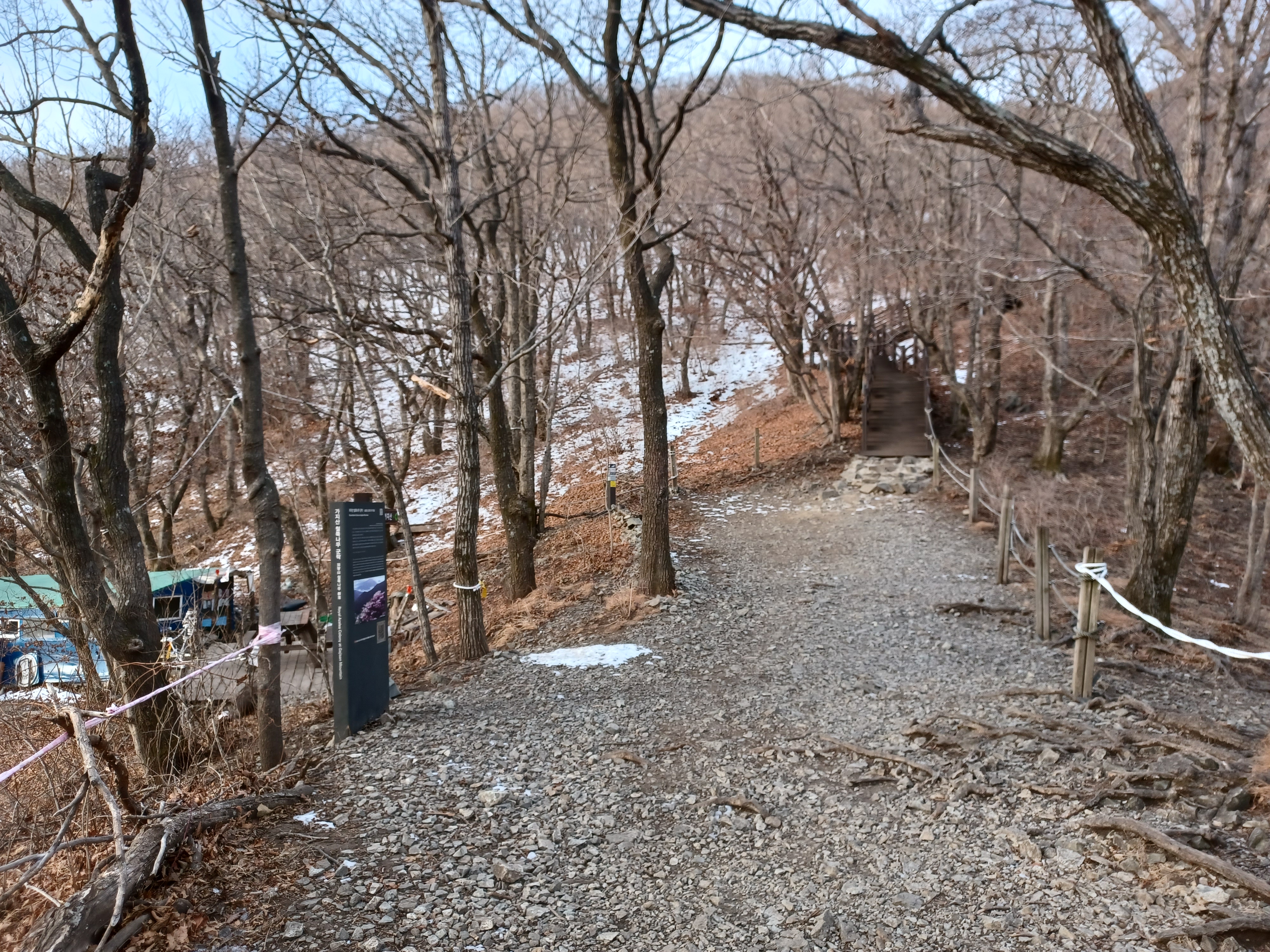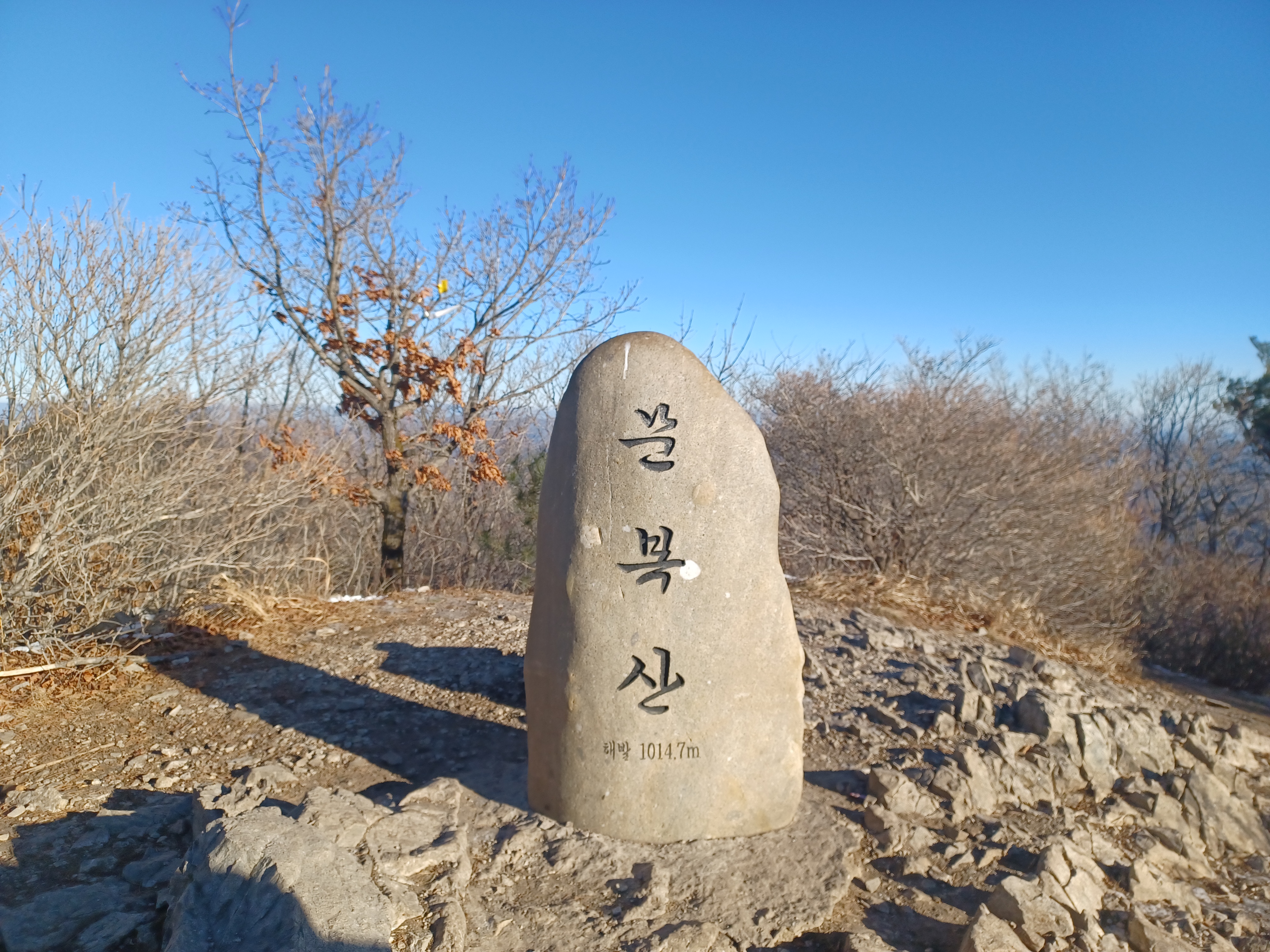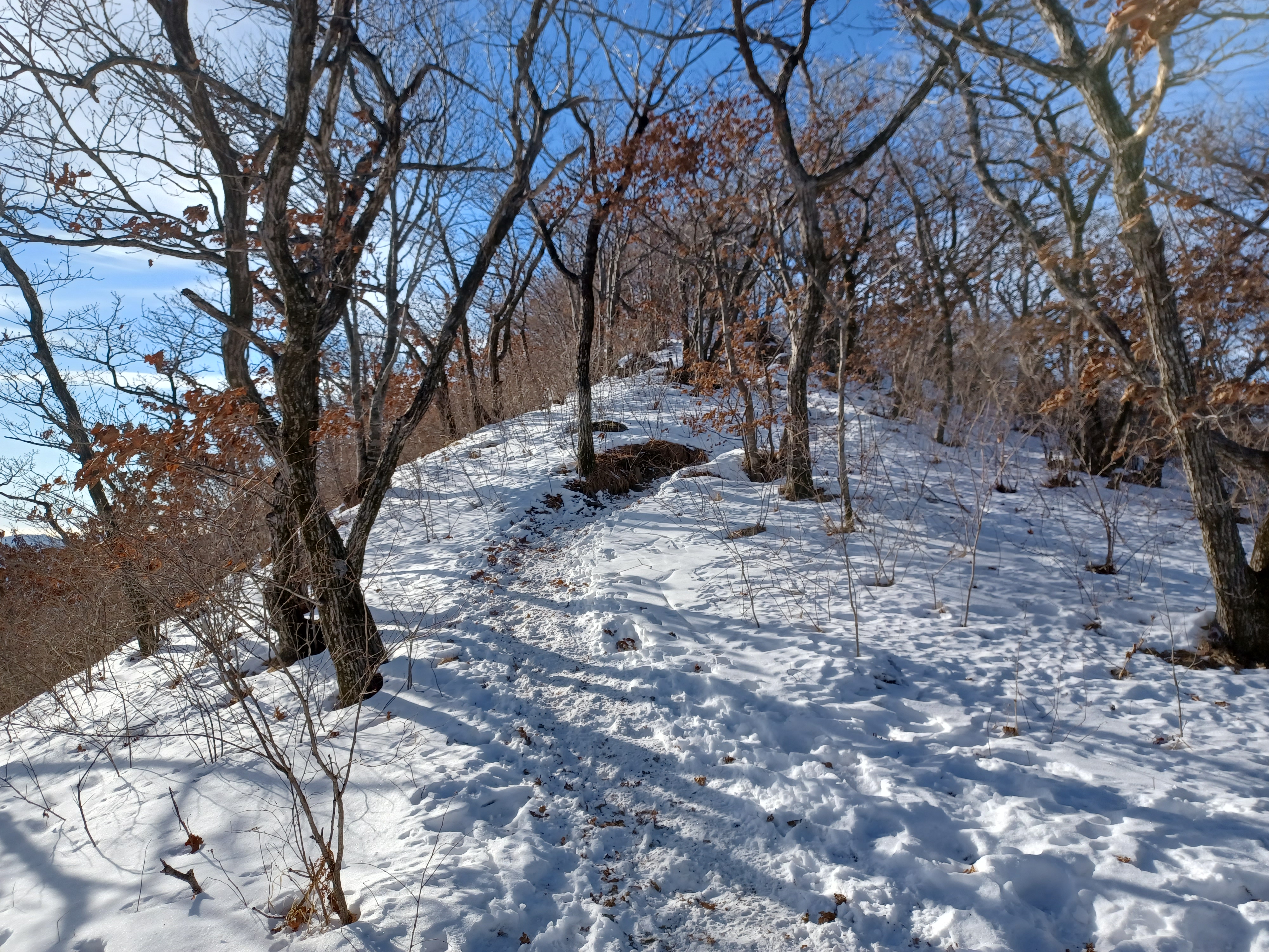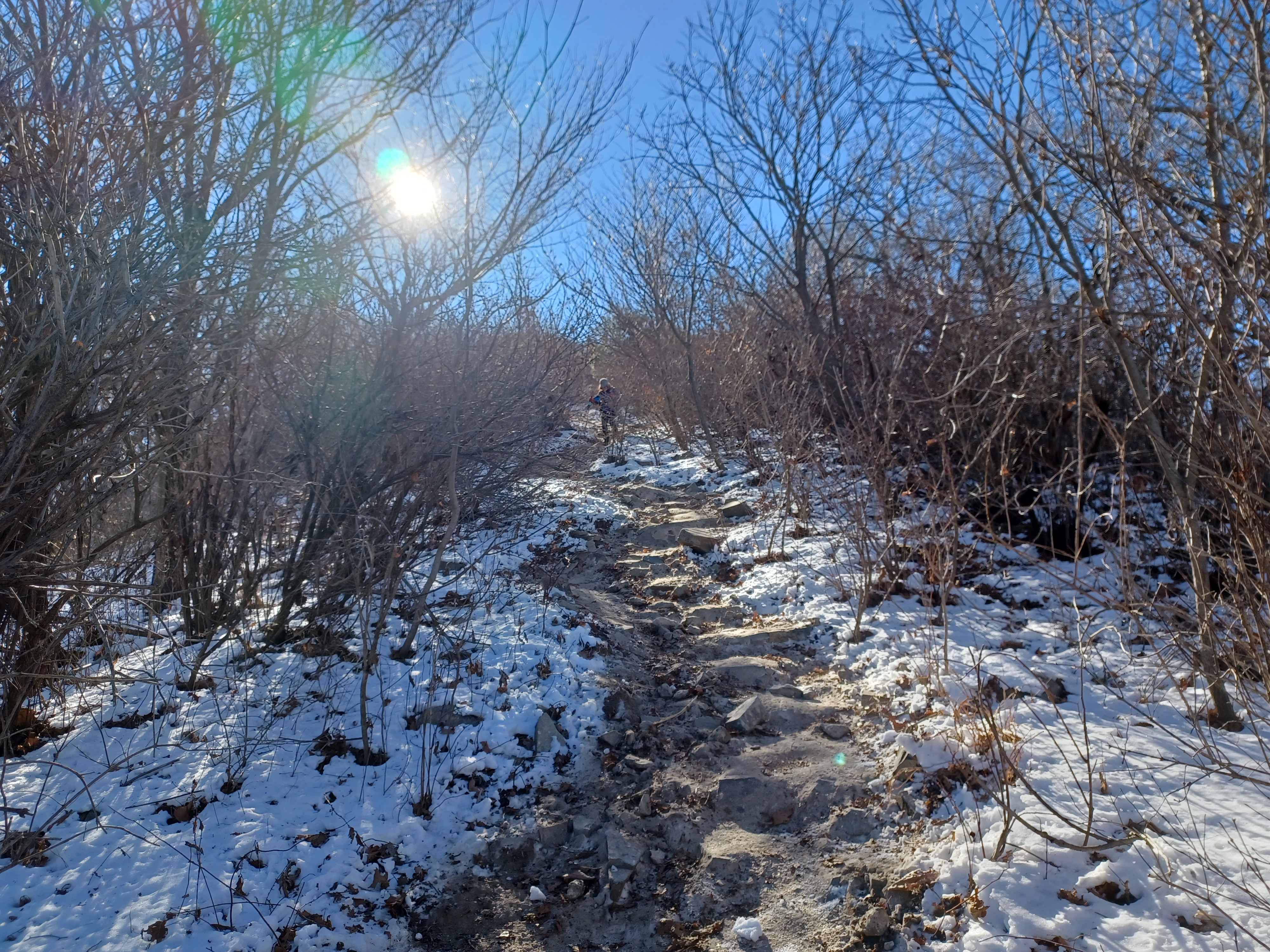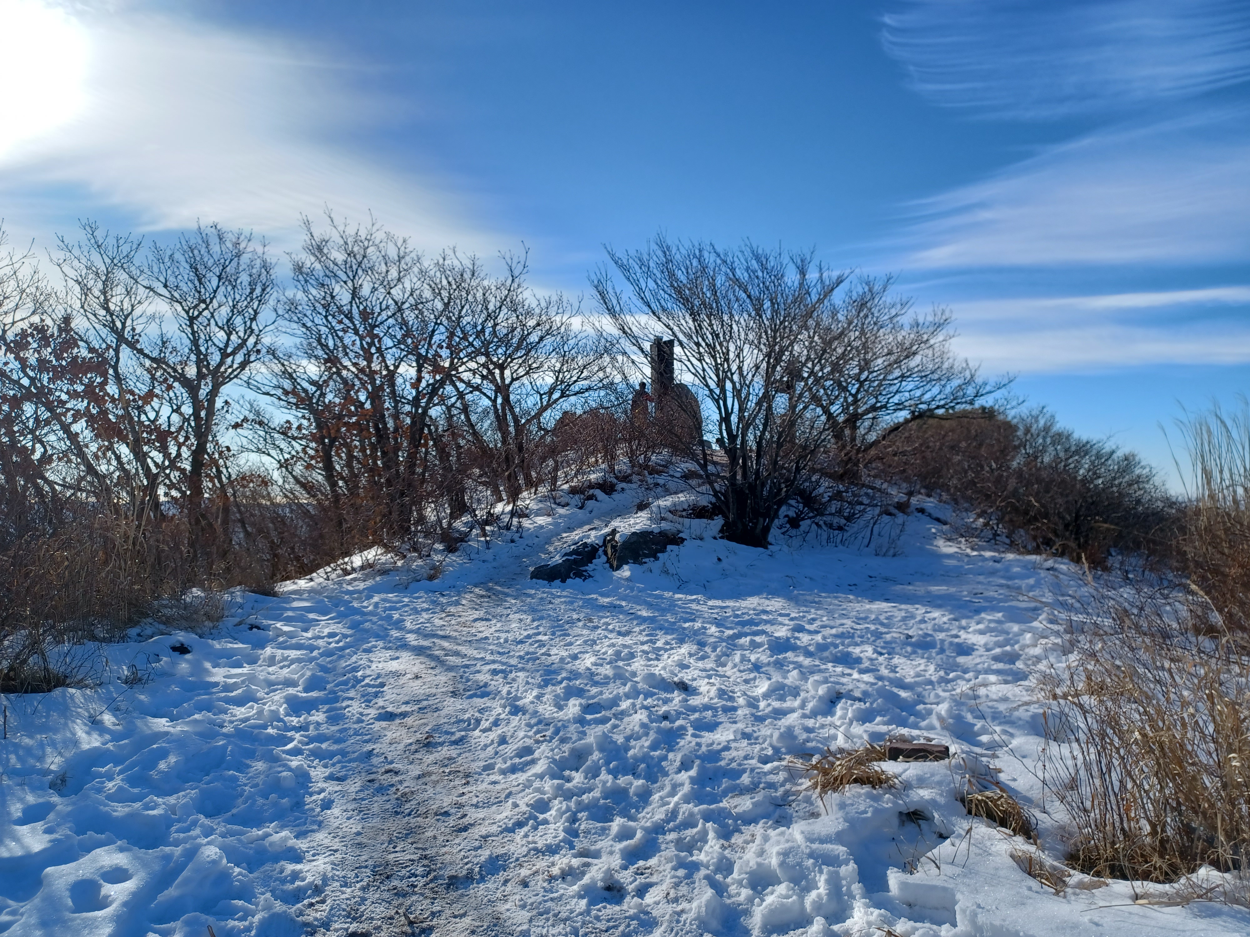 정상이 가까운 응달에는 잔설들이 얼어붙어 조금 미끄러웠다.
