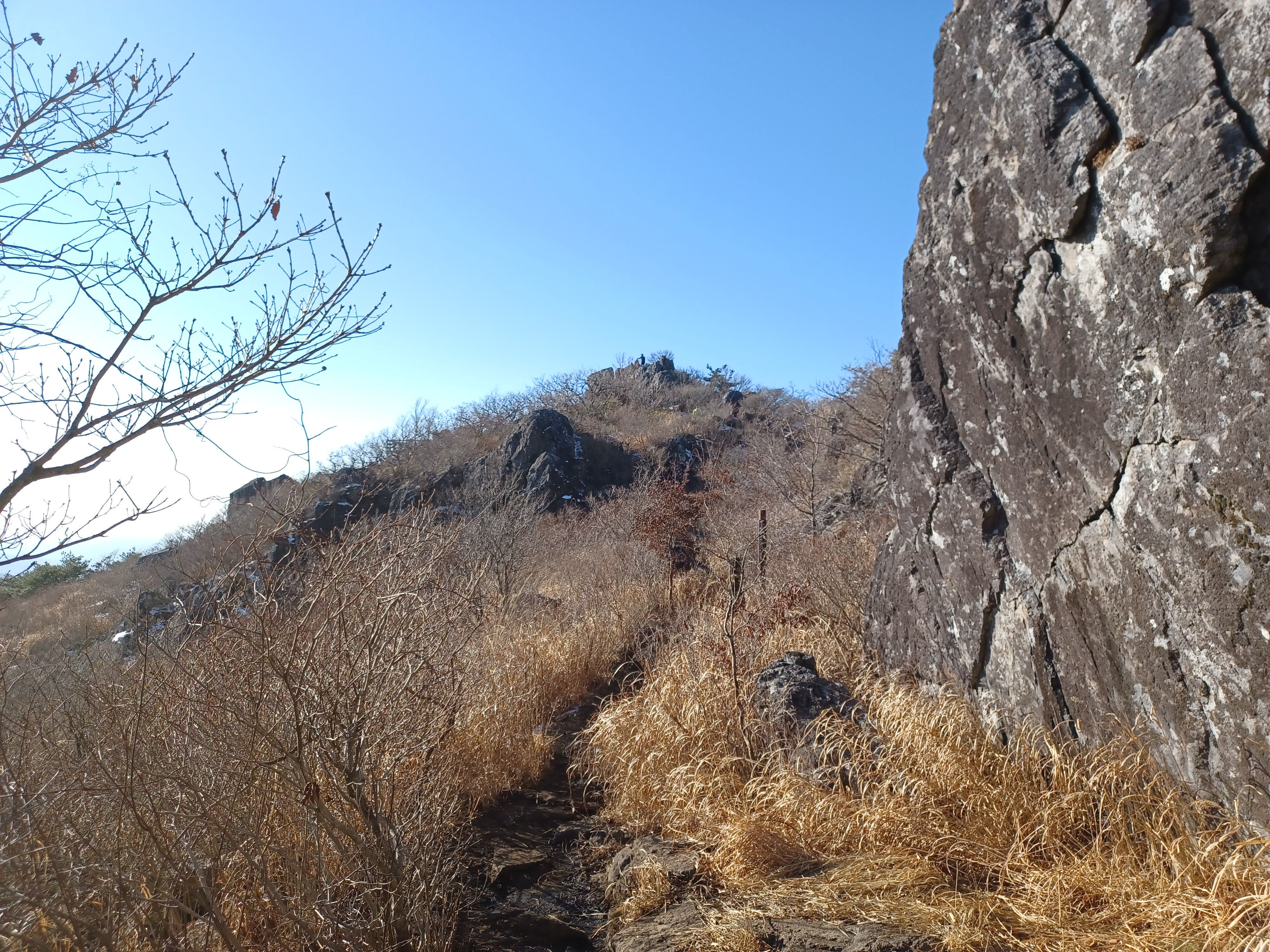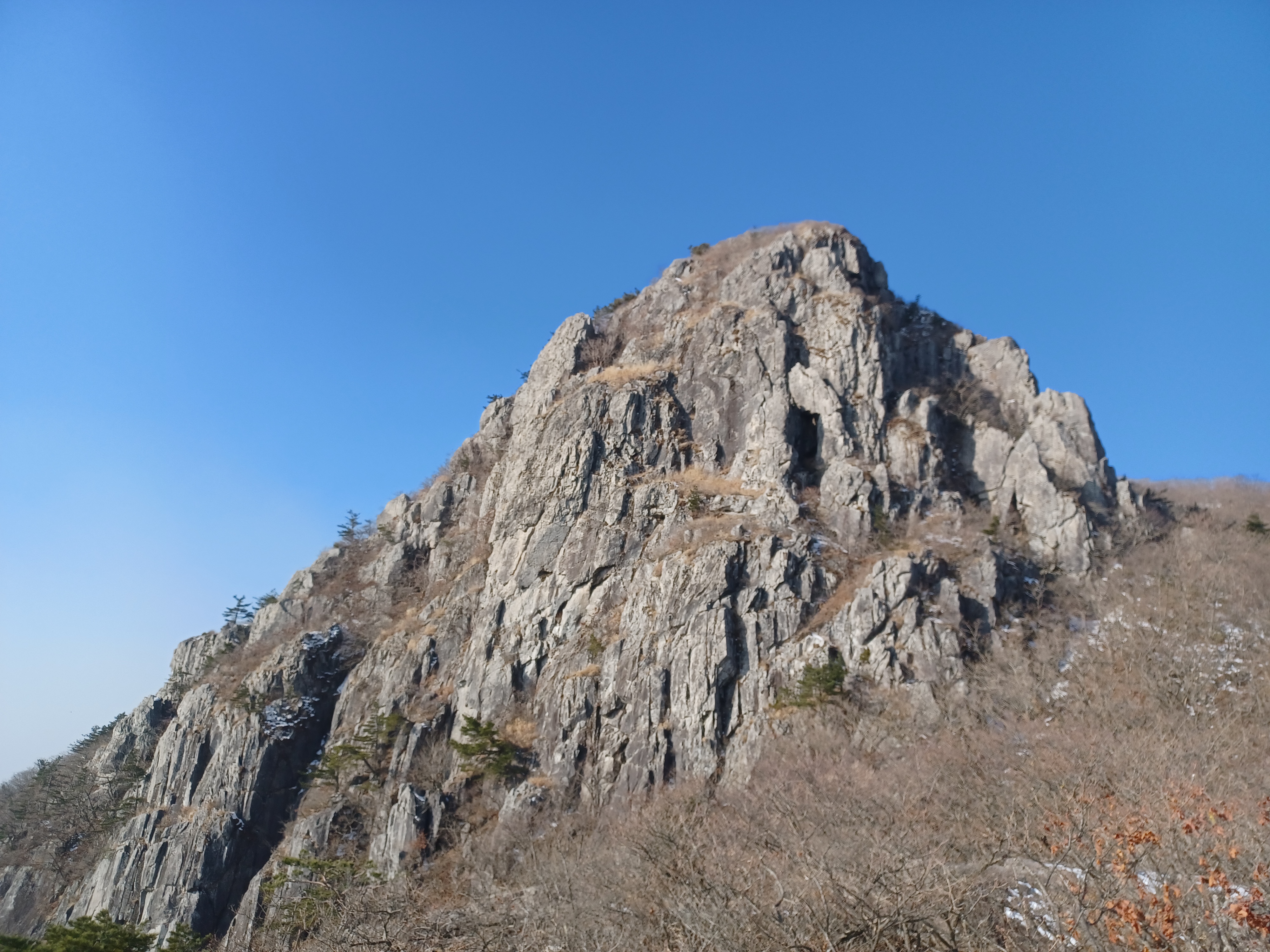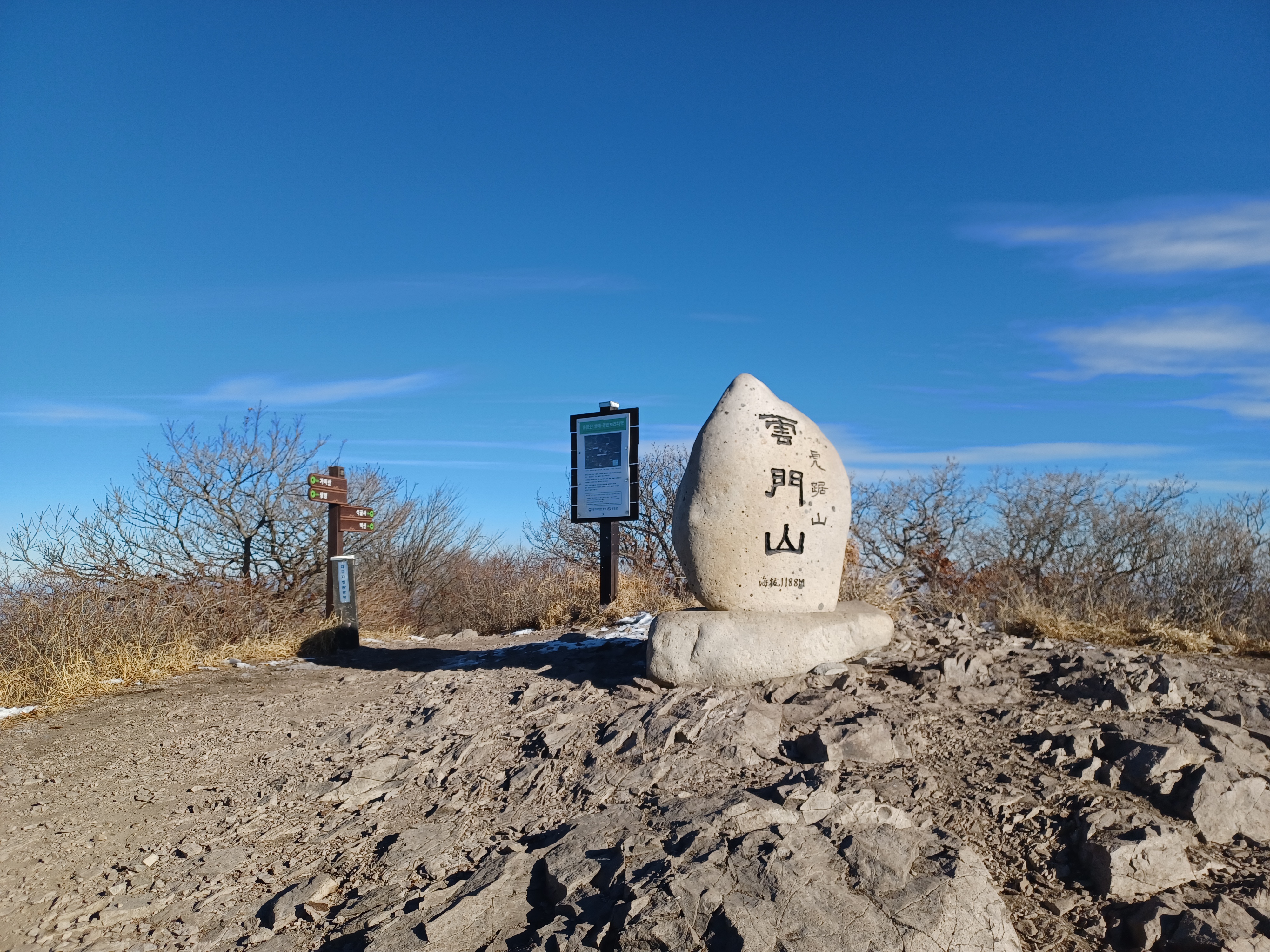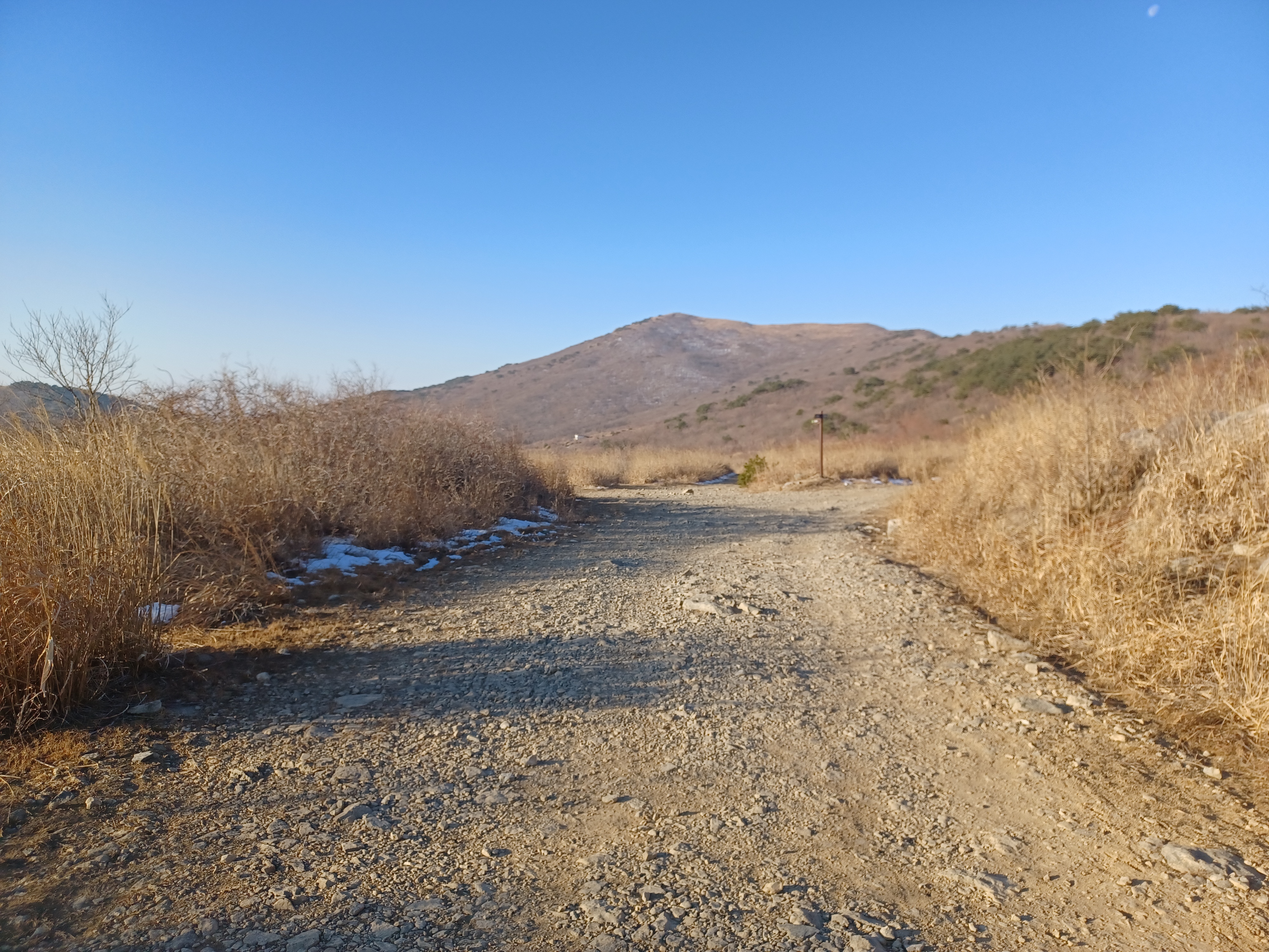 정상이 가까운 응달에는 잔설들이 얼어붙어 조금 미끄러웠다.