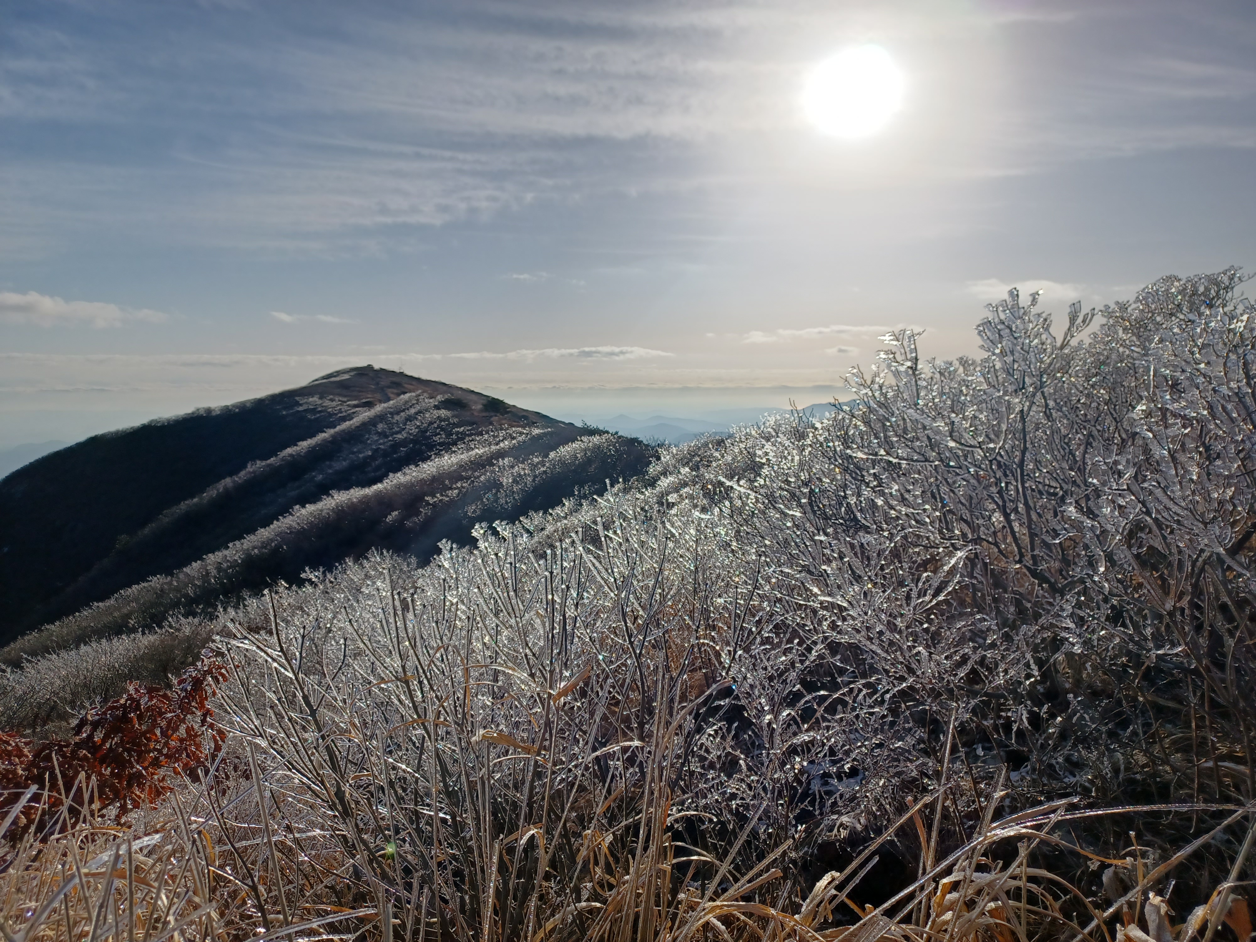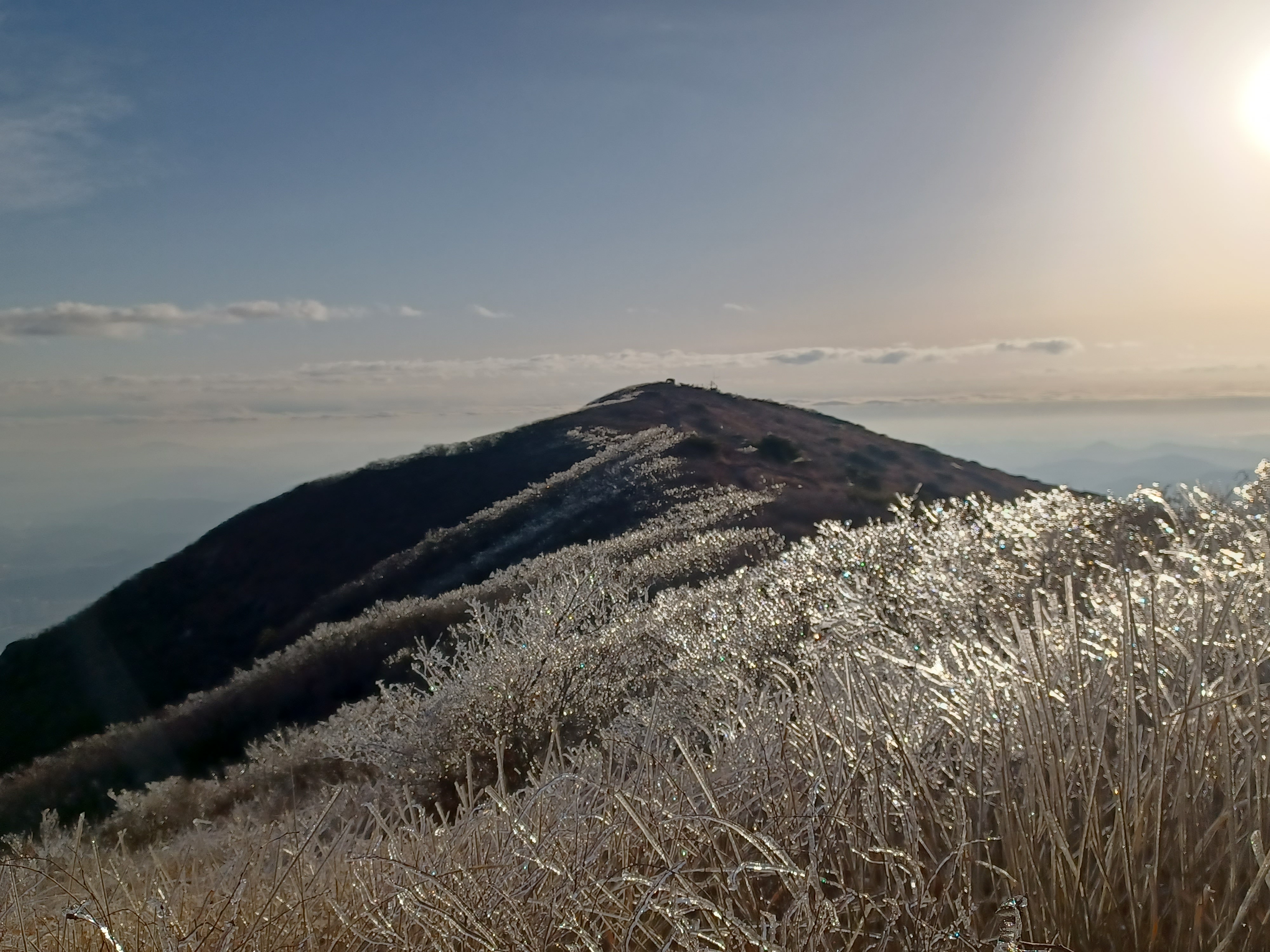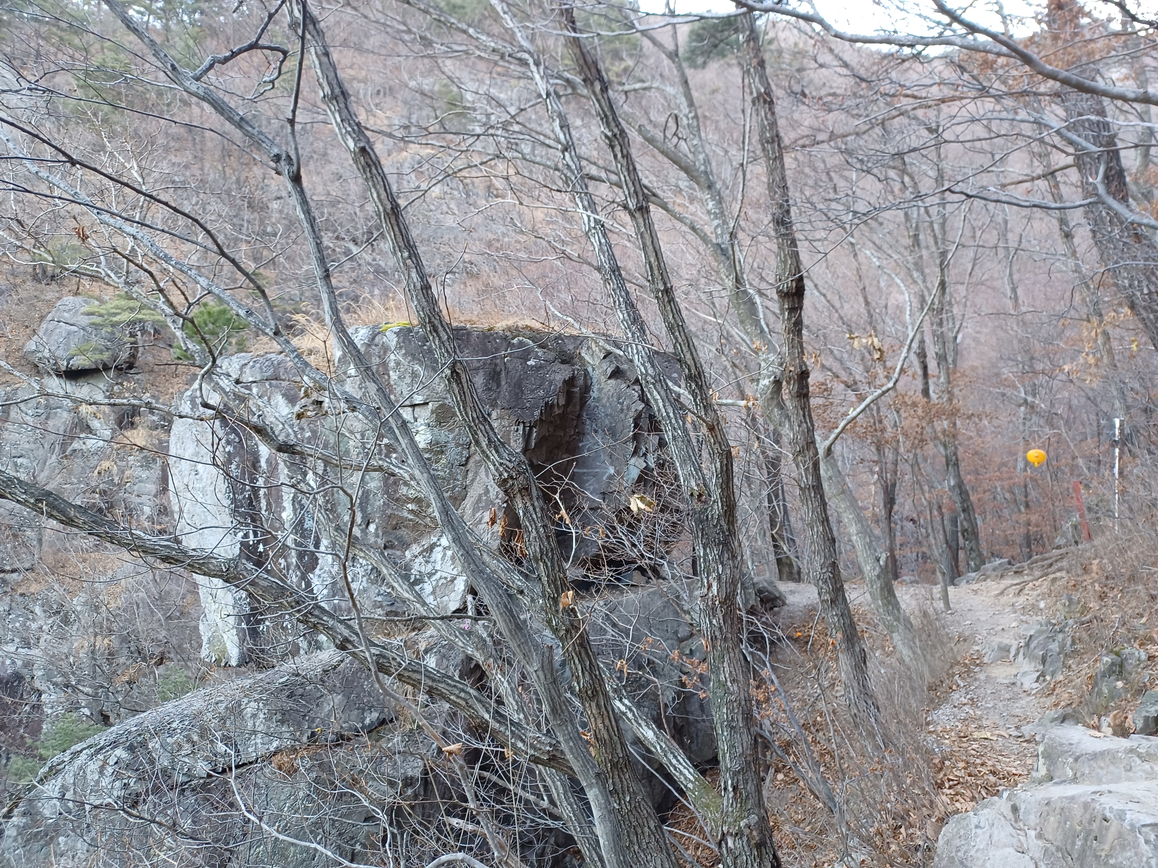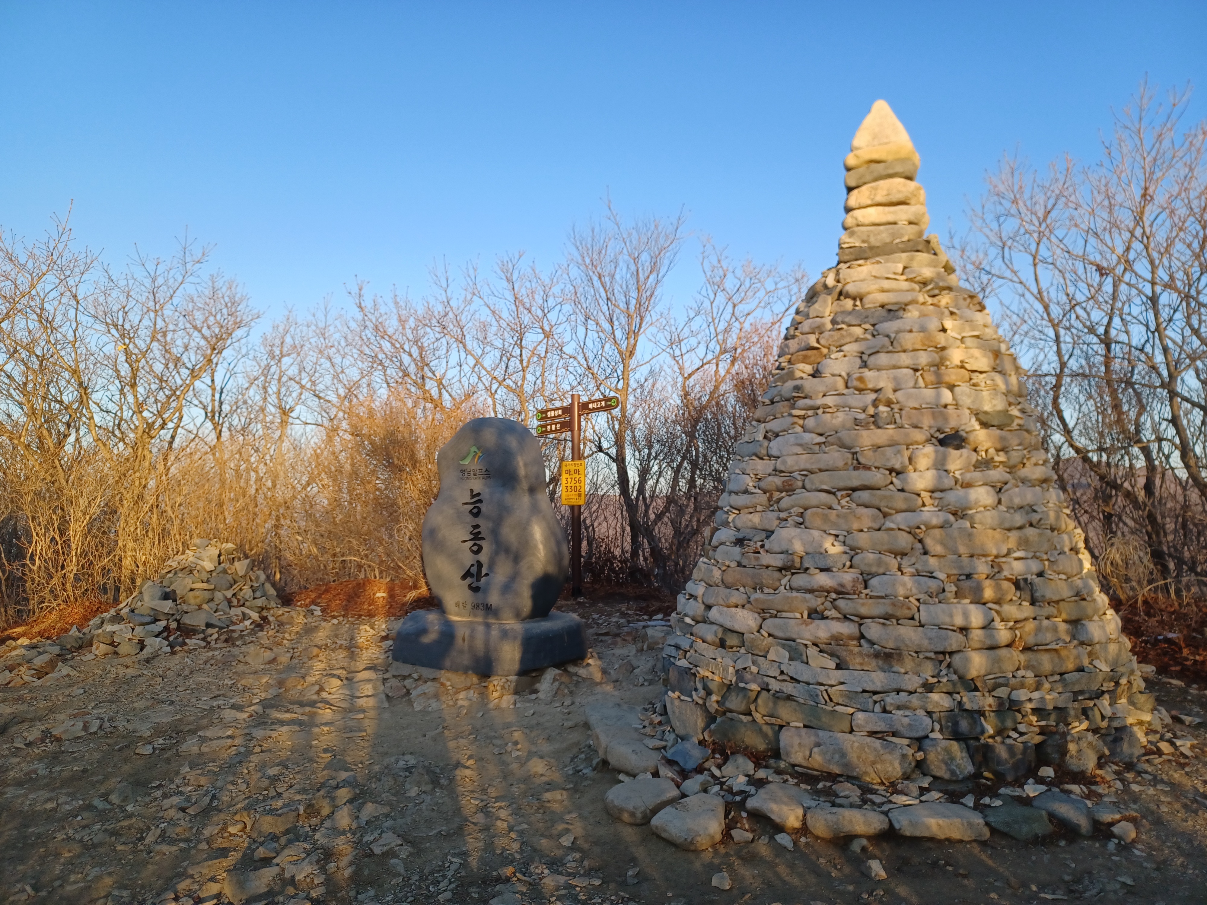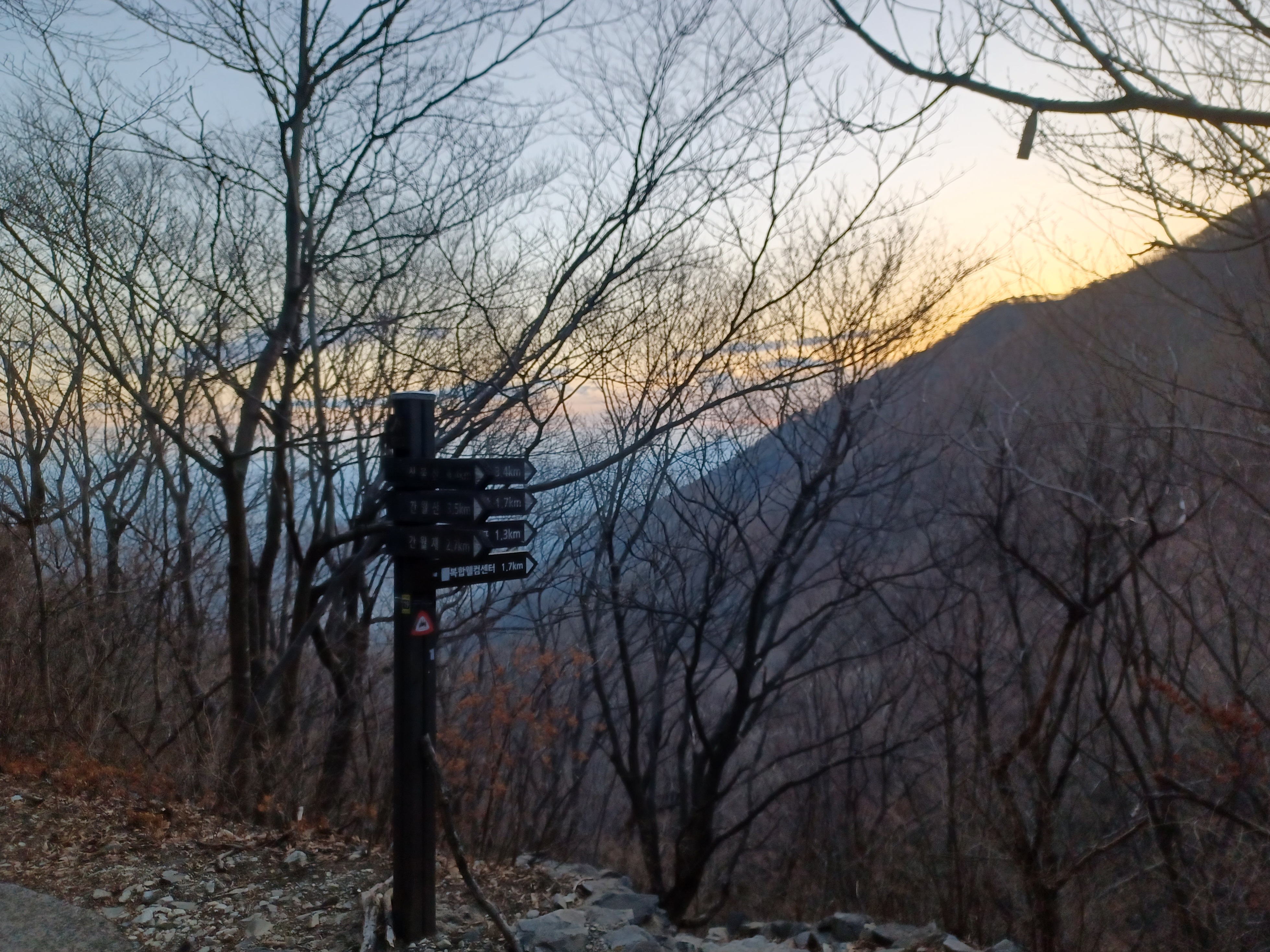 정상이 가까운 응달에는 잔설들이 얼어붙어 조금 미끄러웠다.