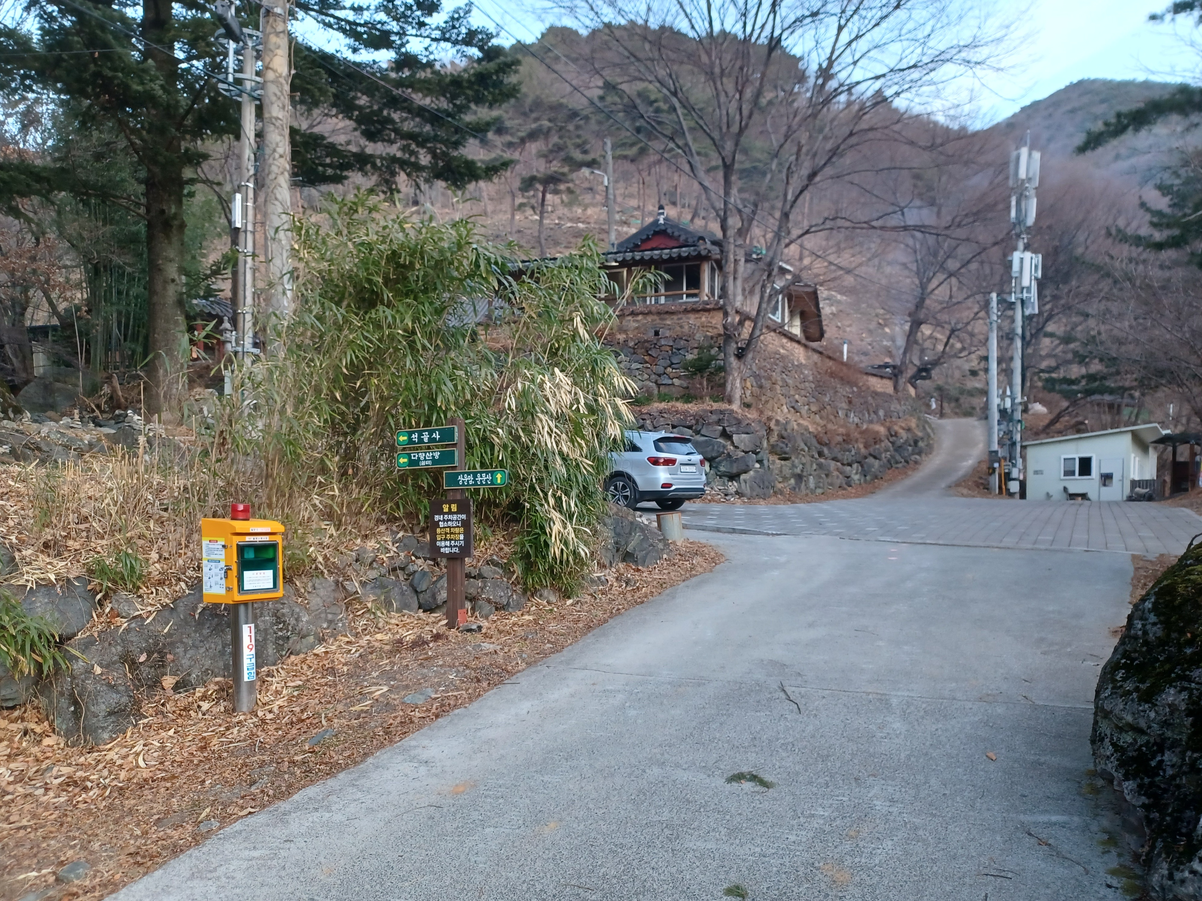 일출시간에 맞춰 가지산으로 가다가 석남터널을 못 미쳐 해돋이를 위해 찾은 사람들이 주차해 놓은 차들로 오도 가도 못하고 1시간 가까이 갇혀 있다가 돌아 나와 찾은 곳이 지산마을이다.