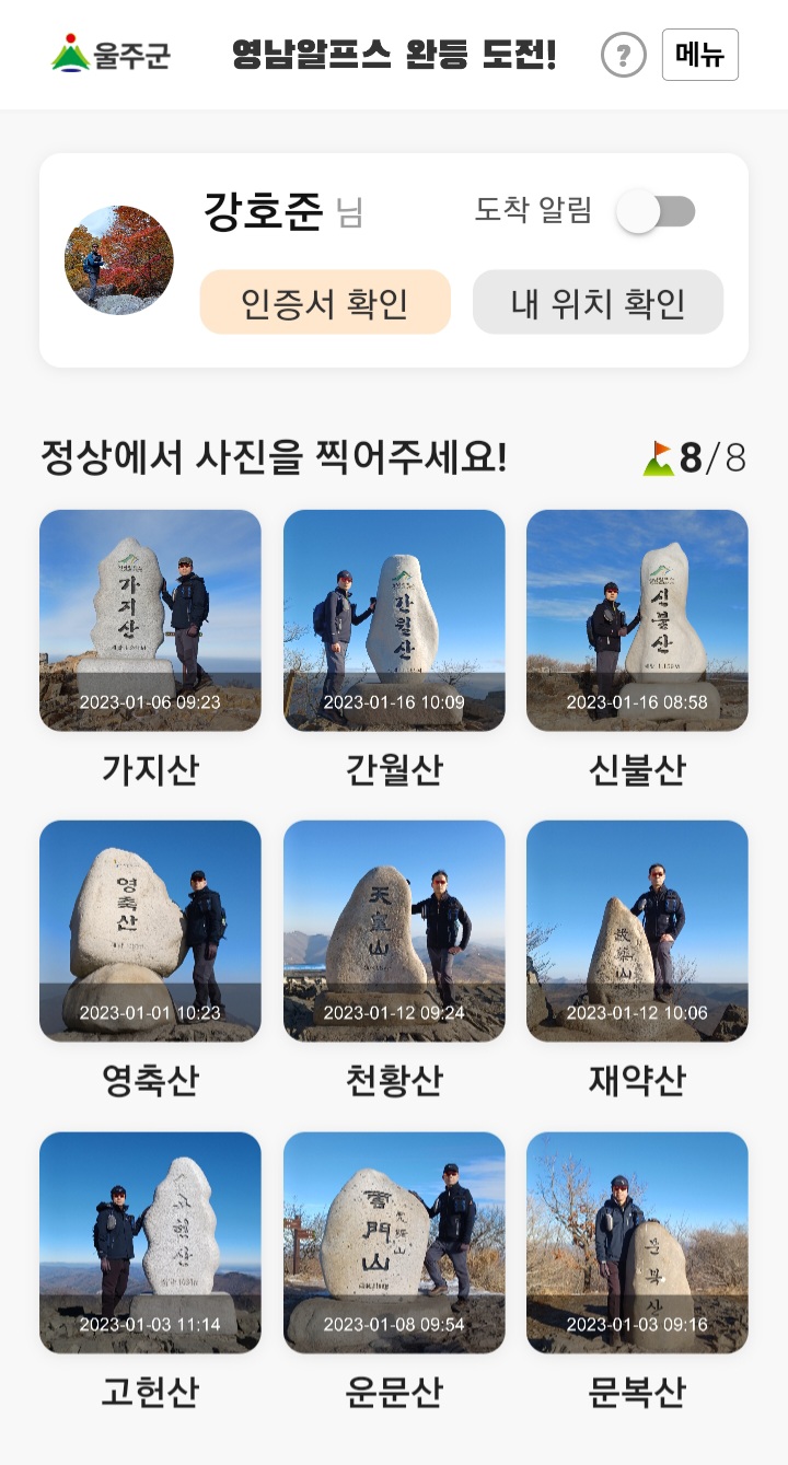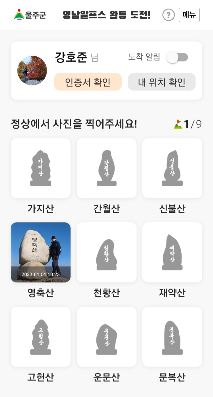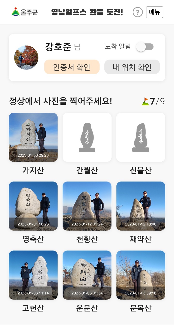 굳이 '9봉 완등 도전'이라는 이름을 붙이지 않더라도 늘 즐겨 찾고 오르는 산이니 인증하고 기념을 하는 것도 나쁘지는 않으리라.