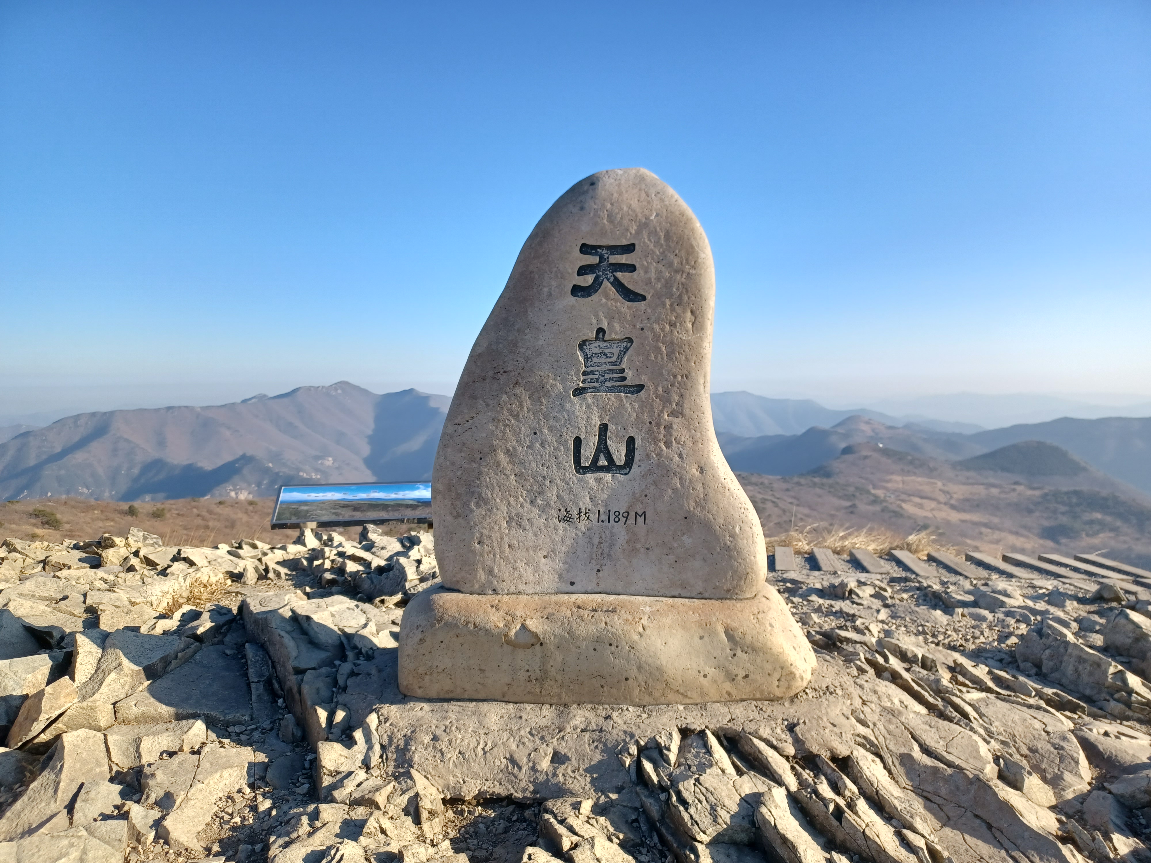 정상석 뒤로 보이는 깊이를 알 수 없는 파란 하늘이 너무 이쁘다.