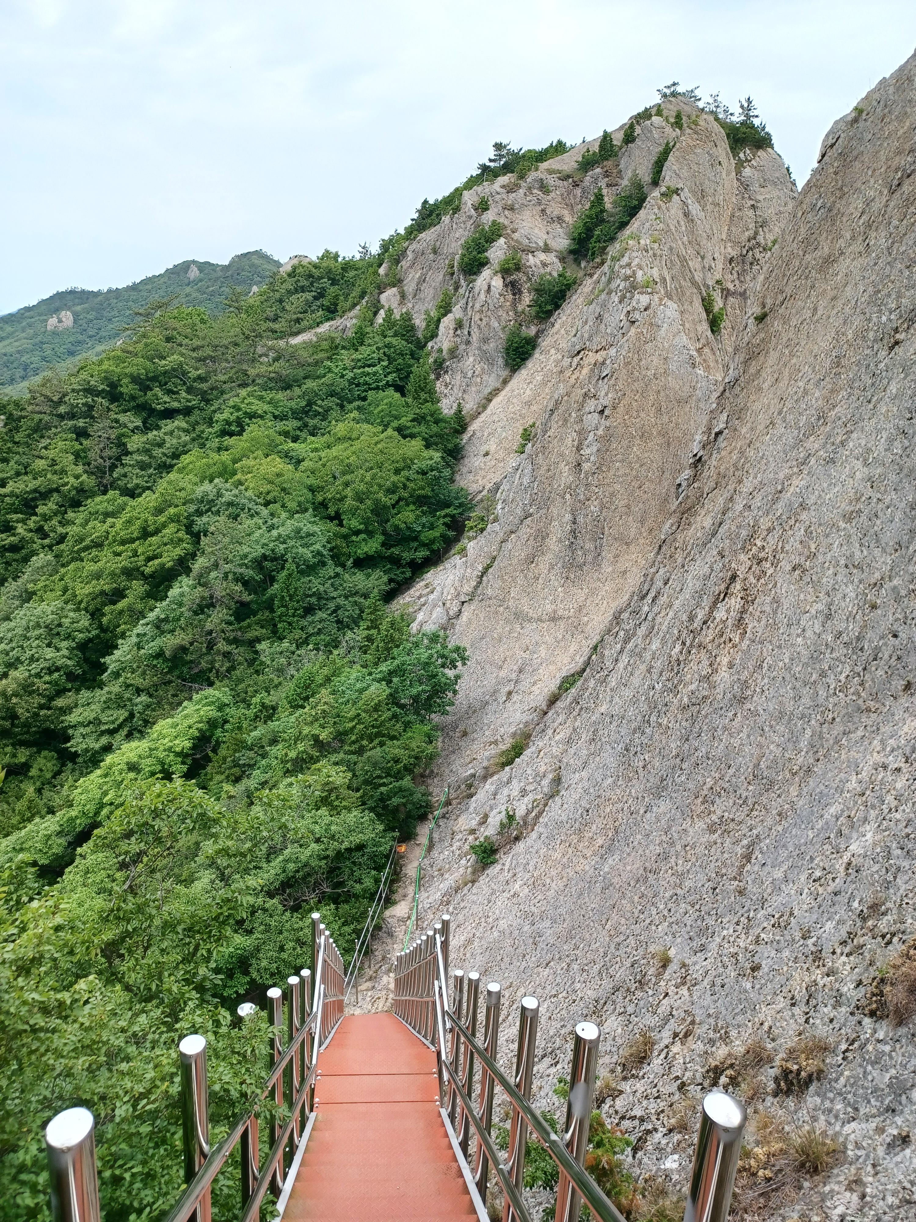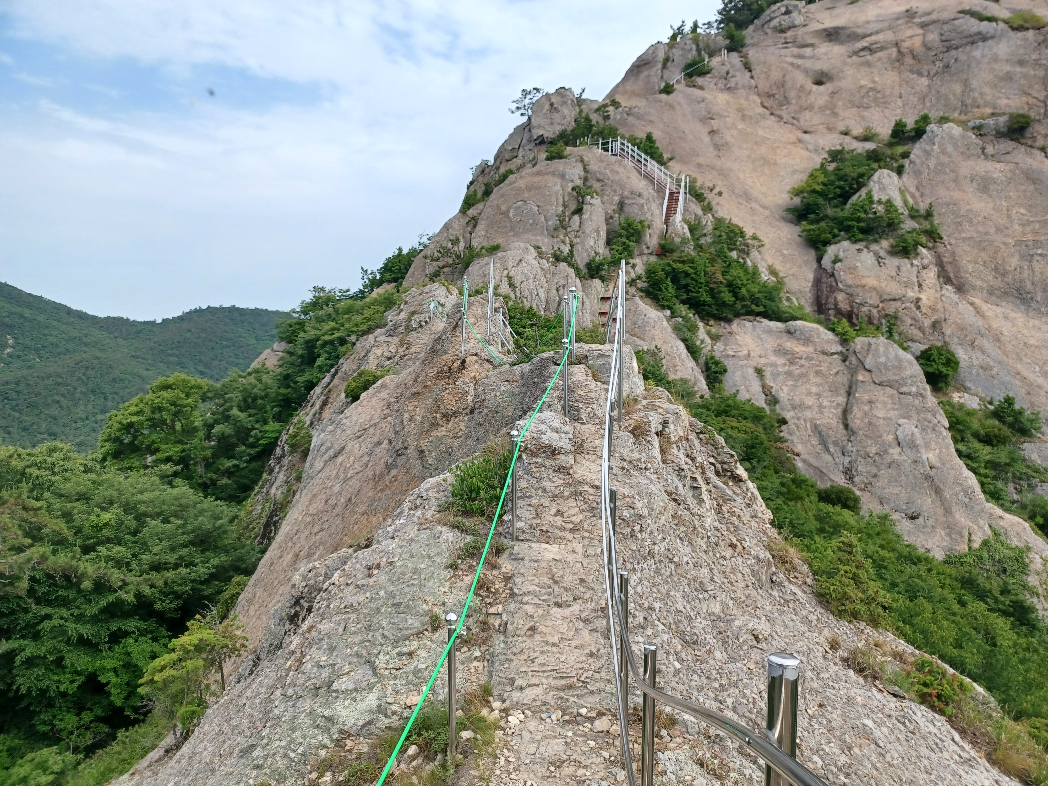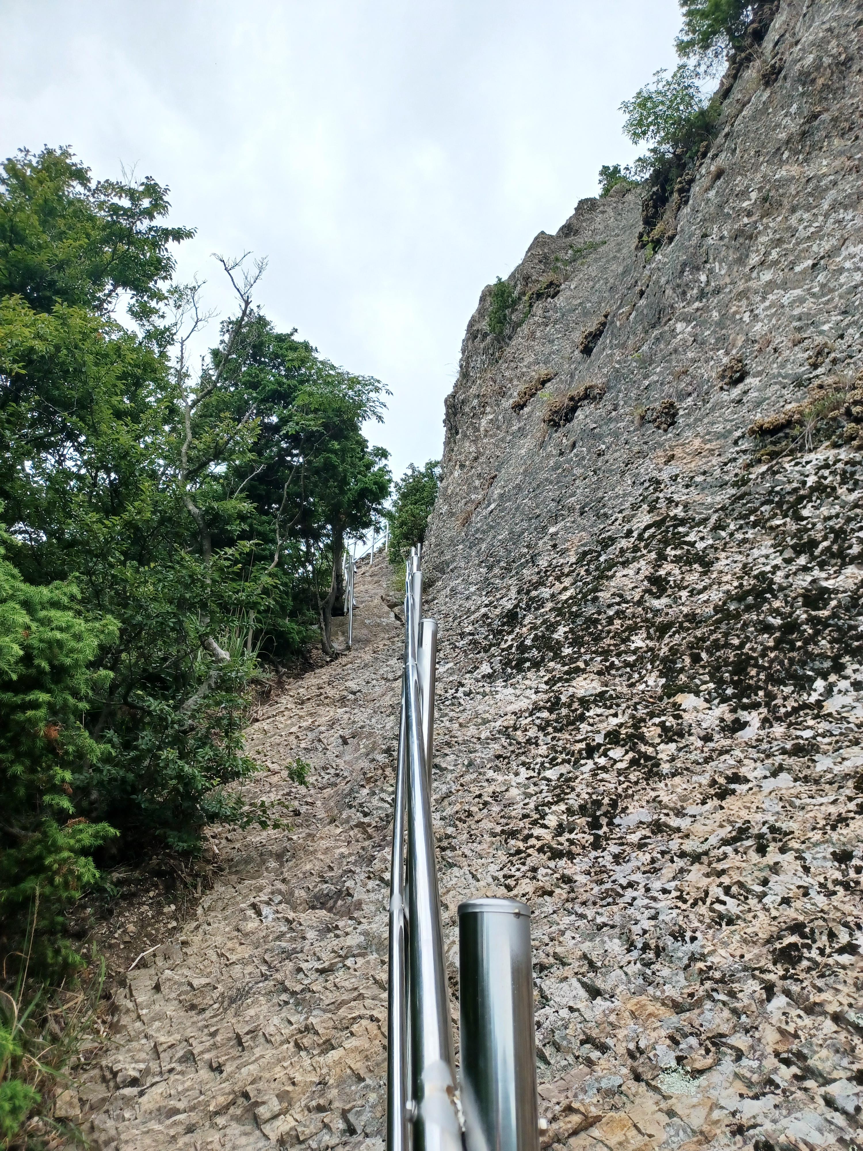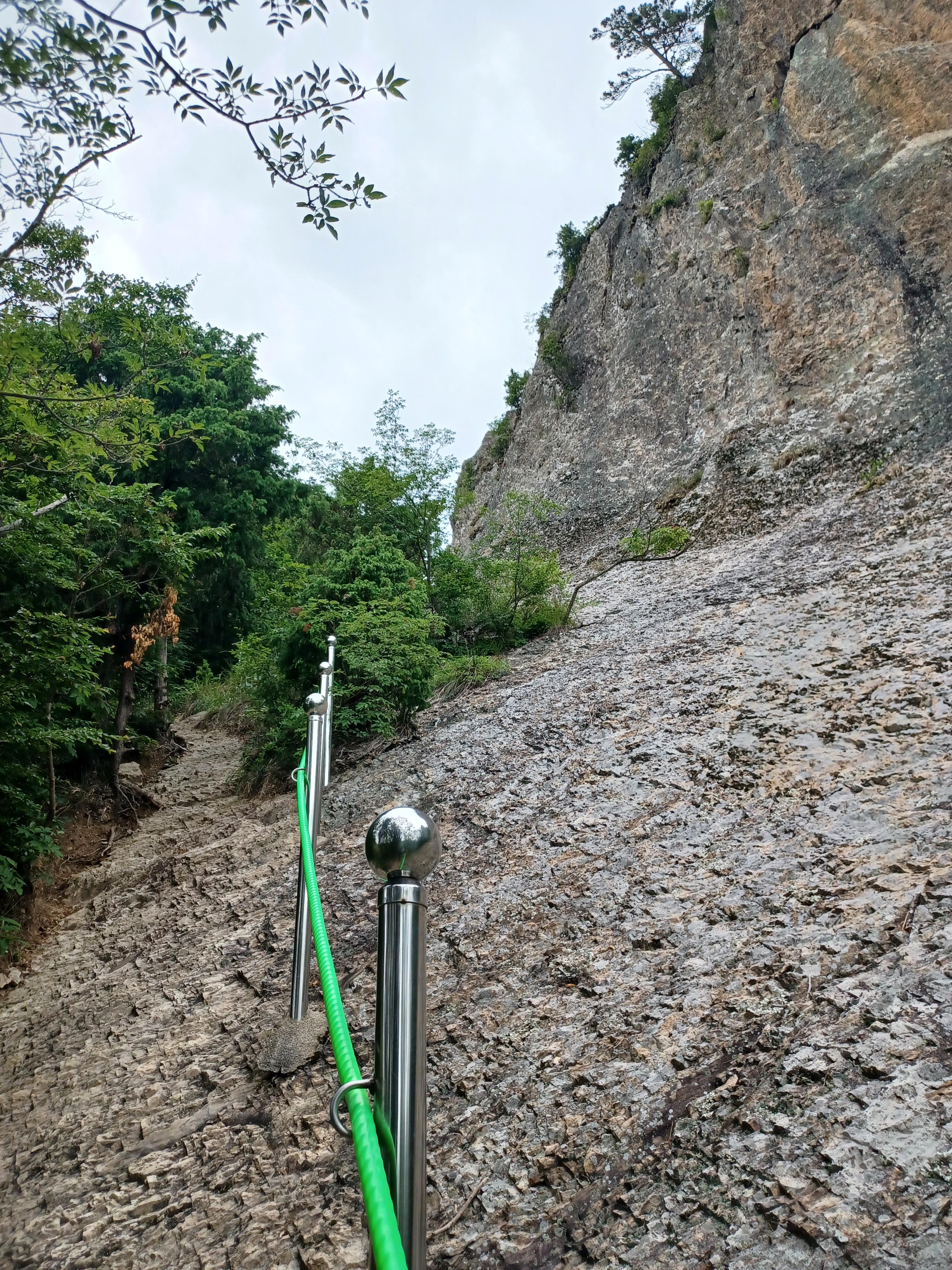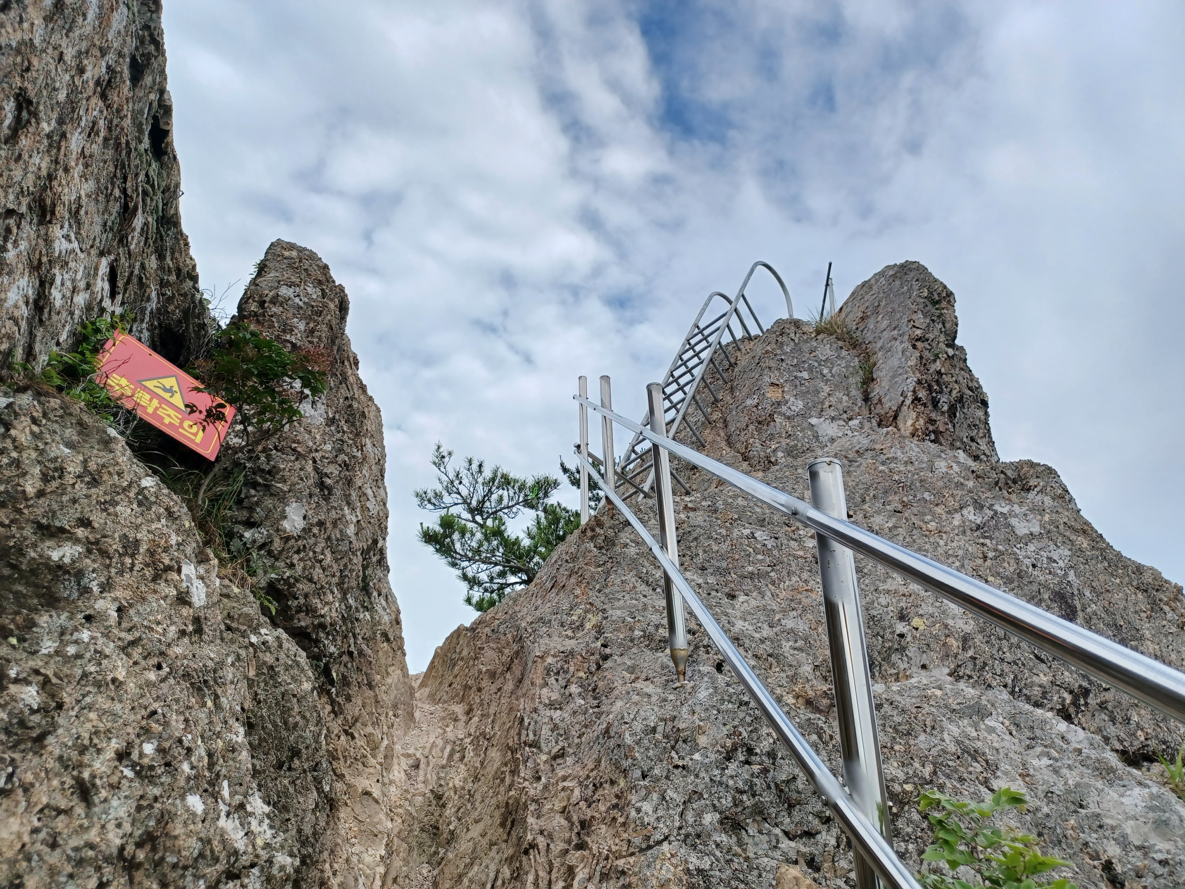 칼바위를 조망하기 위해 오르는 급사면 안전장치는 링으로...